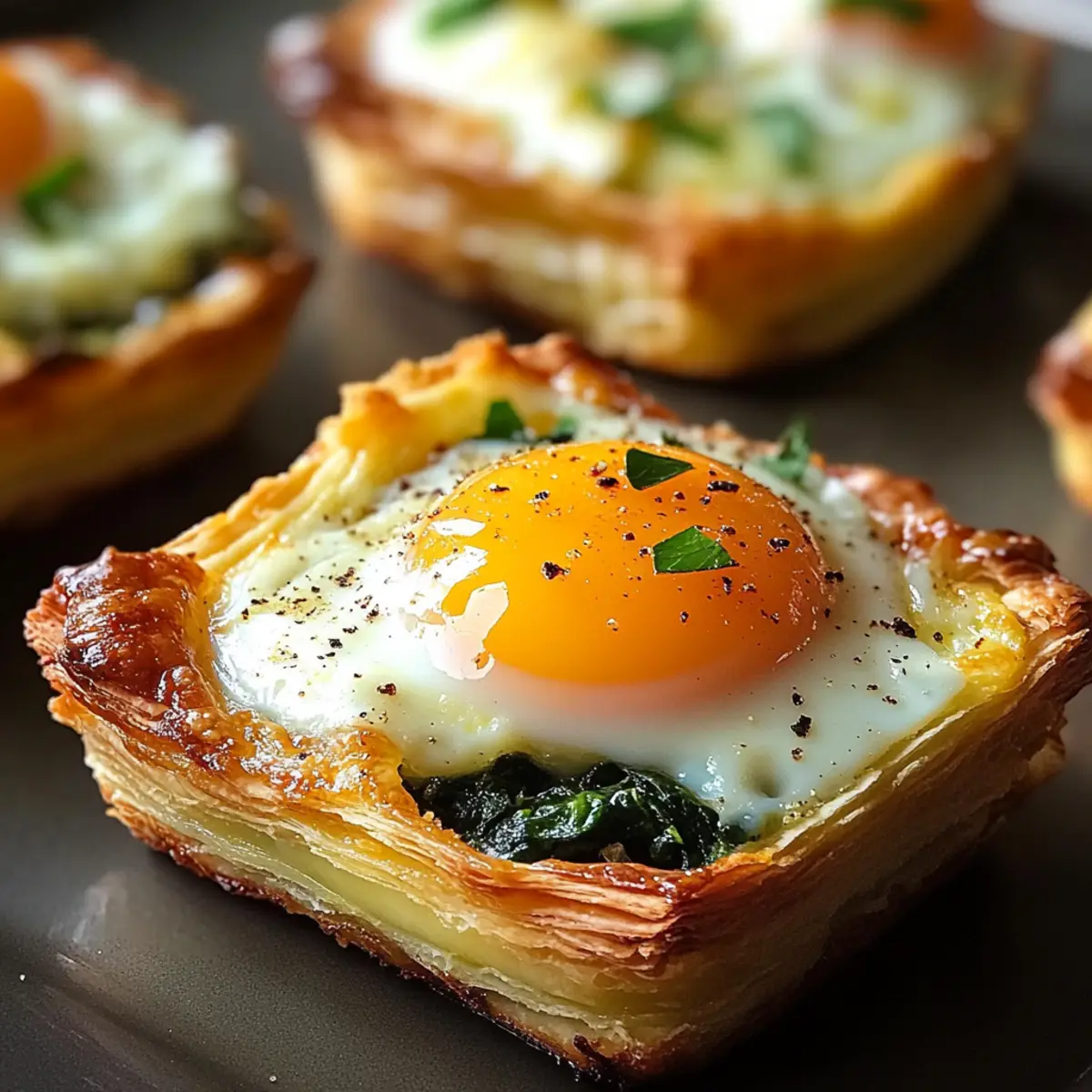 Ein köstliches Geheimnis in der Welt der Brunch-Gerichte: Gebratene Eier Napoleon. Diese wunderbare Kombination aus fluffigem Blätterteig, cremigem Spinat und perfekt zubereiteten Eiern bringt nicht nur kulinarisches Vergnügen auf Ihren Tisch, sondern auch einen Hauch von französischer Eleganz. Mit minimalem Aufwand schaffen Sie ein beeindruckendes Gericht, das sowohl für entspannte Sonntage als auch für festliche Anlässe geeignet ist. Die Zubereitung ist schnell und unkompliziert, sodass Sie mehr Zeit mit Ihren Lieben verbringen können. Ganz gleich, ob Sie Vegetarier sind oder einfach nur etwas Neues ausprobieren möchten, diese einfache Rezeptur lässt sich mit verschiedenen Käsesorten und Gemüsen abwandeln. Neugierig auf die Details? Lassen Sie uns gemeinsam in die Welt der Gebratenen Eier Napoleon eintauchen! Warum werden Sie Gebratene Eier Napoleon lieben? Einfachheit: Die Zubereitung ist kinderleicht! Mit nur wenigen Zutaten und minimalem Aufwand zaubern Sie ein beeindruckendes Gericht. Vielfalt: Variieren Sie die Zutaten ganz nach Ihrem Geschmack! Ob mit frischem Gemüse oder anderen Käsesorten, der Kreativität sind keine Grenzen gesetzt. Wunderbare Texturen: Der knusprige Blätterteig harmoniert perfekt mit der cremigen Füllung und dem weichgekochten Ei. Perfekte Brunch-Option: Dieses Gericht ist ideal für Sonntagsbrunches oder festliche Anlässe – Ihre Gäste werden begeistert sein! Nährstoffreich: Pulverhaltige Zutaten wie Spinat und Eier bieten eine proteinreiche Mahlzeit, die auch Vegetarier anspricht. Wenn Sie nach weiteren tollen Rezepten suchen, schauen Sie sich doch auch unseren Eier Benedict Auflauf oder den Blumenkohl Gebratener Reis mit Garnelen an! Gebratene Eier Napoleon Zutaten • Diese Zutaten sind der Schlüssel zu Ihrem kulinarischen Meisterwerk! Für den Blätterteig Blätterteig – Verwenden Sie gefrorenen Blätterteig für die beste Textur; selbstgemachter erfordert mehr Zeit. Für die Füllung Eier – Die Hauptzutat, die dem Gericht Reichhaltigkeit und Protein verleiht; große Eier sind ideal. Spinat – Bringt Geschmack und Nährstoffe; frischer Spinat ist vorzuziehen, gefrorener kann wenn nötig verwendet werden, nachdem die überschüssige Feuchtigkeit entfernt wurde. Frischkäse – Schafft eine cremige Füllung; kann durch Ziegenkäse für eine würzige Note ersetzt werden. Schlagsahne – Fügt Reichhaltigkeit hinzu; Milch kann eine leichtere Alternative sein, wenn nötig. Parmesan – Sorgt für einen herzhaften, nussigen Geschmack; jede harte Käsesorte wie Gruyere ist ebenfalls lecker. Schalotte & Knoblauch – Für aromatische Tiefe; Zwiebeln können verwendet werden, die Kochzeit kann jedoch variieren. Muskatnuss – Verbessert die Geschmacksvielfalt; kann weggelassen werden, wenn gewünscht. Salz & Pfeffer – Grundlegende Gewürze für die geschmackliche Abrundung; nach Geschmack anpassen. Schnittlauch – Frische Kräutergarnierung, die Farbe hinzufügt; Petersilie oder grüne Zwiebeln sind ebenfalls geeignet. Um das köstliche Erlebnis von Gebratenen Eiern Napoleon voll zu genießen, probieren Sie diese anderen Variationen und Kombinationen aus! Schritt-für-Schritt-Anleitung für Gebratene Eier Napoleon Schritt 1: Blätterteig vorbereiten & Ofen vorheizen Tauen Sie den Blätterteig über Nacht im Kühlschrank auf, um ihn geschmeidig zu halten. Heizen Sie den Ofen auf 200 °C (400 °F) vor. Fetten Sie vier 10 cm große Ramekins mit etwas Butter ein, damit der Blätterteig nicht kleben bleibt. Schritt 2: Teigschalen formen Rollen Sie den aufgetauten Blätterteig auf eine Dicke von etwa 0,5 cm aus. Schneiden Sie mit einem runden Ausstecher oder einem Glas Kreise aus und drücken Sie diese vorsichtig in die Ramekins, sodass der Teig über den Rand hängt. Dies bildet die Schalen für die Gebratenen Eier Napoleon. Schritt 3: Blätterteig blind backen Legen Sie die Teigschalen mit Backpapier aus und füllen Sie sie mit Backgewichten oder getrockneten Hülsenfrüchten. Backen Sie die Teigschalen für 12-15 Minuten, bis die Ränder goldbraun sind. Entfernen Sie vorsichtig das Backpapier und die Gewichte und backen Sie weitere 3-5 Minuten, bis der Teig vollständig durchgegart ist. Schritt 4: Cremige Spinatfüllung vorbereiten Erhitzen Sie in einer Pfanne etwas Öl und dünsten Sie die Schalotten und den Knoblauch bei mittlerer Hitze, bis sie weich sind. Fügen Sie den frischen Spinat hinzu und braten Sie ihn, bis er zusammengefallen ist. Mischen Sie dann den Frischkäse, die Schlagsahne, den Parmesan und die Muskatnuss ein, bis eine cremige Konsistenz entsteht. Würzen Sie mit Salz und Pfeffer. Schritt 5: Napoleons zusammenstellen Füllen Sie die vorgebackenen Teigschalen gleichmäßig mit der cremigen Spinatfüllung. Brechen Sie vorsichtig je ein Ei auf die Füllung in jeder Teigschale. Achten Sie darauf, dass das Eigelb intakt bleibt, und würzen Sie die Eier leicht mit Salz und Pfeffer. Schritt 6: Eier bestreichen & würzen Schlagen Sie ein weiteres Ei in einer kleinen Schüssel und verwenden Sie einen Pinsel, um die Ränder des Blätterteigs mit dem geschlagenen Ei zu bestreichen. Streuen Sie nach Belieben etwas Bagel-Gewürz oder Mohn über den Teig, um zusätzlichen Geschmack zu verleihen. Schritt 7: Endgültiges Backen Backen Sie die Gebratenen Eier Napoleon im vorgeheizten Ofen bei 200 °C (400 °F) für 12-18 Minuten, bis die Eier wachsweich sind und der Blätterteig schön goldbraun ist. Kontrollieren Sie den Gargrad des Eis und nehmen Sie sie rechtzeitig aus dem Ofen. Schritt 8: Garnieren & Servieren Lassen Sie die Gebratenen Eier Napoleon kurz abkühlen. Garnieren Sie die Ramekins mit frisch gehacktem Schnittlauch für einen Farbtupfer und zusätzlichen Geschmack. Servieren Sie das Gericht sofort, entweder direkt in den Ramekins oder auf einem schönen Teller anrichten. Expert Tips für Gebratene Eier Napoleon Teig kalt halten: Stellen Sie sicher, dass der Blätterteig gut gekühlt ist, bevor Sie ihn ausrollen, um ein V