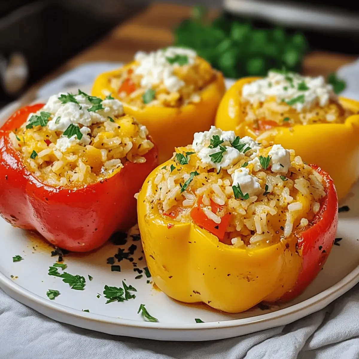 Als ich letzte Woche in meinem Garten stand und die leuchtenden Farben der Paprika bewunderte, wusste ich sofort, dass ich etwas Besonderes mit ihnen zaubern möchte. Gefüllte Paprika mit Reis und Feta sind nicht nur ein echter Hingucker auf dem Tisch, sondern auch eine hervorragende Möglichkeit, frisches Gemüse in unsere Ernährung zu integrieren. Diese vegetarische Köstlichkeit vereint die zarte Textur von Reis mit dem würzigen Geschmack von Feta-Käse und bietet somit eine gesunde, herzhaft-füllende Mahlzeit, die ideal für Familienessen oder als schmackhafte Beilage ist. Während das Gericht simpel zuzubereiten ist, kannst du es ganz nach deinem Geschmack anpassen – sei es mit zusätzlichen Gemüse- oder Hülsenfrüchten. Bist du bereit, deine Freunde und Familie mit dieser bunten, nahrhaften Speise zu überraschen? Lass uns starten! Warum sind gefüllte Paprika so vielseitig? Vielfältige Anpassungsmöglichkeiten: Du kannst die Füllung nach Belieben variieren, indem du verschiedene Gemüse oder Hülsenfrüchte hinzufügst. Gesund und nahrhaft: Bietet eine ausgewogene Mischung aus Vitaminen und Ballaststoffen, ideal für eine gesunde Ernährung. Einfach zuzubereiten: Mit minimalem Aufwand kannst du ein schmackhaftes Gericht zaubern, das der ganzen Familie gefällt. Ein echter Hingucker: Die bunten Paprika sind nicht nur lecker, sondern auch optisch ansprechend – perfekt für besondere Anlässe oder ein gemütliches Abendessen. Zu jeder Mahlzeit passend: Ob als Hauptgericht oder Beilage, gefüllte Paprika machen immer eine gute Figur. Gefüllte Paprika Zutaten Für die Füllung Paprika – Hauptbestandteil, sorgt für Farbe und Frische im Gericht. Reis – Sorgt für Textur und Sättigung; kann durch Quinoa für eine glutenfreie Option ersetzt werden. Feta-Käse – Verleiht dem Gericht seinen herzhaften Geschmack; auch Ricotta oder Frischkäse können verwendet werden. Zwiebel – Fügt Süße und Aroma hinzu; leicht durch Schalotten ersetzbar. Knoblauch – Für zusätzlichen Geschmack; optional weglassen, wenn du es milder magst. Tomaten (gehackt) – Bieten Feuchtigkeit und Aromen; frische oder dosierte sind beide geeignet. Olivenöl – Zum Anbraten der Zwiebeln und für mehr Geschmack; Rapsöl ist ebenfalls eine gute Alternative. Gewürze (Oregano, Paprikapulver, Salz, Pfeffer) – Fügen geschmackliche Tiefe hinzu; individuell nach Geschmack anpassen. Petersilie – Für die Garnitur, bringt frische Farbe; kann durch andere Kräuter wie Basilikum ersetzt werden. Für die Garnitur Frisches Brot – Ergänzt das Gericht perfekt und macht es zu einer vollwertigen Mahlzeit. Grüner Salat – Ein erfrischender Begleiter zu den gefüllten Paprika für extra Vitamine. Schritt-für-Schritt-Anleitung für gefüllte Paprika mit Reis und Feta Step 1: Paprika vorbereiten Die Paprika gründlich waschen, den oberen Teil mit einem scharfen Messer abschneiden und die Kerne sowie die weißen Häute entfernen. Achte darauf, die Paprika intact zu lassen, damit sie die Füllung gut halten können. Lege die vorbereiteten Paprika auf ein Brett und stelle sie beiseite, während du die Füllung zubereitest. Step 2: Reis kochen Setze einen Topf mit leicht gesalzenem Wasser auf und bringe es zum Kochen. Füge den Reis hinzu und koche ihn gemäß den Anweisungen auf der Verpackung, normalerweise etwa 10–15 Minuten, bis er gar und locker ist. Wenn der Reis fertig ist, gieße ihn ab und lasse ihn etwas abkühlen, während du die anderen Zutaten vorbereitest. Step 3: Füllung anbraten Erhitze in einer großen Pfanne bei mittlerer Temperatur etwa 2 Esslöffel Olivenöl. Füge die gewürfelte Zwiebel und den gehackten Knoblauch hinzu und brate beides für 3–5 Minuten an, bis die Zwiebeln weich und glasig sind. Gib die gehackten Tomaten sowie Oregano, Paprikapulver, Salz und Pfeffer dazu. Lasse die Mischung für weitere 5 Minuten köcheln, bis sie leicht eingedickt ist. Step 4: Mischung kombinieren Nimm die Pfanne vom Herd und rühre den gekochten Reis sorgfältig unter die abgeschmeckte Tomatenmischung. Füge den zerbröckelten Feta-Käse hinzu und mische alles gut durch, bis eine gleichmäßige Füllung entsteht. Diese köstliche Füllung verleiht den gefüllten Paprika mit Reis und Feta den herzhaften Geschmack, den du suchst. Step 5: Paprika füllen Fülle die vorbereiteten Paprika großzügig mit der Mischung aus Reis und Feta. Achte darauf, dass sie gut gefüllt sind, aber nicht überquellen. Setze dann die Deckel der Paprika wieder auf, um die Füllung zu verschließen und das Aroma beim Backen zu bewahren. Step 6: Backen Heize den Ofen auf 180 °C vor und lege die gefüllten Paprika in eine gefettete Auflaufform. Backe die Paprika für etwa 30–35 Minuten oder bis sie weich und leicht gebräunt sind. Du wirst sehen, dass sie beim Backen schön aufgehen und die Füllung gut durchwärmt wird. Step 7: Servieren Nehme die gefüllten Paprika aus dem Ofen und lasse sie einige Minuten abkühlen. Garniere sie anschließend mit frischer Petersilie für einen zusätzlichen Farbtupfer und serviere sie warm auf einem hübschen Teller. Diese gefüllten Paprika mit Reis und Feta sind ein wahrer Genuss! Expert Tips für gefüllte Paprika Paprika richtig auswählen: Wähle feste, glatte Paprika ohne Flecken, um sicherzustellen, dass sie beim Backen nicht brechen und die Füllung gut halten. Reis nicht überkochen: Achte darauf, den Reis al dente zu kochen, da er beim Backen weiter gart. Das sorgt für die perfekte Textur in den gefüllten Paprika. Aromatische Füllung: Experimentiere mit Gewürzen und Kräutern in der Füllung, um deinen eigenen Geschmack zu treffen. Dies macht die gefüllten Paprika mit Reis und Feta besonders aromatisch. Paprika variieren: Spiele mit verschiedenen Paprikafüllungen, indem du z. B. zusätzlich Kichererbsen oder andere Gemüsesorten hinzufügst, um mehr Nährstoffe zu erhalten. Backzeit im Auge behalten: Behalte die Paprika während des Backens im Auge, um eine Überga