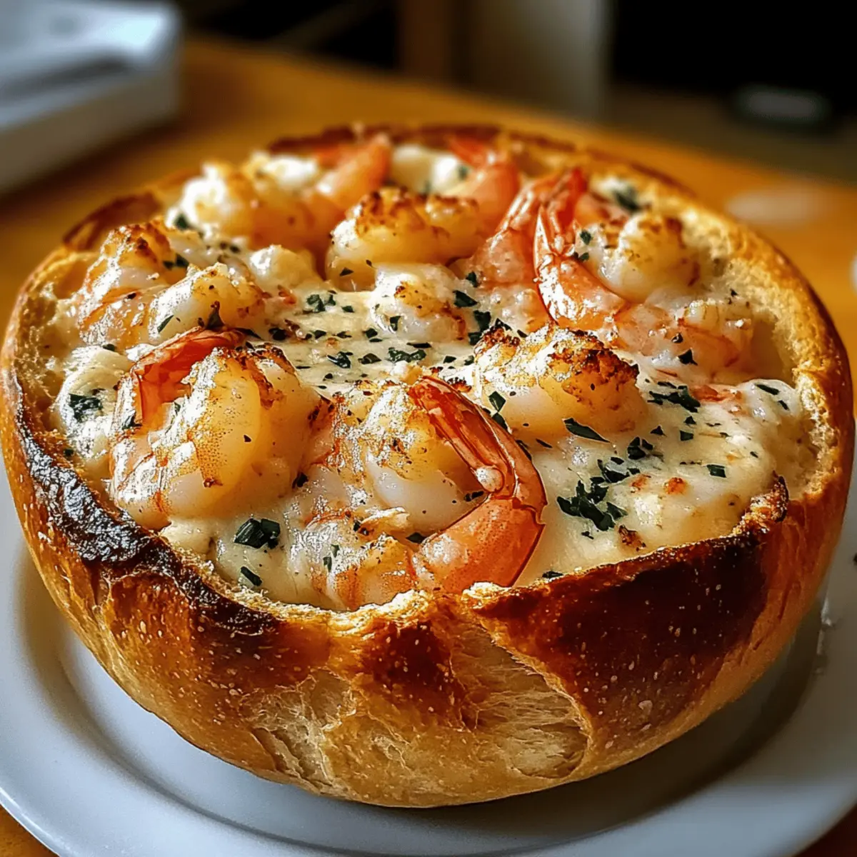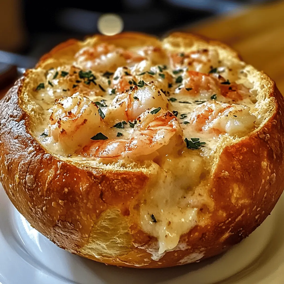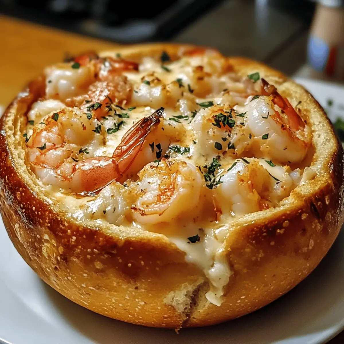 Wie oft habe ich schon nach einem Gericht gesucht, das nicht nur lecker ist, sondern auch Eindruck macht? Der Gefüllte Meeresfrüchte-Brot-Schüssel ist genau das! Diese kreative und herrlich cremige Mischung aus frischen Garnelen und zartem Krabbenfleisch begeistert nicht nur die Seafood-Liebhaber unter uns, sondern ist auch ein echter Party-Hit. Die knusprige, geröstete Sauerteigschüssel sorgt für den perfekten Crunch und hat sich als echter Publikumsmagnet erwiesen. Besonders erfrischend ist die einfache Zubereitung, die uns trotzdem glänzen lässt – ideal für gesellige Abende mit Freunden und Familie. Also, wer könnte da widerstehen? Lass uns gemeinsam herausfinden, wie man dieses köstliche Meisterwerk zubereitet! Warum wird dieses Rezept begeistern? Einzigartiger Genuss: Dieses gefüllte Meeresfrüchte-Brot ist nicht nur köstlich, sondern auch ein echter Hingucker auf jedem Tisch. Einfache Zubereitung: Mit nur wenigen Schritten zauberst du ein beeindruckendes Gericht, das jeder lieben wird. Vielseitige Variationen: Ob mit Garnelen, Krabben oder sogar Muscheln – du kannst die Füllung ganz nach deinem Geschmack anpassen. Gesellige Atmosphäre: Perfekt zum Teilen, sorgt es für eine Interaktion, die alle Gäste anspricht. Cremige Köstlichkeit: Die Kombination aus verschiedenen Käsesorten macht das Gericht super cremig und geschmackvoll. Ein echtes Muss für jede Feier! Gefülltes Meeresfrüchte-Brot-Schüssel Zutaten • Entdecke die perfekten Zutaten für deine gefüllte Meeresfrüchte-Brot-Schüssel, die garantiert begeistern werden! Für die Brot-Schüssel: Sauerteigbrot – Wähle ein kräftiges Brot, das die Füllung gut halten kann. Für die Füllung: Garnelen – Frisch oder gefroren, geschält und entdarmt für die süße und feste Textur. Krabbenfleisch – Verleiht dem Gericht eine exquisite Note; auch Dosenvarianten sind eine praktische Alternative. Frischkäse – Schafft die cremige Basis, ideal für eine suppenartige Konsistenz. Mozzarella – Für die perfekte, schmelzende Textur; kann mit Monterey Jack ersetzt werden, wenn gewünscht. Old Bay Gewürz – Sorgt für den klassischen Meeresfrüchte-Geschmack; durch Kreolisches oder Cajun-Gewürz austauschbar. Optional Muscheln – Fügen zusätzliche Tiefe hinzu; kann weggelassen werden, wenn nicht gewünscht. Diese Rezeptur verwendet das Keyword „Gefülltes Meeresfrüchte-Brot-Schüssel“ und bietet dir eine hervorragende Grundlage für dein nächstes kulinarisches Abenteuer! Schritt-für-Schritt-Anleitung für das Gefüllte Meeresfrüchte-Brot-Schüssel Step 1: Brot-Schüssel vorbereiten Hohle das Sauerteigbrot vorsichtig mit einem scharfen, gezahnten Messer aus, wobei du darauf achtest, dass genug Brot an den Seiten bleibt, um eine stabile Schüssel zu formen. Erhitze den Ofen auf 180 °C, während du das Brot vorbereitest, um es später zu rösten. Lege die ausgehöhlte Schüssel dann auf ein Backblech. Step 2: Basis zubereiten Erhitze eine große Pfanne bei mittlerer Hitze und füge einen Esslöffel Öl hinzu. Brate gehackten Knoblauch und Zwiebeln für etwa 3–4 Minuten an, bis sie duften und leicht goldbraun sind. Gib den Frischkäse dazu und rühre, bis er vollständig geschmolzen und gut mit den Zwiebeln vermischt ist. Step 3: Füllung aufbauen Füge nun die Garnelen und das Krabbenfleisch zur Mischung hinzu, gewürzt mit Old Bay Gewürz. Koche die Mischung für etwa 4–5 Minuten, bis die Garnelen fast komplett rosa sind und eine zarte Textur haben. Rühre gelegentlich um, damit alles gleichmäßig gegart wird und sich die Aromen gut verbinden. Step 4: Käsesorten hinzufügen Reduziere die Hitze und rühre den geriebenen Mozzarella in die Meeresfrüchte-Mischung ein. Lass die Füllung für etwa 2–3 Minuten weitergaren, bis der Käse vollständig geschmolzen ist und eine cremige Konsistenz entsteht. Jetzt ist die Füllung für das Gefüllte Meeresfrüchte-Brot-Schüssel bereit. Step 5: Servieren Nehme die frisch zubereitete Füllung vom Herd und löffle sie direkt in die ausgehöhlte Brot-Schüssel. Stelle die gefüllte Schüssel für etwa 10 Minuten in den vorgeheizten Ofen, bis die Oberseite leicht goldbraun und knusprig ist. Serviere die Gefüllte Meeresfrüchte-Brot-Schüssel warm, begleitet von Crackern oder zusätzlichen Brotstücken zum Dippen. Lagerungstipps für Gefülltes Meeresfrüchte-Brot-Schüssel Raumtemperatur: Bewahre das gefüllte Brot nicht länger als 1-2 Stunden bei Raumtemperatur auf, um die Frische zu erhalten und eine Bakterienbildung zu vermeiden. Kühlschrank: Die Füllung kann bis zu 3 Tage im Kühlschrank aufbewahrt werden. Achte darauf, sie in einem luftdichten Behälter zu lagern, um den Geschmack zu bewahren. Gefrierschrank: Die ungefüllte Meeresfrüchte-Mischung kann bis zu 2 Monate eingefroren werden. Stelle sicher, dass du sie in einem gut verschlossenen Behälter einfrierst, um Gefrierbrand zu vermeiden. Aufwärmen: Zum Aufwärmen die Füllung im Ofen bei 180 °C für etwa 10–15 Minuten erhitzen, bis sie durch und durch warm ist. Verwende die gefüllte Schüssel sofort, um die Knusprigkeit zu genießen. Was serviert man zum Gefüllten Meeresfrüchte-Brot-Schüssel? Dieses Gericht ist der Star jeder Veranstaltung und wird am besten mit köstlichen Beilagen und passenden Getränken serviert. Knusprige Gemüsesticks: Bunte Karotten, Sellerie und Paprika bringen Frische und Crunch, der perfekt zum cremigen Brot passt. Eine leichte Dipsauce intensifiziert das Geschmackserlebnis. Selbstgemachte Knoblauchbrötchen: Diese aromatischen Brötchen ergänzen die Meeresfrüchte exzellent und sind ideal zum Eintunken in die restliche Füllung des Brot-Schüssels. Grüner Salat: Eine Mischung aus knackigem Rucola und frischen Tomaten sorgt für eine erfrischende Note. Der leichte, zitronige Dressing hebt die Aromen hervor und schafft ein harmonisches Zusammenspiel. Weißer Sangria: Ein leichtes, fruchtiges Getränk mit einem Hauch von Zitrusfrüchten passt wunderbar zu 