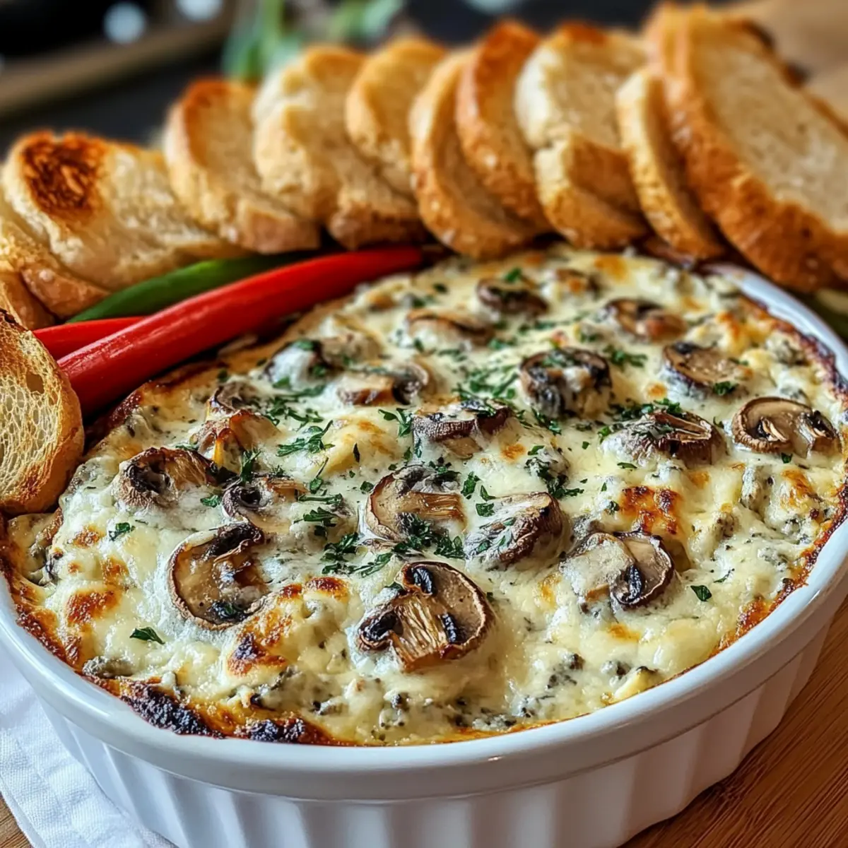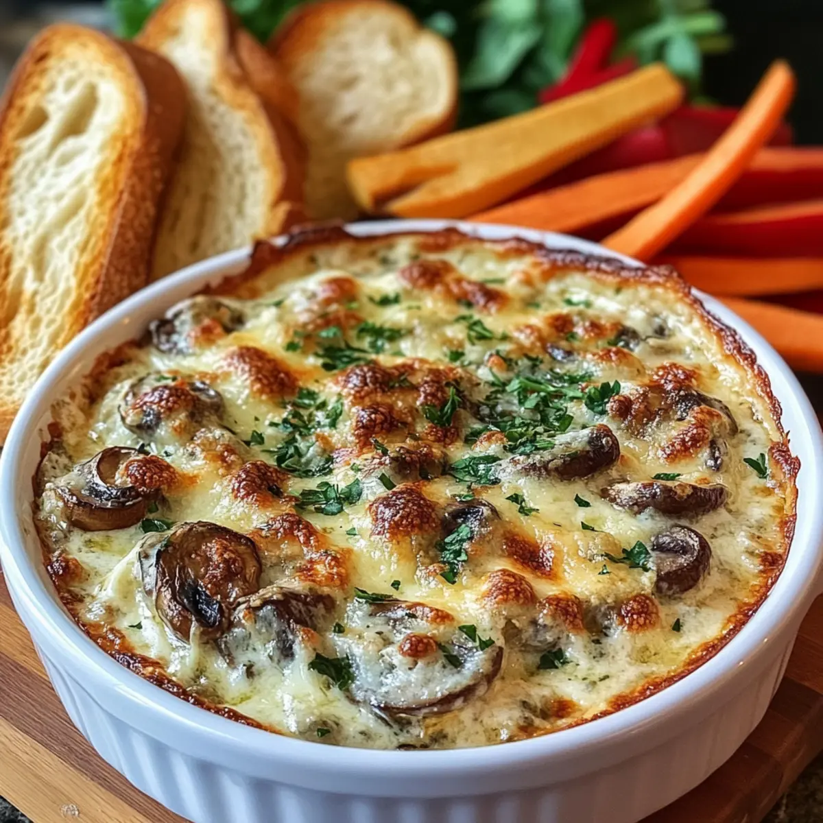 Während ich in meiner Küche stand und das sämige Aroma von gebratenen Champignons den Raum erfüllte, wusste ich sofort, dass ich etwas Besonderes zaubern würde: einen gefüllten Pilzdip. Diese cremige Köstlichkeit vereint das Beste aus sautierten Pilzen, würzigem Knoblauch und schmelzendem Käse zu einem unwiderstehlichen Appetizer, der jede gesellige Runde begeistert. Mit nur 30 Minuten Vorbereitungszeit lässt sich dieser einfache Dip ganz mühelos für eine entspannte Familiennacht oder ein festliches Beisammensein zubereiten. Ganz gleich, ob du auf der Suche nach einem vegetarischen Leckerbissen oder einer unkomplizierten Party-Mahlzeit bist, dieser gefüllte Pilzdip ist ein wahrer Genuss, den niemand widerstehen kann. Bist du bereit, deine Gäste mit diesem cremigen Vergnügen zu überraschen? Warum dieser gefüllte Pilzdip begeistert Unwiderstehlicher Geschmack: Der Kombination aus zarten, sautierten Champignons, cremigem Käse und würzigem Knoblauch bietet ein Geschmackserlebnis, das deine Geschmacksknospen verführt. Einfache Zubereitung: In nur 30 Minuten zauberst du ein leckeres Gericht, das die perfekten Rahmenbedingungen für entspannte Abende mit Freunden oder Familie bietet. Vielseitig: Ob als Appetizer oder Hauptgericht, dieser Dip ist anpassbar – füge deine Lieblingszutaten hinzu, wie z.B. Speck oder eine Auswahl an Käsesorten. Zeitersparnis: Bereite den Dip sogar im Voraus vor und schiebe ihn einfach in den Ofen, wenn die Gäste eintreffen – der perfekte Stresskiller für jede Feier. Entdecke dazu mehr Tipps in unserem Artikel über einfaches Kochen für Feste. Gefüllter Pilzdip Zutaten • Eine cremige und köstliche Mischung für jeden Anlass. Für den Dip Olivenöl oder Butter – Ideal für das Anbraten der Champignons; du kannst auch pflanzliches Öl oder Ghee für einen anderen Geschmack verwenden. Champignons (250 g, geschnitten) – Diese bieten den umami Geschmack; frische Champignons sind am besten, aber in der Not tun es auch die aus der Dose. Knoblauch (2 Zehen, gehackt) – Sorgt für das aromatische Extra; bei Bedarf kannst du auch Knoblauchpulver verwenden. Frischkäse (225 g, weich) – Gibt dem Dip seine cremige Konsistenz; für eine leichtere Option kannst du Neufchâtel-Käse nehmen. Sauerrahm (120 ml) – Bringt eine angenehme Säure hinein; griechischer Joghurt ist eine fettärmere Alternative. Geriebener Mozzarella (100 g, geteilt) – Schmilzt wunderbar und sorgt für Stretch; auch Fontina oder Gruyère eignen sich gut für abweichende Geschmäcker. Geriebener Parmesan (30 g) – Verstärkt den Geschmack mit seiner salzigen Note; Pecorino Romano ist eine tolle Alternative. Salz (1/2 Teelöffel) – Kräftigt das Aroma des Dips. Schwarzer Pfeffer (1/4 Teelöffel) – Fügt eine angenehme Wärme hinzu. Frischer Thymian oder Petersilie (1 Teelöffel, gehackt) – Frische Kräuter als Garnitur; du kannst auch Basilikum oder Schnittlauch verwenden. In diesem gefüllten Pilzdip findest du eine köstliche Mischung aus einfachen Zutaten, die deine Gäste begeistern werden! Schritt-für-Schritt-Anleitung für den Gefüllten Pilzdip Step 1: Champignons anbraten Erhitze in einer großen Pfanne bei mittlerer Hitze 1–2 Esslöffel Olivenöl oder Butter. Füge die geschnittenen Champignons hinzu und brate sie für 8–10 Minuten an, bis sie goldbraun und weich sind. Rühre gelegentlich um, damit sie gleichmäßig garen und das Wasser der Champignons verdampfen kann. Step 2: Knoblauch hinzufügen Reduziere die Hitze und füge die gehackten Knoblauchzehen hinzu. Brate den Knoblauch für etwa 1 Minute mit, bis er aromatisch ist, aber achte darauf, dass er nicht verbrennt. Diese Schritte verleihen dem Gefüllten Pilzdip eine köstliche, herzhafte Note, die die Aromen perfekt ergänzt. Step 3: Cremige Zutaten mischen Senke die Temperatur auf niedrig und gib den weichen Frischkäse und den Sauerrahm in die Pfanne. Rühre die Mischung gut um, bis sie vollständig geschmolzen und cremig ist. Diese Basis ist entscheidend für die köstliche, sämige Textur deines Gefüllten Pilzdips. Step 4: Käseschichten hinzufügen Nun ist es an der Zeit, die Hälfte des geriebenen Mozzarellas und den gesamten geriebenen Parmesan einzurühren. Rühre die Käse sorgfältig unter, bis die Mischung glatt und gleichmäßig cremig ist. Die Kombination der Käsesorten sorgt für einen besonders reichhaltigen Geschmack, der diesen Dip zur perfekten Wahl macht. Step 5: Überbacken im Ofen Verteile den restlichen Mozzarella gleichmäßig auf der Dip-Mischung in der Pfanne. Übertrage die Pfanne in den vorgeheizten Ofen bei 190 °C und backe den Dip für 15–20 Minuten, bis er sprudelnd und goldbraun ist. Ein verführerischer Duft wird sich verbreiten und deine Vorfreude steigern. Step 6: Garnieren und servieren Nimm die Pfanne aus dem Ofen und lasse den gefüllten Pilzdip kurz abkühlen. Garniere ihn mit frisch gehacktem Thymian oder Petersilie für einen frischen Akzent. Serviere den Dip heiß mit gerösteten Brotscheiben, Cracker oder Gemüsesticks als köstlichen Appetizer, der alle begeistern wird. Expertentipps für den gefüllten Pilzdip Die richtige Pfanne wählen: Ein Gusseisenpfanne speichert die Wärme besser und sorgt dafür, dass der Dip gleichmäßig garen und schön knusprig wird. Vorbereitung für Eile: Bereite den Dip bis zur Backphase vor, decke ihn ab und stelle ihn in den Kühlschrank. So kannst du Zeit sparen, wenn Gäste kommen. Käsevariationen: Experimentiere mit verschiedenen Käsesorten wie Cheddar oder Gouda, um dem gefüllten Pilzdip deine persönliche Note zu verleihen. Vermeide Überkochen: Achte darauf, die Hitze beim Anbraten der Champignons nicht zu hoch einzustellen, um eine Überhydration zu verhindern – sie sollten goldbraun und zart sein. Vegetarische Schranken überschreiten: Dieser Dip ist nicht nur vegetarisch, sondern lässt sich dank von gedünstetem Gemüse wunderbar variieren, um weitere Aromen hinzuzufügen. Meal Prep für den Gef
