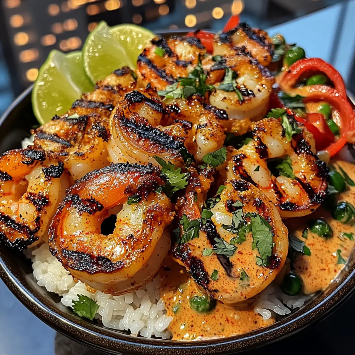 Gegrillte Garnelen-Reisbowls mit süßer Chili-Limettensauce sind ein köstlicher Genuss, der dich an sonnige Tage am Strand erinnert.