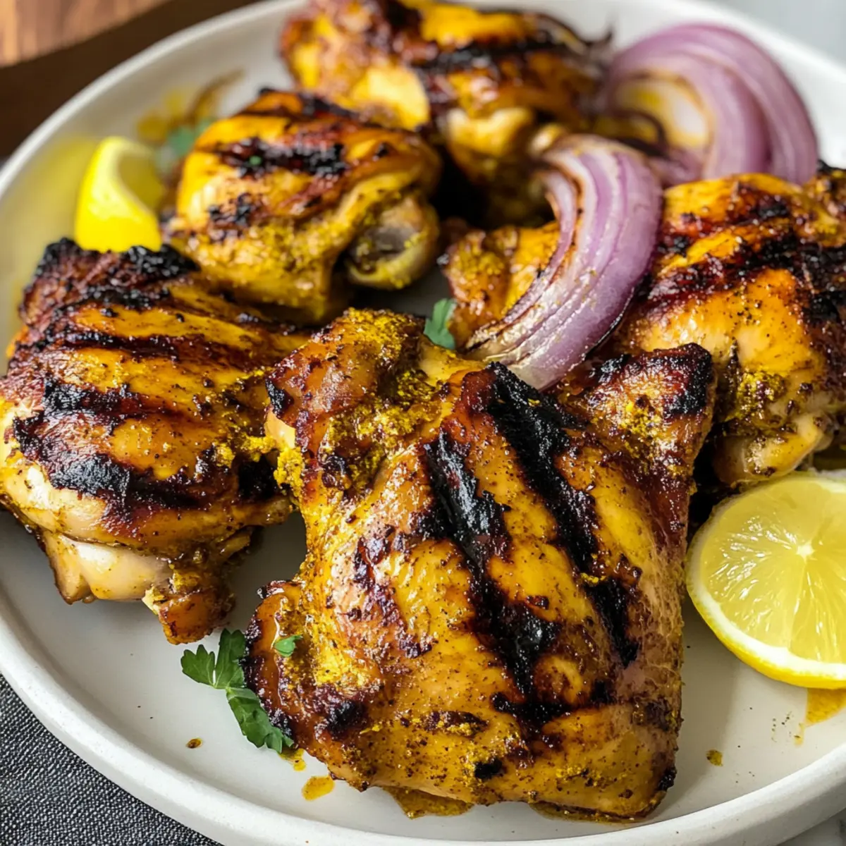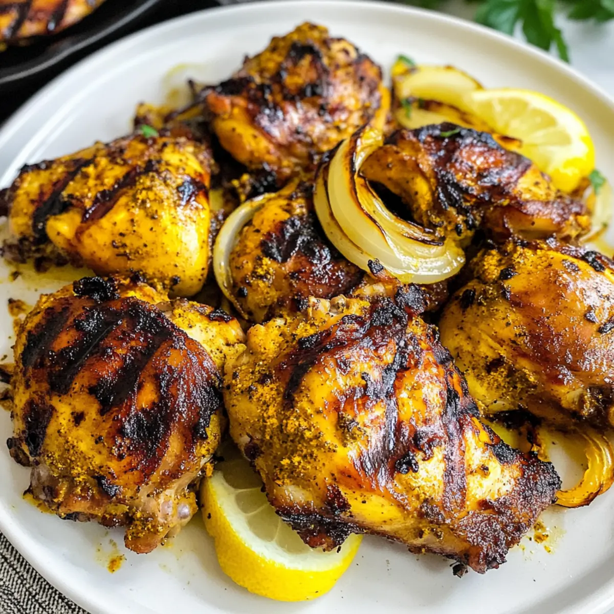 Als ich das erste Mal den herrlichen Duft von gegrilltem Fleisch und Gewürzen wahrnahm, wusste ich sofort, dass ich etwas ganz Besonderes erleben musste. Heute lade ich euch ein, meine gegrillten Kurkuma-Hähnchenschenkel mit einer spritzigen Zitrone-Marinade zu entdecken. Diese saftigen und knusprigen Hähnchenschenkel sind in nur wenigen Schritten zubereitet und bringen sofort ein Stück Mittelmeer-Feeling auf euren Grill. Das Beste daran? Sie sind nicht nur glutenfrei, sondern auch eine wahre Freude für jeden, der eine gesunde Alternative zu Fast Food sucht. Mit der perfekten Balance aus würziger Kurkuma und erfrischendem Zitronensaft, werden diese Hähnchenschenkel euch und eure Gäste begeistern! Seid ihr bereit, eure nächste Grillparty unvergesslich zu machen? Warum sind diese Hähnchenschenkel einzigartig? Einzigartiger Geschmack: Die Kombination aus Kurkuma und frischem Zitr Saft sorgt für einen unvergleichlichen Geschmack, der jeden Gaumen verzaubert. Einfache Zubereitung: Nur wenige Schritte nötig – perfekt für auch unerfahrene Köche! Vielseitig: Die gegrillten Hähnchenschenkel passen hervorragend zu herbigen Couscous oder einem bunten Salat, so ist für jeden etwas dabei. Gesundheitlich wertvoll: Diese glutenfreie Delikatesse bietet eine tolle Alternative zu Fast Food, ideal für ein gesundes Abendessen. Perfekte Grillparty: Mit diesen Hähnchenschenkeln wird jede Grillfeier zu einem kulinarischen Highlight! Gegrillte Kurkuma-Hähnchenschenkel Zutaten Hinweis: Diese Zutatenliste ist perfekt, um die köstlichen gegrillten Kurkuma-Hähnchenschenkel zuzubereiten. Für das Marinieren Hähnchenschenkel – Hauptprotein; saftig und perfekt zum Grillen. Kurkuma – Schlüsselgewürz; sorgt für einen würzigen Geschmack und leuchtende Farbe. Curry-Pulver kann als Ersatz dienen. Safran – Verbessert Aroma und Farbe; eine Prise Kurkuma kann als einfache Alternative verwendet werden. Zitronensaft – Bietet Frische und balanciert die Aromen; frisch ist am besten. Olivenöl – Für eine zarte Textur und Reichtum; Avocadoöl ist eine tolle Alternative für hohe Temperaturen. Knoblauch – Für aromatischen Geschmack; frisch verwenden oder durch Knoblauchpulver ersetzen (½ TL pro Zehe). Zwiebel – Erzeugt Süße beim Grillen; keine direkte Alternative, aber Schalotten können verwendet werden. Chili-Flocken – Fügt Schärfe hinzu; nach Belieben anpassen oder weglassen. Step-by-Step Instructions für Gegrillte Kurkuma-Hähnchenschenkel mit Zitrone Step 1: Hähnchen marinieren In einer Schüssel das Kurkuma, den Safran, den Zitronensaft, das Olivenöl, den gehackten Knoblauch, die geschnittenen Zwiebeln und die Chiliflocken gut verrühren. Die Hähnchenschenkel hinzugeben und sicherstellen, dass sie gleichmäßig mit der Marinade bedeckt sind. Lassen Sie das Hähnchen mindestens 30 Minuten marinieren, idealerweise bis zu 2 Stunden oder über Nacht im Kühlschrank. Step 2: Grill vorheizen Heizen Sie den Grill auf mittelhohe Temperatur vor, etwa 200-230 °C. Achten Sie darauf, dass der Grill gleichmäßig erhitzt ist, um ein optimales Grillergebnis zu erzielen. Überprüfen Sie die Hitze, indem Sie Ihre Hand über den Grillrost halten; spüren Sie die Wärme, können Sie mit dem Grillen beginnen. Step 3: Hähnchen grillen Nehmen Sie die Hähnchenschenkel aus der Marinade und lassen Sie überschüssige Marinade abtropfen. Legen Sie die Hähnchenschenkel mit der Hautseite nach unten auf den Grill und grillen Sie sie für 5-7 Minuten, bis sie eine goldene Farbe haben. Verwenden Sie Grillzangen, um das Hähnchen vorsichtig zu wenden, und grillen Sie die andere Seite weitere 5-7 Minuten, bis die Innentemperatur 74 °C erreicht. Step 4: Ruhen lassen und servieren Nehmen Sie die gegrillten Kurkuma-Hähnchenschenkel vom Grill und lassen Sie sie 5 Minuten ruhen. Dies hilft, die Säfte zu versiegeln und das Hähnchen noch saftiger zu machen. Servieren Sie die Hähnchenschenkel mit Ihrer Wahl an Beilagen, wie z.B. einem bunten Salat oder herby Couscous. Variationen für gegrillte Kurkuma-Hähnchenschenkel Entdecke, wie du dieses Rezept ganz nach deinem Geschmack anpassen kannst! Lass deiner Kreativität freien Lauf und genieße die Vielfalt der Aromen. Dairy-Free: Ersetze Olivenöl durch Kokosöl für einen leicht süßlichen Geschmack. Schärfer: Füge frische Jalapeños oder Habaneros zur Marinade hinzu, um einen intensiveren Kick zu erzielen. Bunt: Ergänze deine Grillplatte mit bunten Paprika oder Zucchini, die du parallel mit grillen kannst. Mediterran: Mische in die Marinade frische Kräuter wie Thymian oder Oregano für eine aromatische Note. Kreolisch: Füge Cajun-Gewürze zur Marinade hinzu, um eine südliche Würze zu erhalten. Das bringt ein ganz neues Geschmackserlebnis. Zitrusfrüchte: Tausche Zitronensaft gegen Limetten- oder Orangensaft aus und erlebe eine fruchtige Wendung. Nussig: Ergänze die Marinade mit etwas Erdnussbutter, um eine cremige Tiefe zu erreichen – perfekt für eine asiatische Note. Süß: Ein Spritzer Honig oder Ahornsirup in der Marinade sorgt für einen köstlichen süßlichen Kontrast zur Schärfe – perfekt, um die Aromen zu balancieren. Diese Variationen bringen nicht nur Abwechslung in deine Grillroutine, sondern erweitern auch deine kulinarischen Möglichkeiten. Denke daran, besonders frische Zutaten zu verwenden und deinen Grillspaß mit anderen zu teilen, indem du ein paar deiner Lieblingsbeilagen wie herbigen Couscous oder einen frisch zubereiteten Salat dazu reichst! Vorbereitung für die Gegrillten Kurkuma-Hähnchenschenkel Diese gegrillten Kurkuma-Hähnchenschenkel sind perfekt für die Vorbereitung, um euch Zeit an hektischen Abenden zu sparen! Ihr könnt die Marinade bis zu 24 Stunden im Voraus zubereiten und die Hähnchenschenkel darin im Kühlschrank einlegen, damit die Aromen wunderbar durchziehen. Um die Qualität zu bewahren, empfehle ich, die Marinade in einem luftdichten Behälter oder einem Zip-Beutel aufzubewahren, sodass nichts