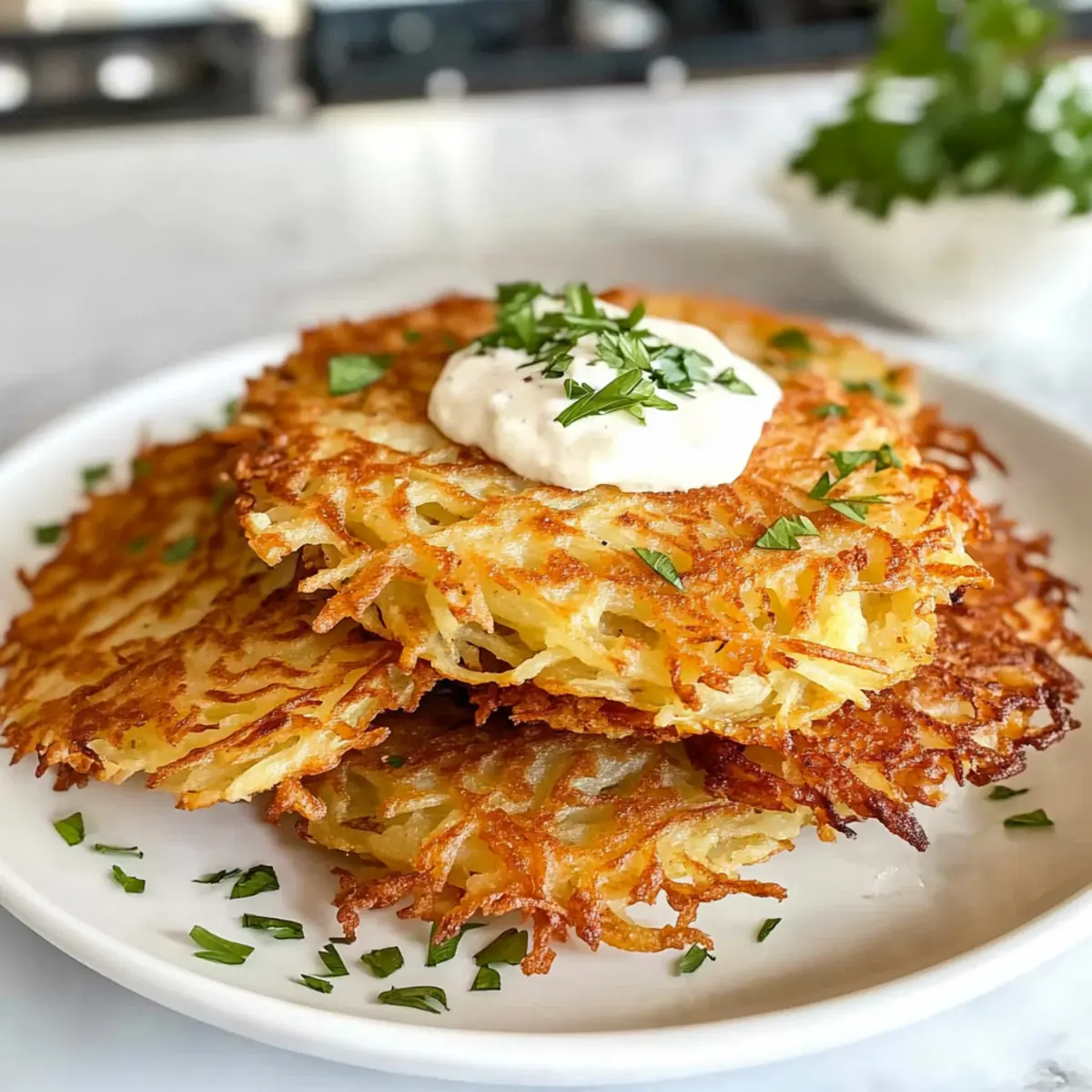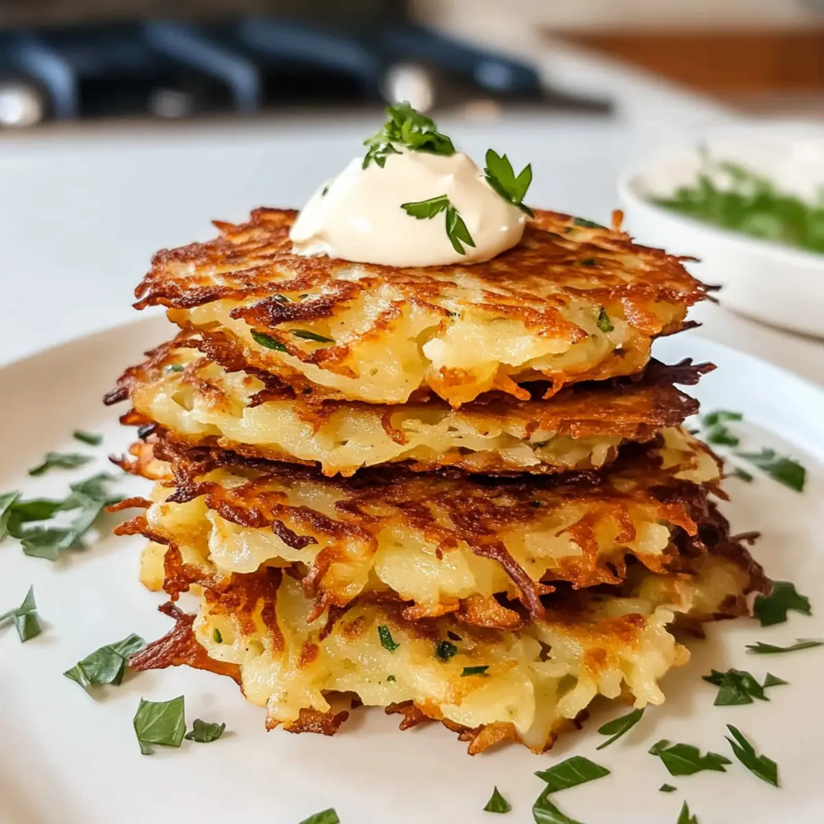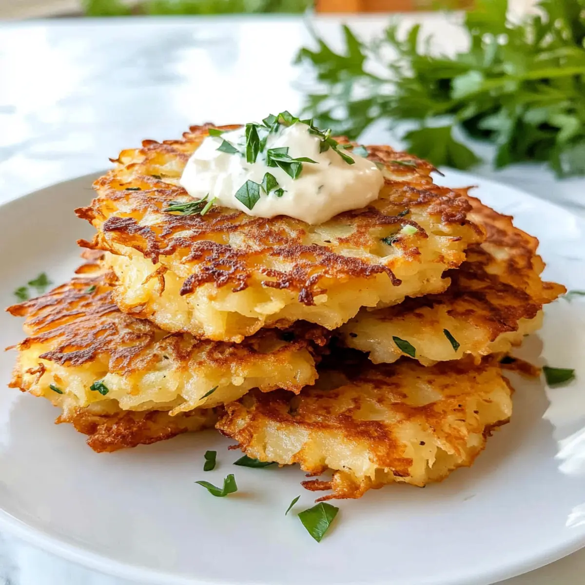 Die knusprigen, geriebenen Kartoffelpuffer haben für mich immer etwas Magisches – wenn der Duft von bratenden Kartoffeln durch die Küche zieht, kann ich einfach nicht widerstehen. In nur 20 Minuten zauberst du diese köstlichen Comfort-Food-Leckereien, die nicht nur als Snack, sondern auch als leichtes Hauptgericht oder Beilage überzeugen. Die perfekte Kombination aus goldbrauner Kruste und weichem Inneren macht sie so vielseitig, dass sie mit Dips wie Tahini oder Ricotta noch besser zur Geltung kommen. Warum sich mit Fastfood zufrieden geben, wenn du diese einfachen und schnell zubereiteten Kartoffelpuffer genießen kannst? Lass uns gemeinsam herausfinden, wie du deine Gäste beeindrucken und sie mit diesem vegetarischen Gericht glücklich machen kannst! Warum sind diese Kartoffelpuffer ein Hit? Einfache Zubereitung: Die meisten Zutaten hast du wahrscheinlich bereits zu Hause und die Zubereitung dauert nur 20 Minuten. Köstlicher Geschmack: Die Kombination aus Kartoffeln, Zwiebeln und Gewürzen erzeugt ein Geschmackserlebnis, das du nicht vergessen wirst. Vielseitig einsetzbar: Genießen als Snack, Hauptgericht oder Beilage, ergänzt durch Dips wie Tahini oder Ricotta. Gesund und nahrhaft: Mit nur etwa 159 Kalorien pro Puffer sind sie leicht und dennoch sättigend. Gemütlich und befriedigend: Perfekt für gesellige Anlässe, um Familie und Freunde zu beeindrucken. Probier diese erprobte Rezeptur aus und bringe mehr Freude in deine Küche! Geriebene Kartoffelpuffer Zutaten • Bereite dich vor, diese köstlichen, geriebenen Kartoffelpuffer zu zaubern! Für den Teig Kartoffeln – Hauptzutat, die Struktur und Konsistenz bringt; am besten geschält und gerieben verwenden. Zwiebel – verbessert den Geschmack; kann durch Lauch oder Schalotten ersetzt werden, um einen milderen Geschmack zu erzielen. Mehl – bindet die Zutaten; reguläres oder Dinkelmehl eignet sich gut; glutenfreies Mehl kann für spezielle Ernährungsbedürfnisse verwendet werden. Knoblauchpulver – verleiht Tiefe; frischer Knoblauch ist ebenfalls möglich, aber die Menge muss nach Geschmack reduziert werden. Getrockneter Thymian – sorgt für ein aromatisches Aroma; kann durch getrocknete Petersilie, Rosmarin oder Salbei ersetzt werden. Backpulver – sorgt für eine leichte Konsistenz; stelle sicher, dass es frisch ist. Eigelb – wirkt als Bindemittel, das Feuchtigkeit spendet; für eine vegane Alternative verwende ein Leinsamenei (1 EL gemahlene Leinsamen gemischt mit 2,5 EL Wasser). Salz & schwarzer Pfeffer – schmeckt das Gericht ab; je nach Vorliebe anpassen. Olivenöl – zum Braten, um knusprige Puffer zu erhalten; kann für einen anderen Geschmack durch Avocadoöl ersetzt werden. Dip-Optionen Tahini – eine köstliche, cremige Ergänzung, die das Gericht bereichert. Ricotta – ein frischer, milder Dip, der die Fritters perfekt komplementiert. Sauerrahm oder Joghurtsauce – bieten weitere köstliche Optionen, die die Aromen verstärken. Schritt-für-Schritt-Anleitung für Geriebene Kartoffelpuffer Step 1: Kartoffeln und Zwiebel reiben Beginne damit, die geschälten Kartoffeln und die Zwiebel mit einer großen Reibe zu reiben. Dies gibt dir die ideale Konsistenz für die Geriebenen Kartoffelpuffer. Du solltest etwa 3-4 mittelgroße Kartoffeln verwenden, um eine gute Menge zu erzielen. Achte darauf, dass du genügend Platz in einer großen Schüssel für die Mischung hast. Step 2: Flüssigkeit abgießen Lege die geriebenen Kartoffeln und die Zwiebel in ein sauberes Geschirrtuch. Ziehe die Ecken zusammen und drehe das Tuch, um die überschüssige Flüssigkeit über der Spüle auszupressen. Dies ist ein wichtiger Schritt, um sicherzustellen, dass die Kartoffelpuffer knusprig werden und nicht auseinanderfallen. Achte darauf, so viel Flüssigkeit wie möglich zu entfernen. Step 3: Teigmischung zubereiten In einer großen Schüssel vermengst du die abgetropften Kartoffeln und Zwiebel mit Mehl, Knoblauchpulver, getrocknetem Thymian, Backpulver, Eigelb, Salz und Pfeffer. Rühre die Zutaten gut um, bis sie gleichmäßig verteilt sind und eine homogene Masse bilden. Diese Mischung ist die Basis für deine Geriebenen Kartoffelpuffer und sollte gut zusammenhalten. Step 4: Öl erhitzen Erhitze in einer großen Pfanne bei mittlerer Hitze etwa 3-4 Esslöffel Olivenöl. Du kannst das Öl durch Avocadoöl ersetzen, wenn du einen anderen Geschmack erzielen möchtest. Achte darauf, dass das Öl heiß genug ist, bevor du die Masse hinzufügst, damit die Puffer knusprig werden. Step 5: Pufferformung Gib mit einem Esslöffel 3-4 Esslöffel der Puffer-Mischung in die heiße Pfanne. Drücke die Mischung leicht mit einem Spatel herunter, um die Puffer zu formen und sie gleichmäßig flach zu machen. Dies sorgt dafür, dass sie gleichmäßig garen. Es ist wichtig, genügend Platz zwischen den Puffern zu lassen, damit sie nicht aneinanderhaften. Step 6: Puffer braten Brate die Geriebenen Kartoffelpuffer 3-4 Minuten lang auf einer Seite, bis sie goldbraun sind. Überprüfe gelegentlich die Unterseite, um sicherzustellen, dass sie nicht verbrennen. Wenn sie zu schnell braun werden, reduziere die Hitze, um eine gleichmäßige Garung zu garantieren und kontrolliere das Bräunungsniveau. Step 7: Wenden und fertig braten Wende die Kartoffelpuffer vorsichtig mit einem Spatel um und brate die andere Seite ebenfalls für 3-4 Minuten, bis sie goldbraun und knusprig sind. Achte darauf, dass die Hitze konstant bleibt, um ein gleichmäßiges Ergebnis zu gewährleisten. Die perfekte Textur erreicht man, wenn sie außen knusprig und innen leicht fluffig sind. Step 8: Abtropfen lassen Wenn die Geriebenen Kartoffelpuffer fertig sind, lege sie auf ein Küchenpapier, um überschüssiges Öl abzutropfen. Dies gibt ihnen die nötige Knusprigkeit und sorgt dafür, dass sie nicht ölig werden. Wiederhole dies mit dem restlichen Teig und serviere die warmen Puffer möglichst frisch für das beste Geschmackserlebnis. Vorbereiten der Geriebenen Kartoffelp
