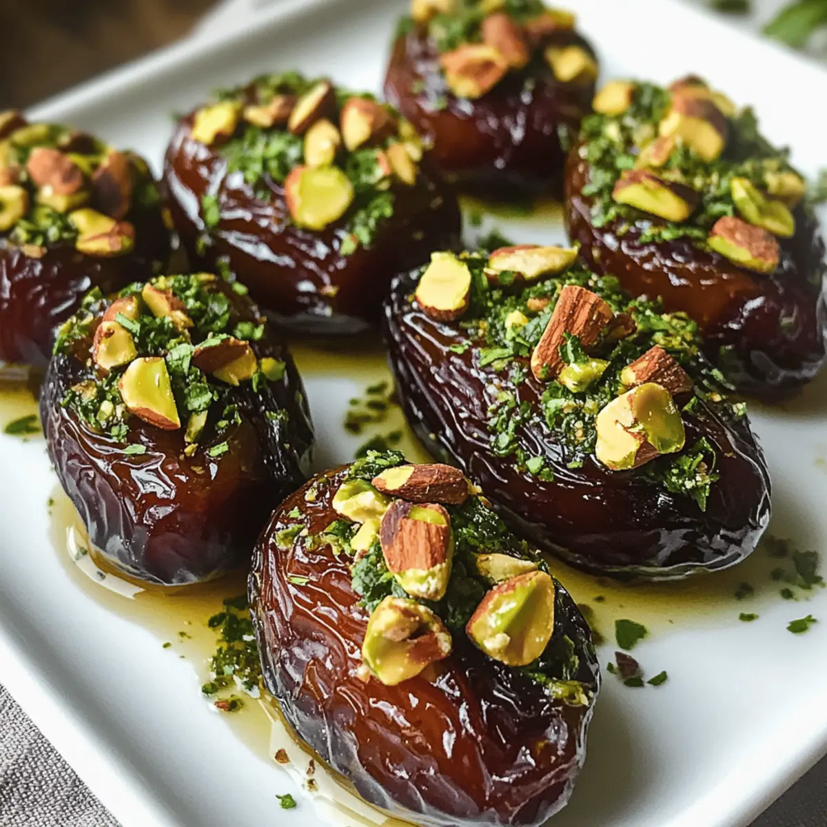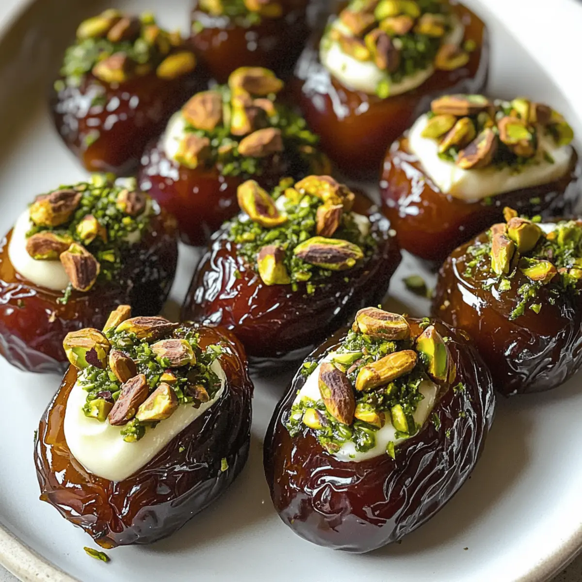 Die knisternde Vorfreude erfüllt die Luft, als ich die frisch gerösteten Datteln aus dem Ofen ziehe. Sie glänzen goldbraun, gefüllt mit cremigem Boursin und überstreut mit knackigen Pistazien – ein festliches Highlight, das meine Gäste sofort in seinen Bann zieht. Diese gerösteten Boursin gefüllten Datteln mit Pistazien sind nicht nur ein eleganter Appetitanreger, sondern auch ein schnelles Rezept, das sowohl glutenfrei als auch vegetarisch ist. Perfekt für jeden Anlass, bringen die süßen Datteln eine harmonische Balance zwischen süß und würzig auf den Tisch. Ein Genuss, der die Geschmacksknospen zum Tanzen bringt und das Herz erwärmt. Wer könnte diesen Köstlichkeiten widerstehen? Lass uns gemeinsam in die Zubereitung eintauchen und entdecken, wie einfach es ist, ein Stück Luxus in die heimische Küche zu bringen! Warum sind diese Datteln so besonders? Süße Harmonie: Diese gerösteten Boursin gefüllten Datteln bieten die perfekte Balance aus Süße und Würze, die jeden Gaumen verzaubern wird. Einfache Zubereitung: Mit nur wenigen Zutaten und einfacher Zubereitung gelingen dir diese eleganten Häppchen im Handumdrehen. Vielseitigkeit: Variiere die Füllung mit verschiedenen Boursin-Sorten oder füge frische Kräuter hinzu, um dein ganz persönliches Geschmacksprofil zu erstellen. Ideale Präsentation: Die goldbraunen Datteln sind nicht nur köstlich, sondern auch ein echter Blickfang auf jedem Tisch. Perfekt für Anlässe: Ob Dinnerpartys oder Feiertagsessen – diese Appetizer sind stets ein Hit bei deinen Gästen! Geröstete Boursin gefüllte Datteln Zutaten • Entdecke die köstlichen Zutaten für ein unvergessliches Erlebnis! Für die Füllung • Medjool Datteln – Sorgen für die perfekte Süße und Struktur; achte darauf, frische, saftige Datteln ohne Risse zu wählen. • Boursin Käse – Bietet Cremigkeit und einen intensiven Geschmack; der Knoblauch & Kräuter-Geschmack ist besonders empfehlenswert, kann aber auch durch eine Mischung aus Frischkäse und Kräutern ersetzt werden. • Gehackte Pistazien – Fügen einen knusprigen Biss und nussigen Geschmack hinzu; frische Röster sind am besten, aber Walnüsse oder Mandeln sind ebenfalls köstliche Alternativen. Für die Zubereitung • Olivenöl – Verbessert das Rösten und liefert gesunde Fette; ein leichtes Drizzle verstärkt den Geschmack. • Honig (optional) – Für zusätzliche Süße und Raffinesse; verwende besten rohen Honig für den besten Geschmack. • Meersalz (zum Bestreuen) – Balanciert die Süße der Datteln und die Fülle des Käses und sorgt für einen harmonischen Genuss. Diese gerösteten Boursin gefüllten Datteln mit Pistazien sind nicht nur einfach zuzubereiten, sondern bringen auch das Gefühl von Luxus auf deinen Tisch! Schritt-für-Schritt-Anleitung für Geröstete Boursin gefüllte Datteln mit Pistazien Step 1: Ofen vorheizen Heize deinen Ofen auf 190°C vor. Dies ist eine wichtige Vorbereitung, um sicherzustellen, dass die Datteln gleichmäßig garen und goldbraun werden. Während der Ofen vorheizt, kannst du bereits die Datteln vorbereiten, damit alles reibungslos abläuft. Step 2: Datteln vorbereiten Nehme die Medjool Datteln und schneide jede Dattel der Länge nach auf, ohne sie ganz durchzuschneiden. Entferne die Kerne vorsichtig, um Platz für die cremige Boursin-Füllung zu schaffen. Achte darauf, frische und saftige Datteln zu wählen, die dir die beste Textur bieten. Step 3: Füllung zubereiten In einer Schüssel kombinierst du 225 g (8 oz) weichen Boursin-Käse mit 120 ml (½ Tasse) gehackten Pistazien. Wenn du möchtest, füge einen Esslöffel Honig hinzu, um die Cremigkeit und den Geschmack zu intensivieren. Mische alles gründlich, bis eine homogene Füllung entsteht. Step 4: Datteln füllen Fülle jede Dattel großzügig mit der Käse-Pistazien-Mischung. Achte darauf, die Datteln nicht zu überfüllen, damit sie beim Backen gut zusammenhalten. Bestreue die gefüllten Datteln anschließend mit den reservierten gehackten Pistazien für zusätzlichen Crunch und Geschmack. Step 5: Datteln vorbereiten für das Rösten Lege die gefüllten Datteln auf ein mit Backpapier ausgelegtes Backblech. Sprühe einen Hauch von Olivenöl über die Datteln, um den Rösteffekt zu verstärken und ihnen zusätzliches Aroma zu verleihen. Stelle sicher, dass die Datteln genügend Platz haben, damit sie gleichmäßig garen. Step 6: Datteln rösten Backe die Datteln im vorgeheizten Ofen für 15–20 Minuten, bis sie goldbraun sind und der Käse leicht blubbert. Behalte die Datteln während des Backens im Auge, um zu vermeiden, dass sie verbrennen, und genieße den köstlichen Duft, der durch deine Küche zieht. Step 7: Servieren Nehme die gerösteten Boursin gefüllten Datteln aus dem Ofen und lasse sie kurz abkühlen. Serviere sie warm, eventuell garniert mit frischen Kräutern oder zusätzlichen Pistazien, um den Anblick zu vervollständigen. Diese köstlichen Häppchen sind perfekt für jedes festliche Event! Variationen & Alternativen für Geröstete Boursin gefüllte Datteln Lass deiner Kreativität freien Lauf und passe dieses Rezept nach deinem Geschmack an! Jeder Biss kann ein neues Erlebnis sein. Dairy-Free: Ersetze den Boursin Käse mit einer veganen Käsealternative, um die Datteln tierfreundlich zu machen. So bleibt der cremige Genuss erhalten. Würzig: Füge eine Prise Cayennepfeffer oder einige Chiliflocken in die Füllung hinzu, um den Datteln eine feurige Note zu verleihen. Ein kleiner Kick für Abenteurer! Nuss-Freundlich: Ersetze die Pistazien durch Sonnenblumenkerne, um eine nussfreie Variante zu erhalten. Sie verleihen trotzdem einen schönen Crunch. Apfel-Cranberry-Füllung: Misch eine gehackte getrocknete Cranberry und kleine Apfelstückchen unter die Füllung für eine fruchtige Süße. Perfekt für den Herbst! Balsamico-Glasur: Serviere die Datteln mit einem Schuss Balsamico-Glasur für extra Tiefe und einen Hauch von Säure. Das bringt das Geschmacksprofil zu