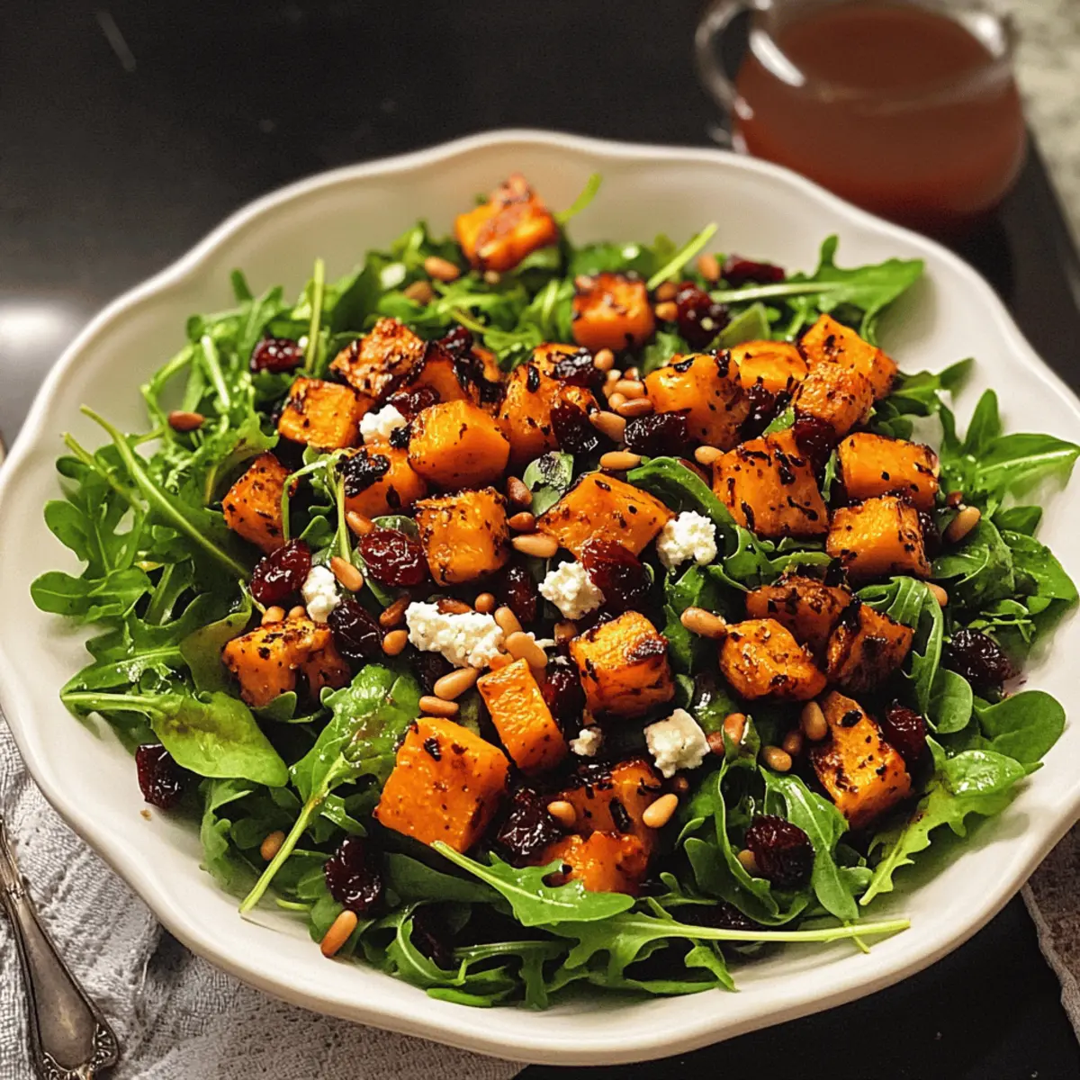 • Frische Zutaten: Verwenden Sie frisches Grünzeug für den besten Geschmack; älteres Gemüse kann den Salat schlaff machen und die Süße des Kürbisses überdecken.