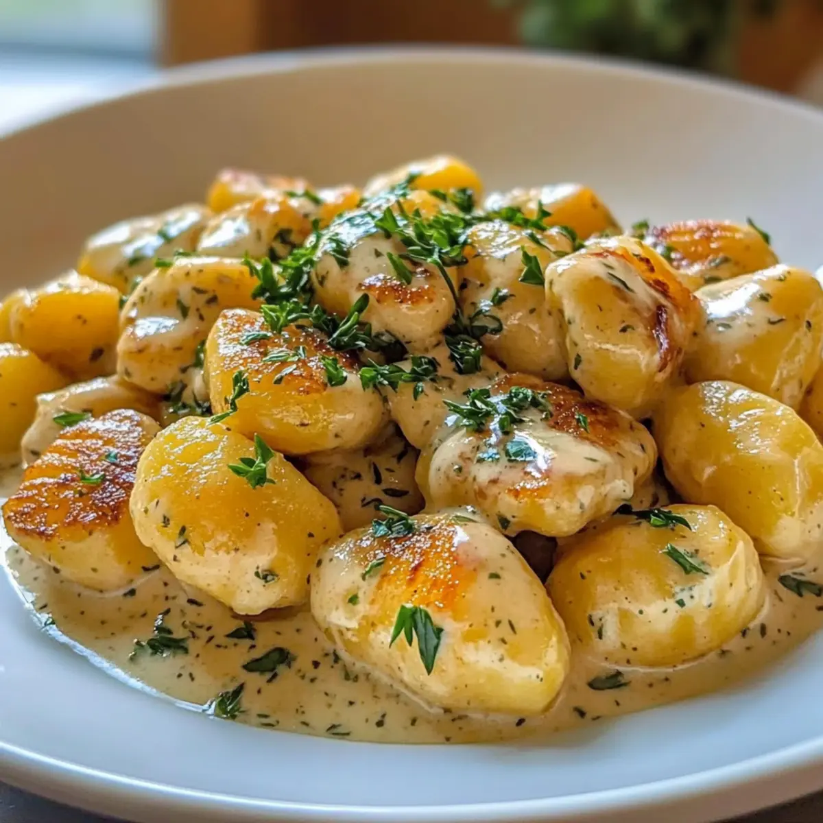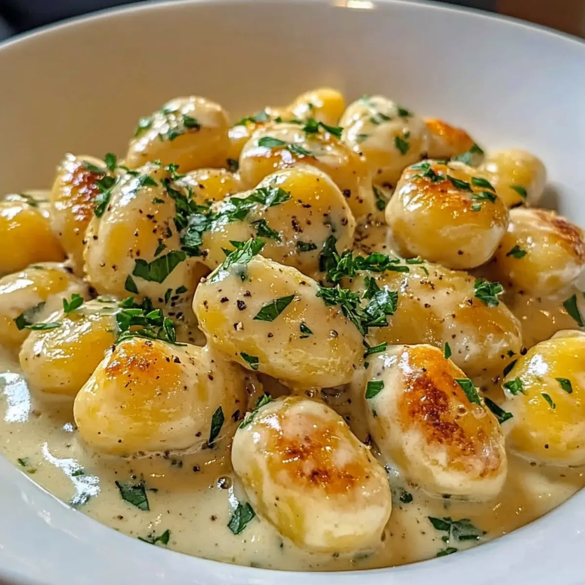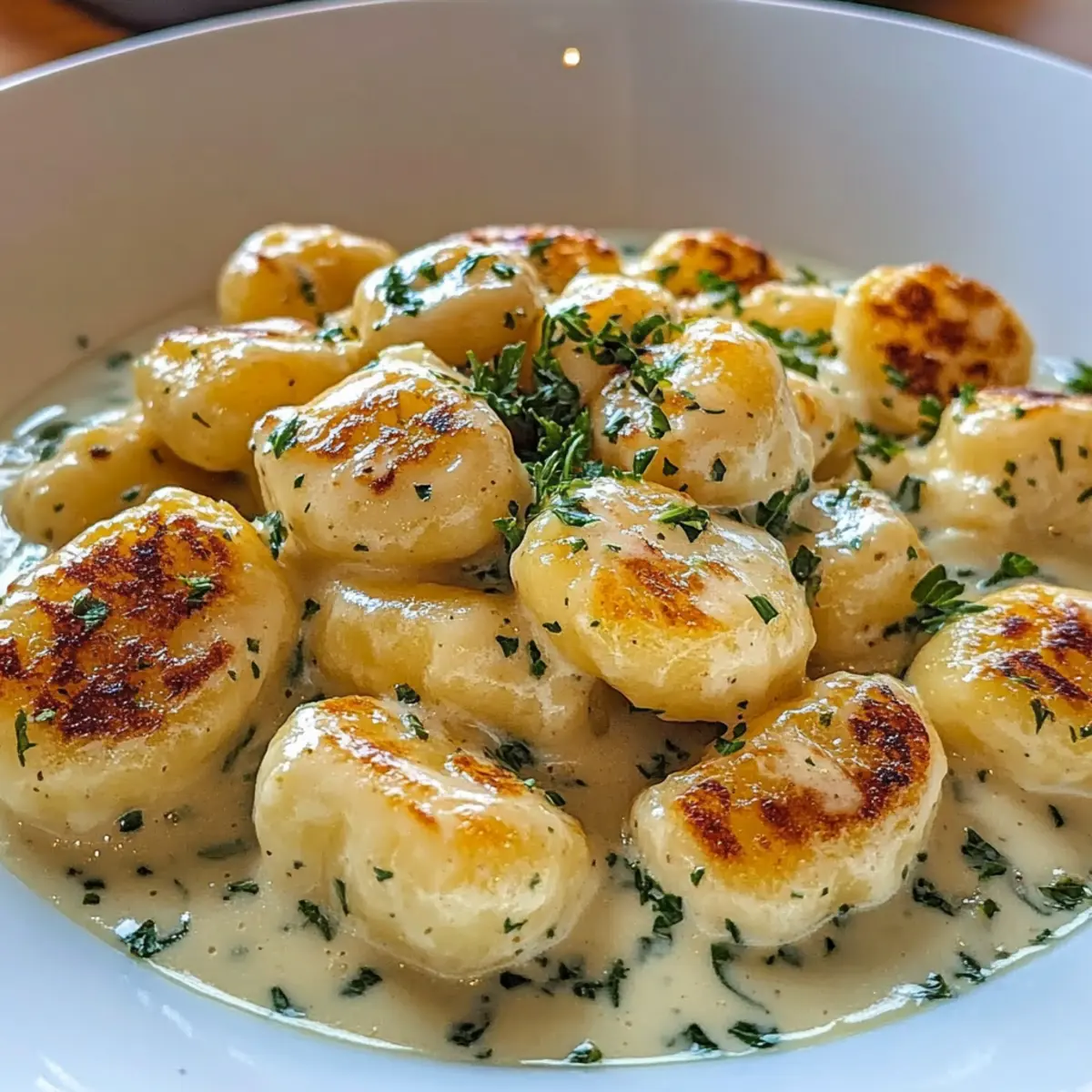 Es gibt Tage, da möchte ich einfach in die Küche springen und mir mit wenig Aufwand ein Highlight zaubern. Das ist der perfekte Moment für gnocchi mit cremiger Sauce – ein Gericht, das sofort ein Lächeln auf dein Gesicht zaubert. Diese millionenschweren kleinen Kartoffel-Pilze vereinen sich mit einer reichhaltigen, samtigen Soße, die einfach himmlisch schmeckt. Das Beste daran? Diese köstliche Mahlzeit ist schnell zubereitet und sorgt für ein wohliges Gefühl wie in einem feinen Restaurant, ohne dass du stundenlang am Herd stehen musst. Wenn du auf der Suche nach einem vegetarischen Comfort Food bist, das den Alltag aufpeppt, bleib unbedingt dran! Hast du schon mal über den extra Hauch von Luxus nachgedacht, den ein bisschen Trüffelöl mit sich bringt? Warum werden Sie dieses Rezept lieben? Einfachheit pur: Die Zubereitung ist kinderleicht und benötigt nur wenige Zutaten, sodass du im Handumdrehen genießen kannst. Reichhaltiger Geschmack: Die Kombination aus Parmesan und Trüffelöl verleiht dieser Soße eine luxuriöse Note, die deine Geschmacksknospen verwöhnt. Wohlfühlessen: Mit seinen zarten Gnocchi und der cremigen Soße ist jedes Biss ein Stückchen Komfort, das dich an deine Lieblingsitaliener erinnert. Vielseitigkeit: Du kannst ganz nach Belieben zusätzlich Gemüse oder Proteine integrieren, wie in unseren Variationstipps. Crowd-Pleaser: Egal, ob für das Dinner mit Freunden oder ein romantisches Abendessen, dieses Rezept wird alle begeistern und für Komplimente sorgen! Zutaten für Gnocchi mit cremiger Sauce • Mach dich bereit für die cremigen Lieblingszutaten! 500 g Kartoffelgnocchi – Bilden die Basis des Gerichts und bieten eine zufriedenstellende, zähe Textur. 2 Esslöffel ungesalzene Butter – Sorgt für Reichtum und hilft beim Anbraten des Knoblauchs. 2 Knoblauchzehen, gehackt – Verleiht der Soße ein aromatisches Aroma. 1 Tasse Schlagsahne – Kreiert eine reiche, cremige Soße, die perfekt zu den Gnocchi passt. 1/2 Tasse geriebener Parmesan – Verstärkt den Geschmack und verdickt die Soße; perfekt für Gnocchi mit cremiger Sauce. 1/4 Tasse frisch gehackte Petersilie – Fügt Frische und Farbe als Garnitur hinzu. 1 Esslöffel Trüffelöl – Verleiht einen luxuriösen, tiefen Geschmack. Salz und schwarzer Pfeffer nach Geschmack – Essentiell für die Würze und zur Geschmacksverstärkung. Schritt-für-Schritt-Anleitung für Gnocchi mit cremiger Sauce Step 1: Gnocchi kochen Bringe einen großen Topf mit gesalzenem Wasser zum Kochen und gib die Kartoffelgnocchi hinein. Koche sie gemäß den Anweisungen auf der Verpackung, bis sie an die Oberfläche steigen, was in der Regel etwa 2-3 Minuten dauert. Sobald die Gnocchi fertig sind, lasse sie gründlich abtropfen und stelle sie beiseite. Step 2: Butter und Knoblauch anbraten Erhitze in einer großen Pfanne bei mittlerer Hitze die ungesalzene Butter. Wenn die Butter geschmolzen ist und leicht schäumt, füge den gehackten Knoblauch hinzu und brate ihn für etwa 1-2 Minuten an, bis er goldbraun und aromatisch ist. Achte darauf, dass der Knoblauch nicht verbrennt, da er sonst bitter wird. Step 3: Sauce zubereiten Reduziere die Hitze und gieße die Schlagsahne in die Pfanne mit dem Knoblauch. Lass die Mischung sanft köcheln, dabei gelegentlich umrühren, bis sie anfängt, leicht einzudicken – das dauert etwa 3-4 Minuten. Füge nach Belieben den geriebenen Parmesan hinzu und rühre ihn gut unter, bis die Sauce cremig und homogen ist. Step 4: Gnocchi in die Sauce geben Gib die abgetropften Gnocchi in die cremige Sauce hinein und verwende zwei Gabeln oder einen großen Löffel, um die Gnocchi vorsichtig zu wenden und gleichmäßig mit der Sauce zu bedecken. Lasse sie zusammen kurz bei schwacher Hitze stehen, damit die Gnocchi die Aromen saugen können, etwa 1-2 Minuten. Step 5: Anrichten und servieren Nimm die Pfanne vom Herd und träufle das Trüffelöl über die Gnocchi mit cremiger Sauce. Schmecke das Gericht mit Salz und frisch gemahlenem schwarzem Pfeffer ab. Gib die Gnocchi auf Teller oder in eine große Servierschüssel, garniere sie mit frisch gehackter Petersilie und genieße sie sofort, während sie schön warm sind. Meal Prep für Gnocchi mit cremiger Sauce Die Gnocchi mit cremiger Sauce sind ideal für die Vorausplanung von Mahlzeiten! Du kannst die Gnocchi bis zu 3 Tage im Voraus kochen und in einem luftdichten Behälter im Kühlschrank aufbewahren. Auch die cremige Soße lässt sich hervorragend vorbereiten und ist 24 Stunden haltbar, idealerweise in einem separaten Behälter. Achte darauf, die Sauce ohne die Gnocchi zu kochen, um sicherzustellen, dass sie frisch bleibt. Wenn es Zeit zum Servieren ist, erhitze einfach die Sauce in einer Pfanne, füge die Gnocchi hinzu und koche alles zusammen, bis die Gnocchi durchgewärmt sind. So sparst du wertvolle Zeit in der Woche und hast dennoch ein köstliches, cremiges Gericht! Was passt gut zu Gnocchi mit cremiger Sauce? Gönn dir ein vollständiges Mahl, das alle Sinne anspricht, während du das köstliche Gnocchi-Gericht genießt. Frischer Fennelsalat: Knackige Texturen und leicht süßliche Aromen ergänzen die Cremigkeit der Soße perfekt. Eine frische Note, die den Gaumen belebt. Geröstetes Baguette: Ideal zum Dippen und aufnehmen der reichhaltigen Soße. Die knusprige Kruste bietet einen köstlichen Kontrast zur zarten Textur der Gnocchi. Steamed Broccoli: Die sanfte Bitterkeit des Brokkolis balanciert die reichhaltige Sauce und bringt Farbe auf den Teller. Kümmere dich um dein Gemüse auf schmackhafte Art. Pesto-Tomaten-Salat: Eine Kombination aus frischen Tomaten und aromatischem Pesto, der die Cremigkeit der Gnocchi wunderbar ausgleicht. Ein Hauch von Italien, der das Ganze rund macht. Zitronenlimonade: Ein erfrischendes Getränk mit einem Spritzer Zitrone kann die Fülle der Mahlzeit auflockern und deinem Gaumen eine angenehme Belebung bieten. Tiramisu: Beende dein Dinner mit einem Stück Himmel auf Erden! Die luftige Süße und der