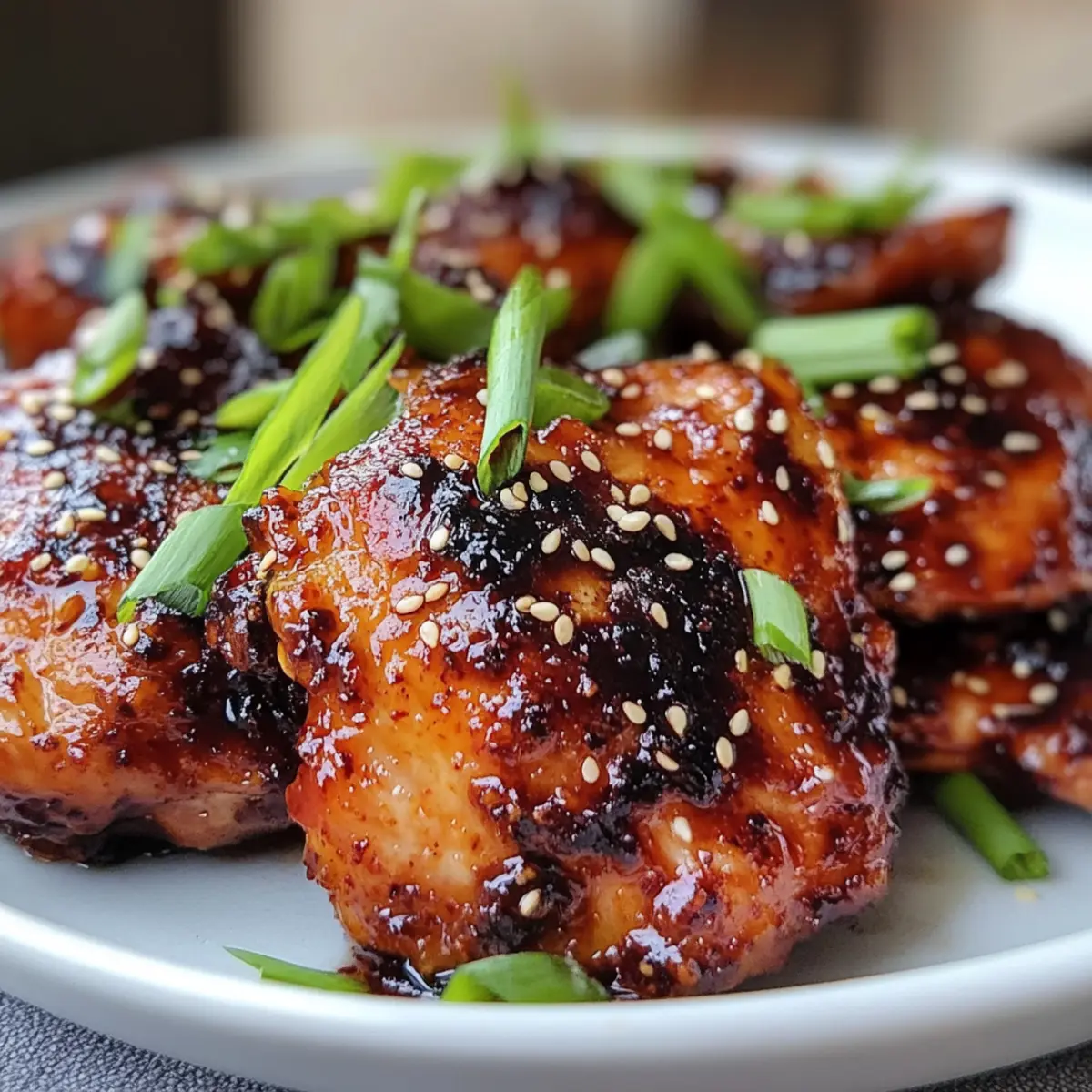 Der würzige Duft von Gochujang Chicken dringt durch die Küche, als ich die ersten Zutaten vorbereite. In nur 30 Minuten zaubert dieses Rezept ein köstliches Gericht auf den Tisch, das nicht nur die Geschmacksnerven erfreut, sondern auch ganz einfach zu machen ist. Die Kombination aus zarten Hähnchenschenkeln und der unverwechselbaren, klebrigen Glasur aus süßem und scharfem koreanischem Chili-Paste macht das Gochujang-Hähnchen zu einem echten Publikumsliebling. Es ist perfekt für ein schnelles Abendessen unter der Woche oder wenn Freunde zu Besuch sind – eine köstliche Abwechslung zu den üblichen Gerichten! Bist du bereit, diesen geschmacklichen Hochgenuss zu entdecken und deine Lieben zu überraschen? Warum wirst du dieses Rezept lieben? Einfachheit: Das Rezept erfordert nur grundlegende Kochfähigkeiten und ist in nur 30 Minuten fertig. Intensiver Geschmack: Die Kombination aus süßem und scharfem Gochujang schafft ein Geschmackserlebnis, das alle begeistert. Flexibilität: Du kannst Hähnchenschenkel durch Gemüse oder Tofu ersetzen, um eine vegetarische Variante zu kreieren. Große Portionen: Ideal für Familientreffen oder eine Runde mit Freunden – sogar die Skeptiker werden um Nachschlag bitten! Gesund und lecker: Mit glutenfreiem Sojasoß kann dieses Gericht für verschiedene Ernährungsbedürfnisse angepasst werden. Wenn du mehr über die Vorteile von Gochujang erfahren möchtest, könnte unser Artikel über koreanische Küche für dich spannend sein. Gochujang-Hähnchen-Zutaten Für das Hähnchen • Hähnchenschenkel – Zarter und saftiger Hauptbestandteil; am besten eignen sich entbeinte, hautlose Schenkel. • Gochujang-Paste – Verleiht das charakteristische süß-pikante Aroma; wähle eine Marke mit wenigen Zusatzstoffen für den besten Geschmack. • Sojasauce – Fügt Tiefe und Salzigkeit hinzu; achte auf glutenfreie Optionen, falls gewünscht. Für die Marinade • Honig/Ahornsirup – Bringt natürliche Süße, die die Schärfe des Gochujang ausgleicht; agaven Sirup kann als vegane Alternative verwendet werden. • Reisessig – Sorgt für die nötige Säure zur Geschmacksanreicherung; kann durch Apfelessig ersetzt werden. • Knoblauch (gehackt) – Für ein tiefes, aromatisches Aroma; frisch gehackter Knoblauch ist am wirkungsvollsten. • Ingwer (frisch gerieben) – Fügt Wärme hinzu und harmoniert perfekt mit der Schärfe des Gochujang. • Sesamöl – Verleiht dem Gericht ein nussiges Aroma und Geschmack; unverzichtbar für Authentizität. Für das Kochen • Neutrales Öl (z.B. Pflanzen- oder Rapsöl) – Zum Braten; verhindert das Anbrennen und sorgt für eine schöne Bräunung. Für die Garnitur • Frühlingszwiebeln (dünn geschnitten) – Für Frische und Crunch; auch grüne Zwiebeln sind eine gute Wahl. • Sesamsamen – Geröstet für die Garnitur; fügt Textur und nussigen Geschmack hinzu. Mit diesen einfachen Zutaten zauberst du dein eigenes köstliches Gochujang-Hähnchen, das nicht nur lecker schmeckt, sondern auch eine aufregende Abwechslung zu herkömmlichen Gerichten bietet! Schritt-für-Schritt-Anleitung für Gochujang-Hähnchen Schritt 1: Marinade zubereiten In einer mittelgroßen Schüssel verrührst du die Gochujang-Paste, Sojasauce, Honig, Reisessig, gehackten Knoblauch und frisch geriebenen Ingwer, bis eine glatte Marinade entsteht. Probiere die Mischung und passe bei Bedarf die Süße und Schärfe an. Diese aromatische Marinade wird die zarten Hähnchenschenkel umhüllen und für einen köstlichen Geschmack sorgen. Schritt 2: Hähnchen marinieren Trockne die Hähnchenschenkel mit einem Küchentuch ab, damit die Marinade besser haften bleibt. Lege die Hähnchenschenkel in die Schüssel mit der Marinade und mische sie gut durch, sodass sie gleichmäßig beschichtet sind. Lasse das Hähnchen mindestens 30 Minuten marinieren, um die Aromen einziehen zu lassen – für einen intensiveren Geschmack kannst du es auch 1–2 Stunden ziehen lassen. Schritt 3: Ofen vorheizen oder Pfanne erhitzen Heize den Ofen auf 200°C (400°F) vor, wenn du das Gochujang-Hähnchen backen möchtest, oder erhitze eine große Pfanne auf mittelhoher Stufe für das Braten. Bei der Ofenmethode belegst du ein Backblech mit Backpapier und legst die marinierten Hähnchenschenkel darauf, inklusive der restlichen Marinade. Schritt 4: Gochujang-Hähnchen backen oder braten Für das Backen lässt du das Hähnchen 18–22 Minuten im Ofen, bis es durchgegart ist und die Ränder leicht angebräunt sind. Alternativ brate die Hähnchenschenkel in der Pfanne 5–7 Minuten pro Seite, bis sie eine karamellisierte Kruste bilden und die Innentemperatur 75°C (165°F) erreicht hat. Achte darauf, dass die Pfanne nicht überfüllt ist, um die Sear zu verbessern. Schritt 5: Hähnchen ruhen lassen und garnieren Nach dem Kochen nimmst du das Hähnchen vom Herd oder aus dem Ofen und lässt es einige Minuten ruhen, damit die Säfte sich setzen können und das Fleisch saftig bleibt. Beträufle das Hähnchen mit Sesamöl und bestreue es mit den dünn geschnittenen Frühlingszwiebeln und gerösteten Sesamsamen für ein zusätzliches Aroma. Schritt 6: Anrichten und servieren Serviere das Gochujang-Hähnchen zusammen mit der Pfannensauce über frisch gedämpftem Reis oder in knackigen Salatblättern. Die Kombination aus süßem, scharfen und herzhaften Aromen wird jedes Dinner zu einem besonderen Erlebnis machen! Was passt gut zu Gochujang-Hähnchen? Lass dich von köstlichen Beilagen inspirieren, die das Geschmackserlebnis deines Gochujang-Hähnchens perfekt abrunden und das Essen zu einem Fest machen. Gedämpfter Reis: Der fluffige Reis nimmt die würzige Sauce auf und harmoniert perfekt mit der süß-scharfen Marinade. Ein Muss für jedes koreanische Gericht! Sautierte Gemüse: Eine Mischung aus Brokkoli, Karotten und Paprika bringt knackige Textur und frische Aromen ins Spiel. Das Gemüse behält seinen Biss und ergänzt die Süße des Huhns wunderbar. Salat in Lattuce-Wraps: Fr