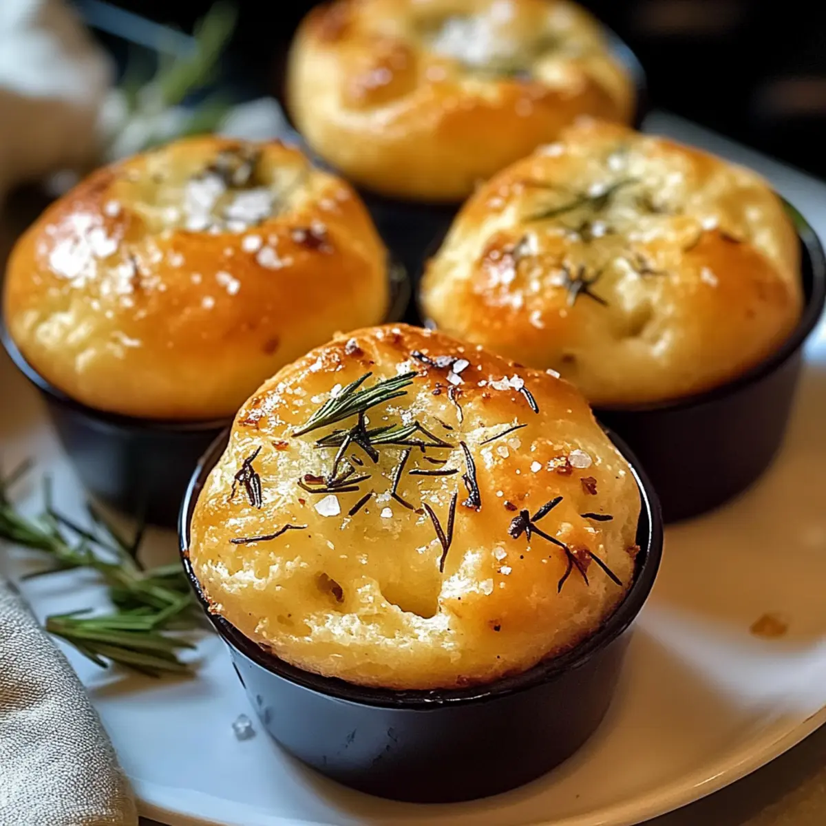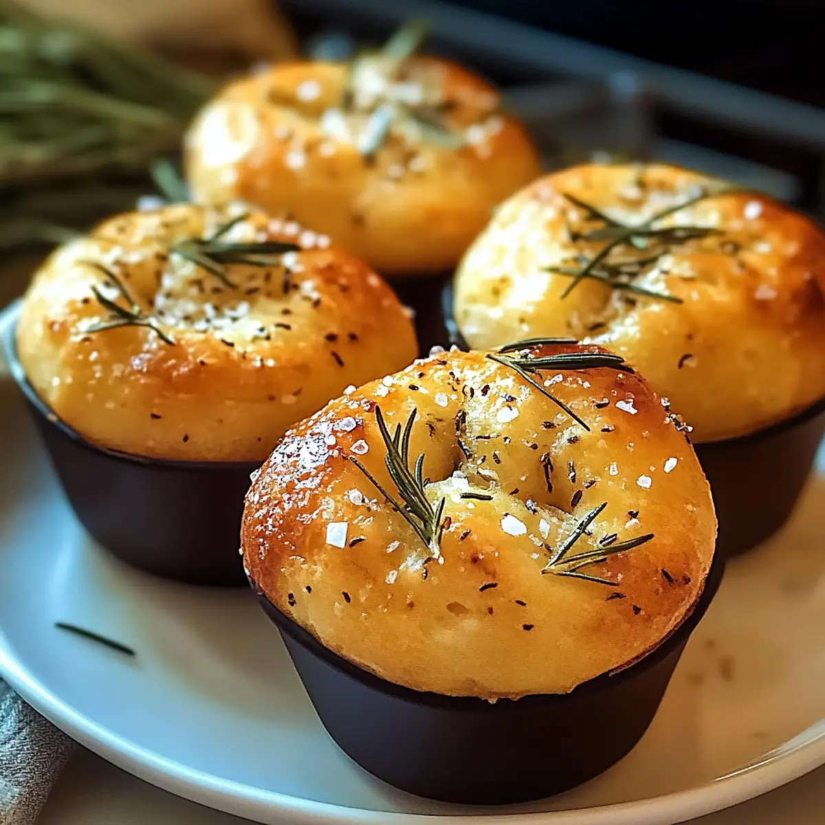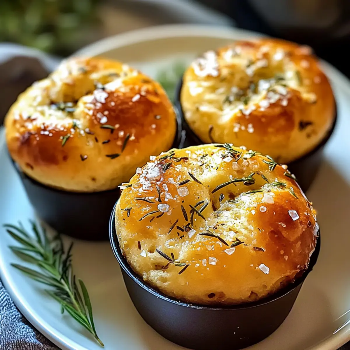 Die Küche duftet nach frischem Brot, und während ich mit dem Teig spiele, überkommt mich der Gedanke: Was wäre, wenn ich die Magie der Focaccia in kleine Muffins verwandeln könnte? Diese Goldene Kruste Knoblauch Rosmarin Focaccia Muffins sind genau das, was ich mir vorgestellt habe – außen knusprig und innen luftig. Sie sind perfekt portioniert und lassen sich wunderbar teilen, was sie zu einem Hit bei jedem Brunch oder Abendessen macht. Und das Beste daran? Die Zubereitung ist kinderleicht dank des No-Knead-Teigs, der über Nacht fermentiert und so intensive Aromen entfaltet. Ob zum Dippen in Olivenöl oder als Beilage zu einer herzhaften Suppe – diese Muffins werden sicherlich zum Star deiner nächsten Mahlzeit. Neugierig, wie du sie selber zubereiten kannst? Lass uns gemeinsam in die Details eintauchen! Warum sollten Sie diese Muffins lieben? Einfachheit: Diese Goldene Kruste Knoblauch Rosmarin Focaccia Muffins sind im Handumdrehen zubereitet, ohne ausgiebiges Kneten! Intensive Aromen: Über Nacht fermentierter Teig sorgt für einen tiefen, herzhaften Geschmack, den Sie lieben werden. Vielseitigkeit: Variieren Sie die Rezeptur nach Belieben, zum Beispiel mit getrockneten Tomaten oder frischen Oliven – Ihrer Kreativität sind keine Grenzen gesetzt! Perfekte Portionierung: Ideal für gesellige Runden, da sie sich leicht teilen lassen, ob beim Brunch oder zum Abendessen. Brauchen Sie eine Ergänzung? Diese Muffins passen hervorragend zu einer frischen Pasta Zitronen Knoblauch oder einem Knoblauch Parmesan Hühnchen. Auf den Punkt gebracht: Der goldene, knusprige Außenrand und die fluffige, aromatische Mitte machen jeden Biss zu einem Erlebnis. Goldene Kruste Knoblauch Rosmarin Focaccia Muffins Zutaten Für den Teig Allzweckmehl – Gibt den Muffins Struktur; ersetzen Sie es durch Brotmehl für eine bissfestere Textur. Aktive Trockenhefe (oder Instanthefe) – Lässt den Teig aufgehen und sorgt für luftige Muffins; Instanthefe kann ohne vorheriges Aktivieren verwendet werden. Zucker – Nährt die Hefe und verleiht eine leicht süße Note; kann durch Honig ersetzt werden (für vegan einfach weglassen). Salz – Verstärkt den Geschmack und stärkt die Glutenstruktur. Warmes Wasser (ca. 43°C) – Aktiviert die Hefe für besten Auftrieb. Extra natives Olivenöl – Sorgt für Feuchtigkeit und Geschmack; zusätzliches Öl zum Fetten und Beträufeln. Knoblauch (gehackt) – Bringt ein aromatisches Geschmacksprofil; sorgt für das charakteristische Knoblaucharoma. Frischer Rosmarin (gehackt) – Verleiht den Muffins eine frische, kräuterige Note. Flockiges Meersalz – Zum Bestreuen; intensiviert den Geschmack und die Textur. Für das Topping Knoblauch-Rosmarin-Öl – Verleiht zusätzliche Aromen; bereiten Sie es vor, indem Sie den Knoblauch und Rosmarin sanft im Olivenöl erhitzen. Schritt-für-Schritt-Anleitung für Goldene Kruste Knoblauch Rosmarin Focaccia Muffins Step 1: Teigzubereitung In einer großen Schüssel das Allzweckmehl, die aktive Trockenhefe, den Zucker, das Salz und das warme Wasser (ca. 43°C) zusammengeben. Rühren Sie, bis kein trockenes Mehl mehr sichtbar ist. Zum Schluss mit etwas Olivenöl beträufeln und mischen, um einen glatten Teig zu erhalten. Step 2: Fermentierung Decken Sie die Schüssel mit einem sauberen Küchentuch ab und stellen Sie sie für 10 bis 14 Stunden in den Kühlschrank. Lassen Sie den Teig über Nacht fermentieren, bis er eine wackelige, blubbernde Konsistenz hat. Diese lange Ruhezeit fördert die intensiven Aromen der Goldene Kruste Knoblauch Rosmarin Focaccia Muffins. Step 3: Muffinform vorbereiten Fetten Sie ein Muffinblech mit 12 Vertiefungen leicht mit Olivenöl ein. Verwenden Sie eine Küchenwaage oder einen Löffel, um den Teig gleichmäßig auf die einzelnen Vertiefungen zu verteilen und lassen Sie dabei etwas Platz für das weitere Aufgehen des Teigs. Step 4: Zweite Gare Decken Sie die Muffinform mit einem Küchentuch ab und lassen Sie den Teig bei Raumtemperatur für etwa 1 Stunde proofen. Der Teig sollte dabei deutlich aufgegangen und leicht angewachsen sein, was zu den fluffigen Focaccia Muffins führt. Step 5: Knoblauch-Rosmarin-Öl vorbereiten In einem kleinen Topf etwas Olivenöl erhitzen. Fügen Sie den gehackten Knoblauch und den frischen Rosmarin hinzu und lassen alles bei niedriger Hitze köcheln, bis der Knoblauch duftet, etwa 2-3 Minuten. Achten Sie darauf, dass der Knoblauch nicht bräunt. Step 6: Ofen vorheizen Heizen Sie den Ofen auf 220°C (425°F) vor, sodass er beim Backen der Goldene Kruste Knoblauch Rosmarin Focaccia Muffins die ideale Temperatur hat. Ein vorgeheizter Ofen ist essenziell für die perfekte Kruste. Step 7: Finale Vorbereitung Verwenden Sie Ihre ölierten Finger, um kleine Dellen in jeden Muffin zu drücken. Träufeln Sie das warme Knoblauch-Rosmarin-Öl über die Dellen und streuen Sie eine Prise flakey sea salt darüber, um den Geschmack zu intensivieren. Step 8: Backen Backen Sie die Muffins auf der unteren Schiene des Ofens für 18 bis 23 Minuten, bis sie goldbraun und knusprig sind. Achten Sie darauf, dass der Boden schön knusprig wird, um die perfekte Textur zu erreichen. Lassen Sie die Muffins nach dem Backen auf einem Gitterrost etwas auskühlen. Was passt zu Goldenen Kruste Knoblauch Rosmarin Focaccia Muffins? Genießen Sie eine herzliche Mahlzeit mit diesen köstlichen Muffins, die Ihre Sinne verwöhnen und jede Speise zu einem besonderen Erlebnis machen. Frischer Salat: Ein leichtes, knackiges Gartensalat-Dressing mit Zitrone ergänzt die herzhafte Note der Muffins perfekt. Frische Kräuter sorgen für zusätzliche Frische. Suppe: Eine cremige Tomatensuppe ist die ideale Begleitung! Die Edition von Aromen und Texturen bringt die Muffins zur Geltung und macht jeden Bissen wohltuend. Dipping Öl: Servieren Sie die Muffins mit einem aromatischen Olivenöl, das mit Balsamico und Kräutern verfeinert ist. Das Dippen sorgt für ein unvergleichliches Geschmackserlebnis. Käse-Platte: E