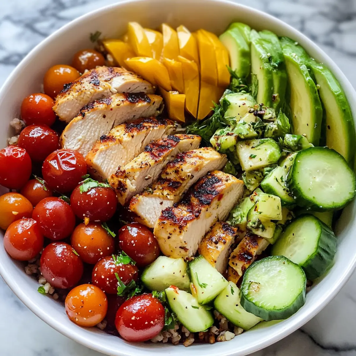 Die Griechischen Kraftschalen sind ideal für die Meal Prep und erleichtern dir die Planung während hektischer Tage! Du kannst das Dressing bis zu 24 Stunden im Voraus zubereiten und im Kühlschrank aufbewahren, damit die Aromen schön durchziehen. Auch die Hähnchenbrust kann bereits am Vortag gegrillt und in Scheiben geschnitten werden; einfach luftdicht verpacken und im Kühlschrank lagern, um die Saftigkeit zu bewahren. Die gekochte Quinoa oder der braune Reis bleiben bis zu 3 Tage frisch im Kühlschrank. Wenn du bereit bist zu servieren, schichte einfach die vorbereiteten Zutaten in einer Schale, träufle das Dressing darüber und dekorier sie mit frischem Dill—so hast du im Handumdrehen eine köstliche Mahlzeit, die genauso lecker ist wie frisch zubereitet!