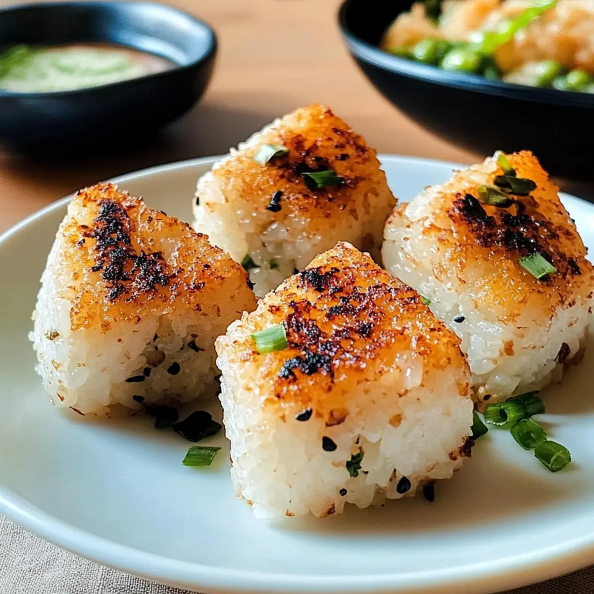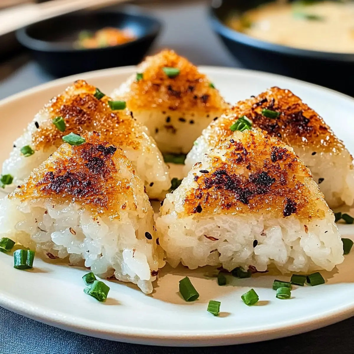 Als ich das erste Mal in einem kleinen japanischen Restaurant saß und den verführerischen Duft frisch gegrillter Reisbällchen (Onigiri) vernahm, war ich sofort verliebt. Diese grillierten Reisbällchen sind nicht nur ein Genuss für die Sinne, sondern auch der perfekte Snack für jede Gelegenheit, ob beim Picknick oder als leichte Mahlzeit zu Hause. Mit ihrer krossen Außenhülle, die einen fluffigen, warmen Kern umschließt, sind sie ein wahrer Genuss der umami-reichen Aromen. Der beste Teil? Sie sind extrem vielseitig, sodass du sie mit deinen Lieblingsfüllungen anpassen kannst – von herzhaftem Hühnchen bis zu frischem Gemüse. Lass uns gemeinsam die Geheimnisse hinter diesen köstlichen Reisbällchen entdecken und dir zeigen, wie du diese einfache, aber beeindruckende Leckerei zaubern kannst! Bist du bereit, deine Grillkünste zu entfalten? Warum werden Sie diese Reisbällchen lieben? Einfache Zubereitung: Die Herstellung dieser grillierten Reisbällchen ist ein Kinderspiel und erfordert nur grundlegende Kochfähigkeiten. Vielseitige Füllungen: Du kannst sie ganz nach deinem Geschmack anpassen – ob herzhaft mit Hühnchen, vegan mit Gemüse oder sogar süß mit einer Überraschung! Perfekte Snack-Option: Jedes Bällchen hat etwa 150 Kalorien, was sie zu einem leichten und sättigenden Snack für zwischendurch macht. Aromen vereinen: Die Kombination aus geröstetem Sesamöl und Sojasauce verleiht den Reisbällchen einen reichhaltigen, umami-geladenen Geschmack, der deine Geschmacksknospen begeistert! Ideal für jedes Event: Ob beim Picknick im Park oder als Teil deiner nächsten Bento-Box, diese köstlichen Bällchen werden sicher die Herzen deiner Gäste erobern. Probier auch mal unsere leckeren Drehungen Heissluftfritteuse Rezept oder den Erfrischenden Minz Zitronen als perfekte Begleiter zu diesen Reisbällchen. Grillierte Reisbällchen Zutaten Für den Reis • Kurzkornreis – Sorgt für die Grundlage der Reisbällchen; gut abspülen, um überschüssige Stärke zu entfernen. • Wasser – Wichtig für das Kochen des Reises und um die richtige Konsistenz zu erreichen. Für die Würzung • Sojasauce – Verleiht den Reisbällchen einen herzhaften Geschmack und verstärkt das Umami-Erlebnis; kann durch Tamari für eine glutenfreie Option ersetzt werden. • Geröstetes Sesamöl – Fügt ein nussiges Aroma hinzu, das die Aromen unterstützt; bei Bedarf kann auch normales Sesamöl verwendet werden. Für die Füllungen (optional) • Gekochtes Hühnchen – Sorgt für eine proteinhaltige Füllung; achte darauf, es fein zu hacken, damit es gut in die Reisbällchen passt. • Thunfisch – Eine praktische und schmackhafte Füllung; ideal für Fischliebhaber. • Gemüse – Verwendet Frisches, wie Karotten oder Spinat, um eine vegane Option zu schaffen; ebenfalls fein hacken für eine gleichmäßige Verteilung. Egal, ob für ein gemütliches Abendessen zu Hause oder ein Picknick im Freien, diese grillierten Reisbällchen sind die perfekte Wahl! Schritt-für-Schritt-Anleitung für Grillierte Reisbällchen Schritt 1: Reis abspülen und einweichen Spüle 1 Tasse Kurzkornreis sorgfältig unter fließendem Wasser, bis das Wasser klar ist, um überschüssige Stärke zu entfernen. Lege den gewaschenen Reis in eine Schüssel, füge 1,5 Tassen Wasser hinzu und lasse ihn etwa 30 Minuten lang einweichen. Dies sorgt dafür, dass der Reis beim Kochen die richtige Konsistenz erreicht. Schritt 2: Reis kochen Koche den eingeweichten Reis gemäß den Anweisungen auf der Verpackung etwa 20 Minuten lang oder bis das Wasser vollständig aufgesogen ist. Achte darauf, dass die Körner weich, aber nicht matschig sind. Lass den Reis nach dem Kochen leicht abkühlen, um das Formen der Grillierten Reisbällchen zu erleichtern und um eine ideale Textur zu garantieren. Schritt 3: Reis würzen Sobald der Reis leicht abgekühlt ist, lockere ihn mit einer Gabel auf. Mische vorsichtig 2 Esslöffel Sojasauce und 1 Esslöffel geröstetes Sesamöl unter den Reis. Diese Würzmischung verleiht deinen Grillierten Reisbällchen den gewünschten umami-reichen Geschmack und fügt eine köstliche, nussige Note hinzu, die das gesamte Gericht bereichert. Schritt 4: Füllungen vorbereiten Während der Reis abkühlt, kannst du deine gewünschten Füllungen vorbereiten. Schneide z.B. gekochtes Hühnchen, Thunfisch oder frisches Gemüse in kleine Stücke. Achte darauf, dass die Füllungen fein gehackt sind, sodass sie gut in die Reisbällchen passen und gleichmäßig verteilt werden können, um jeder Biss ein Geschmackserlebnis wird. Schritt 5: Reisbällchen formen Befeuchte deine Hände leicht mit Wasser, um zu verhindern, dass der Reis kleben bleibt. Nimm etwa ½ Tasse des gewürzten Reises, forme ihn in eine flache Scheibe, füge einen Esslöffel deiner gewählten Füllung in die Mitte und forme dann das Reisstück zu einer runden Kugel. Achte darauf, dass die Füllung gut umschlossen ist, damit sie beim Grillen nicht herausfällt. Schritt 6: Grillen Heize den Grill auf mittlere Hitze vor. Lege die geformten Reisbällchen vorsichtig auf den Grill und grille sie für etwa 3 Minuten auf jeder Seite, oder bis sie goldbraun und knusprig sind. Achte darauf, dass sie nicht zu lange gegrillt werden, damit sie innen fluffig und warm bleiben und nicht austrocknen. Schritt 7: Servieren Nehme die gegrillten Reisbällchen vom Grill und lasse sie kurz abkühlen. Du kannst sie nach Belieben mit zusätzlicher Sojasauce beträufeln oder mit Sesamsamen bestreuen, um den Geschmack zu verstärken. Diese Grillierten Reisbällchen sind der perfekte Snack für jede Gelegenheit und werden sicherlich bei deinen Gästen beliebt sein! Vorausplanung für Grillierte Reisbällchen Grillierte Reisbällchen sind eine fantastische Wahl für die Vorausplanung, da du viele ihrer Komponenten bis zu 3 Tage im Voraus vorbereiten kannst. Du kannst den Reis bis zu 24 Stunden vorher kochen und würzen; lass ihn einfach abkühlen und lagere ihn in einem luftdic