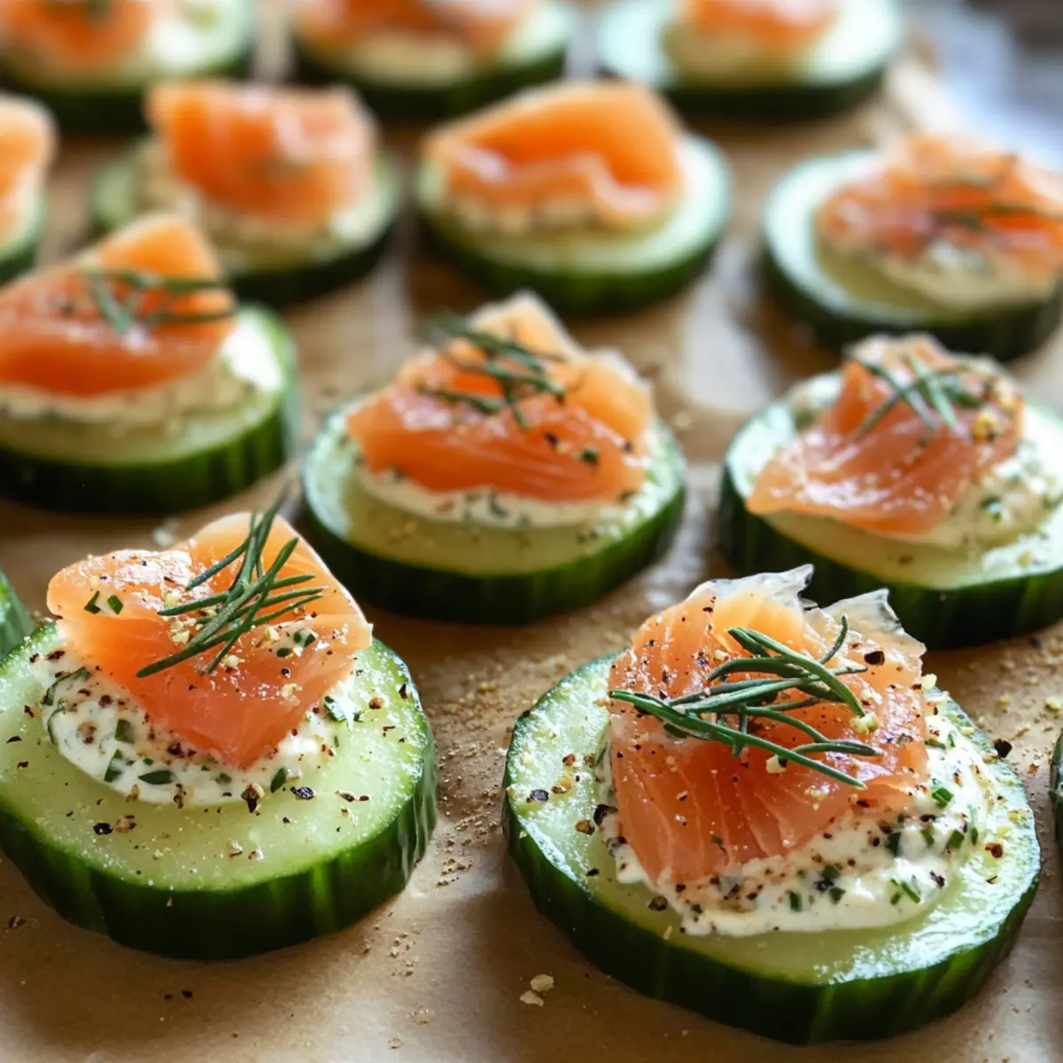 Wenn ich an die warmen Monate denke, überkommt mich oft die Lust nach erfrischenden und unkomplizierten Snack-Ideen. Diese Gurken-Räucherlachs-Bites sind genau das, was ich im Sinn habe! Sie sind der Inbegriff eines köstlichen No-Cook-Appetizers, der in nur 20 Minuten zubereitet werden kann und perfekt für gesellige Abende oder Sommerfeste ist. Mit der knackigen Frische der Gurke, einem cremigen Frischkäse mit Kräutern und dem herzhaften Geschmack des Räucherlachses sind sie nicht nur glutenfrei und kohlenhydratarm, sondern auch ein echter Publikumsliebling. Und wer liebt nicht eine elegante, leichte Vorspeise, die ebenso köstlich wie stilvoll ist? Ich kann es kaum erwarten, euch zu zeigen, wie einfach es ist, diese kleinen Häppchen zuzubereiten. Seid ihr bereit, eure Gäste zu beeindrucken?
