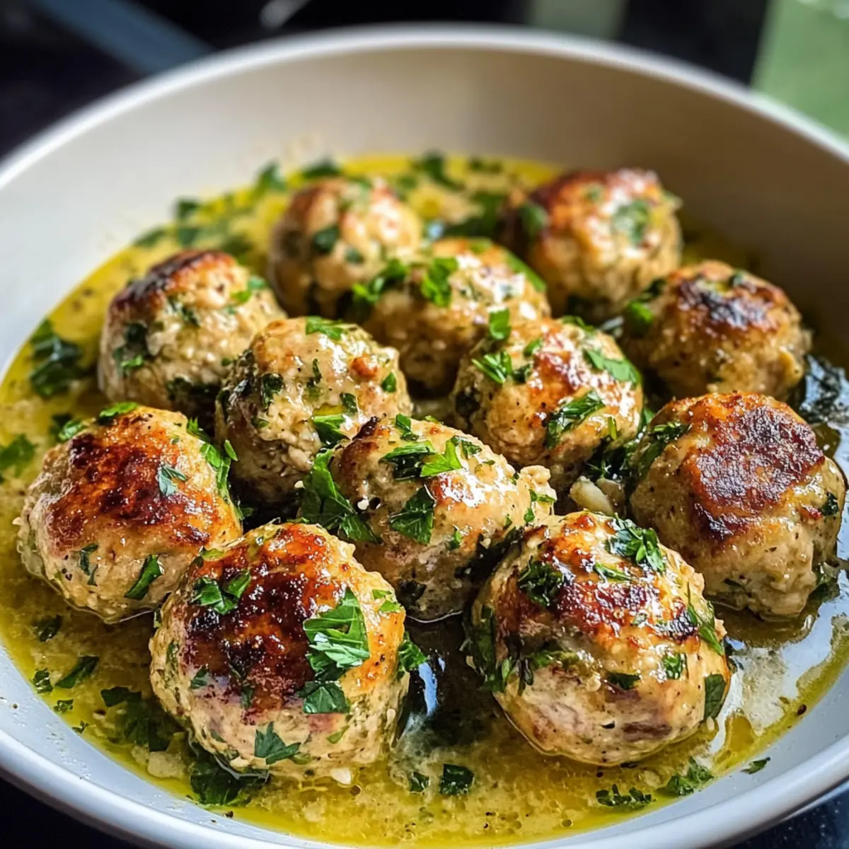 10. Serviert die Hähnchen-Piccata-Fleischbällchen und bestreut sie nach Belieben mit Petersilie und Käse.