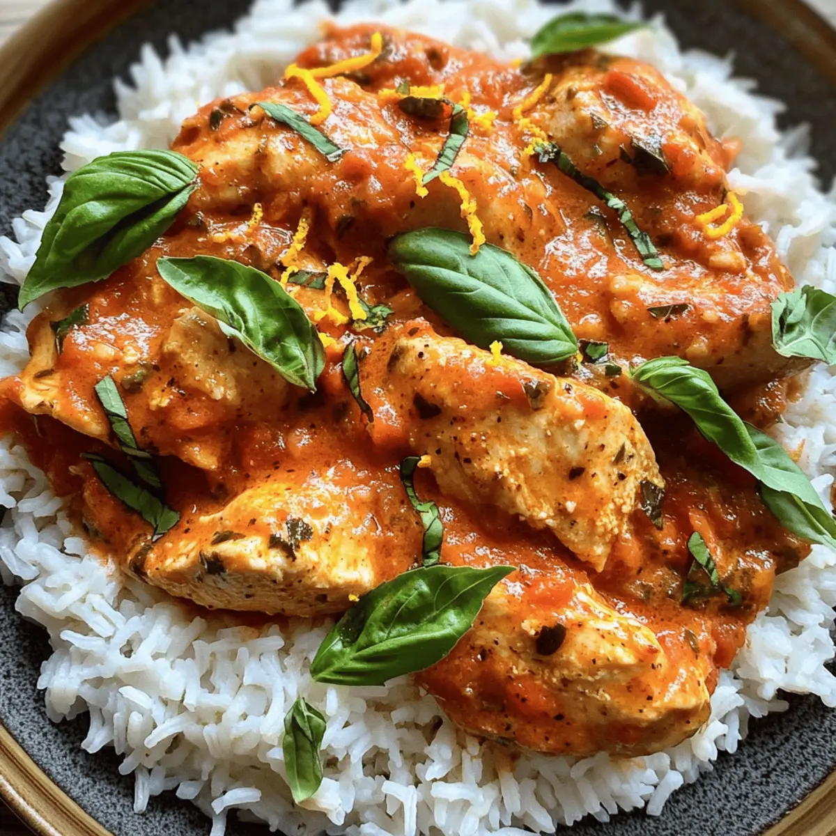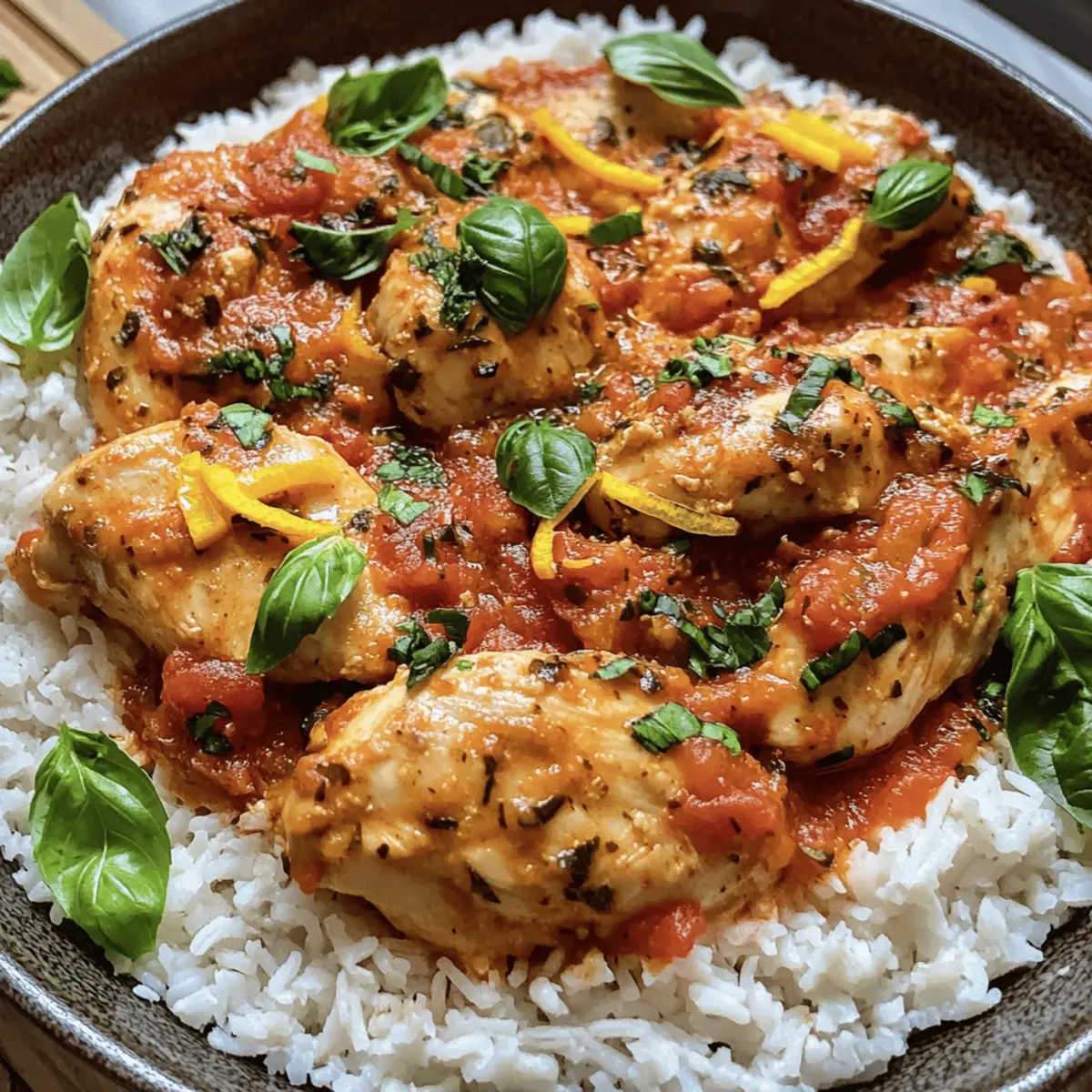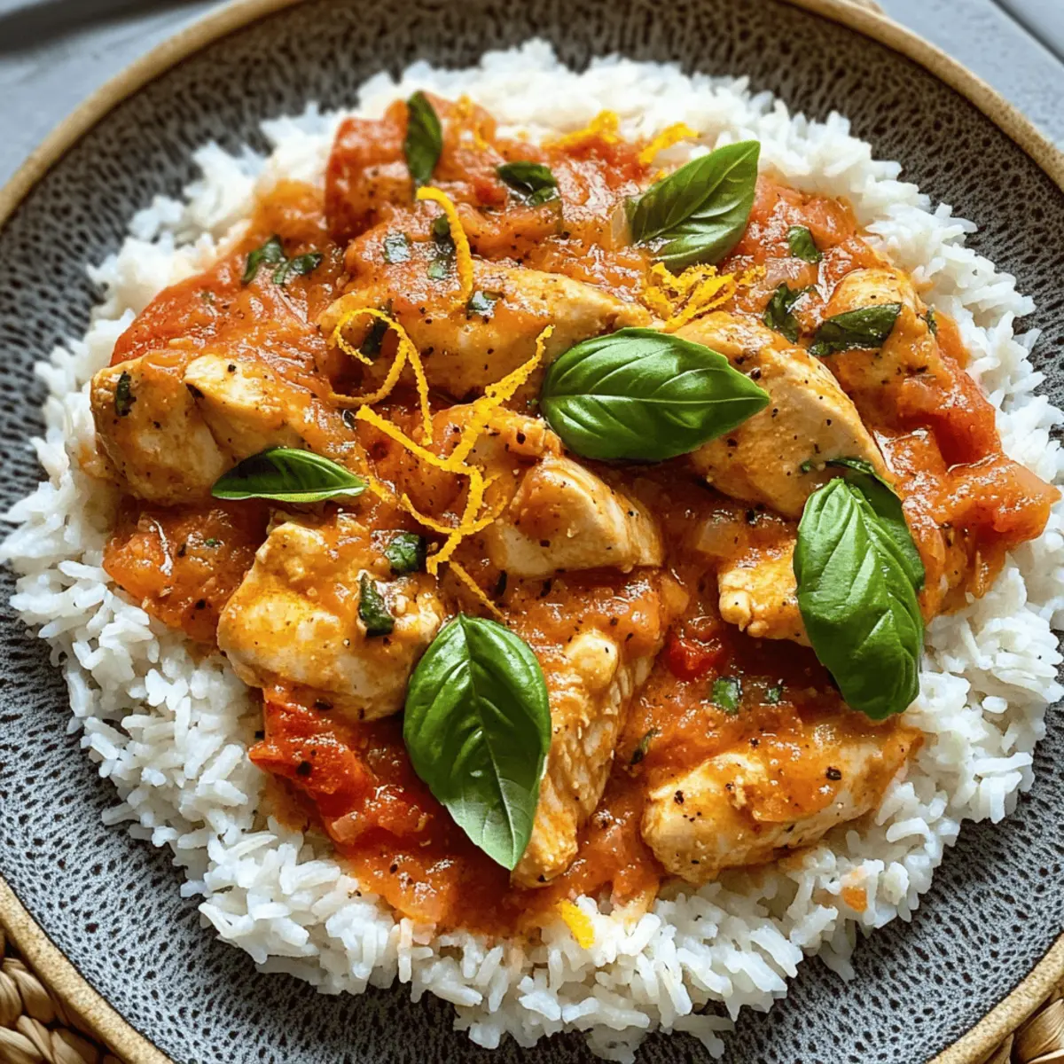 „Ich habe es geschafft!“ hörte ich, wie mein Freund triumphierend rief, als er den letzten Bissen von meinem Hähnchen mit Reis und Tomatensoße nahm. Dieses Gericht hat nicht nur seine Geschmacksknospen erfreut, sondern es ist auch ein echtes Lebensretter-Rezept für hektische Wochentage. Mit zartem Hühnerbrustfleisch, das in einer aromatischen Tomatensoße geschmort wird und fluffigem Reis als Beilage, ist es in nur 35 Minuten zubereitet. Diese Mahlzeit ist nicht nur voller Protein, sondern eignet sich auch perfekt für die Meal Prep. Egal, ob du einen schnellen Feierabend-Snack oder eine nahrhafte Familienmahlzeit suchst, unser Hähnchen mit Reis und Tomatensoße wird alle begeistern. Bist du bereit, den Kochlöffel zu schwingen und loszulegen? Warum ist Hähnchen mit Reis so beliebt? Schnelligkeit: In nur 35 Minuten ist dieses Gericht bereit, was perfekt für vielbeschäftigte Tage ist. Vielseitigkeit: Mit verschiedenen Variationen wie Truthahn oder Lachs sowie zusätzlichen Gemüseoptionen kannst du es immer wieder neu erfinden. Hoher Proteingehalt: Ideal für Fitnessliebhaber – diese proteinreiche Mahlzeit unterstützt den Muskelaufbau und die Regeneration. Einfache Zubereitung: Der unkomplizierte Kochprozess erfordert nur grundlegende Fähigkeiten, sodass auch Anfänger mühelos mitmachen können. Komfort pur: Die Kombination aus zartem Hähnchen und cremiger Tomatensoße sorgt für ein angenehmes, familiäres Gefühl. Probiere auch unsere Vorschläge für die Variation Ideen und mache dieses Gericht noch bunter! Hähnchen mit Reis und Tomatensoße Zutaten • Ein einfaches Rezept für jede Küche! Für den Reis Reis (200 g) – Die Grundlage des Gerichts, die für Energie sorgt. Am besten eignet sich auch Quinoa für eine glutenfreie Variante. Für das Hähnchen Hühnerbrust (300 g) – Der Hauptquelle für Protein, die für zarte Bissen sorgt. Eine tolle Alternative ist Truthahn oder Lachs. Für die Tomatensoße Gestückelte Tomaten (400 g) – Fügen Feuchtigkeit und Geschmack hinzu; idealerweise sind hausgemachte oder natriumarme Dosentomaten gesünder. Kochsahne (100 ml) – Macht die Soße cremig. Für eine leichtere Option kann sie weggelassen oder durch fettarme Kochsahne ersetzt werden. Knoblauch (1 Zehe) – Bringt aromatischen Geschmack ins Gericht. Frischer Knoblauch sorgt für die besten Ergebnisse. Zwiebel (1) – Die Geschmacksbasis für die Soße, die Süße verleiht. Gelbe oder rote Zwiebeln funktionieren hervorragend. Für das Würzen Olivenöl (1 EL) – Zum Anbraten und für den Geschmack. Kokosöl kann ebenfalls verwendet werden. Speisestärke (1 TL, optional) – Verdickt die Soße nach Wunsch. Bei einer dünneren Soße kann sie weggelassen werden. Gemüsebrühe (1 TL) – Steigert den Gesamteindruck der Soße. Low-Sodium-Brühe ist die gesündere Wahl. Tomatensalz (0.5 TL) – Für mehr Geschmackstiefe. Normaler Salz ist ein guter Ersatz, falls benötigt. Chili (1 TL) – Fügt dem Gericht eine angenehme Schärfe hinzu. Je nach Vorliebe anpassen oder ganz weglassen. Rohrzucker (1 TL) – Balance für die Säure der Tomaten. Honig oder Agavendicksaft sind natürliche Alternativen. Pfeffer (1 Prise) – Nach Geschmack hinzufügen, um Tiefe zu erzielen. Frisch gemahlener schwarzer Pfeffer wird empfohlen. Zum Garnieren Zeste einer halben Orange (0.5) – Bringt einen Hauch von Zitrusgeschmack. Alternativ kann auch Zitronenzeste verwendet werden. Basilikum (5 Blätter) – Frische Kräuter zur Garnierung und für einen duftenden Akzent. Petersilie ist ein guter Ersatz, falls Basilikum nicht zur Hand ist. Dieses Rezept für Hähnchen mit Reis und Tomatensoße vereint einfache Zubereitung mit köstlichem Geschmack und Nährstoffen – perfekt für jede Gelegenheit! Schritt-für-Schritt-Anleitung für Hähnchen mit Reis und Tomatensoße Step 1: Zwiebeln und Knoblauch anbraten Erhitze 1 Esslöffel Olivenöl in einer großen Pfanne bei mittlerer Hitze. Füge die fein gehackte Zwiebel und eine zerdrückte Knoblauchzehe hinzu. Brate beides etwa 3-5 Minuten lang an, bis die Zwiebel weich und durchsichtig ist. Achte darauf, dass der Knoblauch nicht verbrennt, da er sonst bitter wird. Step 2: Hähnchen braten Nehme die Zwiebel-Knoblauch-Mischung aus der Pfanne und lege sie beiseite. Gib nun 300 g gewürfelte Hühnerbrust in die erhitzte Pfanne. Brate das Hähnchen für etwa 6-8 Minuten, bis es goldbraun und gut durchgegart ist. Würze das Fleisch während des Bratens mit einer Prise Pfeffer und 0,5 Teelöffel Tomatensalz. Step 3: Tomatensoße zubereiten Nachdem das Hähnchen angebraten ist, gib die zuvor angebratene Zwiebel und den Knoblauch zurück in die Pfanne. Füge 400 g gestückelte Tomaten und 100 ml Kochsahne hinzu. Rühre alles gut um und lasse die Mischung für etwa 5 Minuten köcheln, bis sie leicht eingedickt ist. Die Farben sollten kräftig rot sein. Step 4: Gewürze und Brühe hinzufügen Jetzt ist es an der Zeit, die Aromen weiter zu intensivieren. Rühre 1 Teelöffel Gemüsebrühe, 1 Teelöffel Chili und 1 Teelöffel Rohrzucker unter die Soße. Lassen die Mischung für weitere 4-5 Minuten bei schwacher Hitze simmern, damit sich die Geschmäcker gut verbinden. Du solltest eine cremige, würzige Soße sehen können. Step 5: Verdicken der Soße Wenn die Soße die gewünschte Konsistenz erreicht hat, kann optional 1 Teelöffel Speisestärke hinzugefügt werden. Dazu etwas Speisestärke in kaltem Wasser anrühren und in die Soße einfließen lassen. Lass die Soße erneut aufkochen, bis sie schön dickflüssig wird, und passe die Gewürze nach Belieben an. Step 6: Servieren und garnieren Vor dem Servieren, reibe die Zeste einer halben Orange über die Soße und verrühre alles gut. Serviere das Hähnchen mit Reis und Tomatensoße auf einem großen Teller, garniere es mit frischen Basilikumblättern. Der Kontrast der Farben sollte ansprechend und einladend sein – ein echter Genuss! Hähnchen mit Reis und Tomatensoße Variationen Lass deiner Kreativität 