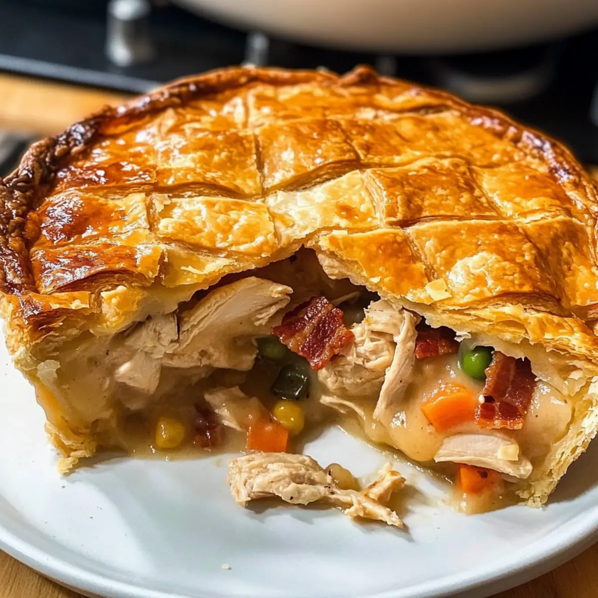Eines Abends, als ich mit meiner Familie am Esstisch saß und den köstlichen Duft von frisch gebackenem Brot einatmete, wurde mir bewusst, dass es nichts Schöneres gibt als eine selbstgemachte Hähnchen- und Speckpastete. Diese besondere Pastete vereint zartes Hähnchenfleisch, knusprigen Speck und frisches Gemüse in einer samtigen, cremigen Soße – ein wahres Komfortessen. Das Beste daran? Die Zubereitung ist schnell und einfach, sodass sie sich perfekt für ein gemeinsames Familienessen eignet. Wenn du dich nach einer herzhaften Mahlzeit sehnst, die nicht nur sättigt, sondern auch jeden an den Tisch lockt, du wirst begeistert sein, wie einfach große Aromen auf den Tisch kommen. Wärmst du dich schon für diese köstliche Reise in die Welt der Hähnchen- und Speckpastete auf? Warum wirst du dieses Rezept lieben? Einfachheit: Die Zubereitung dieser Hähnchen- und Speckpastete ist kinderleicht, selbst für Kochanfänger. Herzhafter Geschmack: Durch die Kombination von Hähnchen, Speck und frischen Kräutern wird jeder Bissen zu einem Genuss. Familienfreundlich: Dieses Gericht begeistert nicht nur Kinder, sondern auch Erwachsene und ist somit perfekt für Familienessen. Vielseitig: Du kannst die Rezeptur leicht anpassen, indem du z.B. saisonales Gemüse hinzufügst oder die Hähnchenteile variierst. Zeitsparend: Mit der Option, fertigen Teig zu verwenden, ist der Aufwand minimal und das Ergebnis stets großartig! Lade deine Lieben an den Tisch und genieße dieses köstliche Gericht, das alle zusammenbringt! Hähnchen- und Speckpastete Zutaten Für den Teig: • Mehl (450g) – Ist die Basis für einen stabilen Pastetenteig; für eine gesündere Variante kannst du Vollkornmehl verwenden. • Butter (225g) – Sorgt für einen reichen, buttrigen Geschmack und eine schöne Flakigkeit; ungesalzene Butter bietet eine mildere Note. • Ei (1) – Hilft, den Teig zu binden; ein Eigelb mit Milch oder Sahne kann für eine goldene Farbe auf der Oberseite verwendet werden. • Kaltes Wasser (⅔ Tasse) – Feuchtet den Teig an, ohne ihn klebrig zu machen; achte darauf, dass das Wasser eiskalt ist. Für die Füllung: • Gemüseöl (1 Esslöffel) – Zum Anbraten der Füllung; du kannst auch Olivenöl für einen anderen Geschmack verwenden. • Würfelfleisch (Speck 250g) – Fügt der Füllung einen herzhaften und reichhaltigen Geschmack hinzu; kannst auch Truthahnspeck für eine leichtere Option verwenden. • Hähnchenschenkel ohne Haut (700g) – Die Hauptproteinquelle, die Tiefe und Geschmack bringt; Brustfleisch kann ebenfalls genutzt werden, neigt aber dazu, schneller auszutrocknen. • Braune Zwiebel (1, gewürfelt) – Verbessert den Geschmack der Füllung; Schalotten können eine mildere Alternative sein. • Karotten (2, fein gewürfelt) – Bringt Süße und Farbe; gefrorene Erbsen können für zusätzliche Textur hinzugefügt werden. • Selleriestangen (2, fein gewürfelt) – Fügt der Füllung einen frischen Crunch hinzu. • Frische Thymianblätter (2 Teelöffel) – Sorgen für ein kräuteriges Aroma; getrockneter Thymian kann als Ersatz genutzt werden, hat aber weniger Duft. • Apfelwein (⅓ Tasse) – Verleiht der Soße einen fruchtigen Akzent; verwende Getränkecider und kein Essig. • Mehl (2 Esslöffel) – Verdickt die Füllung; du kannst auch Maisstärke für eine glutenfreie Option verwenden. • Hühnerbrühe (1¾ Tassen) – Bildet die Basis für die Füllung; Gemüsebrühe macht die Füllung vegetarisch. • Sahne (½ Tasse) – Steigert die Cremigkeit; für eine leichtere Version kann Milch oder kondensierte Milch verwendet werden. • Dijon-Senf (1 Esslöffel) – Verleiht der Füllung eine zusätzliche Geschmacksnote. Entdecke die Freude beim Kochen mit dieser Hähnchen- und Speckpastete, die nicht nur sättigt, sondern auch Herzen berührt! Schritt-für-Schritt-Anleitung für Hähnchen- und Speckpastete Step 1: Teig vorbereiten In einer Küchenmaschine Mehl, Salz und kalte Butter vermengen, bis die Mischung die Konsistenz von Erbsen hat. Füge das Ei hinzu und gib allmählich kaltes Wasser dazu, bis ein Teig entsteht. Knete den Teig vorsichtig auf einer bemehlten Fläche und forme ihn zu einer Kugel. Wickele ihn in Frischhaltefolie und lege ihn mindestens 1 Stunde in den Kühlschrank, damit er fest wird. Step 2: Füllung kochen Erhitze in einer großen Pfanne das Gemüseöl bei mittlerer Hitze und brate den Speck knusprig an. Anschließend die gewürfelten Hähnchenteile hinzufügen und leicht anbräunen. Nimm das Fleisch aus der Pfanne und stelle es auf einen Teller. Deglaziere die Pfanne mit einem Spritzer Wasser, füge die Zwiebel, Karotten, Sellerie und Thymian hinzu, und koche alles, bis das Gemüse weich ist, etwa 5 Minuten. Step 3: Füllung eindicken In die Pfanne den Apfelwein, Mehl, Hühnerbrühe, Sahne und Dijon-Senf einrühren und alles gut vermischen. Lasse die Mischung 2 Minuten köcheln, bis sie eindickt und sämig ist. Füge die angebratenen Hähnchenstücke und den Speck wieder hinzu und rühre um, damit alles gut verteilt ist. Lasse die Füllung etwas abkühlen, während du den Ofen vorheizt. Step 4: Pastete zusammensetzen Heize den Ofen auf 200°C vor. Rolle den gekühlten Teig auf einer bemehlten Fläche aus und lege die Teigscheibe in eine gefettete Auflaufform. Fülle die Pastete gleichmäßig mit der abgekühlten Hähnchen- und Speckfüllung. Rolle den restlichen Teig aus und lege ihn als Deckel über die Füllung, crimp die Ränder zusammen und schneide einige Dampföffnungen in die Oberseite. Step 5: Backen Bestreiche die Oberfläche der Pastete mit einer Mischung aus Eigelb und etwas Milch, um eine goldene Farbe zu erhalten. Schiebe die Pastete in den vorgeheizten Ofen und backe sie 50-60 Minuten lang, bis sie goldbraun und knusprig ist. Achte darauf, dass die Füllung durchgegart und blubbernd ist. Lass die Pastete nach dem Backen etwas abkühlen, bevor du sie anschneidest und servierst. Was passt zu Hähnchen- und Speckpastete? Ein 
