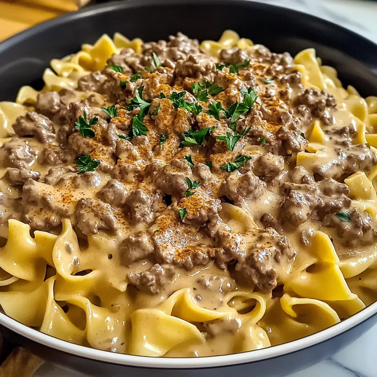 • Nudeln al dente kochen: Achte darauf, die Nudeln bissfest (al dente) zu garen, damit sie nicht matschig werden und die perfekte Textur im Hamburger Helfer Rindfleisch Stroganoff beibehalten.