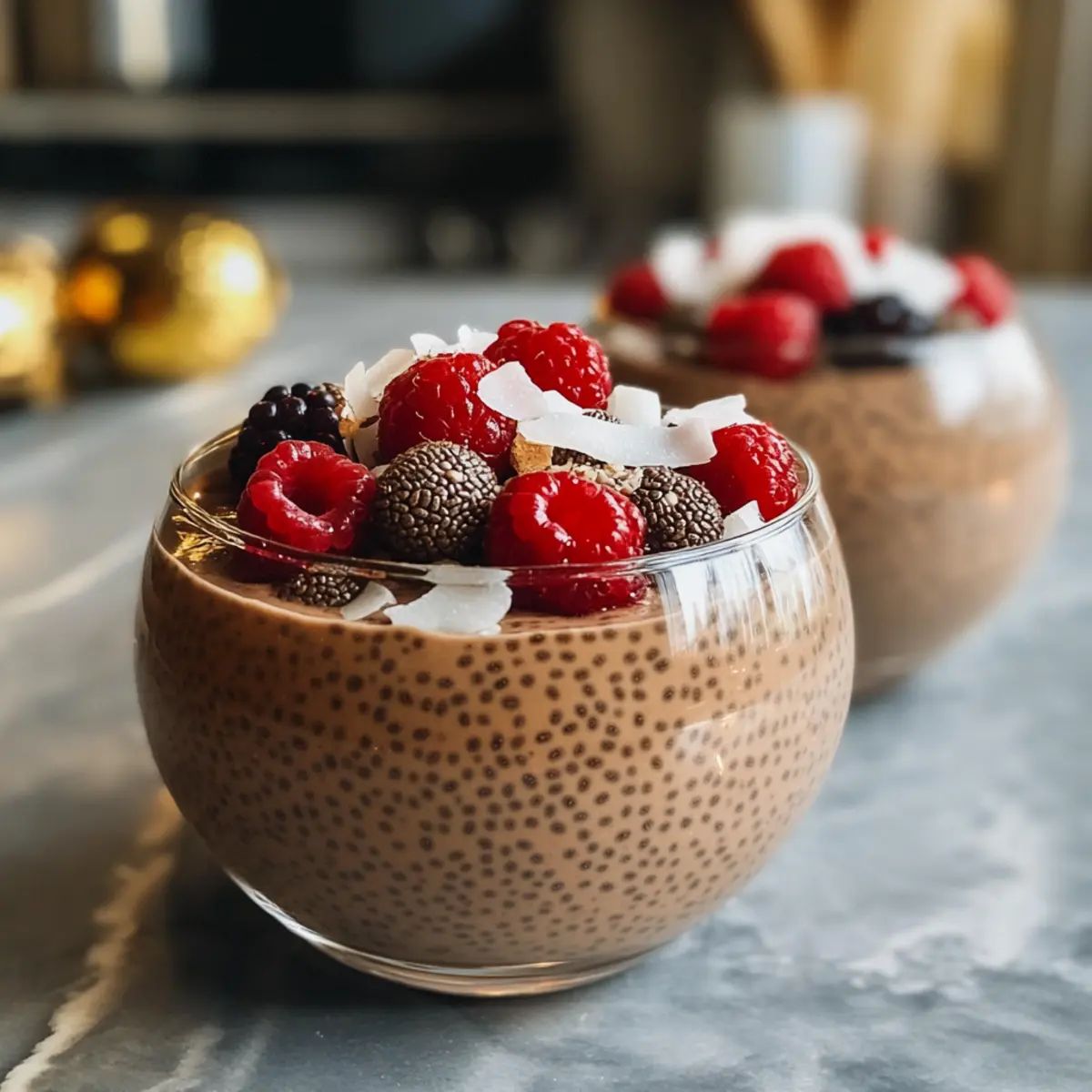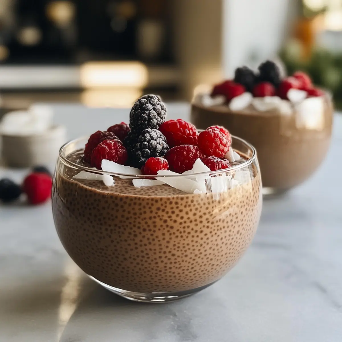 In jeder kalten Jahreszeit gibt es diesen einen Moment, an dem es einfach unwiderstehlich ist, etwas Warmes und Süßes zu genießen. Der Heiße Schokolade Chia Pudding ist der perfekte Begleiter für solche gemütlichen Abende und bringt nicht nur den köstlichen Geschmack von heißer Schokolade auf den Tisch, sondern verspricht auch eine Fülle an Nährstoffen. Diese gesunde, vegane und blitzschnell zubereitete No-Bake-Option ist ideal, um süße Gelüste zu stillen – sei es als festliches Dessert oder als nährender Snack nach dem Abendessen. Mit seiner cremigen Konsistenz und der Möglichkeit, ihn ganz nach deinem Geschmack zu variieren, wird dieser Pudding schnell zu einem deiner neuen Lieblingsrezepte. Bist du bereit, in die Welt des Heißen Schokolade Chia Puddings einzutauchen und deine eigenen köstlichen Varianten zu kreieren? Warum wirst du diesen Pudding lieben? Schnelligkeit und Einfachheit: Die Zubereitung ist denkbar einfach – nur ein paar Zutaten zusammenmischen und chillen lassen. Gourmet-Geschmack: Jeder Löffel erinnert an einen dekadenten Schokoladentrüffel und sorgt für ein wohltuendes Geschmackserlebnis. Vielfältige Varianten: Ob mit einem Hauch Zimt für die Festtage oder einem fruchtigen Topping – du kannst deinen Pudding ganz nach deinem Geschmack kreieren. Gesund und Nahrhaft: Vollgepackt mit Omega-3-Fettsäuren und Antioxidantien ist dieser Pudding nicht nur köstlich, sondern auch eine gesunde Wahl. Ideal für die ganze Familie: Kinder werden die schokoladige Süßigkeit lieben, während auch Veganer und gesundheitsbewusste Esser auf ihre Kosten kommen. Du wirst nie wieder auf Fast Food zurückgreifen wollen! Heiße Schokolade Chia Pudding Zutaten • Diese Zutaten werden benötigt, um den köstlichen Heiße Schokolade Chia Pudding zuzubereiten. Für den Pudding Chia-Samen – liefern Ballaststoffe, Omega-3-Fettsäuren und pflanzliches Protein für langanhaltende Energie. Ungesüßtes Kakaopulver – ist reich an Antioxidantien und Magnesium und verleiht den schokoladigen Geschmack. Pflanzenmilch (z.B. Mandeln, Kokos) – sorgt für eine cremige Textur; verwende ungesüßte Varianten, um die Kalorien niedrig zu halten. Süßungsmittel (z.B. Ahornsirup, Agave, Stevia) – ermöglicht eine anpassbare Süße; reduziere die Menge, wenn du die Kalorien im Auge behältst. Optionale Zutaten Protein-Pulver (z.B. Schokolade) – erhöht den Nährwert und macht den Pudding noch sättigender. Gewürze (z.B. Zimt, Muskat) – bringen eine festliche Note und stärken den aromatischen Geschmack; füge eine Prise hinzu, um dem Pudding mehr Tiefe zu verleihen. Toppings (z.B. frische Früchte, Nüsse) – machen den Pudding optisch ansprechend und fügen zusätzliche Textur hinzu. Schritt-für-Schritt-Anleitung für Heiße Schokolade Chia Pudding Schritt 1: Zutaten Mischen In einer mittelgroßen Schüssel die Chia-Samen mit dem ungesüßten Kakaopulver und dem gewählten Süßungsmittel gut vermischen. Gieße anschließend die Pflanzenmilch hinzu und verrühre alles gründlich mit einem Schneebesen, bis keine Klumpen mehr vorhanden sind. Die Mischung sollte eine einheitliche cremige Konsistenz haben, bevor du mit dem nächsten Schritt fortfährst. Schritt 2: Quellzeit Lasse die Mischung etwa 10–15 Minuten bei Raumtemperatur ruhen. Rühre während dieser Zeit gelegentlich um, um zu verhindern, dass sich die Chia-Samen am Boden der Schüssel absetzen. Nach dieser Zeit sollte die Konsistenz puddingartig und dicklich sein, was zeigt, dass der Heiße Schokolade Chia Pudding bereit für die nächsten Schritte ist. Schritt 3: Portionieren Verteile den fertigen Chia Pudding gleichmäßig auf individuelle Gläser oder Schalen. Du kannst kleine Gläser oder auch Schalen verwenden, je nachdem, wie du den Pudding servieren möchtest. Diese Portionierung sorgt nicht nur für ansprechende Präsentation, sondern macht das Genießen einfacher und bequemer. Schritt 4: Kühlen Stelle die gefüllten Gläser in den Kühlschrank und lasse den Pudding für mindestens 1 Stunde oder bis zu mehreren Tagen kühlen. Dies hilft, die Aromen zu intensivieren und die Textur zu verfeinern. Du wirst feststellen, dass der Heiße Schokolade Chia Pudding nach dem Kühlen noch cremiger und schmeichelnder wird. Schritt 5: Servieren und Garnieren Vor dem Servieren kannst du deine Portionen nach Belieben mit frischen Beeren, Nüssen oder einem Hauch von Zimt dekorieren. Diese Toppings fügen nicht nur eine extra Geschmacksdimension hinzu, sondern machen den Pudding auch optisch ansprechend. Genieße deinen Heiße Schokolade Chia Pudding kühl als gesunden Snack oder köstliches Dessert! Nützliche Tipps für Heiße Schokolade Chia Pudding Die richtige Konsistenz: Achte darauf, dass die Chia-Samen richtig quellen, indem du regelmäßig umrührst. So verhinderst du, dass sie sich am Boden absetzen und der Pudding klumpig wird. Süße anpassen: Experimentiere mit verschiedenen Süßungsmitteln! Alle haben unterschiedliche Geschmackseigenschaften; beginne mit wenig und füge nach Bedarf mehr hinzu. Optische Aufwertung: Dekoriere deinen Heiße Schokolade Chia Pudding mit frischen Früchten oder Nüssen. Dies verstärkt nicht nur die Aromen, sondern macht das Dessert auch attraktiver. Variationen erstellen: Füge Gewürze wie Zimt oder Vanille hinzu, um deinem Pudding eine persönliche Note zu verleihen. Du kannst sogar Lebensmittel wie Mandelmus integrieren für zusätzlichen Geschmack. Vorrat im Kühlschrank: Bereite mehrere Portionen vor und bewahre sie in luftdichten Behältern im Kühlschrank auf. So hast du immer einen gesunden Snack zur Hand! Kreativ kombinieren: Probiere verschiedene Pflanzenmilchsorten aus – zum Beispiel Kokos- oder Hafermilch – um neue Geschmäcker zu entdecken und deinen Heißen Schokolade Chia Pudding anzupassen. Lagerungstipps für Heiße Schokolade Chia Pudding Kühlschrank: Bewahre den Pudding in luftdichten Behältern auf; so bleibt er bis zu einer Woche frisch. So hast du i