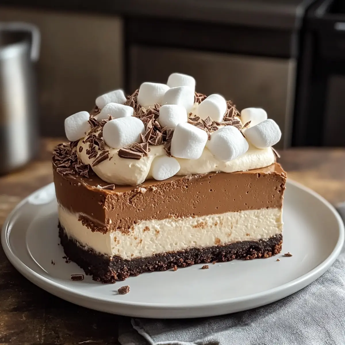 Während die kalten Winterabende langsam näher rücken, gibt es kaum etwas Besseres als eine zarte Scheibe Heiße Schokolade Käsekuchen mit Marshmallow-Schlagsahne. Die Kombination aus reichem, schokoladigem Käsekuchen und herrlich luftiger Sahne bringt das ultimative Wohlgefühl in die heimische Küche. Dieses Rezept ist nicht nur ein echter Hingucker für festliche Zusammenkünfte, sondern auch ein wahrhaft schneller Genuss, der sich mit einfachen Zutaten aus der Vorratskammer zubereiten lässt. Egal, ob du dich für eine klassische Variante entscheidest oder mit köstlichen Aromen wie Pfefferminze oder Karamell experimentierst, dieser Käsekuchen wird deine Gäste ohne Zweifel begeistern. Bist du bereit, dem süßen Verlangen nachzugeben und deine Freunde mit einem geschmackvollen Wintertraum zu überraschen? Warum wirst du diesen Käsekuchen lieben? Ein Genuss für die Sinne: Dieser Heiße Schokolade Käsekuchen vereint die Aromen deines Lieblingsgetränks in einem dekadenten Dessert. Einfach zubereitet: Mit nur wenigen Zutaten aus der Vorratskammer ist er schnell gemacht, perfekt für spontane Einladungen. Vielseitig anpassbar: Ob Pfefferminze, Karamell oder fruchtige Toppings, die Anpassungsmöglichkeiten sind endlos. Ein Hingucker: Mit seiner samtigen Textur und luftigen Marshmallow-Schlagsahne wird er garantiert der Star jedes Festes. Gemütlicher Genuss: Ideal, um an kalten Winterabenden mit Freunden oder Familie zu teilen! Heiße Schokolade Käsekuchen Zutaten • Für den Boden Schokoladenkeksbrösel – bilden eine reichhaltige, schokoladige Basis; du kannst stattdessen auch Graham-Cracker-Brösel verwenden. Ungesalzene Butter – bindet den Boden zusammen; Margarine eignet sich als Alternative, falls benötigt. • Für die Füllung Frischkäse – sorgt für die cremige Textur des Käsekuchens; stelle sicher, dass er Zimmertemperatur hat, um das Mischen zu erleichtern. Zucker – fügt Süße hinzu, um die reichhaltigen Aromen auszubalancieren; kann für weniger Süße reduziert werden. Große Eier – bieten Struktur und Stabilität; Eier in Zimmertemperatur ergeben eine geschmeidigere Füllung. Heiße Schokolade-Mischung – verleiht den Schokoladengeschmack, der an heiße Schokolade erinnert; wähle deine Lieblingsmarke für verschiedenen Geschmack. • Für die Schlagsahne Schlagsahne – wird verwendet, um die zeitgenössische Topping zu machen; du kannst auch Kokoscreme für eine milchfreie Option verwenden. Marshmallow Fluff – fügt Süße und Volumen zur Topping hinzu; kann durch Schlagsahne ersetzt werden, um eine leichtere Alternative zu bieten. Genieße diesen Heiße Schokolade Käsekuchen mit Marshmallow-Schlagsahne, der nicht nur köstlich aussieht, sondern auch ein Genuss für die Geschmacksnerven ist! Schritt-für-Schritt-Anleitung für Heiße Schokolade Käsekuchen mit Marshmallow-Schlagsahne Step 1: Ofen vorheizen Heize den Ofen auf 160 °C vor und stelle ein Backblech mit heißem Wasser auf die untere Schiene, um ein Wasserbad zu schaffen. Das Wasser hilft bei der gleichmäßigen Erwärmung des Käsekuchens und verhindert, dass die Oberfläche Risse bekommt. Step 2: Boden vorbereiten Mische die Schokoladenkeksbrösel mit der geschmolzenen ungesalzenen Butter in einer Schüssel, bis eine krümelige Konsistenz entsteht. Drücke die Mischung fest in den Boden einer gefetteten Springform, um eine dichte und gleichmäßige Kruste zu bilden. Achte darauf, dass die Keksmasse gleichmäßig verteilt ist. Step 3: Füllung zubereiten Schlage den Frischkäse und den Zucker in einer großen Schüssel mit einem Handmixer auf mittlerer Geschwindigkeit cremig. Füge nach und nach die Eier hinzu und rühre weiter, bis die Masse glatt und homogen ist. Mische dann die heiße Schokolade-Mischung gut unter, damit sich die Aromen gleichmäßig verteilen. Step 4: Backen Gieße die Käsekuchenfüllung gleichmäßig über den vorgebackenen Boden und stelle die Springform vorsichtig in das heiße Wasserbad im Ofen. Backe den Käsekuchen für 50-60 Minuten, bis die Ränder fest, aber die Mitte noch leicht wackelig ist. Achte darauf, nicht zu lange zu backen, um eine cremige Textur zu erhalten. Step 5: Abkühlen Lasse den Käsekuchen im geschlossenen Ofen für eine Stunde abkühlen, wodurch er langsam auf Raummtemperatur kommen kann. Dies hilft, Risse zu vermeiden. Danach stelle ihn zum vollständigen Abkühlen in den Kühlschrank und lasse ihn mindestens 4 Stunden, idealerweise über Nacht, ruhen. Step 6: Topping vorbereiten Schlage die Schlagsahne in einer Schüssel mit einem Handmixer auf, bis weiche Spitzen entstehen. Füge dann den Marshmallow Fluff hinzu und falte ihn vorsichtig unter die Schlagsahne, bis die Mischung homogen, aber fluffig bleibt. Dies wird dein köstliches Topping für den Käsekuchen. Step 7: Servieren Verteile die Marshmallow-Schlagsahne gleichmäßig über den abgekühlten Käsekuchen, kurz vor dem Servieren. Du kannst den Käsekuchen nach Belieben mit kleinen Marshmallows und Schokoladenraspeln garnieren, um einen zusätzlichen Hauch von Dekadenz zu verleihen. Jetzt ist dein Heiße Schokolade Käsekuchen mit Marshmallow-Schlagsahne bereit, genossen zu werden! Was passt zu Heiße Schokolade Käsekuchen mit Marshmallow-Schlagsahne? Während die kalten Winterabende langsam näher rücken, gibt es kaum etwas Besseres als eine zarte Scheibe Heiße Schokolade Käsekuchen mit Marshmallow-Schlagsahne, um den Abend zu bereichern. Schokoladeneis: Eine Kugel Schokoladeneis sorgt für zusätzliche Cremigkeit und hebt die schokoladigen Noten des Käsekuchens hervor. Die Kühle des Eis verleiht einen köstlichen Kontrast. Kaffee mit Schaum: Ein milder Cappuccino oder Latte passt perfekt dazu, um eine harmonische Balance zwischen den süßen und samtigen Aromen zu schaffen. Die Wärme des Kaffees bringt ein wohliges Gefühl. Nüsse in Honig: Geröstete Nüsse, die in Honig glasiert sind, bieten eine knackige Textur und süße Aromen, die sich wunderbar mit der Weich