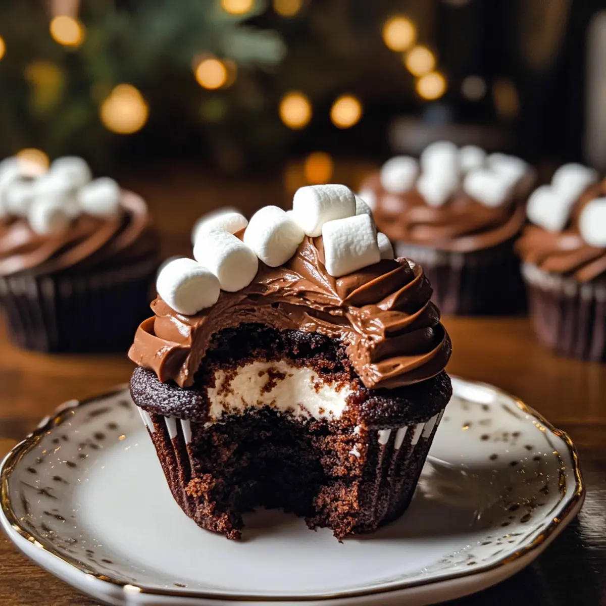 Es gibt Momente, die schmecken wie eine warme Umarmung – und dieser ist einer davon! Mit meinen Heißen Schokolade Cupcakes verwandele ich die Klassiker jeder Winterfeier in ein unwiderstehliches Dessert. Diese köstlichen Kreationen aus einem saftigen Teig mit devil’s food cake sind mit schmelzenden Schokoladentrüffeln gefüllt und werden von einem einzigartigen heiße Schokolade Frosting gekrönt, das mit fluffigem Marshmallow verfeinert ist. Diese Cupcakes sind nicht nur ein echter Publikumsmagnet, sondern auch einfach zuzubereiten, was sie perfekt für festliche Anlässe macht. Und wer kann bei einem extra Portion Schokolade schon widerstehen? Seid ihr bereit für ein Stück himmlischer Schokolade? Lasst uns gemeinsam in diese süße Versuchung eintauchen! Warum werden Sie diese Cupcakes lieben? Einzigartiger Genuss: Die Kombination aus devil’s food cake und schmelzenden Trüffeln macht jeden Bissen zu einem Schokoladentraum. Einfach zuzubereiten: Die klare Anleitung sorgt dafür, dass auch Backanfänger mit Freude zum Ziel kommen. Bezaubernde Optik: Mit fluffigen Marshmallows dekoriert, sind diese Cupcakes der Star auf jeder Feier. Vielseitig einsetzbar: Perfekt für Winterpartys, Feiertage oder als süßer Snack an einem kalten Abend. Perfekt dazu: ein Glas Milch oder warme Pfirsich Limonade Rezept! Entspannte Lagerung: In einem luftdichten Behälter halten sie bis zu 5 Tage frisch – ideal für spontane Naschkatzen! Himmlischer Geschmack: Das heiße Schokolade Frosting bringt den nostalgischen Geschmack von winterlichem Kakao direkt in jeden Bissen. Heiße Schokolade Cupcakes Zutaten Für den Teig Weizenmehl – Verleiht den Cupcakes Struktur; für eine leichtere Textur kann auch Kuchenmehl verwendet werden. Zucker – Süßt und sorgt für eine feuchte Konsistenz; Kokoszucker kann für ein anderes Aroma verwendet werden. Kakaopulver (Doppelt Verarbeitung) – Fügt einen reichen Schokoladengeschmack und eine dunkle Farbe hinzu; gewöhnliches Kakaopulver ist möglich, führt aber zu einem helleren Teig. Backpulver/Backsoda – Leavening-Agenten, die helfen, die Cupcakes aufzugehen; darauf achten, dass sie frisch sind für beste Ergebnisse. Salz – Verstärkt die Süße und balanciert die Aromen; Meersalz kann für einen komplexeren Geschmack verwendet werden. Großes Ei – Bindet die Zutaten und sorgt für Feuchtigkeit; kann für eine eifreie Version durch einen Flachsemsatz (1 EL gemahlene Leinsamen + 2,5 EL Wasser) ersetzt werden. Vanillepaste – Fügt mit ihren Vanilleflecken Tiefe hinzu; reiner Vanilleextrakt ist als Ersatz akzeptabel. Rapsöl – Hält die Cupcakes feucht; kann für einen anderen Geschmack durch geschmolzenes Kokosöl ersetzt werden. Buttermilch – Bringt einen säuerlichen Geschmack und sorgt für zarte Cupcakes; kann durch Milch und Essig (1 Tasse Milch + 1 EL Essig) ersetzt werden. Heiße, kochende Flüssigkeit – Hilft, einen dünnflüssigen Teig zu erstellen, was zu saftigen Cupcakes führt; dieser Schritt ist entscheidend für die Textur des Kuchens. Schokoladentrüffel – Sorgt für einen schmelzenden Schokoladenkern; jede hochwertige Trüffel ist geeignet. Für das Frosting Ungesalzene Butter – Essenziell für das Frosting und sorgt für Cremigkeit; Margarine kann als milchfreie Option verwendet werden. Puderzucker – Süßt und stabilisiert das Frosting; für eine weniger süße Option kann die Menge reduziert werden. Kakaopulver – Fügt dem Frosting Reichtum hinzu; darauf achten, dass es ungesüßt ist, um das Geschmacksgleichgewicht zu halten. Schlagsahne – Hilft, eine glatte Konsistenz im Frosting zu erreichen; kann für eine vegane Version durch eine nicht-dairy Sahne ersetzt werden. Heiße Kakaomischung (ohne Marshmallows) – Verleiht dem Frosting einen reichen Kakaogeschmack; man kann auch hausgemachten heißen Kakao verwenden, wenn verfügbar. Marshmallow Fluff – Fügt dem Frosting Süße und eine leichte Textur hinzu; kann durch Schlagsahne für ein leichteres Frosting ersetzt werden. Mini-Marshmallows – Zur Dekoration und zur Verbesserung des festlichen Aussehens; auf Wunsch können zerstoßene Graham-Cracker für eine andere Topping-Textur verwendet werden. Schritt-für-Schritt-Anleitung für Heiße Schokolade Cupcakes mit Trüffelfüllung Step 1: Ofen vorheizen Heizen Sie Ihren Ofen auf 175 °C vor und bereiten Sie Muffinförmchen mit Papierförmchen vor. Diese heiße Schokolade Cupcakes werden in 12 Portionen gebacken, brauchen aber einen optimalen Backraum, um gleichmäßig durchzubacken. Step 2: Trockene Zutaten sieben In einer großen Schüssel kombinieren Sie Weizenmehl, Zucker, Kakaopulver, Backpulver, Natron und Salz. Sichten Sie die Zutaten gründlich, um Klumpen zu vermeiden und eine gleichmäßige Mischung zu gewährleisten. Dies ist ein wichtiger Schritt, um die Grundlage für einen leckeren Teig zu schaffen. Step 3: Nasse Zutaten mischen In einer anderen Schüssel verquirlen Sie das große Ei, die Vanillepaste, die Buttermilch und das Rapsöl. Diese feuchten Zutaten sorgen für die nötige Bindung und Feuchtigkeit, die Ihren Heißen Schokolade Cupcakes eine zarte Textur verleihen werden. Step 4: Mischungen kombinieren Gießen Sie die feuchten Zutaten langsam in die trockenen Zutaten und rühren Sie sanft, bis alles gerade so kombiniert ist. Achten Sie darauf, nicht zu übermixen! Fügen Sie dann vorsichtig die heiße, kochende Flüssigkeit hinzu, die für den feuchten Teig verantwortlich ist und die Aromen intensiviert. Step 5: Portionieren und backen Nutzen Sie einen Eisportionierer, um die Teigmischung gleichmäßig in die Muffinförmchen zu füllen, und füllen Sie sie etwa ein Drittel voll. Backen Sie die Cupcakes nun für 10 Minuten. Nehmen Sie die Form heraus und setzen Sie je einen Schokoladentrüffel in die Mitte jeder Cupcake-Portion, dann backen Sie sie weitere 8 Minuten, bis sie aufgehen und fest sind. Step 6: Cupcakes abkühlen lassen Lassen Sie die Muffins 10 Minuten in der Form ruhen, bev