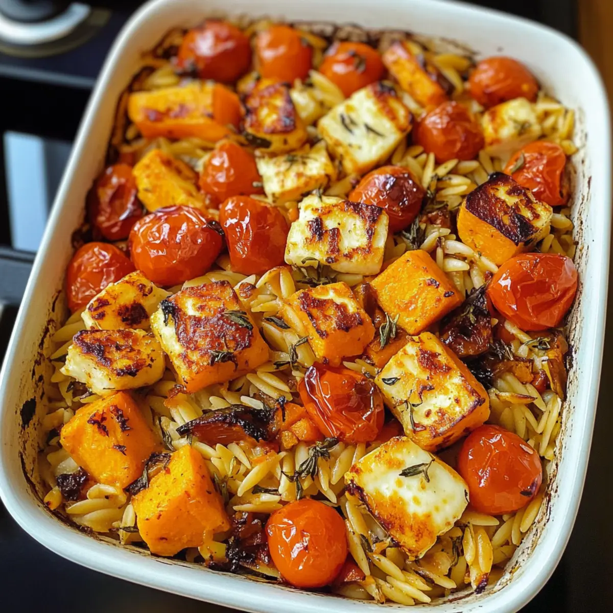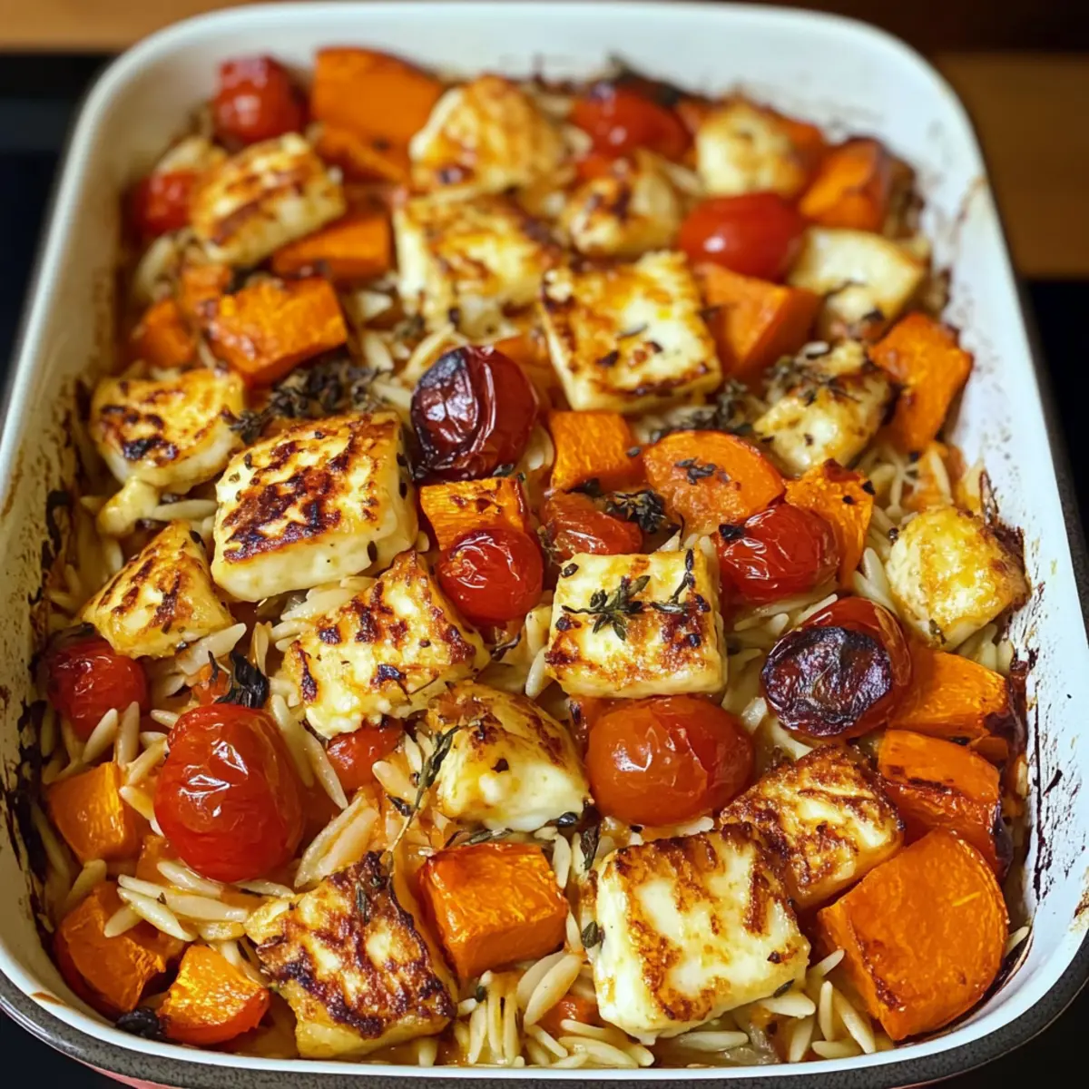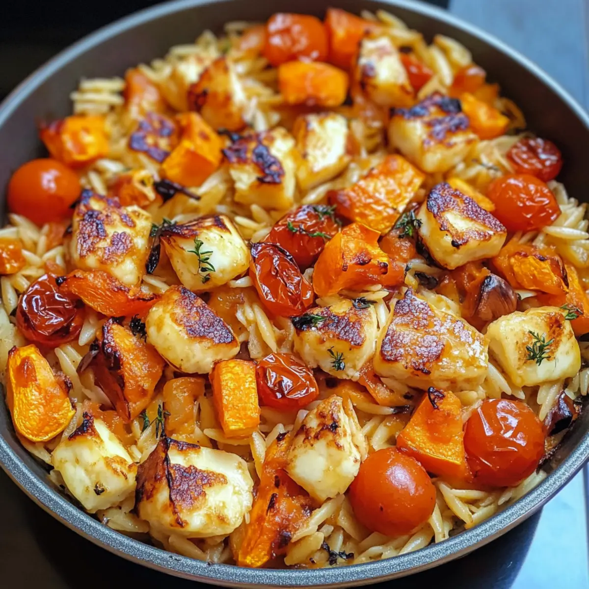 Wenn die bunten Blätter fallen und der Duft von frisch geröstetem Kürbis in der Luft liegt, weiß ich, dass es Zeit für meinen herbstlichen Halloumi Orzo Auflauf ist. Dieses Gericht vereint die cremige Textur von Orzo mit der süßen Note von gebackenem Kürbis und dem herzhaften Geschmack von Halloumi – und das alles in einem einzigen, einfach zuzubereitenden Auflauf. Ideal für gemütliche Familienabende oder eine gesellige Runde mit Freunden, bietet dieser Auflauf nicht nur eine köstliche Mahlzeit, sondern ist auch für Veganer zugänglich und schnell zubereitet. Wer könnte da widerstehen? Entdecken Sie, wie dieses herzliche Essen Ihre Küche mit warmen Aromen erfüllt und die besten Erinnerungen an das herbstliche Zusammensein weckt. Sind Sie bereit, den Ofen vorzuheizen und sich auf ein warmes, geschmackvolles Abenteuer einzulassen? Warum ist dieser Auflauf so besonders? Herbstlicher Geschmack: Dieser Auflauf kombiniert die süßen Aromen von Kürbis mit dem herzhaften Geschmack des Halloumi. Einfachheit: Mit nur wenigen Zutaten lässt sich dieses Gericht schnell und einfach zubereiten, perfekt für die hektischen Herbstabende. Vielseitigkeit: Ob mit Gemüse für eine pflanzliche Version oder in Kombination mit einer köstlichen Erbsensuppe, dieser Auflauf bietet unzählige Variationsmöglichkeiten. Familienfreundlich: Ideal für Kinder und Erwachsene, sodass alle am Tisch glücklich sind. Gemütlichkeit: Genießen Sie eine warme, herzhafte Mahlzeit, die das Ankommen nach einem langen Tag in der Kälte versüßt und die besten Erinnerungen weckt. Ergänzen Sie Ihren Abend mit einem frischen Salat oder einem Stück knusprigem Baguette und tauchen Sie ein in den gemütlichen Herbstzauber! Herbstlicher Halloumi Orzo Auflauf Zutaten • Dieser herbstliche Halloumi Orzo Auflauf wird Ihre Familie begeistern! Für das Gemüse: Rote Zwiebel – fügt eine süße Tiefe hinzu; verwenden Sie Schalotten für einen milderen Geschmack. Hokkaido- oder Butternut-Kürbis (500g, gewürfelt) – sorgt für Süße und Textur; auch gefrorene Optionen sind in Ordnung. Hinweis: Sie können jede Kürbissorte verwenden, je nach Verfügbarkeit. Knoblauchzehen (3) – verstärkt das Geschmacksprofil; Knoblauchpulver kann als Ersatz verwendet werden. Olivenöl (2 TL) – ideal zum Sautieren und für den Geschmack; kann durch neutrales Öl oder veganes Öl ersetzt werden. Paprikapulver (1 TL) – fügt milde Schärfe und Farbe hinzu; geräuchertes Paprikapulver sorgt für einen intensiveren Geschmack. Für die Pasta: Orzo (300g) – die Hauptkohlenhydratquelle, die wie Reis aussieht; alternativ können Sie andere kleine Pastasorten verwenden. Gemüsebrühe (700 ml) – sorgt für Feuchtigkeit und Geschmack; verwenden Sie natriumarme oder hausgemachte Brühe für mehr Kontrolle über den Geschmack. Für das Finish: Kirschtomaten (250g) – bringen Frische ins Gericht; verwenden Sie bei Bedarf auch aus der Dose gehackte Tomaten. Pesto (2 EL) – fügt zusätzliche Geschmacksnuancen hinzu; klassisches Basilikum-Pesto oder Kürbiskern-Pesto sind empfehlenswert. Halloumi (225g, in Würfel geschnitten) – der Star des Gerichts, bietet salzigen Geschmack und zähe Textur; veganen Grillkäse oder geröstete Kichererbsen kann man verwenden, um eine vegane Version zu erzielen. Salz und frisch gemahlener Pfeffer – unverzichtbar für die Würze. Lassen Sie sich von diesen Zutaten inspirieren und genießen Sie den herbstlichen Halloumi Orzo Auflauf, der nicht nur einfach zuzubereiten ist, sondern auch wunderbar sättigend! Step-by-Step Instructions für Herbstlicher Halloumi Orzo Auflauf Step 1: Ofen vorheizen Heizen Sie den Ofen auf 200°C (180°C Umluft) vor. Dies sorgt dafür, dass Ihr herbstlicher Halloumi Orzo Auflauf gleichmäßig garen kann und die Aromen optimal zur Geltung kommen. Während der Ofen aufheizt, können Sie mit den Vorbereitungen beginnen. Step 2: Gemüse vorbereiten Schälen und schneiden Sie die rote Zwiebel in feine Stücke, würfeln Sie den Hokkaido- oder Butternut-Kürbis und drücken Sie die Knoblauchzehen. Stellen Sie sicher, dass alles gleichmäßig klein geschnitten ist, damit es während des Röstens gleichmäßig gegart wird. Die visuelle Note der bunten Zutaten wird eine einladende Atmosphäre schaffen. Step 3: Gemüse rösten Geben Sie die vorbereiteten Zwiebeln, den Kürbis, den Knoblauch, das Olivenöl, das Paprikapulver, Salz und Pfeffer in eine Auflaufform. Mischen Sie alles gut durch, sodass sich die Gewürze gleichmäßig verteilen. Stellen Sie die Auflaufform für 30 Minuten ohne Deckel in den Ofen, bis das Gemüse goldbraun und zart ist. Step 4: Zutaten kombinieren Nach dem Rösten nehmen Sie die Auflaufform aus dem Ofen und fügen Sie den Orzo, die Gemüsebrühe, die Kirschtomaten und das Pesto hinzu. Rühren Sie alles gründlich um, damit der Orzo die Aromen gut aufnimmt. Die Kombination aus Aroma und Textur wird bereits jetzt verlockend sein. Step 5: Halloumi hinzufügen und backen Legen Sie die gewürfelten Halloumi-Stücke gleichmäßig über die Mischung. Backen Sie den Auflauf für weitere 15–25 Minuten im Ofen, bis der Halloumi goldbraun ist und die Flüssigkeit fast vollständig absorbiert ist. Überprüfen Sie regelmäßig den Feuchtigkeitsgehalt und fügen Sie bei Bedarf mehr Brühe oder Wasser hinzu. Step 6: Abkühlen lassen und servieren Nachdem der Auflauf fertig gebacken ist, lassen Sie ihn einige Minuten abkühlen. Dies hilft, die Aromen zu intensivieren und verbessert die Textur. Servieren Sie den herbstlichen Halloumi Orzo Auflauf warm und genießen Sie dieses herzliche Gericht mit Ihren Lieben. Was passt perfekt zum Herbstlichen Halloumi Orzo Auflauf? Der herbstliche Halloumi Orzo Auflauf ist ein wahrer Genuss, und mit den richtigen Beilagen verwandeln Sie ihn in ein vollständiges Festmahl. Frischer grüner Salat: Leichte, knackige Blätter bringen Erfrischung und einen schönen Kontrast zu den herzhaften Aromen des Auflaufs. Ein einfaches Balsamico