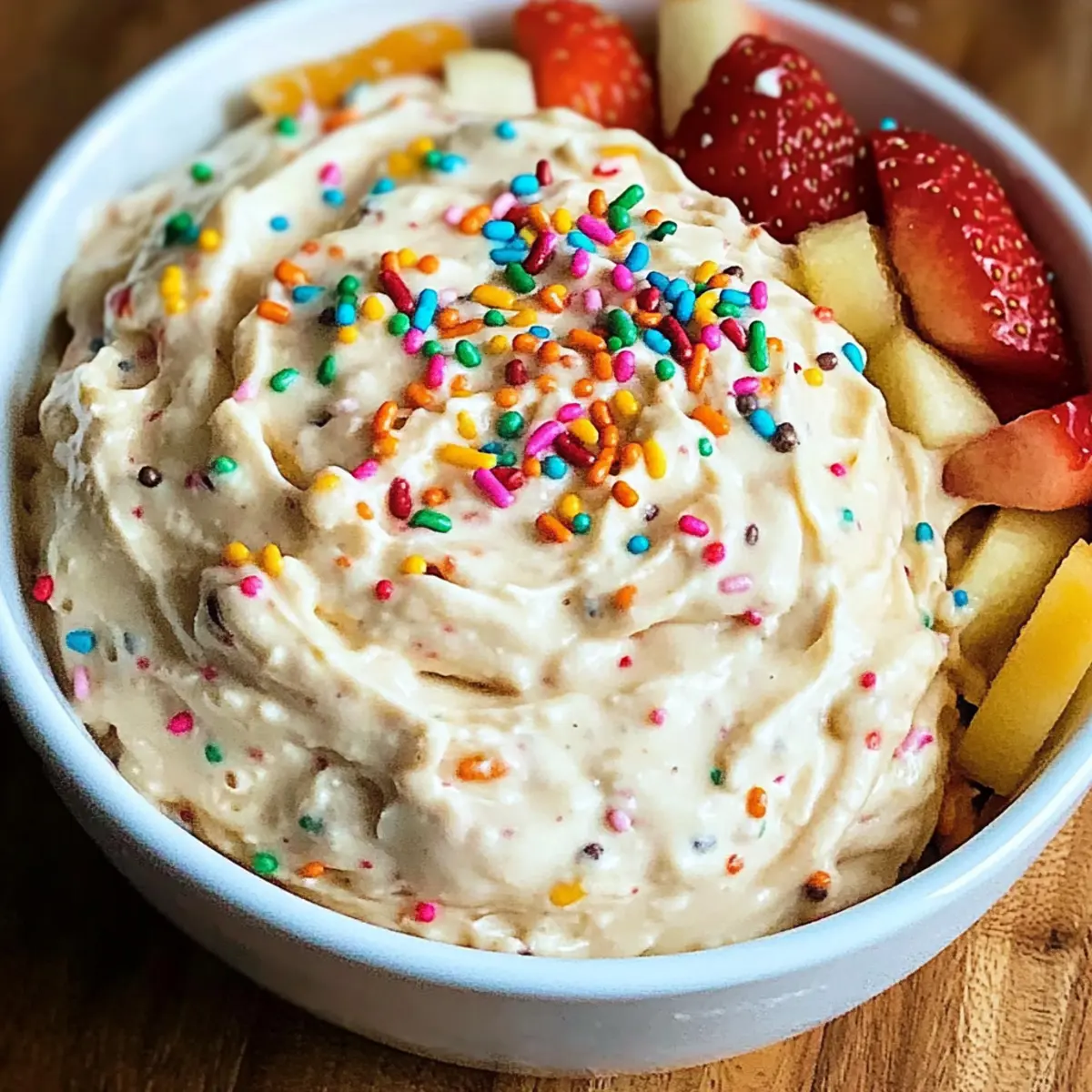 Beim Stöbern durch die Kinderzeit ist mir der Geschmack des beliebten Dunkaroo Dips wieder in den Sinn gekommen. Doch statt der klassischen Version präsentiere ich dir heute eine aufregende Neuinterpretation: die Hohe Protein Dunkaroo Dip! Dieses cremige Dip ist nicht nur ein echter Genuss, sondern auch eine perfekte Möglichkeit, deinem Snack-Repertoire einen gesunden Twist zu verleihen. Mit einfachsten Zutaten, die du sicherlich schon zuhause hast, zauberst du im Handumdrehen ein guilt-free Vergnügen, das sowohl bei Partys als auch beim gemütlichen Abend auf dem Sofa begeistert. Du wirst überrascht sein, wie schnell es geht, und wie viel Protein und Zufriedenheit dieser Dip liefert. Bereit, das Beste aus deiner Snack-Zeit herauszuholen? Lass uns gemeinsam loslegen! Warum wird dieser Dip dein neuer Favorit? Einfachheit: Die Zubereitung ist kinderleicht und erfordert nur wenige Zutaten, die du wahrscheinlich schon zu Hause hast. Gesundheit: Mit hohem Protein Anteil ist dieser Dip eine guilt-free Alternative zu traditionellen Snacks. Vielseitigkeit: Ob mit frischem Obst, Crackern oder sogar auf Toast – dieser Dip passt einfach zu allem. Nostalgie: Du wirst die Erinnerungen an die Kindheit wieder aufleben lassen, während du gleichzeitig gesund bleibst. Schnelligkeit: In weniger als 10 Minuten zubereitet, ist er ideal für spontane Snacks oder Partys. Anpassungsfähigkeit: Du kannst die Geschmacksrichtung nach Belieben variieren, indem du unterschiedliche Nussbutter oder Proteinpulver verwendest. Hohe Protein Dunkaroo Dip Zutaten • Entdecke die wichtigen Zutaten für deinen neuen Lieblingssnack! Für den Dip Griechischer Joghurt – Sorgt für Cremigkeit und ist die Basis des Dips; verwende dicken Joghurt für die beste Textur. Mandelbutter – Verleiht einen reichen, nussigen Geschmack und gesunde Fette; kann durch Erdnussbutter oder Cashewbutter ersetzt werden. Honig – Süßt den Dip auf natürliche Weise; Maple Sirup oder Agavendicksaft sind vegane Alternativen. Vanilleextrakt – Verstärkt den Geschmack mit einem süßen Aroma; kann weggelassen werden, um einen einfacheren Geschmack zu erzielen. Vanille-Protein-Pulver – Erhöht den Proteinanteil; kann weggelassen oder durch Schokoladen- oder Beerenalternativen ersetzt werden. Streusel (optional) – Für die Garnitur und zusätzliche visuelle Anziehungskraft. Viel Spaß beim Zubereiten deines hohen Protein Dunkaroo Dips! Schritt-für-Schritt-Anleitung für Hohe Protein Dunkaroo Dip Step 1: Zutaten kombinieren Beginne mit einer großen Schüssel und füge den griechischen Joghurt, die Mandelbutter, den Honig, den Vanilleextrakt und das Vanille-Protein-Pulver hinzu. Rühre alles mit einem Handmixer oder einem Löffel gut durch, bis eine glatte und cremige Konsistenz entsteht. Dies sollte etwa 2-3 Minuten dauern, damit alle Zutaten gut integriert werden und der Dip keine Klumpen mehr aufweist. Step 2: Abschmecken und anpassen Schmecke den Dip ab und passe die Süße bei Bedarf an, indem du mehr Honig hinzufügst. Wenn du eine noch cremigere Textur wünschst, kannst du zusätzlich etwas mehr griechischen Joghurt einrühren. Achte darauf, dass die Mischung gleichmäßig und cremig bleibt – die Farbe sollte hell und einladend sein. Step 3: Dip servieren Übertrage den Hohe Protein Dunkaroo Dip in eine schöne Servierschüssel. Wenn du magst, garniere ihn mit bunten Streuseln für einen zusätzlichen visuellen Reiz. Achte darauf, dass die Streusel gleichmäßig verteilt sind, um das Auge zu erfreuen und den Dip noch ansprechender zu gestalten. Step 4: Dippbegleiter vorbereiten Bereite währenddessen deine Dippbegleiter vor. Du kannst frische Obstscheiben wie Erdbeeren, Apfelstücke oder Bananen nutzen. Alternativ sind auch Vollkorncracker oder Brezelsticks hervorragende Optionen. Lege alles auf einen großen Teller, damit du und deine Gäste einfach zugreifen können. Step 5: Kühlen für bessere Textur Es ist empfehlenswert, den Dip für etwa 30 Minuten im Kühlschrank zu kühlen, bevor du ihn servierst. Dies verbessert die Textur und die Aromen ziehen besser in den Dip ein. Nach dem Kühlen sollte der Dip sich fest und angenehm kühl anfühlen, was den Genuss zusätzlich steigert. Step 6: Genießen Jetzt kannst du den Hohe Protein Dunkaroo Dip zusammen mit deinen Dippbegleitern in vollen Zügen genießen! Verwende eine Scheibe Obst oder einen Keks, tauche ihn in den Dip und erlebe den cremigen, proteinreichen Geschmack. Perfekt für Partys oder entspannte Abende – beim Genuss dieses Dips wirst du immer wieder schwärmen! Vorbereitung für den Hohe Protein Dunkaroo Dip Dieser Hohe Protein Dunkaroo Dip eignet sich hervorragend für die Vorbereitung und spart dir wertvolle Zeit in der Küche! Du kannst die Hauptzutaten wie griechischen Joghurt, Mandelbutter, Honig und vanille Protein Pulver bis zu 24 Stunden im Voraus kombinieren und im Kühlschrank aufbewahren, um die Aromen harmonisch vermischen zu lassen. Um die Frische zu maximieren, empfehle ich, den Dip erst kurz vor dem Servieren mit Streuseln zu garnieren. So bleibt der Dip optisch einladend und schmeckt einfach köstlich. Du kannst auch deine Dippbegleiter wie Obst oder Cracker am Vortag bereitstellen. So bist du bestens vorbereitet, um diesen gesunden Snack im Handumdrehen zu genießen, perfekt für hektische Tage! Aufbewahrungstipps für Hohe Protein Dunkaroo Dip Kühlschrank: Bewahre den Dip in einem luftdichten Behälter im Kühlschrank auf, wo er bis zu 3 Tage frisch bleibt. So bleibt die Cremigkeit erhalten. Einfrieren: Zwar nicht optimal, aber du kannst den Dip bis zu 1 Monat im Gefrierfach aufbewahren. Achte darauf, ihn in einem gefrierfesten Behälter zu lagern. Auftauen: Lasse den gefrorenen Dip über Nacht im Kühlschrank auftauen. Rühre ihn vor dem Servieren gut durch, um die Konsistenz zu verbessern. Servieren: Genieße den Dip am besten kalt oder leicht gekühlt. Ideal mit frischen Obststücken oder Crackern, um den Hochgenuss des hohem Protein Dunkaro
