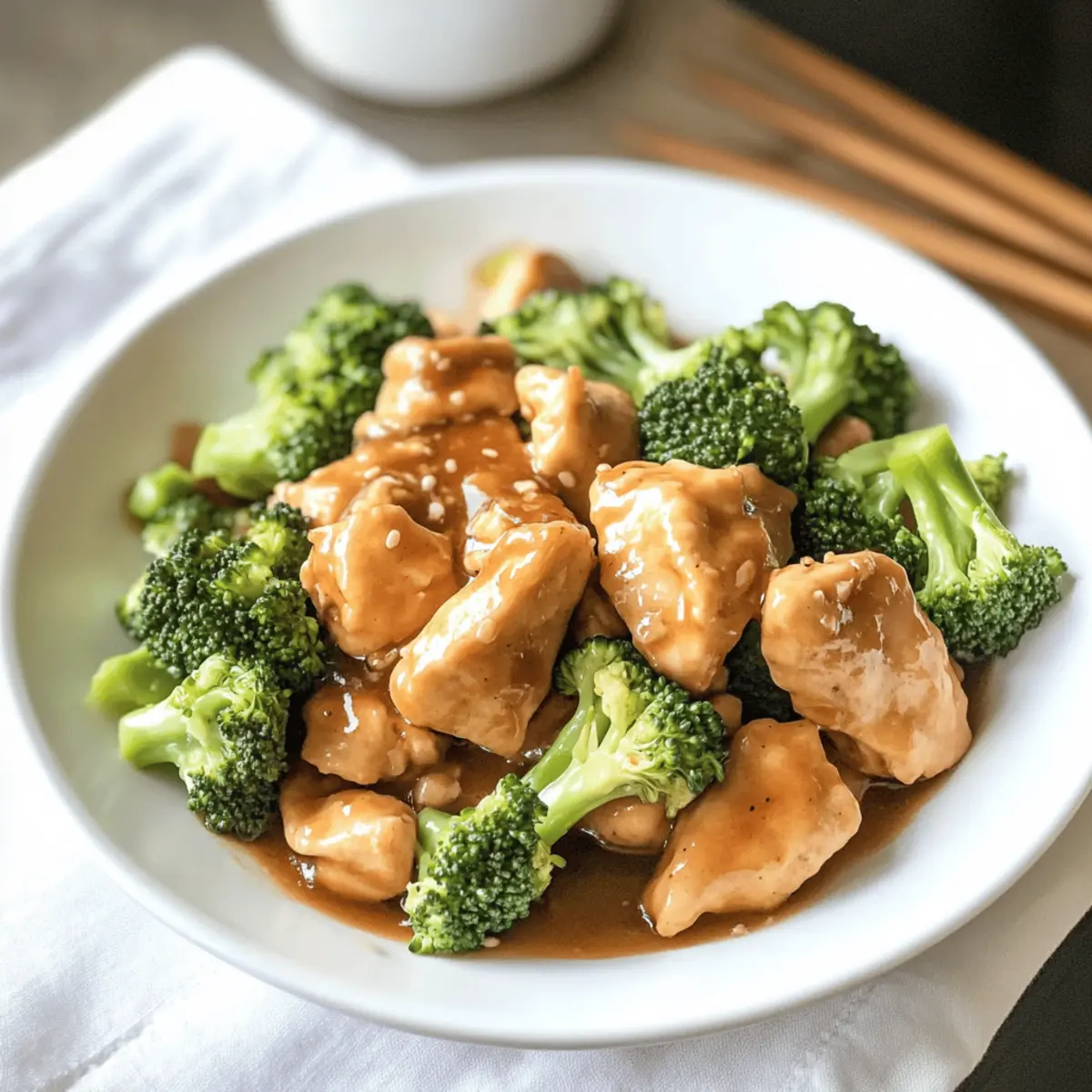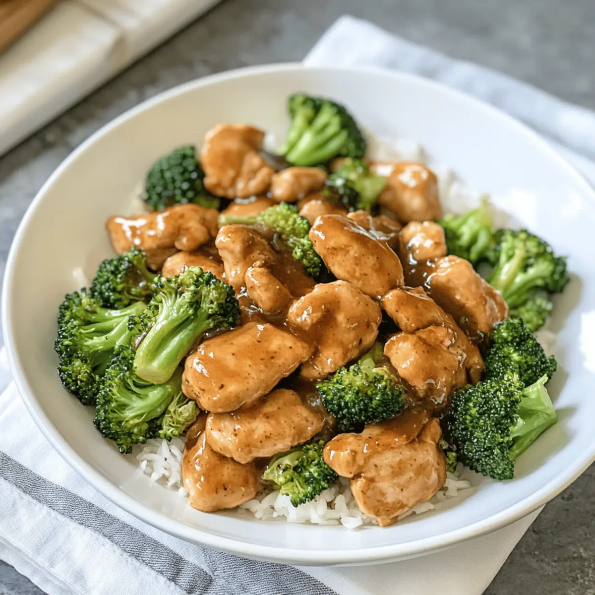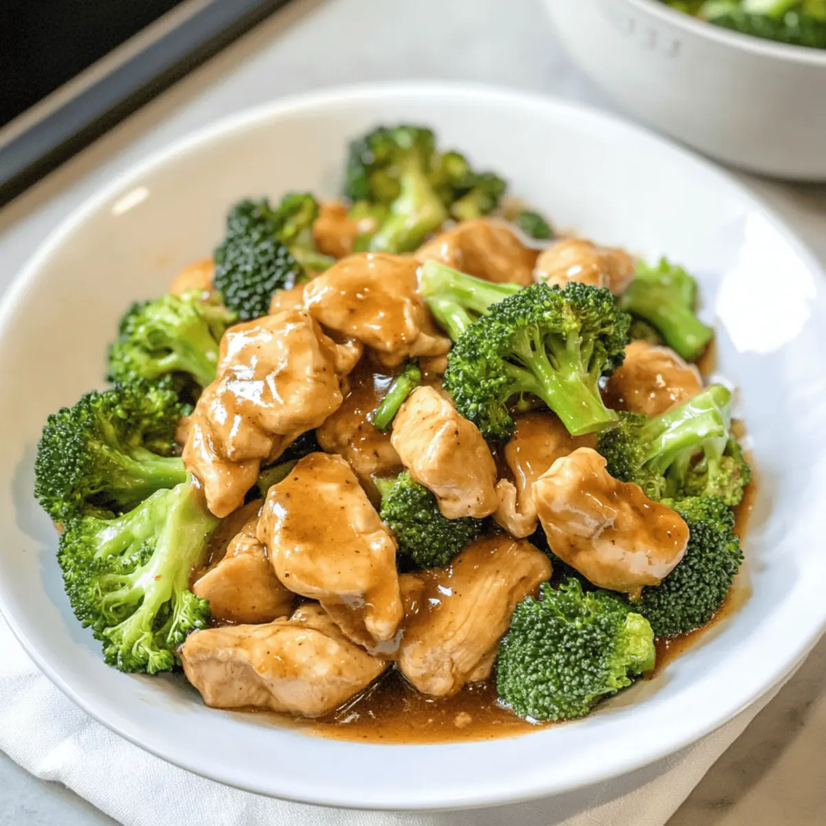 Das Aroma von frisch zubereitetem Hühnchen und knackigem Brokkoli hat mich sofort in den Bann gezogen, als ich diese leckere, selbstgemachte Variante eines Klassikers aus der chinesischen Küche entdeckte. Statt auf die Takeout-Option zurückzugreifen, kann ich jetzt mit diesem schnellen und einfachen Rezept für Hühnchen und Brokkoli meine Familie begeistern! Es ist nicht nur ein echter Publikumsliebling, sondern auch eine gesunde Wahl: Diese dish ist milchfrei und kann glutenfrei zubereitet werden, ganz nach deinem Geschmack. Stell dir vor, wie du in nur 30 Minuten ein intensives Geschmackserlebnis auf den Tisch zauberst – perfekt für hektische Wochentage. Bist du bereit, dein Essen auf die nächste Stufe zu heben und leckere Aromen zu genießen? Warum ist dieses Rezept so besonders? Einfachheit: Die Zubereitung ist kinderleicht und erfordert keine speziellen Kochkünste – perfekt für jeden Hobbykoch! Gesunde Zutaten: Frisches Hühnchen und Brokkoli liefern wichtige Nährstoffe und machen das Gericht zu einer gesunden Wahl. Vielseitigkeit: Du kannst ganz nach Belieben variieren, indem du zum Beispiel Hähnchen durch Tofu ersetzt oder zusätzliches Gemüse wie Paprika verwendest. Schnell zubereitet: In nur 30 Minuten hast du eine köstliche Mahlzeit auf dem Tisch, die selbst an stressigen Tagen funktioniert. Familienfreundlich: Dieses Rezept ist so schmackhaft, dass es selbst die kleinsten Feinschmecker begeistern wird! Probiere es auch mit einer Beilage wie Brokkoli Pasta Zitronen, um die Vielfalt deiner Abendessen zu erweitern. Hühnchen und Brokkoli Zutaten • Für dieses köstliche Rezept benötigst du die folgenden Zutaten, um dein Hühnchen und Brokkoli perfekt zuzubereiten: Für das Hühnchen Hühnchenbrust ohne Knochen und Haut – etwa 1 ½ Pfund, liefert die Hauptproteinquelle. Wasser – dient sowohl zur Marinade als auch zur Konsistenz des Saucenmixes; keine Substitutionen nötig. Backpulver – hilft, eine luftigere Saucenstruktur zu erzeugen; entscheidend für die Belüftung der Sauce. Knoblauch (gehackt) – verleiht dem Gericht ein herrliches Aroma; frisch ist am besten, aber auch aus dem Glas kann verwendet werden. Für das Gemüse Brokkoli-Röschen – 4 Tassen, gekocht, um Frische und Knackigkeit zu bieten. Wasserkastanien (optional, in Scheiben) – fügen zusätzlichen Crunch und Textur hinzu; kann weggelassen werden für ein einfacheres Gericht. Für die Sauce Reduzierte Sojasauce – sorgt für einen herzhaften Umami-Geschmack; als glutenfreier Ersatz kann Tamari verwendet werden. Brauner Zucker – fügt Süße hinzu und balanciert die herzhaften Elemente aus; Menge nach Geschmack anpassen. Speisestärke – verdickt die Marinade, verwende 2 Teelöffel (oder 1 Esslöffel für glutenfreie Variante). Reisessig – sorgt für Säure und Frische; keine Substitutionen nötig. Pflanzenöl – wird zum Braten des Hühnchens verwendet; kann für mehr Geschmack durch Sesamöl ersetzt werden. Zusätzliches Wasser – zur Anpassung der Saucenkonsistenz; nach Bedarf hinzufügen. Mit diesen Zutaten ist dein Hühnchen und Brokkoli ein voller Erfolg. Genieße den intensiven Geschmack und die gesundheitlichen Vorteile dieses gerichts – ganz ohne Milchprodukte! Schritt-für-Schritt-Anleitung für Köstliches Hühnchen und Brokkoli Step 1: Hühnchen marinieren Verquirle in einer Schüssel die Marinade-Zutaten: Sojasauce, Wasser, Backpulver und Speisestärke. Schneide das Hühnchenbrust in dünne Scheiben und gib es in die Marinade. Lass das Hühnchen während der Vorbereitung der anderen Zutaten etwa 15 Minuten marinieren, damit es die Aromen gut aufnehmen kann. Step 2: Brokkoli dämpfen Schneide den Brokkoli in kleine Röschen und lege sie in eine mikrowellengeeignete Schüssel. Dämpfe den Brokkoli in der Mikrowelle für 3 Minuten, bis er hellgrün und leicht weich, aber noch knackig ist. Nach dem Dämpfen kannst du den Brokkoli beiseite stellen, während du die Sauce vorbereitest. Step 3: Sauce zubereiten In einer separaten Schüssel verrührst du die Zutaten für die Sauce: Sojasauce, braunen Zucker, Knoblauch, Speisestärke, Reisessig, Pflanzenöl und zusätzliches Wasser. Mische alles gut, bis eine homogene Masse entsteht. Die Sauce sorgt für den herzhaften Geschmack in deinem köstlichen Hühnchen und Brokkoli. Step 4: Hühnchen braten Erhitze eine große, antihaftbeschichtete Pfanne bei mittlerer bis hoher Temperatur. Füge etwas Pflanzenöl hinzu, wenn nötig. Brate das marinierte Hühnchen für etwa 5 Minuten, bis es goldbraun und durchgegart ist. Achte darauf, das Hühnchen regelmäßig zu wenden, damit es gleichmäßig brät. Step 5: Kombinieren und eindicken Gib die zuvor zubereitete Sauce in die Pfanne zum Hühnchen und füge den gedämpften Brokkoli hinzu. Wenn du sie verwendest, füge auch die Wasserkastanien hinzu. Rühre alles gut um, damit das Gemüse und das Hühnchen gleichmäßig mit der Sauce bedeckt sind. Lasse das Gericht etwa 2 Minuten köcheln, bis die Sauce eindickt. Falls nötig, kannst du mit etwas Wasser die Konsistenz anpassen. Lagerungstipps für Hühnchen und Brokkoli Raumtemperatur:: Serviere dein Hühnchen und Brokkoli frisch zubereitet. Es sollte nicht länger als 2 Stunden bei Raumtemperatur stehen, um die Lebensmittelsicherheit zu gewährleisten. Kühlschrank:: Bewahre Reste in einem luftdichten Behälter auf und genieße sie innerhalb von 3 Tagen. So bleibt das Gericht frisch und lecker, bis du es wieder erhitzen möchtest. Gefriertruhe:: Wenn du das Gericht länger aufbewahren möchtest, friere das Hühnchen und Brokkoli in einem gefrierfesten Behälter ein. So bleibt es bis zu 2 Monate haltbar. Wiedererwärmen:: Erwärme die Reste am besten auf dem Herd, indem du etwas Wasser hinzufügst, um die Sauce geschmeidig zu halten. So bleibt dein Hühnchen und Brokkoli saftig und voller Geschmack. Variationen und Substitutionen Lass deiner Kreativität freien Lauf und passe dieses Rezept nach deinen Vorlieben an! Vegan: Ersetze Hühnch