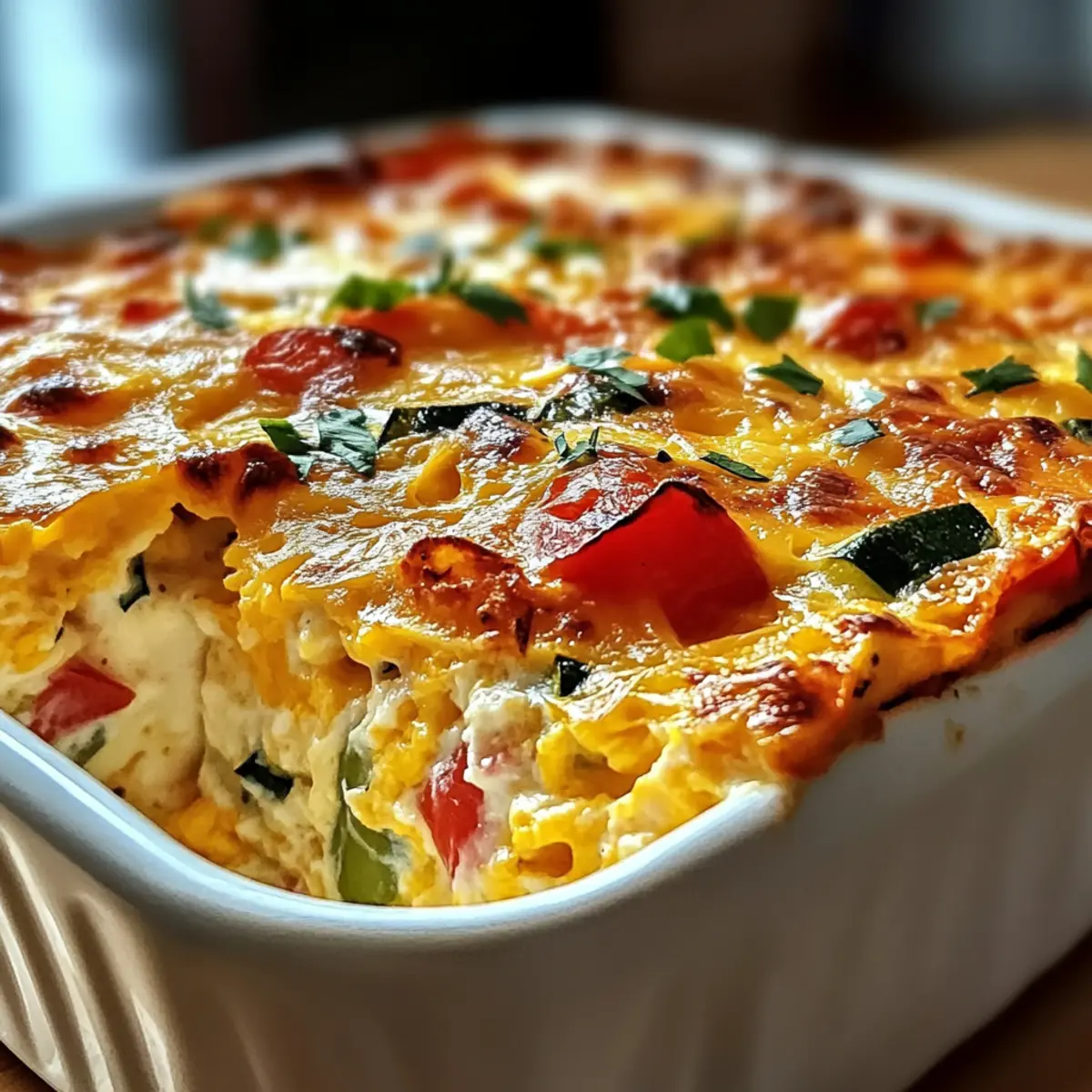 Wenn der Auflauf nach dem Backen noch zu flüssig ist, kann es sein, dass er länger backen muss. Ich empfehle, ihn in 5-Minuten-Schritten weiterzubacken und regelmäßig zu überprüfen, bis die Oberseite goldbraun und die Eier vollständig gestockt sind.