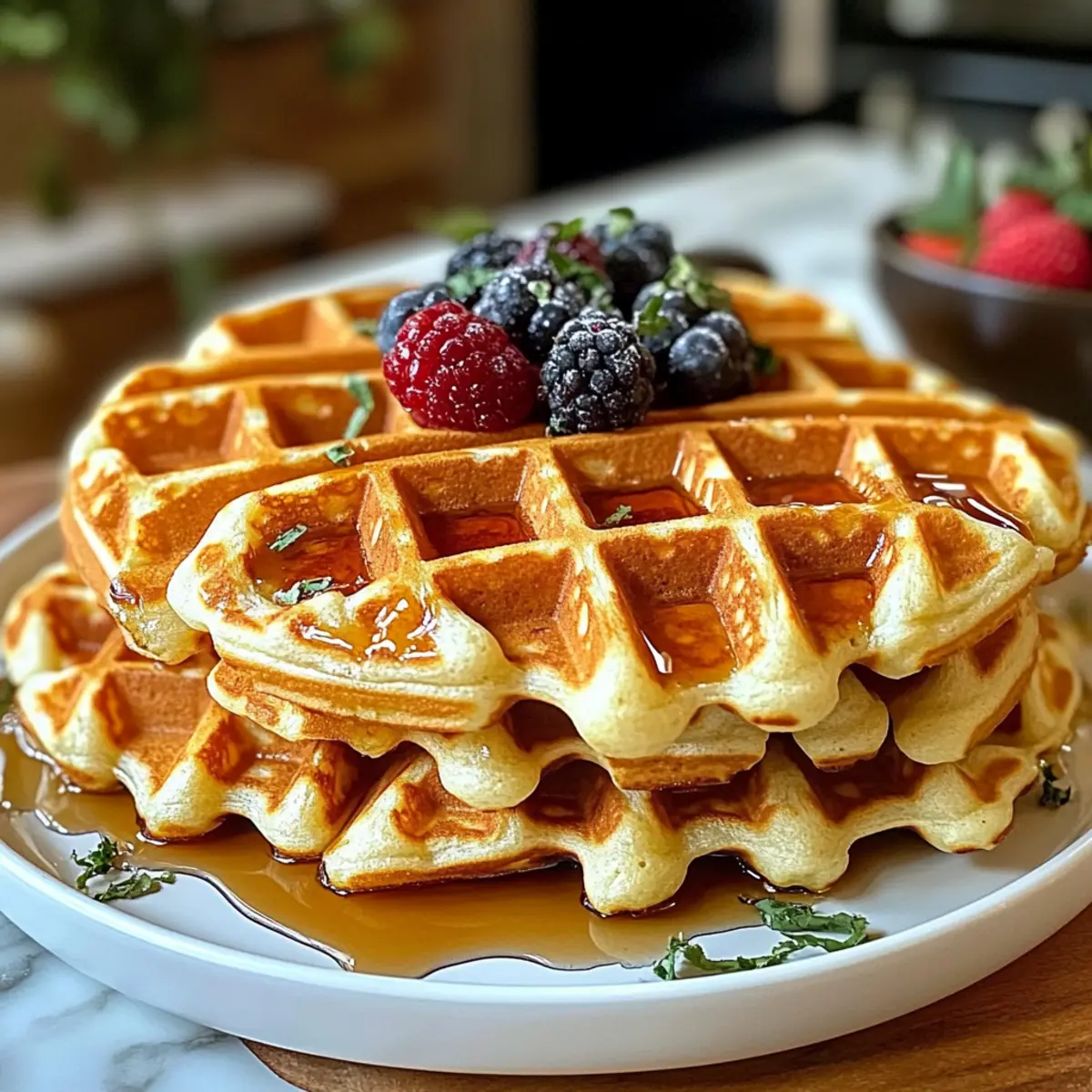 Jeden Morgen vom verführerischen Duft frisch zubereiteter Waffeln geweckt zu werden, klingt nach einem Traum, oder? Diese Hüttenkäse Waffeln sind mehr als nur ein einfacher Frühstücksgenuss; sie sind ein köstliches Highlight, das sowohl Erwachsene als auch Kinder begeistert. Mit nur wenigen Zutaten zubereitet, sind sie perfekt für hektische Wochentage oder entspannte Wochenendbrunches. Zudem sind sie glutenfrei und stecken voller gesunder Nährstoffe – ein wahrer Gewinn für alle, die auf eine bewusste Ernährung achten. Warum also nicht einmal etwas Neues ausprobieren und sich von dieser einfachen Waffel-Variante verführen lassen? Welche Toppings würden Sie dazu wählen? Warum sind Hüttenkäse Waffeln so besonders? Einfachheit, denn die Zubereitung könnte nicht leichter sein! Mit nur wenigen Zutaten zaubern Sie im Handumdrehen ein köstliches Frühstück. Gesundheitlich vorteilhaft sind diese Waffeln, da sie reich an Protein und Ballaststoffen sind – ideal für einen energiereichen Start in den Tag. Vielseitig, können Sie verschiedene Toppings hinzufügen, von frischen Beeren bis zu Nussbutter, um jede Portion zu verfeinern und zu variieren. Schnell und unkompliziert, sind sie perfekt für hektische Morgen und sogar für entspannte Wochenenden. Wenn Sie nach einer glutenfreien Option suchen, sind diese Hüttenkäse Waffeln genau das Richtige für Sie – genießen Sie den herzhaften Genuss ohne schlechtes Gewissen! Hüttenkäse Waffeln Zutaten • Um den perfekten Geschmack und die beste Konsistenz zu erzielen, verwenden Sie frische, hochwertige Zutaten. Für den Teig Hüttenkäse – sorgt für Feuchtigkeit und Protein; wählen Sie fettreduzierte oder Vollfett-Variante nach Vorliebe. Haferflocken – dienen als Haupttrockenbestandteil und verleihen der Waffel eine vollmundige Textur; kann durch Mandelmehl ersetzt werden für einen nussigen Geschmack. Eier – fungieren als Bindemittel und verleihen den Waffeln einen reichhaltigen Geschmack; für eine vegane Option verwenden Sie Leinsameneier. Vanilleextrakt – sorgt für aromatische Süße und verbessert den Geschmack; optional, aber empfehlenswert. Zucker – bringt Süße ins Spiel, um die herzhaften Noten auszugleichen; Honig oder Ahornsirup können als natürliche Alternativen verwendet werden. Milch/Wasser – zur Anpassung der Konsistenz des Teigs, damit dieser gut vermischt wird; jede Milchart (tierisch oder pflanzlich) kann verwendet werden. Toppings (nach Belieben) Frische Beeren – für eine fruchtige Note und zusätzliche Vitamine. Griechischer Joghurt – bietet Cremigkeit und zusätzlichen Proteingehalt. Ahornsirup – für eine süße Melange und extra Genuss. Genießen Sie diese Hüttenkäse Waffeln und experimentieren Sie mit unterschiedlichen Toppings, um sie nach Ihrem Geschmack zu verfeinern! Schritt-für-Schritt-Anleitung für Hüttenkäse Waffeln Step 1: Zutaten mixen Geben Sie in einen Mixer den Hüttenkäse, die Haferflocken, die Eier, den Vanilleextrakt und den Zucker. Mischen Sie alles auf hoher Stufe für etwa 1-2 Minuten, bis die Masse glatt ist. Achten Sie darauf, dass keine Klumpen mehr vorhanden sind, damit Ihre Hüttenkäse Waffeln eine gleichmäßige Konsistenz haben. Step 2: Waffeleisen vorheizen Heizen Sie Ihr Waffeleisen auf die empfohlene Temperatur vor, normalerweise etwa 200 °C. Wenn das Waffeleisen vollständig aufgewärmt ist, wird es leichter, eine knusprige Kruste zu bekommen. Verwenden Sie ggf. etwas Öl oder Butter, um das Waffeleisen leicht zu fetten, damit die Waffeln nicht ankleben. Step 3: Waffeln backen Gießen Sie 1/2 bis 3/4 Tasse des vorbereiteten Teigs in das heiße Waffeleisen. Schließen Sie das Waffeleisen und lassen Sie die Waffeln für etwa 3-4 Minuten backen, oder bis die Waffeln goldbraun und knusprig sind. Überprüfen Sie den Garzustand, indem Sie das Waffeleisen vorsichtig öffnen; die Waffeln sollten sich leicht lösen lassen. Step 4: Waffeln servieren Nehmen Sie die Waffeln vorsichtig aus dem Waffeleisen und servieren Sie sie warm. Sie können diese leckeren Hüttenkäse Waffeln mit frischen Beeren, griechischem Joghurt oder einem Schuss Ahornsirup garnieren. Genießen Sie die Vielfalt der Toppings und machen Sie jedes Frühstück zu einem besonderen Erlebnis. Aufbewahrungstipps für Hüttenkäse Waffeln Zimmertemperatur: Lassen Sie die Waffeln auf einem Kuchengitter abkühlen, damit sie nicht schwitzen und weich werden. Bei Raumtemperatur halten sie sich bis zu 1 Tag. Kühlschrank: Lagern Sie die Waffeln in einem luftdichten Behälter im Kühlschrank für bis zu 3 Tage. So bleiben sie frisch und schmackhaft. Gefrierfach: Die Waffeln können eingefroren werden! Wickeln Sie sie einzeln in Frischhaltefolie und legen Sie sie in einen Gefrierbeutel. Sie halten sich bis zu 2 Monate. Aufwärmen: Zum Aufwärmen die gefrorenen Waffeln einfach im Toaster oder in der Mikrowelle erwärmen, bis sie durchgehend heiß sind. So schmecken die Hüttenkäse Waffeln fast wie frisch zubereitet! Hüttenkäse Waffeln für die Vorbereitung Diese Hüttenkäse Waffeln sind perfekt für die Vorbereitung! Sie können den Waffelteig bis zu 24 Stunden im Voraus zubereiten. Mischen Sie einfach alle Zutaten in Ihrem Mixer und bewahren Sie die Mischung in einem luftdichten Behälter im Kühlschrank auf. Achten Sie darauf, vor dem Backen gut durchzurühren, da sich die Zutaten setzen können. Die Waffeln können auch im Voraus gebacken werden und halten sich bis zu 3 Tage im Kühlschrank. Um die Qualität zu erhalten, legen Sie die Waffeln zwischen Lagen von Backpapier und bewahren Sie sie in einem verschlossenen Gefäß auf. Wenn Sie bereit sind, sie zu genießen, einfach die Waffeln im Toaster oder in der Mikrowelle aufwärmen, und schon haben Sie ein schnelles Frühstück! Was passt zu Hüttenkäse Waffeln? Verleihen Sie Ihrem Frühstück mit diesen köstlichen Begleitern eine besondere Note, die die Hüttenkäse Waffeln perfekt ergänzen. Frische Beeren: Bieten eine fruchtige Süß