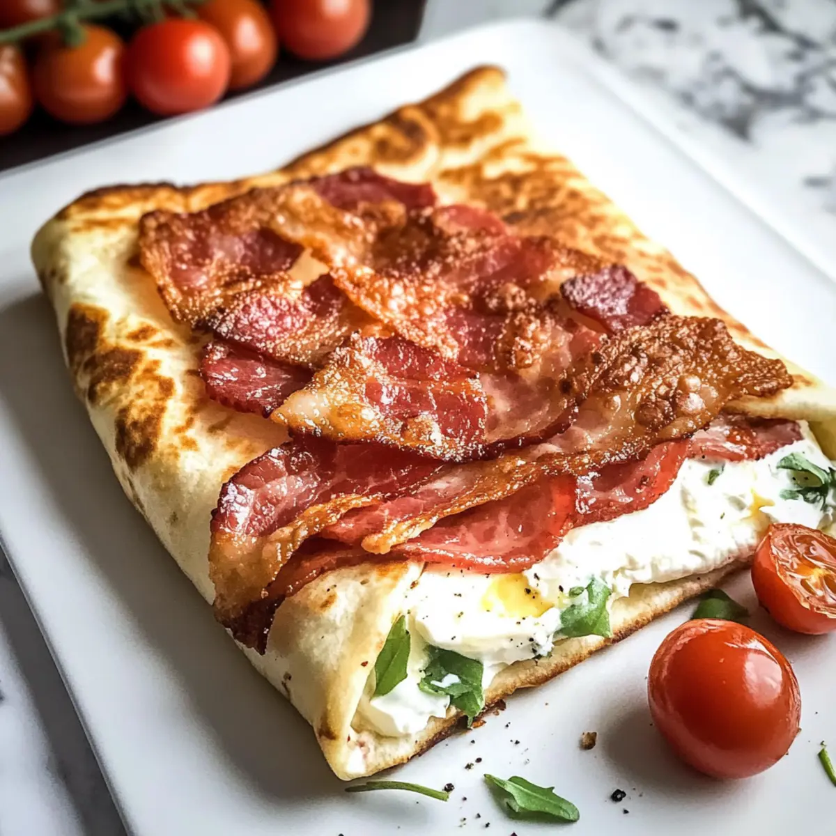Ich kann das Knistern hören, wenn die Hüttenkäse-Wraps im Ofen backen, eine magische Mischung aus Einfachheit und Nährstoffreichtum. Diese Wraps sind eine genussvolle Entdeckung für alle, die eine gesunde, hochproteinhaltige Mahlzeit suchen, ohne dabei auf Geschmack zu verzichten. Mit über 21g Eiweiß pro Portion und nur wenigen Zutaten sind sie perfekt für schnelles Meal-Prep oder als leckeres Mittagessen für unterwegs. Ob als low-carb Snack für den kleinen Hunger oder als vielseitiger Wrap für ein herzhaftes Frühstück – diese Hüttenkäse-Wraps werden schnell zu deinem neuen Lieblingsessen. Welche Füllungen wirst du für deine Kreation wählen? Warum sind Hüttenkäse-Wraps so besonders? Gesundheit auf dem Teller: Diese Hüttenkäse-Wraps sind nicht nur kohlenhydratarm, sondern bieten auch satte 21g Eiweiß pro Portion – ideal für eine nahrhafte Zwischenmahlzeit oder ein sättigendes Mittagessen. Einfachheit für jeden Tag: Der Prozess ist schnell und unkompliziert: Einfach alle Zutaten mixen und backen! So hast du im Handumdrehen einen köstlichen Snack für jede Gelegenheit. Vielseitige Füllmöglichkeiten: Du kannst die Wraps mit einer Vielzahl von Zutaten füllen, sei es gemischtes Gemüse, Hähnchen oder sogar einen süßen Aufstrich – hier sind deiner Kreativität keine Grenzen gesetzt! Crowd-Pleaser: Egal ob du Freunde, Familie oder dich selbst bewirten möchtest, diese Wraps sind sicher ein Hit und bringen Abwechslung auf den Tisch. Hüttenkäse-Wraps Zutaten • Diese einfachen Zutaten machen die Hüttenkäse-Wraps zu einem Proteinkick! Für den Wrap: Hüttenkäse – sorgt für die cremige Basis und hohen Proteingehalt; alternativ kannst du Ricotta verwenden. Große Eier – binden die Wraps und sorgen für Stabilität; vegane Variante: Flachsamenmehl mit Wasser verwenden. Geriebener Parmesan – fügt Geschmack und Textur hinzu; ersetzbar durch Mozzarella oder Hefe für eine milchfreie Option. Knoblauchpulver – verleiht eine herzhafte Note; frischer Knoblauch ist eine intensivere Variante. Italienische Gewürzmischung – bringt Kräuternoten ins Spiel; kannst auch mit getrockneter Oregano oder Basilikum variieren. Diese Hüttenkäse-Wraps sind nicht nur einfach zuzubereiten, sondern auch perfekt für jede Mahlzeit! Step-by-Step Instructions for Hüttenkäse-Wraps Step 1: Ofen vorheizen Heize deinen Ofen auf 175°C vor und lege ein großes Backblech mit Backpapier aus. Fette das Papier leicht ein, um ein Ankleben der Hüttenkäse-Wraps zu verhindern. Dies sorgt dafür, dass die Wraps später einfach abgezogen werden können und eine gleichmäßige Backfarbe erhalten. Step 2: Zutaten mixen Gib Hüttenkäse, die großen Eier, geriebenen Parmesan, Knoblauchpulver und italienische Gewürzmischung in einen Mixer. Mixe alle Zutaten etwa 1 Minute lang, bis eine glatte, cremige Masse entsteht. Achte darauf, dass keine Klümpchen sichtbar sind, da dies die Textur deiner Wraps beeinträchtigen könnte. Step 3: Mischung auf das Backblech geben Gieße die fertige Mischung auf das vorbereitete Backblech. Nutze einen Silikonspatel, um die Masse gleichmäßig zu verteilen und forme ein dünnes Rechteck. Es ist wichtig, die Mischung gleichmäßig zu verstreichen, damit die Hüttenkäse-Wraps gleichmäßig backen und die perfekte Konsistenz erhalten. Step 4: Backen Schiebe das Backblech in den vorgeheizten Ofen und backe die Hüttenkäse-Wraps für 30 bis 35 Minuten. Achte darauf, dass die Ränder leicht goldbraun werden und die Mitte fest gesetzt ist. Diese visuelle Cue zeigt dir, dass die Wraps fertig sind, um eine optimale Konsistenz zu gewährleisten. Step 5: Abkühlen lassen Nachdem die Backzeit vorüber ist, lasse die Wraps vollständig auf dem Blech abkühlen. Dies ist entscheidend, da sie beim Abkühlen fester werden und leichter abzuziehen sind. Geduldigt dich einige Minuten, damit du keine brüchigen Wraps erhältst, die beim Füllen zerfallen könnten. Step 6: Wraps abziehen und füllen Sobald die Hüttenkäse-Wraps vollständig abgekühlt sind, ziehe sie vorsichtig vom Backpapier ab. Du kannst sie nach Belieben in Stücke schneiden oder auch ganz lassen. Jetzt ist es an der Zeit, sie mit deinen Lieblingszutaten zu füllen und kreativ zu werden, egal ob herzhaft oder süß. Was passt zu Hüttenkäse-Wraps? Ich kann das Knistern hören, wenn die Hüttenkäse-Wraps im Ofen backen, eine magische Mischung aus Einfachheit und Nährstoffreichtum. Crispy Salat: Ein leichter, knackiger Salat mit frischem Gemüse bringt Farbe und Geschmack auf den Teller. Perfekt als lebendige Beilage, die die Wraps ergänzt. Gegrilltes Gemüse: Zartes, gegrilltes Gemüse wie Zucchini und Paprika fügt herzhaftige Aromen hinzu. Ihre natürliche Süße harmoniert wunderbar mit dem herben Geschmack der Wraps. Scharfe Salsa: Eine würzige Salsa aus Tomaten, Zwiebeln und Koriander verleiht frische und Schärfe. Der Kontrast zur Cremigkeit der Wraps sorgt für einen aufregenden Geschmacksmix. Avocado-Creme: Eine cremige Avocado-Dip oder Guacamole bringt eine köstliche, feine Note. Sie ist reichhaltig und passt perfekt zwischen die Füllungen. Zaziki-Dip: Ein erfrischender Joghurt-Dip mit Gurken und Knoblauch ergänzt die Wraps und bringt eine angenehme Kühle in jeden Bissen. Ideal für den schnellen Genuss. Kräutertee: Ein glasierter Kräutertee wie Pfefferminze oder Kamille rundet die Mahlzeit ab und bietet eine entspannende Komponente. Das perfekte Getränk für einen abwechslungsreichen Genuss. Vorbereitung der Hüttenkäse-Wraps für stressfreie Mahlzeiten Die Hüttenkäse-Wraps sind ideal fürMeal Prep und lassen sich hervorragend im Voraus zubereiten! Du kannst die Wrap-Mischung bis 24 Stunden vorher anrühren und im Kühlschrank aufbewahren, um Zeit zu sparen. Achte darauf, die Mischung gut zu verschließen, damit sie frisch bleibt und nicht austrocknet. Wenn du die Wraps gebacken hast, lasse sie vollständig abkühlen und lagere sie in einem luftdichten Behälter für bis zu 5 T