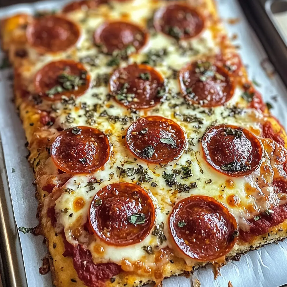 Während ich durch die Gänge des Supermarkts schlenderte, fiel mir die Idee für eine ganz besondere Pizza ein – die Hüttenkäse-Fladenbrot-Pizza. Diese köstliche Kreation bringt nicht nur frischen Wind in die Küche, sondern sorgt auch für ein leichtes und proteinreiches Abendessen, das die ganze Familie lieben wird. Der Kartoffelkäse verleiht dem Teig eine wunderbare Textur, und in Kombination mit zart geschmolzenem Mozzarella und würzigem Puten-Pepperoni wird aus einem gewöhnlichen Wochentag ein kleines Festmahl. Und das Beste daran? Sie ist in kürzester Zeit zubereitet und eignet sich perfekt als gesunde Alternative zu fettigen Fast-Food-Pizzen. Neugierig, wie einfach und lecker diese Rezeptur ist? Lass uns gemeinsam die Schritte entdecken! Warum ist diese Pizza die perfekte Wahl? Gesundheitsbewusst: Diese Hüttenkäse-Fladenbrot-Pizza bietet eine köstliche Möglichkeit, proteinreiche Nährstoffe in deine Ernährung einzubauen, ohne auf Geschmack zu verzichten. Vielseitig: Mit verschiedenen Topping-Optionen, von Gemüse bis hin zu Puten-Pepperoni, ist für jeden etwas dabei. Einfach und schnell: In weniger als einer Stunde zubereitet, ist sie die ideale Lösung für beschäftigte Wochentage. Leichter Genuss: Diese Pizza ist eine gesunde Alternative zu herkömmlichen Fast-Food-Pizzen und hilft, das Bedürfnis nach Komfortessen zu stillen. Probiere sie auch mal mit einem frischen Salat oder einem leichten Dessert wie Cheesecake Stuffed Strawberries, um das Festmahl zu vervollständigen! Hüttenkäse-Fladenbrot-Pizza Zutaten • Diese köstliche Fladenbrot-Pizza erfordert frische und gesunde Zutaten. Für den Teig Hüttenkäse – sorgt für Struktur und Feuchtigkeit; verwende die kleine Körnung für eine glattere Textur. Eiklar – bindet den Teig und hält ihn leicht; ganzes Ei kann für einen reichhaltigeren Geschmack verwendet werden. Mehl – gibt Struktur; für eine glutenfreie Option kann Mandelmehl verwendet werden. Knoblauchpulver – intensiviert den Geschmack des Teigs; frischer Knoblauch sorgt für ein frischeres Aroma. Italienische Gewürzmischung – verleiht klassische Aromen; frische Kräuter bringen eine besondere Note. Salz – hebt den Geschmack hervor; nach Belieben anpassen. Pfeffer – fügt eine leichte Schärfe hinzu; optional. Rote Pfefferflocken – ideal für zusätzliche Würze; kann für eine mildere Pizza weggelassen werden. Für die Beläge Marinara-Sauce – dient als Pizzaboden; eine hochwertige Sauce wie Rao’s wird empfohlen. Mozzarella-Käse – schmilzt wunderbar; für eine leichtere Version kann fettarmer Käse verwendet werden. Puten-Pepperoni – magerer als herkömmliches Pepperoni; kann durch Gemüse für eine vegetarische Option ersetzt werden. Schritt-für-Schritt-Anleitung für Hüttenkäse-Fladenbrot-Pizza Step 1: Ofen vorheizen Heize deinen Ofen auf 175°C (350°F) vor und lege ein Backblech mit Backpapier aus. Dies sorgt dafür, dass die Hüttenkäse-Fladenbrot-Pizza gleichmäßig gebacken wird und nicht anhaften bleibt. Bereite währenddessen alle Zutaten vor, sodass du sie schnell zu einem glatten Teig vermengen kannst. Step 2: Teig zubereiten Gib den Hüttenkäse, die Eiklar, das Mehl, Knoblauchpulver, italienische Gewürzmischung, Salz, Pfeffer und rote Pfefferflocken in eine Küchenmaschine. Mixe alles gut durch, bis eine glatte Masse entsteht. Dies dauert etwa 1-2 Minuten. Der Teig sollte eine cremige Konsistenz haben, ohne große Klumpen. Step 3: Teig formen Gieße den vorbereiteten Teig auf das Backblech und verteile ihn zu einem 0,5 cm dicken Kreis. Achte darauf, die Ränder gleichmäßig zu formen, indem du sie etwas dicker gestaltest, damit sie beim Backen nicht verbrennen. Der Teig sollte eine Höhe haben, die ihm Stabilität verleiht. Step 4: Backen Backe den Teig im vorgeheizten Ofen für etwa 32-35 Minuten. Er ist fertig, wenn er goldbraun und fest geworden ist. Achte darauf, dass die Ränder leicht knusprig sind, bevor du ihn aus dem Ofen nimmst. Lass ihn nach dem Backen kurz abkühlen, während du die Beläge vorbereitest. Step 5: Belegen der Pizza Verteile eine großzügige Schicht Marinara-Sauce auf der oberen Seite des gebackenen Teigs. Achte darauf, die Sauce gleichmäßig zu verteilen, sodass jede Bissportion köstlich ist. Danach kannst du den Mozzarella-Käse und die Puten-Pepperoni gleichmäßig auf der Sauce platzieren. Step 6: Fertig backen Bringe die belegte Hüttenkäse-Fladenbrot-Pizza zurück in den Ofen und backe sie für weitere 5 Minuten. Alternativ kannst du die Pizza auch für 2 Minuten unter den Grill stellen, um eine besonders goldene Käseoberfläche zu erzielen. Achte darauf, dass der Käse nicht zu dunkel wird. Step 7: Abkühlen und Servieren Lass die Pizza für 7-10 Minuten abkühlen, damit die Zutaten sich setzen. Schneide sie dann in Stücke und serviere sie warm. Diese Hüttenkäse-Fladenbrot-Pizza ist perfekt als leichtes Abendessen oder Snack und wird deine Familie begeistern. Was passt zur Hüttenkäse-Fladenbrot-Pizza? Stell dir vor, wie sich der köstliche Duft von frisch gebackenem Brot mit einer leichten Note von italienischen Gewürzen in deinem Zuhause verteilt und die Vorfreude auf das Abendessen steigen lässt. Gemischter grüner Salat: Frische Blätter mit leichten Vinaigrette sorgen für einen knackigen und gesunden Kontrast zur herzhaften Pizza. Gemüsesticks mit Dip: Knackiges Gemüse wie Karotten und Paprika geschnitten und mit einem leichten Hummus-Dip serviert, bringt zusätzlich Frische auf den Tisch. Gegrilltes Gemüse: Bunte Auswahl an Gemüse wie Zucchini, Auberginen und Paprika, leicht gewürzt und gegrillt, ergänzt die Aromen der Pizza perfekt. Prosecco oder spritziger Weißwein: Ein glas Prosecco bringt nicht nur prickelnde Frische, sondern harmoniert auch wunderbar mit der pikanten Note des Puten-Pepperonis. Obstsalat: Eine süße Mischung aus saisonalem Obst, wie Erdbeeren und Melonen, stellt einen erfrischenden Abschluss zu deinem herzhaften Abendessen d