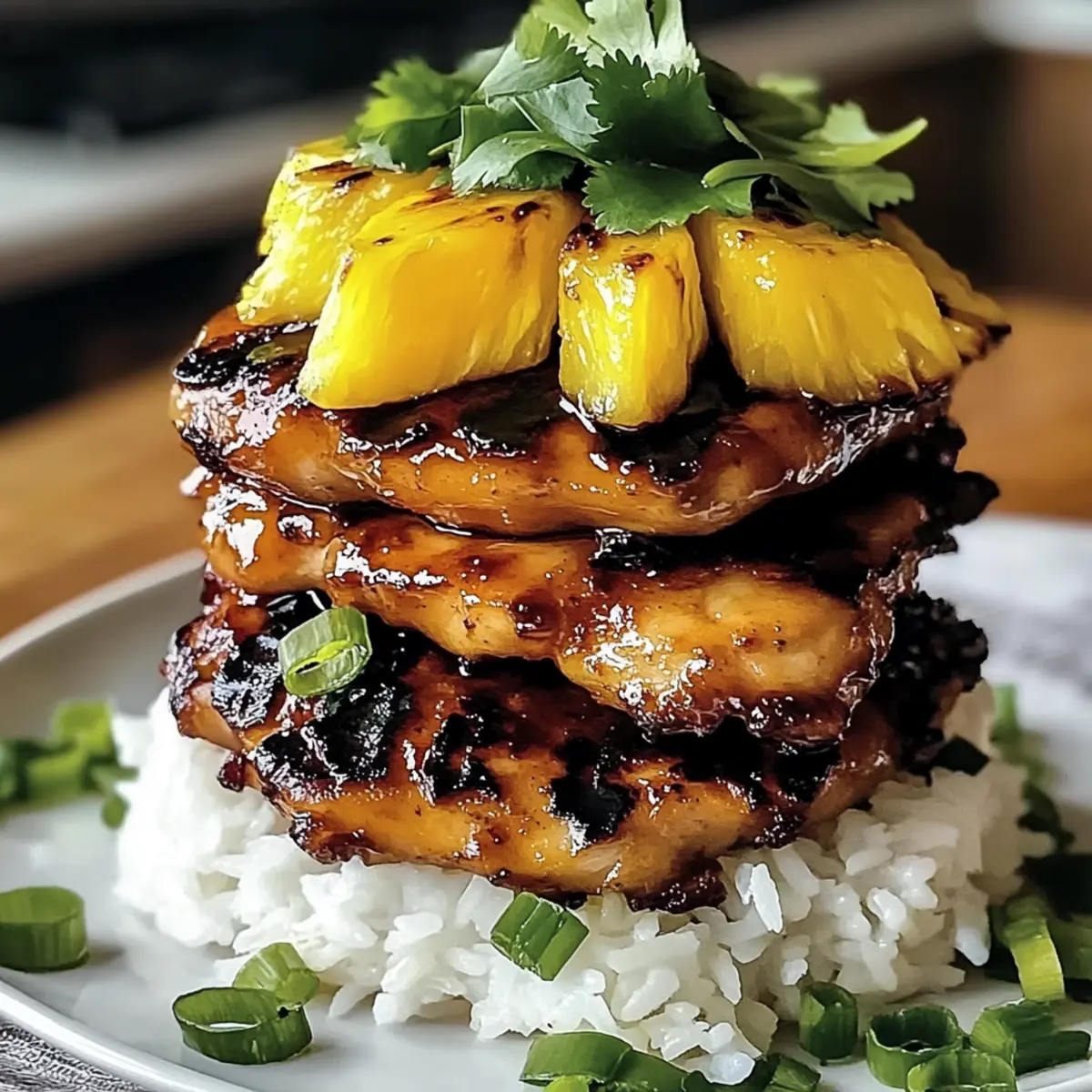 Die Sonne scheint warm auf meine Haut und ich kann schon den süßen Duft von marinierter Ananas und saftigem Hähnchen riechen. Diese Aromen entführen mich direkt in die tropische Idylle Hawaiis, und genau dort wollte ich hin, als ich das Rezept für meinen Huli Huli Hähnchen Stapel kreierte. Die knusprig gegrillten Hähnchenstücke verfügen über eine unwiderstehliche Mischung aus süß-saurer Ananas und herzhaftem Soja, die jede Dinner-Party in ein wahres Fest verwandelt. Dieses leicht zuzubereitende Gericht bringt nicht nur die Familie zusammen, sondern lässt auch Herzen höher schlagen – perfekt für ein schnelles Abendessen unter der Woche oder eine fröhliche Zusammenkunft mit Freunden! Neugierig, wie Sie in kürzester Zeit den tropischen Geschmack auf Ihren Tisch zaubern können? Warum ist dieser Huli Huli Hähnchen Stapel einzigartig? Tropische Aromen: Die aufregende Kombination aus süßer Ananas und herzhaftem Hähnchen entführt Sie direkt nach Hawaii. Einfach zuzubereiten: Dieses Gericht benötigt nicht viel Zeit in der Küche, ideal für hektische Wochentage oder spontane Einladungen. Vielseitige Beilagen: Ob mit duftendem Jasminreis oder knackigen Salaten, Sie können es nach Belieben anpassen. Eindrucksvoll serviert: Die Präsentation mit gegrillter Ananas bringt Farbe und Genuss auf den Tisch, perfekt für jede Feier. ** für mehr Ideen** Variationsmöglichkeiten mit anderen Zutaten. Huli Huli Hähnchen Stapel Zutaten • Für die Marinade: Hähnchenoberkeulen, ohne Knochen und Haut – Die Hauptproteinquelle, zart und voller Geschmack; kann durch Hähnchenbrust für eine magere Option ersetzt werden, verliert jedoch etwas Saftigkeit. Sojasoße – Fügt der Marinade Umami und Salzgehalt hinzu; verwenden Sie Tamari für eine glutenfreie Variante. Frischer Ananassaft – Bringt natürliche Süße und Säure mit; vermeiden Sie Flaschen- oder Konzentrat für maximalen Frischegeschmack. Brauner Zucker – Balanciert die salzige Sojasoße mit Süße; kann durch Honig für ein anderes Geschmacksprofil ersetzt werden. Ketchup – Liefert eine leichte Säure und Süße; lässt sich schwer ersetzen, versuchen Sie es alternativ mit einer hausgemachten Tomatensoße. Knoblauch – Verbessert die Geschmacksvielfalt; frischer Knoblauch ist vorzuziehen gegenüber Pulver für besseren Geschmack. Frischer Ingwer – Bietet Wärme und Würze; gemahlener Ingwer kann verwendet werden, jedoch in geringeren Mengen. Sesamöl (optional) – Führt zu Tiefe und Nussigkeit; weglassen oder durch einen Spritzer Olivenöl ersetzen, wenn nicht verfügbar. Chiliflocken (optional) – Fügen milde Schärfe hinzu; je nach Vorliebe anpassen oder für milderen Geschmack weglassen. • Für die Beilage: Klebriger Reis oder Jasminreis – Bildet die Basis des Gerichts; andere Reissorten können verwendet werden, verändern jedoch die Textur. Frische Ananasscheiben – Sorgen für natürliche Süße und einen tropischen Touch; bis zur Karamellisierung grillen. Gehackte Frühlingszwiebeln, geröstete Sesamsamen, frischer Koriander (optional) – Garnituren, die den Geschmack verbessern; verwenden Sie beliebige für zusätzliche Frische. Erleben Sie mit diesen Zutaten den unverwechselbaren Huli Huli Hähnchen Stapel, der nicht nur das Festmahl bereichert, sondern auch Erinnerungen schafft! Schritt-für-Schritt-Anleitung für Huli Huli Hähnchen Stapel Step 1: Marinade vorbereiten Whisken Sie in einer großen Schüssel 1/2 Tasse Sojasauce, 1/4 Tasse frischen Ananassaft, 1/4 Tasse braunen Zucker, 2 Esslöffel Ketchup, 2 zerdrückte Knoblauchzehen und 1 Teelöffel frisch geriebenen Ingwer gut zusammen. Sie sollten eine homogene, glatte Marinade erhalten. Stellen Sie sicher, dass sich der Zucker vollständig auflöst, um die perfekte Geschmacksbasis für Ihren Huli Huli Hähnchen Stapel zu schaffen. Step 2: Hähnchen marinieren Legen Sie die Hähnchenoberkeulen in einen wiederverschließbaren Beutel oder eine flache Schüssel und gießen Sie die vorbereitete Marinade darüber. Verschließen Sie den Beutel gut oder decken Sie die Schüssel ab und stellen Sie sie für mindestens 1 Stunde, idealerweise über Nacht, in den Kühlschrank. Dies ermöglicht eine tiefere Geschmacksaufnahme und sorgt dafür, dass das Hähnchen wunderbar zart wird. Step 3: Reis kochen Kochen Sie während die Hähnchen marinieren 1 Tasse klebrigen oder Jasminreis gemäß den Anweisungen auf der Verpackung. Bei mittlerer Hitze und gutem Wasserverhältnis sollte der Reis in etwa 15 Minuten gar sein. Halten Sie ihn nach dem Kochen in einem geschlossenen Topf warm, während Sie sich um das Huli Huli Hähnchen kümmern. Step 4: Grill vorheizen Heizen Sie Ihren Grill oder eine Grillpfanne bei mittlerer Hitze auf. Überprüfen Sie die Temperatur, indem Sie Ihre Hand etwa 15 cm über die Grillfläche halten; sollten Sie sie nach 5 Sekunden zurückziehen müssen, ist die Hitze ideal. Dies ist der perfekte Moment, um das Hähnchen auf den Grill zu legen und den köstlichen Duft zu genießen. Step 5: Hähnchen grillen Nehmen Sie die marinierten Hähnchenoberkeulen aus dem Kühlschrank und lassen Sie überschüssige Marinade abtropfen. Grillen Sie das Hähnchen für 5–6 Minuten pro Seite. Baste das Hähnchen in der letzten Minute mit der reservierten Marinade, bis die Innentemperatur 75°C erreicht, was ein sicheres und köstliches Ergebnis garantiert. Step 6: Ananas grillen Legen Sie während das Hähnchen grillt, frische Ananasscheiben auf den Grill. Grillen Sie die Ananas für 2–3 Minuten pro Seite, bis sie goldbraun und leicht karamellisiert ist. Diese Süße wird ein absoluter Genuss in Kombination mit dem herzhaften Hähnchen und wird das tropische Erlebnis vervollständigen. Step 7: Gericht anrichten Nehmen Sie die gegrillten Hähnchenoberkeulen vom Grill und lassen Sie sie kurz ruhen. Auf jedem Teller einen kleinen Hügel des gekochten Reis platzieren, darüber die Hähnchenstücke schichten und die gegrillten Ananasscheiben darauflegen
