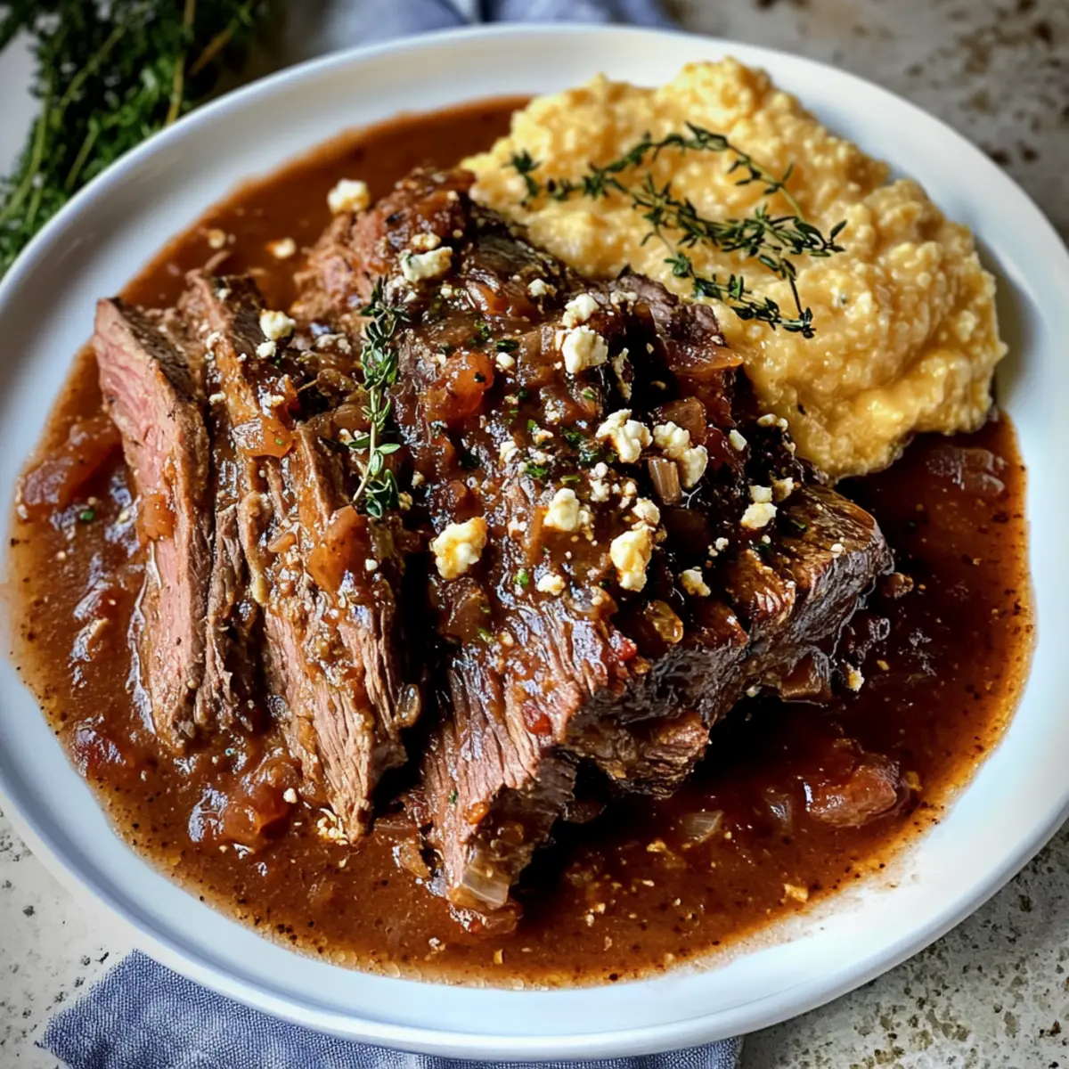 Eines der besten Gefühle ist es, nach einem langen Tag nach Hause zu kommen und den verführerischen Duft von langsam geköcheltem Schmorbraten in der Luft zu riechen. Mein Rezept für Italienischer Schmorbraten – Stracotto – ist genau das Richtige, um Ihnen dieses wohltuende Erlebnis zu bieten. Diese italienische Spezialität vereint die zarte Textur des Rindfleischs mit einer reichhaltigen, geschmackvollen Sauce, die all Ihre Sinne verzaubert. Was diesen Schmorbraten besonders macht, ist die unkomplizierte Zubereitung, die Ihnen mehr Zeit für das Wesentliche lässt – das Zusammensein mit Ihren Lieben. Und als perfektes Gegenstück dazu serviere ich ihn mit cremiger Gorgonzola-Polenta, die nicht nur ein toller Blickfang ist, sondern auch ein echtes Wohlfühlessen. Neugierig, wie Sie dieses italienische Festmahl im Handumdrehen zaubern können? Warum wird dieser Schmorbraten Ihr Herz erobern? Unkomplizierte Zubereitung: Die Anleitung ist einfach und verlangt keine besonderen Kochkünste, sodass Sie sich auf das Wesentliche konzentrieren können. Reichhaltige Aromen: Die Kombination aus aromatischen Kräutern und rotweinreduzierter Sauce sorgt für eine Geschmacksexplosion, die Ihre Gäste beeindrucken wird. Wohlfühlklassiker: Stracotto ist nicht nur herzhaft, sondern bringt auch die Gemütlichkeit Italiens direkt auf Ihren Tisch. Vielseitige Beilage: Die cremige Gorgonzola-Polenta rundet das Gericht perfekt ab und ist eine tolle Ergänzung zu jedem Abendessen. Stressfreies Kochen: Die langsam köchelnde Zubereitung lässt Ihnen Zeit, um sich um Ihre Gäste oder Familie zu kümmern – ideal für gesellige Abende. Für weitere italienische Inspiration schauen Sie sich doch auch mal unser Rezept für Italienischer Nudelsalat Rezept mit Kichererbsen und Feta an! Italienischer Schmorbraten Zutaten • Hinweis: Perfekt für ein herzhaftes Familienessen oder stressfreies Unterhalten! Für den Schmorbraten 4 Esslöffel Olivenöl – Sorgt für Geschmack und hilft beim Anbraten des Fleisches; alternativ geht auch Pflanzenöl. 1 (1,8 kg) Rinderbraten (Chuck Roast) – Ideal für langsames Garen, zart und saftig. Salz und frisch gemahlener schwarzer Pfeffer – Unverzichtbar für die Geschmacksverstärkung; nach Belieben anpassen. 1 große Zwiebel, fein gehackt – Der Geschmacksträger für das Soffritto. 2 große Karotten, fein gehackt – Fügt Süße und Struktur hinzu. 2 Stangen Sellerie, fein gehackt – Sorgt für herzhafte Aromen und Feuchtigkeit. 4 Unzen Pancetta, gewürfelt – Bringt salzige Tiefe ins Gericht; kann durch Truthahnspeck ersetzt werden. 12 Knoblauchzehen (2 gehackt, 10 in Scheiben) – Intensiviert den Geschmack während des langsamen Kochens. 2 Tassen trockener Rotwein – Liefert Säure und Tiefe; kann durch Granatapfel- oder Traubensaft und zusätzliche Brühe ersetzt werden. 1 Dose (500 ml) Rinderbrühe – Sorgt für eine reichhaltige Basis; Gemüsebrühe ist auch eine gute Alternative. 1 Dose (800 g) gehackte Tomaten – Grundlage für die Schmorflüssigkeit, bevorzugte italienische Marken sorgen für den besten Geschmack. 1 Esslöffel frischer Rosmarin, gehackt – Aromatische Kräuter, die hervorragend zu Rindfleisch passen. 2 Teelöffel italienische Gewürzmischung – Eine Mischung aus Kräutern für verstärkten Geschmack. 2 große Lorbeerblätter – Für subtile Tiefe im Gericht. 2 Esslöffel frische Petersilie, gehackt – Garnierung für frische Akzente. Kochspray – Verhindert das Ankleben im Auflauf. Für die Gorgonzola-Polenta 3 Tassen Hühnerbrühe oder Wasser – Kochflüssigkeit für die Polenta. 1 1/2 Tassen Sahne – Für eine cremige Polenta. 1 Tasse Polenta oder Maisgrieß – Basis der cremigen Polenta; bitte keine Instant-Variante verwenden, grob gemahlene ist am besten. Salz und frisch gemahlener schwarzer Pfeffer – Zum Abschmecken der Polenta. 1 Tasse zerbröckelter Gorgonzola-Käse – Fügt eine würzige, cremige Komponente zur Polenta hinzu. 2 Esslöffel Butter – Verstärkt die Cremigkeit und den Geschmack der Polenta. Schritt-für-Schritt-Anleitung für Italienischer Schmorbraten Schritt 1: Braten vorbereiten Heizen Sie den Ofen auf 175 °C vor. Würzen Sie den Rinderbraten mit Salz und frisch gemahlenem Pfeffer. Erhitzen Sie 4 Esslöffel Olivenöl in einem großen Schmortopf und braten Sie das Fleisch für 4-5 Minuten auf jeder Seite, bis es schön gebräunt ist. Nehmen Sie den Braten dann auf einen Teller und stellen Sie ihn beiseite. Schritt 2: Soffritto-Basis Geben Sie bei Bedarf etwas mehr Olivenöl in den gleichen Topf und fügen Sie die fein gehackte Zwiebel, Karotten, Sellerie und gewürfelte Pancetta hinzu. Sautieren Sie alles bei mittlerer Hitze für etwa 7-8 Minuten, bis das Gemüse weich ist. Fügen Sie dann die gehackten Knoblauchzehen hinzu und braten Sie diese für 10-15 Sekunden mit, bis sie aromatisch sind. Schritt 3: Schmorflüssigkeit hinzufügen Gießen Sie die 2 Tassen trockenen Rotwein in den Topf und bringen Sie die Mischung zum Kochen. Lassen Sie den Wein 1-2 Minuten kochen, damit der Alkohol verdampfen kann. Geben Sie anschließend den Rinderbraten zurück in den Topf und fügen Sie die Rinderbrühe, gehackte Tomaten, die in Scheiben geschnittenen Knoblauchzehen, Rosmarin, italienische Gewürzmischung und Lorbeerblätter hinzu. Schritt 4: Fleisch schmoren Decken Sie den Topf mit Aluminiumfolie und dem Deckel ab, um die Verdampfung zu minimieren. Stellen Sie den Topf in den vorgeheizten Ofen und schmoren Sie das Fleisch etwa 2,5 bis 3 Stunden, bis es zart ist. Überprüfen Sie den Garstand ab und zu; das Fleisch sollte nach dieser Zeit leicht auseinanderfallen. Schritt 5: Polenta zubereiten Bereiten Sie während das Fleisch schmort die Gorgonzola-Polenta vor. Sprühen Sie eine Auflaufform mit Kochspray ein. Kombinieren Sie in der Form die Hühnerbrühe, die Sahne, die Polenta sowie etwas Salz und Pfeffer. Backen Sie die Polenta während der letzten 40-45 Minuten des Schmorens des Rindfleischs im Ofen un