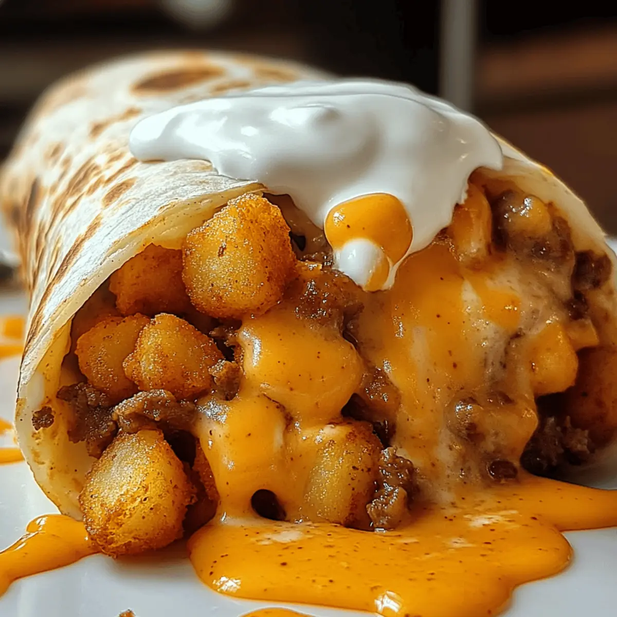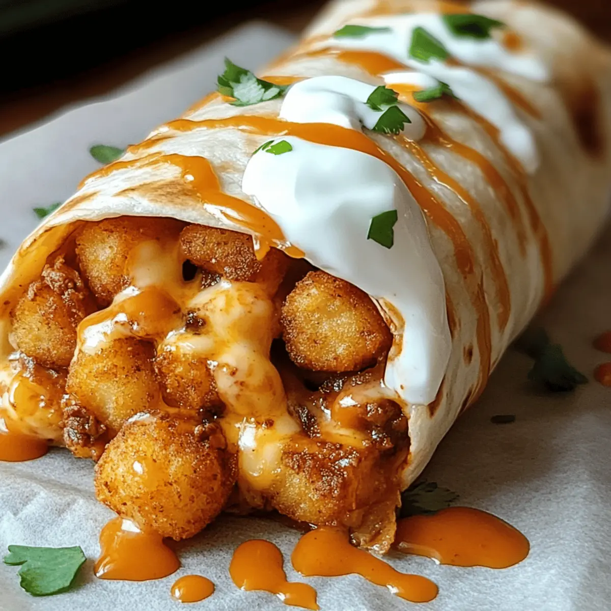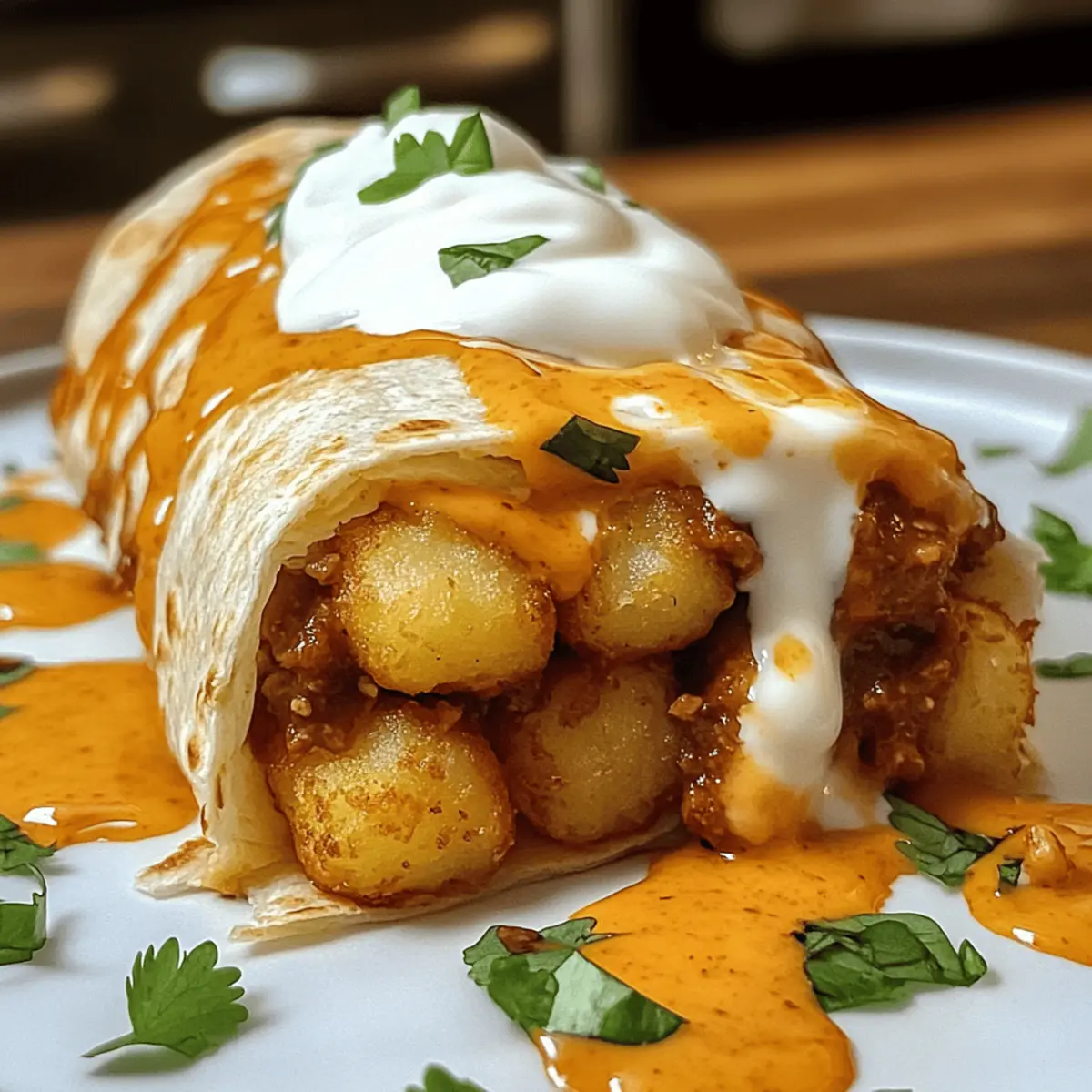 Es ist Sonntagabend, und ich stehe in meiner Küche, detektivisch nach einer Lösung suchend, die jedem in der Familie schmeckt. Dann fällt mein Blick auf die übrig gebliebenen Tater Tots und den halben Block Cheddar-Käse. Voilà! Die Antwort? Käse Kartoffel Burritos! Diese köstlichen, cremigen Burritos sind nicht nur der Inbegriff von Comfort Food, sondern auch ein absolutes Family-Highlight, das sich ganz nach euren Vorlieben anpassen lässt. Egal, ob ihr sie mit würzigem Rinderhack oder einer vegetarischen Variante zubereitet, diese Burritos sind perfekt für hektische Wochentage oder entspannte Wochenenden. Lust auf eine spannende Geschmacksexplosion? Lasst uns die Küchenabenteuer beginnen! Warum werden Sie dieses Rezept lieben? Einfachheit, die begeistert: Die Zubereitung ist unkompliziert und erfordert nur grundlegende Kochkenntnisse, perfekt für alle, die schnell ein köstliches Gericht zaubern möchten. Reichhaltiger Geschmack: Die Kombination aus geschmolzenem Cheddar und Monterey Jack Käse mit den knusprigen Tater Tots sorgt für ein geschmackvolles Erlebnis, das Jung und Alt begeistert. Familienfreundlich: Diese Käse Kartoffel Burritos sind eine ideale Wahl für die ganze Familie und lassen sich einfach anpassen, sodass jeder etwas nach seinem Geschmack findet. Probiert auch unsere leckeren Krosse Luftfritteuse Kartoffelscheiben, um einen knusprigen Beilagenklassiker zu kreieren! Vielseitigkeit: Mit verschiedenen Füllungen wie Rinderhack oder einer vegetarischen Variante lässt sich das Rezept ganz nach Belieben variieren. Schnelle Zubereitung: Dank der gebackenen Tater Tots ist die Zubereitungszeit kurz, perfekt für stressige Wochentage. Gemeinsame Freude: Richten Sie eine Burrito-Bar ein und lassen Sie jeden seine eigene Kreation gestalten – das macht nicht nur Spaß, sondern schmeckt auch fantastisch! Käse Kartoffel Burritos Zutaten • Diese köstlichen Käse Kartoffel Burritos werden Ihre Familie begeistern! Für die Füllung Rinderhackfleisch – sorgt für eine herzhafte Basis; ersetzen Sie es durch mageres Putenhack oder pflanzliche Crumbles für eine leichtere oder vegetarische Option. Tater Tots – fügt eine knusprige Textur hinzu; backen Sie sie bis sie goldbraun sind für das beste Ergebnis. Cheddar-Käse – bietet einen scharfen, cremigen Geschmack, der wunderbar schmilzt. Monterey Jack Käse – sorgt für einen milden Geschmack und zusätzliche Cremigkeit. Mehltortillas – halten alle Zutaten zusammen; leicht erwärmen vor dem Füllen für mehr Geschmeidigkeit. Chipotle-Sauce – bringt eine rauchige Note; die Menge je nach Schärfewunsch anpassen; könnte auch durch eine Mischung aus Mayonnaise und Adobo-Sauce ersetzt werden. Sauerrahm – gibt eine reichhaltige und pikante Note; ideal als Garnitur. Schritt-für-Schritt-Anleitung für Käse Kartoffel Burritos Step 1: Ofen vorheizen und Tater Tots backen Heizen Sie den Ofen auf 200 Grad Celsius vor. Legen Sie die Tater Tots auf ein Backblech und backen Sie sie gemäß den Anweisungen auf der Verpackung, bis sie goldbraun und knusprig sind – das dauert etwa 20-25 Minuten. Schütteln Sie das Blech gelegentlich, um sicherzustellen, dass die Tater Tots gleichmäßig gebacken werden und eine schöne Farbe erhalten. Step 2: Rinderhackfleisch anbraten Während die Tater Tots im Ofen sind, erhitzen Sie eine große Pfanne bei mittlerer Hitze. Fügen Sie das Rinderhackfleisch hinzu und braten Sie es an, bis es braun und vollständig durchgegart ist, etwa 5-7 Minuten. Vergessen Sie nicht, es mit etwas Salz und Pfeffer zu würzen. Lassen Sie überschüssiges Fett abtropfen, um die Füllung leicht und lecker zu halten. Step 3: Füllung vorbereiten In einer großen Schüssel kombinieren Sie das gebratene Hackfleisch, die knusprigen Tater Tots und die beiden Käsesorten – Cheddar und Monterey Jack. Rühren Sie die Mischung gründlich um, bis der Käse anfängt zu schmelzen, was etwa 2-3 Minuten dauern sollte. Achten Sie darauf, dass die Zutaten gut vermischt sind, damit jeder Biss der Käse Kartoffel Burritos cremig wird. Step 4: Tortillas erwärmen Wärmen Sie die Mehltortillas entweder in einer Pfanne oder in der Mikrowelle für etwa 10-15 Sekunden auf, bis sie weich und geschmeidig sind. Das Erhitzen verhindert, dass die Tortillas beim Füllen reißen, und macht sie einfacher zu handhaben. Es ist wichtig, dass Sie die Tortillas warm halten, während Sie die Füllung vorbereiten. Step 5: Burritos füllen Legt eine großzügige Portion der Füllung auf jede erwärmte Tortilla. Träufeln Sie etwas Chipotle-Sauce über die Füllung, je nach Ihrem persönlichen Schärfewunsch. Geben Sie einen Klecks Sauerrahm hinzu, um Extra-Cremigkeit hinzuzufügen. Falten Sie die Seiten der Tortilla ein und rollen Sie sie fest von unten nach oben auf, um köstliche Käse Kartoffel Burritos zu formen. Step 6: Burritos backen Legen Sie die gefüllten Burritos mit der Nahtseite nach unten in eine Auflaufform. Bestreuen Sie die Oberseite mit etwas zusätzlichem Käse, um die köstlichen Burritos zu krönen. Backen Sie sie im vorgeheizten Ofen bei 180 Grad Celsius für etwa 15 Minuten, bis der Käse geschmolzen und leicht goldbraun ist. Beobachten Sie die Burritos, um sicherzustellen, dass sie nicht zu dunkel werden. Step 7: Servieren und garnieren Nehmen Sie die Burritos aus dem Ofen und lassen Sie sie kurz abkühlen. Garnieren Sie sie anschließend mit gewürfelten Tomaten, frischen Frühlingszwiebeln und Koriander. Servieren Sie die Käse Kartoffel Burritos mit etwas zusätzlichem Sauerrahm und Chipotle-Sauce daneben, damit jeder seine Portion so scharf oder cremig machen kann, wie er möchte. Lagerungstipps für Käse Kartoffel Burritos Kühlschrank: Lagern Sie die gefüllten Burritos in einem luftdichten Behälter für bis zu 3 Tage. Wrappen Sie sie vorher gut ein, um das Austrocknen zu verhindern. Gefrierfach: Frieren Sie die Burritos einzeln in Frischhaltefolie ein, gefolgt von einem zusätzlichen Behälter, für bis z