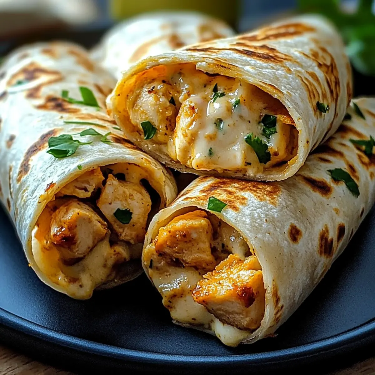 Als ich neulich in der Küche stand, hörte ich das verlockende Zischen des Hähnchens in der Pfanne, während der Duft von frisch angebratenem Knoblauch durch den Raum zog. Plötzlich hatte ich die Idee für die perfekten Käsigen Knoblauch-Hähnchen-Wraps! Dieses schnelle und einfache Rezept vereint zartes Hähnchen und cremigen Käse in einer unwiderstehlichen Kombination, die in weniger als 30 Minuten zubereitet ist. Ideal für geschäftige Wochentage, bieten diese Wraps nicht nur eine hohe Proteinquelle, sondern sind auch wunderbar anpassbar: Egal, ob Sie Gemüse hinzufügen oder eine kohlenhydratarme Variante kreieren möchten – der Spielraum ist riesig! Neugierig, wie Sie dieses köstliche Gericht ganz einfach in Ihrer eigenen Küche nachkochen können? Lassen Sie uns gemeinsam in die Welt der Käsigen Knoblauch-Hähnchen-Wraps eintauchen! Warum sind diese Wraps so besonders? Einfachheit: Die Zubereitung dieser Käsigen Knoblauch-Hähnchen-Wraps ist kinderleicht und benötigt nur grundlegende Kochkenntnisse. Schnell zubereitet: In weniger als 30 Minuten sind diese köstlichen Wraps auf dem Tisch – perfekt für hektische Wochentage. Vielseitig: Passen Sie die Füllung nach Ihrem Geschmack an! Ob Gemüse oder verschiedene Käsesorten, die Möglichkeiten sind endlos. Gesundheitsbewusst: Mit Hähnchen als Hauptbestandteil bieten sie eine hervorragende Proteinquelle und können je nach Wahl auch kalorienbewusst zubereitet werden. Gruppentauglich: Diese Wraps sind ideal für gesellige Anlässe oder als schneller Snack für die Familie. Kombinieren Sie sie mit einem frischen grünen Salat und leichtem Dressing für eine vollständige Mahlzeit! Käsige Knoblauch-Hähnchen-Wraps Zutaten Für die Füllung Hähnchenbrust – Hauptproteinquelle, sorgt für zarte Textur; Substitution: Putenbrust kann verwendet werden. Olivenöl – Zum Braten, verleiht Geschmack und verhindert Anhaften; Substitution: Andere Pflanzenöle sind möglich. Gehackter Knoblauch – Für intensives Aroma und Geschmack; Substitution: Knoblauchpulver kann verwendet werden, aber frischer Knoblauch ist vorzuziehen. Frischkäse – Fügt Cremigkeit hinzu und bindet die Füllung; Substitution: Fettarmer Frischkäse reduziert Kalorien. Geriebener Käse – Für zusätzlichen Geschmack und Schmelz; Variationen: Gouda, Feta oder eine Käsesorte nach Wahl. Frische Kräuter – Für zusätzliche Frische und Geschmack; Optional: Basilikum oder Petersilie. Für die Wraps Tortilla-Wraps – Basis für die Einwicklung, beobachtbare Textur; Substitution: Pita-Brot oder Salatblätter für eine kohlenhydratarme Option. Schritt-für-Schritt-Anleitung für Käsige Knoblauch-Hähnchen-Wraps Step 1: Hähnchen vorbereiten Schneiden Sie die Hähnchenbrust in mundgerechte Stücke und würzen Sie sie großzügig mit Salz und Pfeffer. Stellen Sie sicher, dass alle Stücke gleichmäßig gewürzt sind, um den Geschmack zu maximieren. Dies gibt den Käsigen Knoblauch-Hähnchen-Wraps eine schmackhafte Grundlage. Step 2: Hähnchen anbraten Erhitzen Sie eine Pfanne bei mittlerer Hitze und geben Sie einen Schuss Olivenöl hinein. Sobald das Öl heiß ist, fügen Sie die gewürzten Hähnchenstücke hinzu und braten Sie sie für etwa 5-7 Minuten, bis sie goldbraun und durchgegart sind. Achten Sie darauf, sie zwischendurch umzudrehen, damit sie gleichmäßig garen. Step 3: Knoblauch hinzufügen Fügen Sie den gehackten Knoblauch in die Pfanne mit dem Hähnchen hinzu und braten Sie ihn für weitere 2-3 Minuten. Der Knoblauch sollte aromatisch und goldbraun sein, aber darauf achten, dass er nicht verbrennt, da sonst der Geschmack bitter wird. Die Kombination aus Hähnchen und Knoblauch sorgt für das unwiderstehliche Aroma der Käsigen Knoblauch-Hähnchen-Wraps. Step 4: Käse einmischen Nehmen Sie die Pfanne vom Herd und geben Sie den Frischkäse sowie den geriebenen Käse hinzu. Rühren Sie die Mischung gut um, bis die Käsesorten geschmolzen sind und eine cremige Füllung ergibt. Dieser Schritt bereitet die leckere Füllung für Ihre Käsigen Knoblauch-Hähnchen-Wraps vor und macht sie unwiderstehlich. Step 5: Wraps füllen Breiten Sie die Tortilla-Wraps auf einer sauberen Arbeitsfläche aus. Verteilen Sie die Hähnchen-Käse-Mischung gleichmäßig auf den Wraps und lassen Sie dabei etwas Platz am Rand. Wenn gewünscht, können Sie an dieser Stelle frische Kräuter hinzufügen, um den Geschmack zu verfeinern und eine besondere Note zu verleihen. Step 6: Wraps aufrollen Rollen Sie die Wraps eng zusammen und schlagen Sie die Enden ein, um die Füllung sicher zu verschließen. Dies hilft, dass die Käsigen Knoblauch-Hähnchen-Wraps beim Braten nicht auseinanderfallen. Achten Sie darauf, die Wraps gut zu sichern, damit sie beim Kochen ihre Form behalten. Step 7: Wraps braten Erhitzen Sie in derselben Pfanne etwas Olivenöl bei mittlerer Hitze. Legen Sie die gefüllten Wraps mit der Nahtseite nach unten in die Pfanne und braten Sie sie für etwa 3-4 Minuten, bis sie goldbraun und knusprig sind. Wenden Sie die Wraps vorsichtig, um sicherzustellen, dass beide Seiten schön gebräunt sind. Step 8: Servieren Schneiden Sie die Wraps vorsichtig in der Mitte durch und richten Sie sie auf einem Teller an. Ihre Käsigen Knoblauch-Hähnchen-Wraps sind nun bereit zum Genießen! Die Kombination aus cremigem Käse, zartem Hähnchen und aromatischem Knoblauch wird Ihre Gäste begeistern. Meal Prep für Käsige Knoblauch-Hähnchen-Wraps Diese Käsigen Knoblauch-Hähnchen-Wraps sind ideal für eine stressfreie Meal Prep! Sie können die Hähnchen-Käse-Füllung bis zu 3 Tage im Voraus zubereiten und im Kühlschrank lagern, wobei es wichtig ist, sie in einem luftdichten Behälter aufzubewahren, um die Frische zu bewahren. Bereiten Sie das Hähnchen zu, fügen Sie den Knoblauch hinzu und mischen Sie dann den Frischkäse sowie den geriebenen Käse, um die cremige Füllung zu erhalten. Wenn Sie bereit sind, die Wraps zu genießen, rollen Sie die Füllung in die Tortillas auf