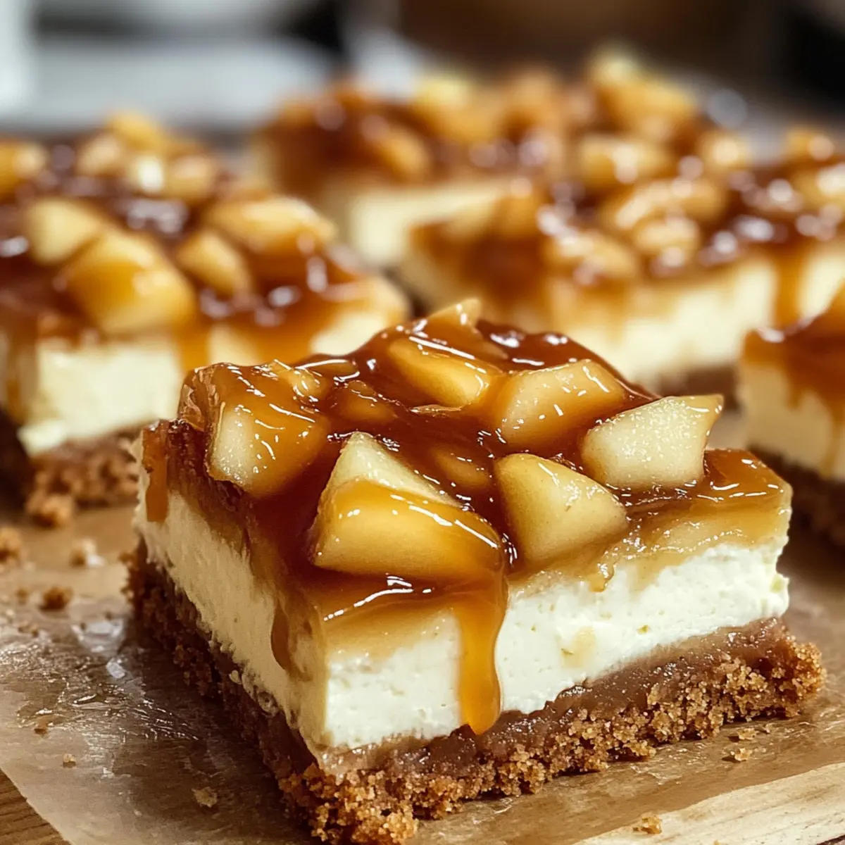 Wenn ich an den Herbst denke, kommen mir sofort die Aromen von frisch gebackenem Apfelkuchen und süßem Karamell in den Sinn. Genau das erwartet euch mit meinen Karamell-Apfel-Käsekuchen-Riegel! Diese himmlischen Leckerbissen vereinen die cremige Fülle eines Käsekuchens mit dem knackigen Biss von Äpfeln und dem verführerischen Karamell. Zudem haben sie eine buttrige Keksbase, die einen perfekten Crunch bietet. Ob bei Familienfeiern oder einem gemütlichen Abend zu Hause, diese einfachen Riegel sind im Handumdrehen zubereitet und erlauben euch, saisonale Zutaten nach Wunsch einzusetzen. Und das Beste? Sie sind leicht glutenfrei und können auf Wunsch auch milchfrei zubereitet werden! Seid ihr bereit, eure Küche mit dem Duft des Herbstes zu erfüllen? Warum lieben alle diese Riegel? Abwechslungsreich und anpassbar: Die Karamell-Apfel-Käsekuchen-Riegel bieten unzählige Variationen, perfekt, um eure persönlichen Vorlieben auszuleben. Ihr könnt Äpfel durch Birnen ersetzen oder Nüsse für einen extra Crunch hinzufügen. Einfach zuzubereiten: Diese Riegel erfordern nur grundlegende Backfähigkeiten und sind schnell gemacht – ideal für alle, die keine Zeit mit komplizierten Rezepten verlieren möchten. Herbstliche Aromen: Die Kombination aus frischen Äpfeln, Zimt und Karamell zaubert das Gefühl von kalten Herbstabenden direkt in eure Küche. Gesellige Nascherei: Egal ob bei einem Fest oder einfach für einen gemütlichen Familienabend, diese Riegel kommen garantiert bei jedem gut an. Gesunde Alternativen: Mit einfachen Anpassungen könnt ihr sie glutenfrei oder sogar milchfrei zubereiten, was sie zu einer großartigen Option für die gesamte Familie macht. Verpflichtet euch dazu, sie einmal zu probieren und entdeckt den unwiderstehlichen Geschmack! Karamell-Apfel-Käsekuchen-Riegel Zutaten Für den Boden • Graham-Cracker-Brösel – Sorgen für die Struktur, glutenfreie Varianten sind auch erhältlich. • Zucker – Für die Süße; passt die Menge je nach Geschmack an, probiert Kokoszucker für eine gesündere Option. • Butter (geschmolzen) – Bindet die Zutaten und verstärkt den Geschmack; verwendet pflanzliche Margarine für eine milchfreie Version. Für die Füllung • Frischkäse – Gibt eine cremige Konsistenz; veganen Frischkäse als Alternative verwenden. • Vanilleextrakt – Verstärkt den Geschmack; kann auch durch Mandelextrakt ersetzt werden. • Äpfel (geschält und gewürfelt) – Sorgen für die Aromen und Textur; frische Äpfel wie Granny Smith oder Honeycrisp sind ideal. • Karamellsauce – Für die Süße und das Topping; selbstgemacht oder aus dem Laden, eine zuckerfreie Version kann auch ausprobiert werden. • Zimt – Fügt Wärme und Würze hinzu, die die Äpfel ergänzen; Muskatnuss kann für eine aromatische Note hinzugefügt werden. Jetzt seid ihr bereit, die leckeren Karamell-Apfel-Käsekuchen-Riegel zuzubereiten und den unwiderstehlichen Geschmack des Herbstes zu genießen! Schritt-für-Schritt-Anleitung für Karamell-Apfel-Käsekuchen-Riegel Step 1: Vorbereitung Heizt den Ofen auf 175 °C vor und fettet eine 23×23 cm große Auflaufform ein. Stellt sicher, dass ihr alle Zutaten und Utensilien zur Hand habt. Dies sind Karamell-Apfel-Käsekuchen-Riegel, und eine gute Vorbereitung sorgt für reibungslosen Ablauf. Step 2: Boden herstellen Vermengt die Graham-Cracker-Brösel, den Zucker und die geschmolzene Butter in einer Schüssel, bis alles gut kombiniert ist. Drückt diese Mischung gleichmäßig und fest in den Boden der vorbereiteten Form, um eine strukturierte Basis für die Karamell-Apfel-Käsekuchen-Riegel zu schaffen. Step 3: Füllung zubereiten Schlagt den weichen Frischkäse, den Zucker und den Vanilleextrakt in einer Rührschüssel mit einem elektrischen Mixer cremig und glatt. Hebt vorsichtig die gewürfelten Äpfel und den Zimt unter die Mischung, bis alles gleichmäßig verteilt ist. Step 4: Füllung kombinieren Gießt die cremige Füllung über den vorbereiteten Boden und verteilt sie mit einem Spatel gleichmäßig. Achtet darauf, dass die Füllung die gesamte Fläche des Bodens abdeckt, damit jeder Bissen der Karamell-Apfel-Käsekuchen-Riegel köstlich wird. Step 5: Karamell hinzufügen Träufelt die Karamellsauce gleichmäßig über die Füllung und nutzt einen Holzlöffel oder einen kleinen Spatel, um sie leicht hinein zuwirbeln. Dies ergibt ein schönes Marmormuster und fügt zusätzlichen Geschmack hinzu. Step 6: Backen Stellt die Form in den vorgeheizten Ofen und backt die Riegel für 30-35 Minuten. Die Ränder sollten fest sein, während die Mitte noch leicht wackelt. Achtet darauf, dass der Ofen nicht zu heiß ist, um ein Überbacken zu vermeiden. Step 7: Abkühlen lassen Lasst die Karamell-Apfel-Käsekuchen-Riegel zunächst bei Raumtemperatur auskühlen. Anschließend stellt ihr sie für mindestens 2 Stunden in den Kühlschrank, damit sie sich setzen und die ideale Konsistenz erreichen, bevor ihr sie in Riegel schneidet. Variationen & Ersatzmöglichkeiten für Karamell-Apfel-Käsekuchen-Riegel Eure Küche kann noch aufregender werden! Hier sind einige freundliche Ideen, wie ihr diese köstlichen Riegel nach eurem Geschmack anpassen könnt. Glutenfrei: Nutzt glutenfreie Graham-Cracker-Brösel, um sicherzustellen, dass jeder genießen kann. Milchfrei: Ersetzt den Frischkäse durch veganen Frischkäse oder eine Cashew-Creme für ein pflanzliches Dessert. Zusätzlicher Crunch: Fügt gehackte Nüsse wie Walnüsse oder Pekannüsse hinzu, um etwas Textur und zusätzlichen Geschmack zu erhalten. Ein bisschen Biss macht einen großen Unterschied! Schokoladige Note: Mischt einige Schokoladenstückchen unter die Füllung, bevor ihr sie backt. Die süße Schokolade ergänzt die Äpfel perfekt. Fruchtige Alternative: Wenn ihr Äpfel gegen Birnen eintauscht, erhaltet ihr eine zarte, süße Füllung, die genauso unwiderstehlich ist! Zestige Frische: Gebt etwas Zitronen- oder Orangenzest in die Füllung, um eine erfrischende Note h