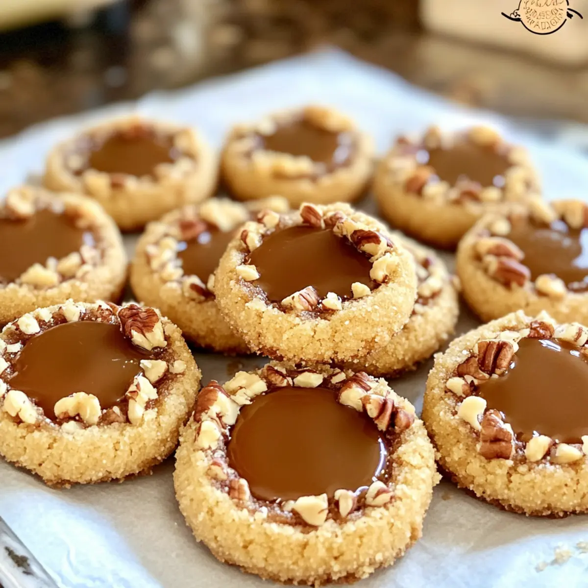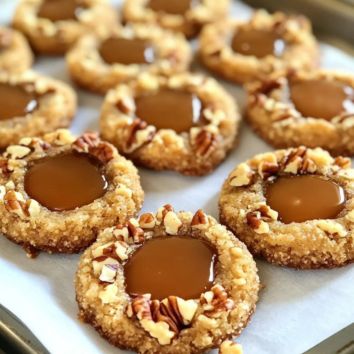 In einer gemütlichen Küche, umgeben von den verführerischen Düften der Weihnachtszeit, entstehen oft die besten Erinnerungen. Heute lade ich euch ein, mit mir Karamell-Daumenabdruckkekse zu kreieren – eine unwiderstehliche Leckerei, die nicht nur das Herz erwärmt, sondern auch traumhaft zart ist. Die Kombination aus buttrigem Shortbread, knackigen Pekannüssen und dem zähflüssigen Karamell sorgt für ein Fest der Sinne und macht sie zum perfekten Highlight jeder Plätzchenverrücktheit. Egal, ob für die nächste Kaffeepause oder als besonderes Highlight bei der Festtagsbäckerei, diese Kekse sind ein echter Publikumsliebling und lassen sich auch wunderbar vorbereiten. Seid ihr bereit, euch von den köstlichen Möglichkeiten verführen zu lassen? Warum sind diese Kekse so besonders? Einzigartiger Geschmack: Diese Karamell-Daumenabdruckkekse vereinen die perfekte Harmonie von zartem Shortbread und süßem, zähflüssigem Karamell. Einfachheit in der Zubereitung: Mit nur wenigen Zutaten ist das Rezept leicht verständlich und für jeden home cook geeignet. Festliche Atmosphäre: Ideal für die Weihnachtszeit, bringen sie Freude bei jedem Bissen und eignen sich hervorragend für Kaffeepausen oder zu besonderen Anlässen. Vielseitige Anpassungen: Ob mit verschiedenen Nüssen oder einem Schokoladend drizzle – die Variationen sind endlos! Publikumsliebling: Diese Kekse werden nicht nur euch, sondern auch eure Gäste begeistern und bei jeder Plätzchenverrücktheit zum Star! Karamell-Daumenabdruckkekse Zutaten Für den Teig: Butter – sorgt für reichhaltigen Geschmack und Feuchtigkeit. Substitution: Verwende ungesalzene Butter für kontrollierte Salzgehalte. Shortening – gewährleistet eine luftige und zarte Textur in den Keksen. Substitution: Bei reichhaltigerem Geschmack kann es ganz durch Butter ersetzt werden, was jedoch die Textur leicht verändert. Brauner Zucker – fügt Feuchtigkeit und einen milden Karamellgeschmack hinzu, der die Füllung verstärkt. Substitution: Weißer Zucker kann verwendet werden, verursacht aber eine trockenere Textur. Eigelb – bindet den Teig und sorgt für Stabilität. Hinweis: Verwende die Eiweiße separat zum Bestreichen der Keksbälle. Vanilleextrakt – verbessert den Gesamtgeschmack, ohne die anderen Zutaten zu übertönen. Hinweis: Reiner Vanilleextrakt wird für den besten Geschmack empfohlen. Weißes Mehl – dient als Basisstruktur des Keks-Teigs. Hinweis: Andere Mehlsorten sollten nur mit Anpassungen der Mengen verwendet werden. Salz – balanciert die Süße aus und verstärkt den Geschmack. Substitution: Verwende koscheres Salz für einen milderen Geschmack oder lasse es in einer natriumarmen Diät weg. Für die Füllung und das Topping: Zerkleinerte Pekannüsse – bietet eine knackige Textur und nussigen Geschmack. Substitution: Mandeln oder Walnüsse können für andere Geschmacksrichtungen verwendet werden. Karamell – füllt die Kekse für ein süßes, zähflüssiges Zentrum. Hinweis: Vorgefertigte Karamellstücke oder selbstgemachtes Karamell können verwendet werden. Schritt-für-Schritt-Anleitung für Karamell-Daumenabdruckkekse Step 1: Vorbereitung Heize den Ofen auf 175°C vor und lege ein Backblech mit Backpapier aus. Diese ersten Schritte sind entscheidend, um sicherzustellen, dass die Karamell-Daumenabdruckkekse gleichmäßig backen und nicht an haften. Ein gut vorbereitetes Backblech macht das Auslegen der Kekse einfacher und sorgt dafür, dass sie perfekt werden. Step 2: Feuchte Zutaten vermengen In einer Rührschüssel kombinierst du 115 g Butter, 115 g Shortening, 100 g braunen Zucker, 2 Eigelbe und 1 TL Vanilleextrakt. Rühre mit einem elektrischen Mixer bei mittlerer Geschwindigkeit, bis die Mischung cremig und gut vermischt ist. Dieser Schritt sorgt für die Grundlage deiner Karamell-Daumenabdruckkekse, also achte darauf, dass alles gut verbunden ist. Step 3: Trockene Zutaten kombinieren In einer separaten Schüssel vermische 250 g Weizenmehl und ½ TL Salz. Füge die trockenen Zutaten langsam zu der feuchten Mischung hinzu und verrühre sie, bis sie gerade so verbunden sind. Übermäßiges Mischen könnte die zarte Textur der Kekse beeinträchtigen, daher ist es wichtig, nur so lange zu rühren, bis alles gut vermischt ist. Step 4: Kekse formen Forme mit deinen Händen kleine Teigkugeln von etwa 2 Teelöffeln Größe. Tauche jede Kugel in die geschlagenen Eiweiße, bevor du sie in die zerkleinerten Pekannüsse rollst, um eine knusprige Beschichtung zu erhalten. Diese Maßnahme verleiht deinen Karamell-Daumenabdruckkeksen eine wunderbare Textur und sorgt für den perfekten Crunch. Step 5: Backen Lege die geformten Teigkugeln auf das vorbereitete Backblech, wobei du einen Abstand von etwa 2,5 cm zwischen den Keksen lässt. Verwende einen ½ TL Messlöffel, um in jede Kugel eine Vertiefung zu drücken. Backe die Kekse für etwa 10-12 Minuten, bis sie leicht goldbraun sind. Diese visuelle Signalgebung zeigt an, dass sie fertig sind. Step 6: Kekse vollenden Sobald du die Kekse aus dem Ofen nimmst, drücke die Vertiefung gegebenenfalls mit dem ½ TL nach. Fülle jede Vertiefung mit warmem Karamell und lasse die Kekse für 2-3 Stunden abkühlen, bis das Karamell vollständig gesetzt ist. Diese finalen Schritte sind entscheidend, um sicherzustellen, dass deine Karamell-Daumenabdruckkekse sowohl köstlich als auch schön aussehen. Karamell-Daumenabdruckkekse einfach vorbereiten Die Karamell-Daumenabdruckkekse sind ideal für die Vorbereitung und helfen dir, wertvolle Zeit zu sparen! Du kannst den Teig bis zu 24 Stunden im Voraus zubereiten und im Kühlschrank aufbewahren. Roll die Teigkugeln in den zerkleinerten Pekannüssen und bewahre sie in einem luftdichten Behälter auf, damit sie frisch bleiben. Wenn du bereit bist, die Kekse zu backen, heize den Ofen vor und forme die Vertiefungen wie im Rezept beschrieben. Achte darauf, die Kekse nach dem Backen nochmals zu eindrücken, bevor du sie mit warmem Karamell füllst.