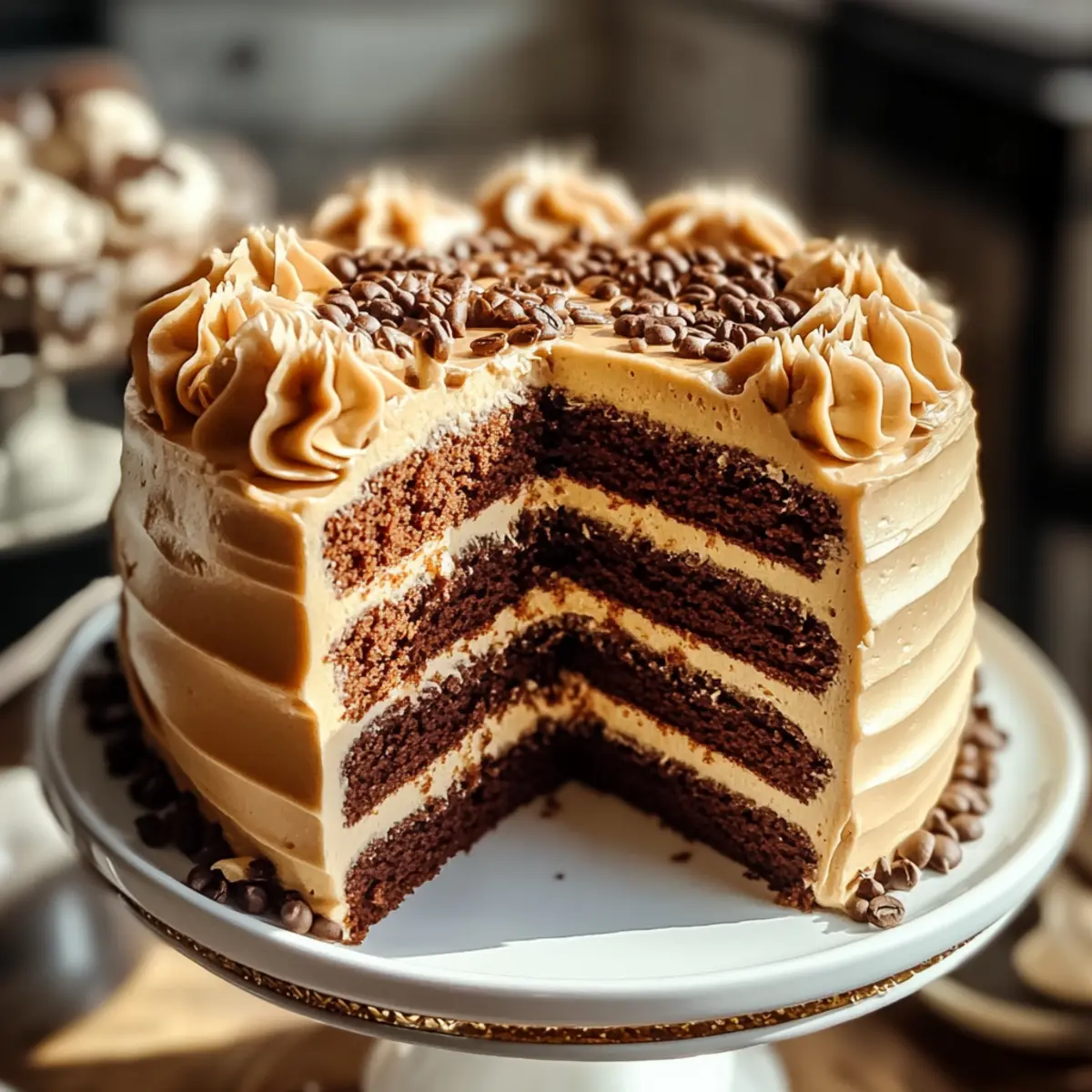 Als der Duft von frisch gebrühtem Kaffee in der Luft liegt, kehre ich instantan zurück zu einem unvergesslichen Dessertabend. „Wie wäre es mit einem Karamell Kaffee Buttercreme Kuchen?“ flüstere ich meiner Freundin zu, und ihre Augen leuchten vor Vorfreude. Dieser Kuchen ist mehr als nur ein süßer Genuss – er kombiniert zarte Schokoladenlagen mit einer cremigen Karamell-Kaffee-Buttercreme, die sowohl Kaffeeliebhaber als auch Dessertfans begeistert. Perfekt für Feste oder einfach nur für einen kleinen Leckerbissen zwischendurch, ist dieser Kuchen schnell zubereitet und lässt sich wunderbar im Voraus planen. Hast du je daran gedacht, deiner Kaffeepause mit einem so herrlichen Kuchen einen neuen Dreh zu geben? Warum wirst du diesen Kuchen lieben? Einzigartiger Genuss: Der Karamell Kaffee Buttercreme Kuchen ist eine himmlische Kombination aus zarter Schokolade und aromatischem Kaffee, die deine Geschmacksknospen tanzen lässt. Einfache Zubereitung: Mit nur wenigen Grundzutaten ist dieser Kuchen schnell und unkompliziert zuzubereiten – perfekt für spontane Backaktionen. Vielseitig: Ob zum Kaffeeklatsch oder als Überraschung für einen lieben Menschen, dieser Kuchen passt immer! Für eine besondere Note kannst du Erdbeer-Käsekuchen Proteinbällchen als Beilage servieren. Tolle Textur: Die cremige Buttercreme umhüllt die saftigen Schichten und sorgt für ein unvergessliches Geschmackserlebnis. Gelungene Präsentation: Jeder Bissen sieht nicht nur köstlich aus, sondern hinterlässt auch einen bleibenden Eindruck bei deinen Gästen. Mache deinen nächsten Anlass mit diesem Kuchen unvergesslich! Karamell Kaffee Buttercreme Kuchen Zutaten • Die folgende Liste enthält alle notwendigen Zutaten, um diesen köstlichen Karamell Kaffee Buttercreme Kuchen zu kreieren. Für den Kuchen: Kuchenmehl – sorgt für die Struktur und einen zarten Biss; kann durch Allzweckmehl ersetzt werden, wenn es nicht verfügbar ist. Kakaopulver – verleiht dem Kuchen seinen reichen Schokoladengeschmack; wähle Dutch-Process-Kakao für ein intensiveres Aroma. Backpulver – sorgt dafür, dass der Kuchen aufgeht; achte darauf, dass es frisch ist. Kristallzucker – steigert die Süße und hilft, die Feuchtigkeit zu speichern; brauner Zucker sorgt für einen tieferen Geschmack. Eier – binden die Zutaten und beeinflussen die Textur; Eier bei Raumtemperatur vermischen sich besser. Butter – gibt Feuchtigkeit und Geschmack; ungesalzene Butter ist am besten; kann auch durch Pflanzenöl für eine milchfreie Variante ersetzt werden. Vanilleextrakt – verstärkt das Gesamtaroma; reiner Vanilleextrakt ist ideal, Imitat kann aber im Notfall verwendet werden. Für die Buttercreme: Puderzucker – süßt und sorgt für Struktur in der Buttercreme; kann durch weniger süße Alternativen ersetzt werden. Schlagsahne – sorgt für Reichtum und eine glatte Konsistenz der Buttercreme; leichte Sahne kann für eine weniger schwere Option verwendet werden. Kaffee – verleiht der Buttercreme ein robustes Aroma; gebrühter Kaffee oder Espresso kann für einen stärkeren Geschmack verwendet werden. Karamellsauce – fügt Süße und eine klebrige Textur hinzu; sowohl gekaufte als auch selbstgemachte Varianten sind hervorragend geeignet. Schritt-für-Schritt-Anleitung für Karamell Kaffee Buttercreme Kuchen Step 1: Kuchenteig vorbereiten In einer großen Schüssel das Kuchenmehl, Kakaopulver, Backpulver und den Kristallzucker gut vermischen. In einer separaten Schüssel die Eier, die geschmolzene Butter und den Vanilleextrakt verrühren. Beide Mischungen vorsichtig zusammenfügen und kurz rühren, bis alles gerade so miteinander vermischt ist – achte darauf, nicht zu übermixen, um einen lockeren Karamell Kaffee Buttercreme Kuchen zu erhalten. Step 2: Backen Den Ofen auf 175 °C vorheizen und zwei runde Kuchenformen mit Butter einfetten und mit Mehl bestäuben. Den Kuchenteig gleichmäßig auf die beiden Formen verteilen und für 25-30 Minuten backen. Um zu überprüfen, ob die Kuchen fertig sind, steche mit einem Zahnstocher in die Mitte; wenn er sauber herauskommt, ist der Kuchen perfekt gebacken. Step 3: Abkühlen lassen Sobald die Kuchen gebacken sind, lass sie für etwa 10 Minuten in den Formen abkühlen. Danach die Kuchen vorsichtig aus den Formen nehmen und auf ein Kuchengitter setzen, um vollständig abzukühlen. Dies ist wichtig, damit der Karamell Kaffee Buttercreme Kuchen beim Frosten nicht schmilzt. Step 4: Buttercreme zubereiten Für die Buttercreme die Butter und den Puderzucker in einer großen Schüssel mit einem Handmixer auf mittlerer Stufe cremig schlagen. Nach und nach die Schlagsahne, den Kaffee und die Karamellsauce hinzufügen und weiterschlagen, bis die Mischung leicht und fluffig ist. Die Textur sollte glatt und streichfähig sein – perfekt für den Karamell Kaffee Buttercreme Kuchen. Step 5: Kuchen schichten Eine der abgekühlten Kuchenlagen auf eine Servierplatte legen. Eine großzügige Schicht der zarten Buttercreme auf die oberste Fläche streichen und dann die zweite Kuchenlage daraufsetzen. Die Oberseite und die Seiten des gesamten Kuchens mit der restlichen Buttercreme überziehen. Achte darauf, eine gleichmäßige Schicht aufzutragen, damit der Karamell Kaffee Buttercreme Kuchen gut aussieht. Step 6: Servieren Den Kuchen in Stücke schneiden und nach Belieben mit einer Tasse frisch gebrühtem Kaffee oder einer Kugel Vanilleeis servieren. Der Karamell Kaffee Buttercreme Kuchen ist ein wahrer Genuss und wird sicher sowohl Kaffeeliebhaber als auch Dessertfans begeistern! Lagerungstipps für Karamell Kaffee Buttercreme Kuchen Raumtemperatur: Lagere den Kuchen in einem gut geschlossenen Behälter und genieße ihn innerhalb von 2-3 Tagen, um die Frische und den Geschmack zu bewahren. Kühlschrank: Wenn du den Kuchen länger aufbewahren möchten, stelle ihn in den Kühlschrank, wo er bis zu 5 Tage haltbar ist. Decke ihn gut ab, um eine Austrocknung zu vermeiden. Einfrieren: Du kannst die 