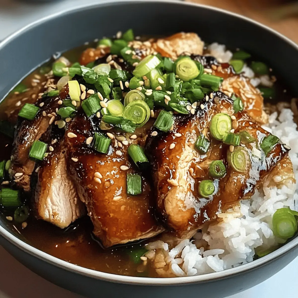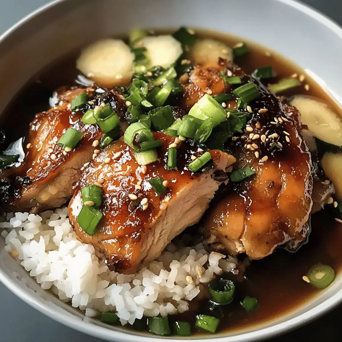 Ein warmer, wohltuender Duft zieht durch die Küche, während sich die Aromen von Knoblauch und Ingwer vermischen. Das heutige Rezept für Karamellisierte Soja-Hähnchen in Knoblauch-Ingwer-Brühe mit Reis vereint all diese Köstlichkeiten in einer Schüssel, die sowohl Herz als auch Seele nährt. Diese unkomplizierte, an asiatische Geschmäcker angelehnte Speise lässt sich in kürzester Zeit zubereiten und eignet sich perfekt für hektische Wochentage genauso wie für gesellige Abende mit Freunden. Die Kombination aus süßem Soja-Glasur, wärmendem Brühe und fluffigem Reis macht es zu einem echten Comfort Food, das jedem schmeichelt. Bist du bereit, deine Geschmacksnerven auf eine köstliche Reise zu schicken? Lass uns gemeinsam in diese köstliche Bowl eintauchen! Warum wirst du dieses Rezept lieben? Einfachheit: Die Zubereitung ist kinderleicht und erfordert nur grundlegende Kochfähigkeiten, sodass du dich schnell in die Küche wagen kannst. Aromatische Vielfalt: Die Kombination aus Knoblauch und Ingwer in der Brühe verleiht dem Gericht eine unwiderstehliche Tiefe und Wärme, die jeden Bissen zu einem Geschmackserlebnis macht. Vielseitigkeit: Ob du das Hähnchen mit Gemüse oder Nudeln anstelle von Reis kombinierst, dieses Rezept kann leicht nach deinen Vorlieben angepasst werden. Zeitersparnis: Perfekt für geschäftige Wochentage, lässt sich dieses Gericht in weniger als 30 Minuten zubereiten, sodass du mehr Zeit für andere Dinge hast. Gemütlicher Genuss: Jeder Löffel bietet eine wohltuende Kombination aus herzhaften Aromen und samtigen Texturen, ideal für entspannte Abende oder gesellige Anlässe mit Freunden. Wenn du noch mehr anpassbare Rezepte kennenlernen möchtest, schau dir auch unser köstliches Gemüse-Reis-Bowl Rezept an! Karamellisierte Soja-Hähnchen Zutaten • Um das Rezept optimal zuzubereiten, benötigst du die folgenden Zutaten: Für das Hähnchen Hähnchenfleisch ohne Haut und Knochen – Ideal für saftige und aromatische Bissen; Brühe kann auch für eine fettärmere Variante genutzt werden. Sojasauce – Sorgt für umami und salzige Noten; Tamari eignet sich für eine glutenfreie Alternative. Honig – Fügt eine süße Tiefe zur Marinade hinzu; als Alternative kann Ahornsirup verwendet werden. Reisessig – Bringt eine ausgewogene Säure; Apfelessig kann ebenfalls genutzt werden. Dunkle Sojasauce (optional) – Für intensivere Farbe und Geschmack; reguläre Sojasauce kann ebenfalls verwendet werden, auch wenn sich die Farbe leicht verändert. Brauner Zucker – Unterstützt die Karamellisierung und bringt zusätzliche Süße; weißer Zucker ist ein möglicher Ersatz, hat jedoch einen anderen Geschmack. Knoblauch (2 Zehen, gehackt) – Fügt der Brühe aromatische Noten hinzu; im Notfall kann auch Knoblauchpulver verwendet werden. Frischer Ingwer – Bringt Wärme und Duft; gemahlener Ingwer ist ein Ersatz, jedoch ist frischer ingwer geschmacklich besser. Öl zum Braten – Notwendig zum Garen des Hähnchens; neutrales Öl ist hier am besten. Sesamöl – Verleiht der Brühe einen nussigen Geschmack; kann weggelassen werden, verbessert aber das Gericht. Für die Brühe Hühnerbrühe (wenig Natrium) – Basis für die Brühe, die Tiefe gibt; Gemüsebrühe ist eine leichtere Alternative. Frühlingszwiebel – Frisch in die Brühe oder als Garnitur; Schalotten sind ebenfalls geeignet. Für die Beilage Jasminreis – Fluffige Grundlage für das Gericht; Langkorn- oder Basmatireis können als Alternativen verwendet werden. Sesamsamen und frischer Koriander – Garnierungen für zusätzliche Textur und Geschmack; können je nach Vorliebe weggelassen oder ersetzt werden. Chiliflocken oder Chilioel (optional) – Für zusätzliche Schärfe, je nach persönlichem Geschmack anpassbar. Mit diesen Zutaten bist du bestens vorbereitet, um das köstliche Rezept für Karamellisierte Soja-Hähnchen in Knoblauch-Ingwer-Brühe mit Reis zuzubereiten! Schritt-für-Schritt-Anleitung für Karamellisierte Soja-Hähnchen in Knoblauch-Ingwer-Brühe mit Reis Step 1: Hähnchen marinieren Vermische in einer Schüssel die Sojasaucen, Honig, Reisessig, braunen Zucker, Knoblauch und frischen Ingwer. Lege die Hähnchenstücke hinein und wende sie gut, sodass sie vollständig mit der Marinade überzogen sind. Lass das Hähnchen mindestens 15 Minuten marinieren, während du die anderen Zutaten vorbereitest. Step 2: Hähnchen braten Erhitze eine große Pfanne bei mittlerer Hitze und füge etwas Öl hinzu, bis es heiß ist. Lege die marinierten Hähnchenstücke in die Pfanne und brate sie etwa 4-5 Minuten pro Seite, bis sie schön karamellisiert sind und eine goldene Farbe annehmen. Achte darauf, die Stücke nicht zu überfüllen, damit sie gleichmäßig garen können. Nach dem Braten das Hähnchen aus der Pfanne nehmen und kurz ruhen lassen. Step 3: Brühe zubereiten Nutze dieselbe Pfanne und gib das Sesamöl hinzu. Stelle die Hitze auf mittelhoch und füge den restlichen gehackten Knoblauch und frischen Ingwer hinzu. Sauté die Mischung etwa 1 Minute lang, bis sie aromatisch ist. Danach gieße die Hühnerbrühe hinzu und rühre die restliche Sojasauce und den braunen Zucker ein. Lass die Brühe 10-15 Minuten leicht köcheln, damit sich die Aromen entfalten. Step 4: Reis kochen Während die Brühe köchelt, bereite den Jasminreis gemäß der Packungsanweisung zu. Verwende in der Regel das Verhältnis von 1 Teil Reis zu 1,5 Teilen Wasser. Bring das Wasser zum Kochen, füge den Reis hinzu, reduziere die Hitze und lasse ihn für etwa 15 Minuten quellen, bis er weich und fluffig ist. Nach dem Kochen den Reis mit einer Gabel auflockern. Step 5: Schalen anrichten Schneide das gebratene Hähnchen in Scheiben und bereite die Schalen vor. Fülle jede Schale mit einer Portion des fluffigen Jasminreises. Löffle die aromatische Brühe großzügig über den Reis und lege die geschnittenen Hähnchenstücke darauf. Verfeinere das Ganze nach Belieben mit Frühlingszwiebeln, Sesamsamen und frischem Kor