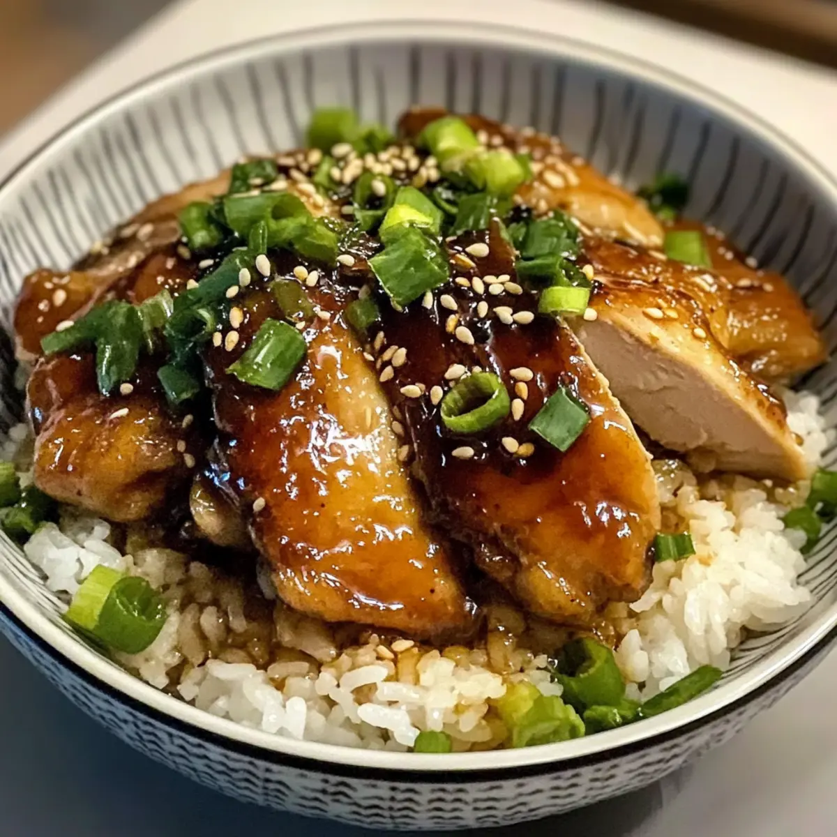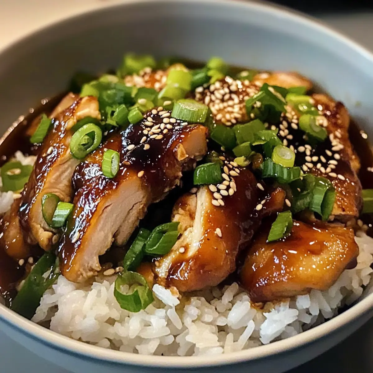 Als ich neulich in der Küche stand, um etwas Originelles zu zaubern, fiel mir die Idee für karamellisiertes Sojasauce-Hühnchen in Knoblauch-Ingwer-Brühe mit Reis ein. Diese asiatisch inspirierte Delikatesse ist nicht nur ein wahrer Genuss für die Sinne, sondern bringt auch jede Menge Komfort nach einem langen Tag. In weniger als 40 Minuten zauberst du ein Gericht, das sowohl stilles Beisammensein als auch elegante Dinnerpartys perfekt ergänzt. Saftiges Hühnchen, glasiert mit einer süßen Sojasauce, umrandet von einer aromatischen Brühe voller Knoblauch und Ingwer, dazu lockerer Jasminreis – einfach unwiderstehlich! Und das Beste: Du kannst das Rezept nach Herzenslust anpassen. Neugierig, wie du dieses köstliche Gericht selbst zubereiten kannst? Lass uns gemeinsam loslegen! Warum wirst du dieses Rezept lieben? Einfachheit: Die Zubereitung ist kinderleicht, sodass du ohne viel Aufwand ein köstliches Gericht zaubern kannst. Schnell & Praktisch: In weniger als 40 Minuten bereit; perfekt für hektische Wochentage oder wenn du unerwartete Gäste hast. Vielseitigkeit: Ob mit Hühnchen, Tofu oder sogar Garnelen – du kannst die Hauptzutat ganz nach deinem Geschmack auswählen, um das ideale Gericht zu kreieren. Schau dir auch mein Rezept für Paprika Mit Reis an für weitere kreative Möglichkeiten! Wärmende Aromen: Die Kombination aus Knoblauch und Ingwer verleiht dem Gericht nicht nur einen tollen Geschmack, sondern auch eine angenehme Wärme, die perfekt für kalte Tage ist. Zufriedenheit garantiert: Man kann nicht anders, als sich bei diesem aromatischen Gericht wohlzufühlen – deine Familie und Freunde werden es lieben! Karamellisierte Sojasauce-Hühnchen Zutaten • Wenn du dich für die Herstellung von Karamellisiertem Sojasauce-Hühnchen in Knoblauch-Ingwer-Brühe mit Reis entscheidest, erwartet dich eine köstliche und aromatische Erfahrung! Für das Hühnchen 4 Hähnchenoberschenkel, ohne Haut – Hauptprotein, das zart und saftig bleibt. Für eine magerere Option kannst du Hähnchenbrust wählen. 2 EL Sojasauce – Fügt umami Geschmack und Salzigkeit hinzu. Verwende Tamari für eine glutenfreie Variante. 1 EL Honig – Für Süße und Glanz. Alternativ kannst du für eine vegane Version Ahornsirup verwenden. 1 EL Reisessig – Bringt Säure, um die Aromen auszubalancieren. Weißweinessig ist ein guter Ersatz in der Not. 1 EL dunkle Sojasauce (optional) – Für tiefere Farbe und Geschmack; reguläre Sojasauce funktioniert, wenn dies nicht verfügbar ist. 1 EL brauner Zucker – Balance zwischen süß und herzhaft. Kokoszucker kann als Alternative verwendet werden. 1 Knoblauchzehe, gehackt – Aromatische Basis für den Geschmack; frischer Knoblauch ist empfehlenswert. ½ TL frischer Ingwer, gerieben – Verleiht Wärme und Würze; gemahlener Ingwer kann substituiert werden, aber frischer hat mehr Impact. 1 EL Öl zum Braten – Zum Anbraten des Hühnchens; jedes neutrale Öl ist geeignet. 1 EL Sesamöl – Verbessert den Geschmack mit einem nussigen Profil; Olivenöl kann milden, aber alters Geschmack. Für die Brühe 4 Knoblauchzehen, gehackt – Für zusätzliche Tiefe im Geschmack. 1 Stück frischer Ingwer, 2,5 cm, in Scheiben – Für die Brühe; infundiert Ingwergeschmack. Kann durch gehackten Ingwer ersetzt werden. 3 Tassen Hühnerfond (geringe Menge an Natrium) – Flüssigkeitsbasis für die Brühe; benutze Gemüsefond für eine vegetarische Option. 1 EL Sojasauce – Weitere Geschmacksverstärkung der Brühe; nach Geschmack anpassen. 1 TL Zucker – Balanciert den Geschmack der Brühe aus; optional, wenn die Brühe bereits gesüßt ist. 1 Frühlingszwiebel, in Scheiben geschnitten (plus mehr zum Garnieren) – Frische Note, die Crunch und Farbe hinzufügt. Für den Reis und Garnitur 1½ Tassen Jasminreis – Hauptbeilage, die fluffige Textur bietet; Basmatireis oder Vollkornreis sind Alternativen. Sesamsamen – Für die Garnitur; sorgen für einen extra Crunch. Frischer Koriander (optional) – Heller Geschmack; kann je nach Vorliebe weggelassen werden. Chiliflocken oder Chilisoße (optional) – Für zusätzlichen Schärfe; nach Geschmack anpassen. Schritt-für-Schritt-Anleitung für Karamellisierte Sojasauce-Hühnchen in Knoblauch-Ingwer-Brühe mit Reis Step 1: Hühnchen marinieren In einer Schüssel die Sojasaucen, Honig, Reisessig, braunen Zucker, gehackten Knoblauch und geriebenen Ingwer gut vermischen. Die Hähnchenoberschenkel hinzufügen und sicherstellen, dass sie gleichmäßig mit der Marinade bedeckt sind. Abdecken und für 15 Minuten bei Zimmertemperatur marinieren, um den vollen Geschmack zu entfalten. Step 2: Hühnchen braten In einer großen Pfanne bei mittlerer Hitze das Öl erhitzen. Die marinierten Hühnchenstücke hineingeben und etwa 4-5 Minuten pro Seite braten, bis sie goldbraun und klebrig sind. Während des Bratens das Hühnchen gelegentlich wenden, um ein gleichmäßiges Garen zu gewährleisten. Nach dem Braten das Hühnchen auf einen Teller legen und kurz ruhen lassen, bevor es in Scheiben geschnitten wird. Step 3: Brühe zubereiten In einem großen Topf das Sesamöl bei mittlerer Hitze erhitzen. Den gehackten Knoblauch und die Ingwerscheiben hinzufügen und etwa 1 Minute lang anbraten, bis es duftet. Dann den Hühnerfond, die zusätzlich genutzte Sojasauce und optional den Zucker hinzugeben. Alles gut umrühren und bei niedriger Hitze 10-15 Minuten köcheln lassen, bis die Aromen gut verschmolzen sind. Step 4: Reis kochen In der Zwischenzeit den Jasminreis gemäß den Anweisungen auf der Verpackung vorbereiten. In einem separaten Topf den Reis in Wasser zum Kochen bringen, dann die Hitze reduzieren und zugedeckt etwa 15 Minuten köcheln lassen, bis das Wasser vollständig aufgenommen ist. Mit einer Gabel auflockern, sobald der Reis fertig ist. Step 5: Schüsseln anrichten Jetzt, wo alles bereit ist, das Hühnchen in Scheiben schneiden und auf den Tellern anrichten. Den gekochten Reis in die Mitte der Schüsseln platzieren und die 