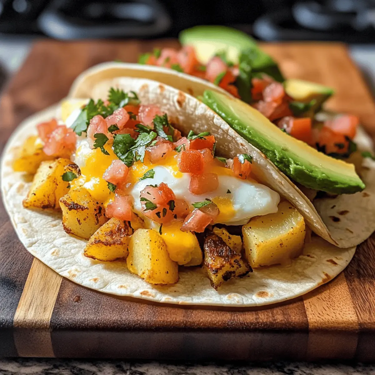 Eines Morgens, während ich in der Küche nach Inspiration suchte, fiel mein Blick auf die perfekt goldbraun gebratenen Kartoffeln und die frisch geschlagenen Eier – und plötzlich hatte ich den besten Plan für ein Frühstück. Diese Kartoffel, Ei und Käse Frühstückstacos sind nicht nur einfach zuzubereiten, sondern auch unglaublich anpassbar! Mit knusprigen Kartoffeln, fluffigen Eiern und köstlichem Käse, eingewickelt in warmen Tortillas, ist dieses Rezept ein echter Hit, sowohl beim Brunch mit Freunden als auch beim entspannten Sonntagsfrühstück zu Hause. Ideal für Küchenneulinge und alle, die eine schnelle und befriedigende Mahlzeit suchen, stellen diese Tacos eine köstliche Lösung für den hektischen Morgen dar. Bist du bereit, das Frühstück neu zu definieren und deine eigenen Varianten auszuprobieren? Warum sind diese Frühstückstacos einzigartig? Einzigartig in der Anpassbarkeit: Du kannst die Tacos nach deinem Geschmack gestalten, indem du verschiedene Toppings wie Pico de Gallo oder Guacamole hinzufügst. Schnell und einfach: Dieses Rezept ist ideal für Anfänger und benötigt nur eine kurze Vorbereitungszeit. Köstliche Texturen: Die Kombination aus knusprigen Kartoffeln und weichen Eiern sorgt für ein unvergleichliches Geschmackserlebnis. Vielseitig: Ob zum Brunch mit Freunden oder für ein schnelles Frühstück, diese Tacos sind immer ein Hit! Nahrhaft: Mit hohem Ei- und Käseanteil sind sie sättigend und perfekt für einen energiereichen Start in den Tag. Wenn du nach weiteren Ideen suchst, wie du die Tacos verfeinern kannst, schau dir diese Variationen an. Kartoffel, Ei und Käse Zutaten • Diese Zutaten sind die Grundlage für deine perfekten Frühstückstacos! Für die Tacos: Kartoffeln – idealerweise Russet oder Yukon Gold für die beste Textur und den Geschmack. Eier – verwende frische, idealerweise Freiland-Eier für ein noch besseres Aroma. Käse – Cheddar oder Monterey Jack sorgen für einen cremigen, geschmolzenen Genuss. Mais-Tortillas – setze auf frische oder selbstgemachte Tortillas, um den besten Geschmack zu erzielen. Für die Toppings: Pico de Gallo – verleiht den Tacos eine frische, würzige Note; perfekt für einen zusätzlichen Geschmackskick. Guacamole – sorgt für eine gesunde cremige Komponente; du kannst auch Limettensaft hinzufügen, um es aufzufrischen. Frische Kräuter – wie Schnittlauch oder Koriander, bringen Farbe und zusätzlichen Geschmack. Experimentiere mit diesen Zutaten und finde deine eigene Kombination, die die Kartoffel, Ei und Käse Frühstückstacos zu deinem neuen Lieblingsfrühstück macht! Schritt-für-Schritt-Anleitung für Kartoffel, Ei und Käse Frühstückstacos Schritt 1: Kartoffeln vorbereiten Schäle die Kartoffeln und würfle sie in kleine Stücke. Bringe einen Topf mit Wasser zum Kochen und koche die Kartoffelwürfel für etwa 10 Minuten, bis sie zart sind. Lasse sie abtropfen und erhitze dann eine große Pfanne auf mittlerer Hitze. Füge etwas Öl hinzu und brate die Kartoffeln für 5–7 Minuten, bis sie goldbraun und knusprig sind. Schritt 2: Eier aufschlagen Während die Kartoffeln braten, schlage die Eier in einer Schüssel mit einer Prise Salz und Pfeffer auf. Verwende einen Schneebesen, um die Eier gut zu vermengen und eine luftige Konsistenz zu erreichen. Erhitze eine separate, antihaftbeschichtete Pfanne bei mittlerer Hitze und füge einen kleinen Klecks Butter hinzu. Gieße die Eier in die Pfanne und lasse sie 3–4 Minuten stocken, rühre dabei sanft um, damit sie fluffig bleiben. Schritt 3: Tacos zusammenstellen Erwärme die Mais-Tortillas in einer trockenen Pfanne oder im Ofen, bis sie biegsam sind (ca. 1–2 Minuten pro Seite). Lege die warmen Tortillas auf einen Teller und fülle sie gleichmäßig mit den gebratenen Kartoffeln und den Rühreiern. Streue großzügig den geriebenen Käse über die Füllung, sodass er bei der Hitze der Tacos leicht schmelzen kann. Schritt 4: Toppings hinzufügen Jetzt kommt der spaßige Teil! Garnier deine Kartoffel, Ei und Käse Frühstückstacos nach Lust und Laune mit frischem Pico de Gallo, cremiger Guacamole oder deinen Lieblingskräutern. Du kannst auch einen Spritzer Limettensaft darüber geben, um Frische und Geschmack zu intensivieren. Dies verleiht deinen Tacos das gewisse Etwas und macht sie zu einem echten Frühstücksgenuss. Schritt 5: Servieren und genießen Serviere die Frühstückstacos sofort, solange sie warm sind. Du kannst sie einfach auf einen großen Teller legen und jedem die Möglichkeit geben, sich selbst zu bedienen und die Tacos nach Belieben zu belegen. Aber vor allem genieße jedes Bissen dieser leckeren Kartoffel, Ei und Käse Frühstückstacos in vollen Zügen! Was passt zu Kartoffel, Ei und Käse Frühstückstacos? Beginne deinen Tag mit einer geschmackvollen Mischung aus Aromen und Texturen, die deine Kartoffel, Ei und Käse Frühstückstacos wunderbar ergänzen. Frischer Obstsalat: Bunte Obststücke liefern Frische und sind eine süße Ergänzung, die ideal zur herzhaften Füllung der Tacos passt. Würzige Salsa: Eine hausgemachte Salsa bringt zusätzliche Schärfe und Frische, die perfekt mit der cremigen Textur der Tacos harmoniert. Ein wahrer Geschmackskick! Avocado-Scheiben: Avocados sind nicht nur lecker, sondern auch nährstoffreich. Ihre cremige Konsistenz ergänzt das knusprige Taco-Erlebnis wunderbar. Cremiger Joghurt: Ein Klecks griechischer Joghurt als Topping fügt eine köstliche Cremigkeit hinzu, die der Wärme der Tacos entgegenwirkt. Margaritas: Ein erfrischendes Getränk, das mit seiner Zitrusnote die Aromen der Tacos perfekt unterstreicht. Optimal für einen genussvollen Brunch! Schokoladen-Bananen-Smoothie: Dieser reichhaltige Smoothie ergänzt die herzhaften Tacos durch seine Süße und sorgt zusätzlich für einen energiereichen Start in den Tag. Zeit sparen mit den Kartoffel, Ei und Käse Frühstückstacos Diese Kartoffel, Ei und Käse Frühstückstacos sind ideal für alle, die Zeit sparen 