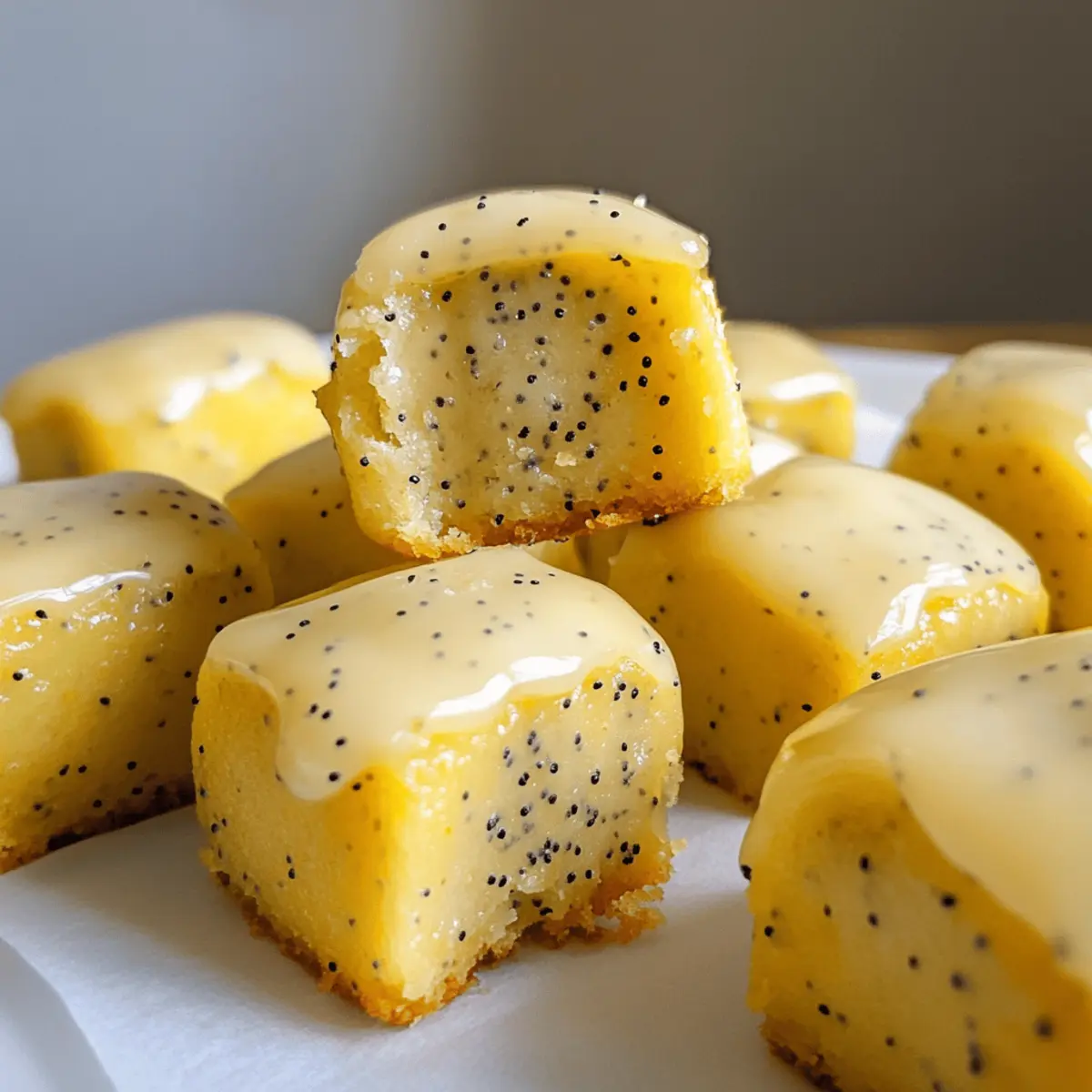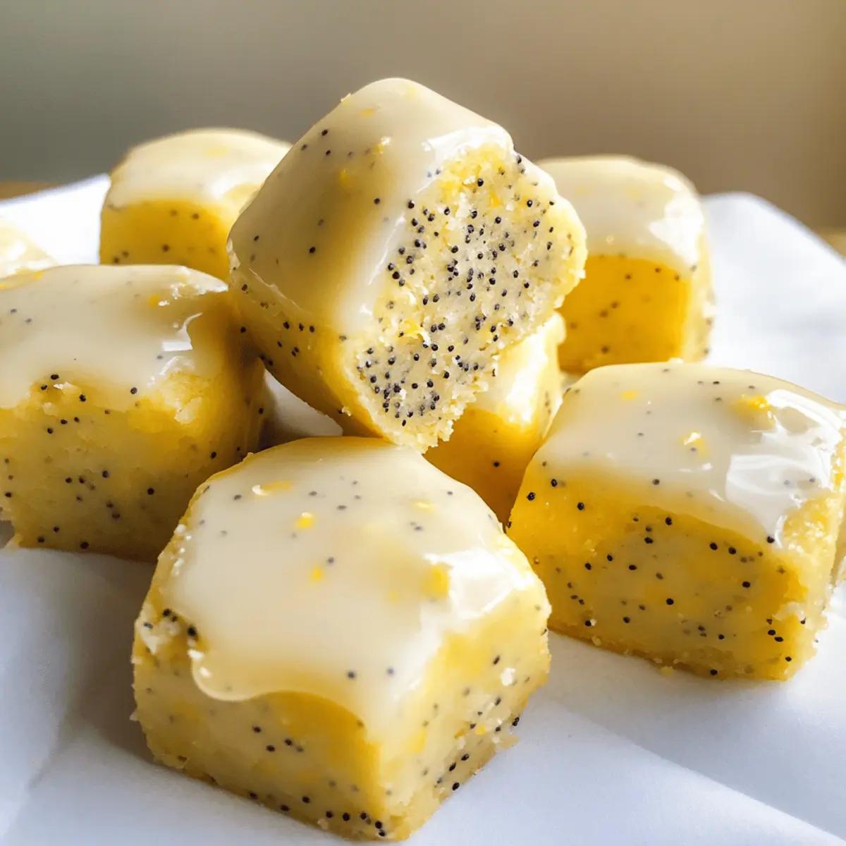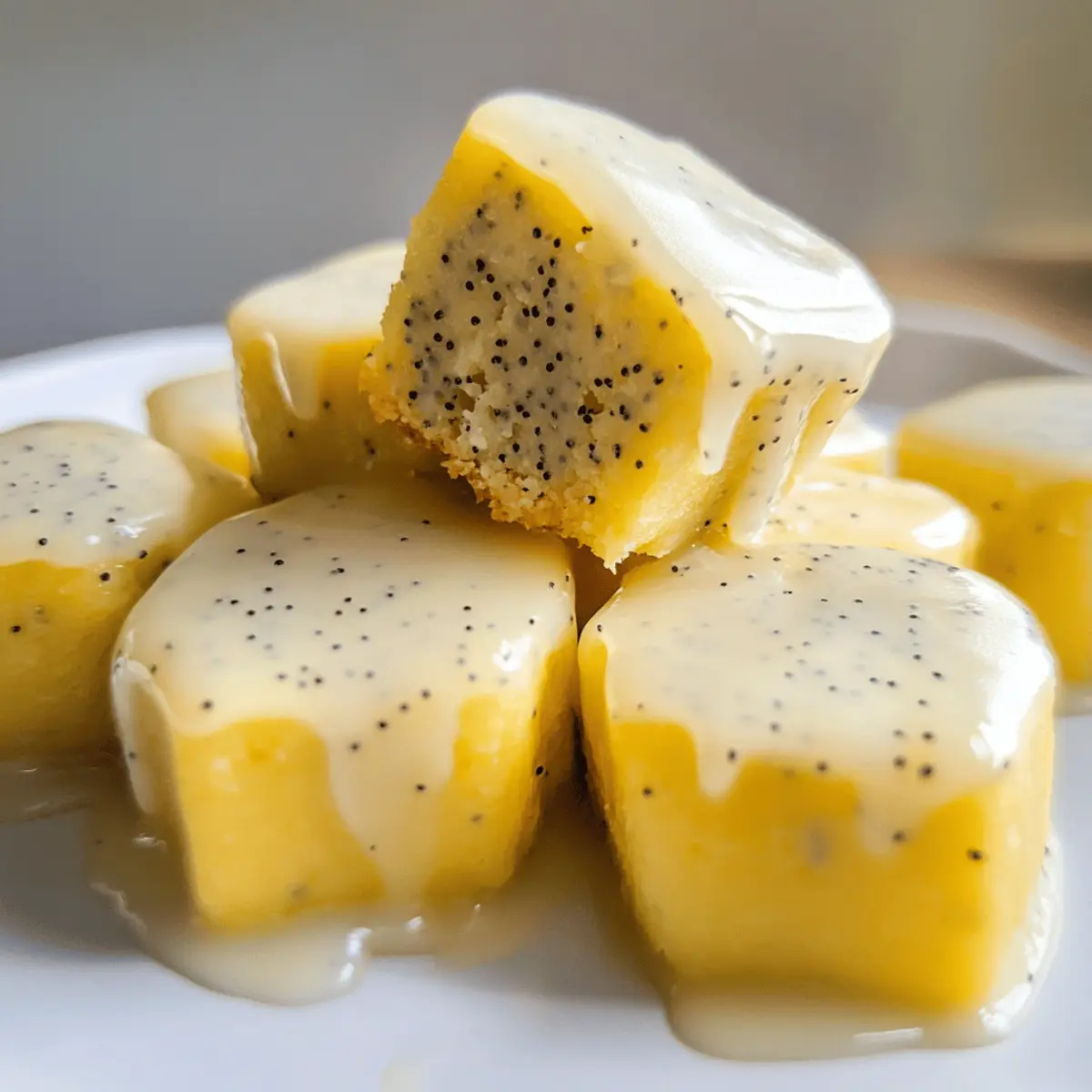 Die Hitze des Sommers bringt nicht nur Sonnenschein, sondern auch die Sehnsucht nach erfrischenden Snacks! Diese Keine-Backen Zitrone Mohnsamen Kühlschrank Bissen (V) sind genau das richtige für eine köstliche Auszeit, die gleichzeitig einfach zuzubereiten ist. Mit einem unverwechselbaren Zusammenklang aus zitrusfrischer Spritzigkeit und der zarten Textur, die mich an köstlichen Marzipan erinnert, sind diese kleinen Leckereien echte Kraftpakete für unterwegs. Sie sind nicht nur vegan und glutenfrei, sondern auch eine hervorragende Proteinquelle. Perfekt, um die Energiereserven aufzufüllen oder einfach den kleinen Hunger zwischendurch zu stillen! Wer könnte da widerstehen? Bist du bereit, selbst in die Küche zu kommen und dich mit diesen erfrischenden Snacks zu verwöhnen? Warum wirst du diese Bissen lieben? Einfachheit garantiert: Die Zubereitung dieser Keine-Backen Zitrone Mohnsamen Kühlschrank Bissen ist kinderleicht und erfordert keine Backkenntnisse. Erfrischende Aromen: Die Kombination aus spritzigem Zitronensaft und knusprigen Mohnsamen sorgt für einen unverwechselbar belebenden Geschmack. Vielseitige Snacks: Ideal für unterwegs, ob nach dem Workout oder als süßes Mittagessen – diese Leckereien passen zu jedem Anlass. Gesunde Inhaltsstoffe: Diese Bissen sind nicht nur vegan und glutenfrei, sondern auch reich an pflanzlichem Protein, was sie zu einer perfekten Wahl für gesundheitsbewusste Genießer macht. Kreative Variationen: Du kannst die Rezeptur anpassen, indem du zum Beispiel verschiedene Zitrusfrüchte verwendest oder die Süße nach deinem Geschmack variierst, um immer wieder neue Geschmackserlebnisse zu kreieren. Keine-Backen Zitrone Mohnsamen Zutaten • Diese Bissen sind nicht nur einfach zuzubereiten, sondern auch voller gesunder und frischer Zutaten! Für den Teig Mandelmehl – sorgt für die nötige Struktur und einen nussigen Geschmack; für eine nussfreie Option kannst du fein gemahlenes Sonnenblumenkernmehl verwenden. Kokosmehl – bindet die Feuchtigkeit und fügt eine leichte Süße hinzu; kann durch zusätzliches Mandelmehl ersetzt werden, obwohl sich die Textur verändern könnte. Pflanzenbasierte Proteinpulver – erhöht den Proteingehalt und die Süße; verwende Vanille oder geschmacksneutrales Pulver und füge bei Letzterem mehr Ahornsirup hinzu. Kokosöl – dient als Bindemittel und liefert gesunde Fette; kann auch durch geschmolzene vegane Butter ersetzt werden. Ahornsirup – sorgt für natürliche Süße; Honig ist eine gute Alternative für nicht-vegane Optionen. Zitronensaft und -abrieb – verleihen Frische und Säure; du kannst auch Limette verwenden, wenn du keine Zitrone hast. Mohnsamen – fügen Textur und Geschmack hinzu; du kannst sie durch Chiasamen ersetzen, um einen anderen Crunch zu erzielen. Optionale Glasur Puderzucker – für die Süße und Dekoration; kann mit Kaffeecreamer gemischt werden, um eine Glasur zu kreieren. Du kannst die Glasur auch weglassen, um einen einfacheren Look zu erzielen. Schritt-für-Schritt-Anleitung für Keine-Backen Zitrone Mohnsamen Kühlschrank Bissen Step 1: Trockene Zutaten vermischen In einer mittelgroßen Schüssel kombinierst du das Mandelmehl, Kokosmehl, Pflanzenproteinpulver, Mohnsamen und Zitronenabrieb. Verwende einen Schneebesen, um sicherzustellen, dass die trockenen Zutaten gut vermischt sind und keine Klumpen entstehen. Dieser Schritt dauert etwa 2 Minuten und ist wichtig für die gleichmäßige Verteilung der Aromen in deinen Keine-Backen Zitrone Mohnsamen Kühlschrank Bissen. Step 2: Nasse Zutaten vorbereiten Schmelze das Kokosöl in einem kleinen Topf bei niedriger Hitze oder in der Mikrowelle für etwa 30 Sekunden. Anschließend in einer separaten Schüssel das geschmolzene Kokosöl mit dem Ahornsirup gut verquirlen. Diese Mischung sorgt dafür, dass deine Bissen zusammenhalten, während sie in den Kühlschrank fest werden. Es ist wichtig, dass das Kokosöl nicht zu heiß ist, um die anderen Zutaten nicht zu beeinträchtigen. Step 3: Mischungen kombinieren Gieße die nassen Zutaten aus Schritt 2 in die Schüssel mit den trockenen Zutaten. Verwende einen Spatel, um die Zutaten vorsichtig zu falten, bis ein fester, gleichmäßiger Teig entsteht. Wenn der Teig zu feucht erscheint, füge nach Bedarf mehr Mandelmehl hinzu. Dieser Schritt sollte etwa 5 Minuten in Anspruch nehmen. Step 4: Formen Lege eine kleine Auflaufform oder eine kleine Kastenform mit Backpapier aus und drücke den Teig gleichmäßig hinein. Verwende deine Hände oder einen Löffel, um sicherzustellen, dass der Teig schön fest und glatt gedrückt ist. Die Oberfläche sollte gleichmäßig und fest sein, was dir später eine schöne Form für deine Bissen gibt. Dieser Schritt dauert etwa 5 Minuten. Step 5: Kühlen Stelle die Form mit dem Teig in den Kühlschrank und lasse sie mindestens 2 Stunden fest werden. Überprüfe dabei nach einer Stunde, ob der Teig bereits fest ist. Wenn er leicht zu drücken ist, lasse ihn weitere 30 Minuten oder länger im Kühlschrank. Dies ist entscheidend, damit die Bissen nach dem Schneiden ihre Form behalten. Step 6: Optional glasieren Wenn die Bissen fest sind, kannst du die optionale Glasur vorbereiten. Mische in einer kleinen Schüssel Puderzucker mit etwas Kaffeecreamer, bis eine glatte Konsistenz entsteht. Verteilt die Glasur gleichmäßig über den gekühlten Bissen und stelle sie für weitere 20 Minuten in das Gefrierfach, damit die Glasur fest wird. Dies sorgt für einen süßen und dekorativen Touch, den du nach Belieben anpassen kannst. Expertentipps für Keine-Backen Zitrone Mohnsamen Kühlschrank Bissen Zutaten sorgfältig auswählen: Verwende hochwertige, frische Zutaten wie Mandelmehl und Kokosöl, um den besten Geschmack zu erzielen. Billige Alternativen können die Textur beeinträchtigen. Teig richtig anpassen: Wenn der Teig zu feucht ist, füge nach Bedarf mehr Mandelmehl hinzu, um sicherzustellen, dass deine Bissen gut zusammenhalten und in Form bleiben. Kühlze