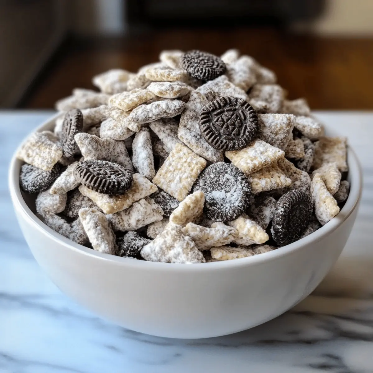 Wenn ich an das letzte Familienfilmabend denke, kommt mir sofort ein knuspriger Snack in den Sinn, der alle begeistert hat: Kekse und Sahne Welpenfutter. Diese herrliche Mischung aus schokoladiger Cremigkeit und knusprigen Oreo-Stückchen zaubert jedem ein Lächeln ins Gesicht. Es ist nicht nur ein schnelles, unkompliziertes Rezept, das in nur 15 Minuten zubereitet ist, sondern auch ein echter Party-Hit – ideal für jede Gelegenheit, sei es ein gemütlicher Abend zu Hause oder ein fröhliches Treffen mit Freunden. Jeder Bissen verspricht einen süßen Genuss, den man unbedingt ausprobieren sollte. Bist du bereit, diese leckere Versuchung selbst zu kreieren? Warum wirst du dieses Rezept lieben? Schnelligkeit: In nur 15 Minuten zauberst du einen köstlichen Snack, der zum hitzigen Filmabend passt oder jede Party aufpeppt. Einfachheit: Die Zubereitung ist kinderleicht, sodass du nicht zum Profi-Koch werden musst, um diese Leckerei zu genießen. Vielseitigkeit: Passe dieses Rezept an deinen Geschmack an! Du kannst die Oreos durch Sekunden mit anderen Keksen ersetzen oder verschiedene Geschmacksrichtungen von Schokoladenchips ausprobieren. Crowd-Pleaser: Jeder wird begeistert sein! Diese süße Mischung bringt Freude und wird die Stars deines nächsten Events sein. Wenn du auf der Suche nach weiteren süßen Ideen bist, schau dir unsere Schokoladen Karamell Kekse oder Erdbeer Crunch Kekse an! Kekse und Sahne Welpenfutter Zutaten Für die Basis Rice Chex – sorgt für den knusprigen Biss; eine glutenfreie Cerealiensorte ist eine tolle Alternative. Weiße Schokoladenchips – bieten Süße und Cremigkeit; kannst du durch weiße Schmelzwalzen ersetzen. Halbbitterschokolade – bringt einen reichen Schokoladengeschmack; dunkle Schokolade eignet sich für eine tiefere Note. Kokosöl – hilft, die Schokolade gleichmäßig zu schmelzen und zu coatieren; Butter oder Pflanzenfett sind ebenfalls möglich. Puderzucker – sorgt für Süße und hilft, die Mischung zu ummanteln; keine Substitutionen notwendig für die Konsistenz. Oreos – fügt Geschmack und Textur hinzu; kannst du durch andere Sandwich-Kekse für mehr Variation ersetzen. Für die Variation Andere Kekse – Probiere Goldene Oreos oder andere Kekse für neue Geschmackserlebnisse. Schokoladen Chips – Variiere mit verschiedenen Geschmacksrichtungen wie Minze oder Erdnussbutter. Zum Servieren Optionale Streusel – füge saisonale Streusel hinzu, um zusätzliche Farbe und Spaß zu bringen. Mini-Marshmallows – können für einen festlichen Touch eingemischt werden. Mit diesen Zutaten bist du bestens gerüstet, um ein unwiderstehliches Kekse und Sahne Welpenfutter zu kreieren, das garantiert für Begeisterung sorgt! Schritt-für-Schritt-Anleitung für Kekse und Sahne Welpenfutter Step 1: Weiße Schokolade schmelzen Zuerst schmilz die weißen Schokoladenchips zusammen mit zwei Esslöffeln Kokosöl in einer mikrowellengeeigneten Schüssel. Erwärme alles in Intervallen von 20 bis 30 Sekunden, bis die Mischung glatt und cremig ist. Rühre zwischendurch um, um ein Anbrennen zu vermeiden. Diese schmelzende Schokolade wird die Basis für dein Kekse und Sahne Welpenfutter. Step 2: Rice Chex zubereiten Füge die Hälfte der Rice Chex in die Schüssel mit geschmolzener Schokolade und rühre gut um, sodass die Cerealien gleichmäßig mit der schokoladigen Mischung überzogen sind. Danach gib die beschichteten Rice Chex in einen großen Ziploc-Beutel, füge zwei Tassen Puderzucker hinzu, verschließe den Beutel und schüttle ihn kräftig, um die Chex gut zu umhüllen. Stelle den Beutel zur Seite. Step 3: Halbbitterschokolade schmelzen Im gleichen Behälter schmilz nun die restlichen Halbbitterschokoladenchips zusammen mit dem verbleibenden Kokosöl. Nutze wieder die Mikrowelle in Intervallen von 20 bis 30 Sekunden, bis die Mischung komplett geschmolzen und cremig ist. Das geschmolzene Produkt wird dem Kekse und Sahne Welpenfutter einen reichhaltigen Geschmack verleihen. Step 4: Restliche Rice Chex beschichten Gib die übrigen Rice Chex in die Schüssel mit der geschmolzenen Halbbitterschokolade und rühre kräftig um, bis die Cerealien vollständig eingehüllt sind. Übertrage die Schokoladen-Chex-Mischung in einen neuen Ziploc-Beutel, füge erneut zwei Tassen Puderzucker hinzu, verschließe ihn und schüttle kräftig, damit sie schön zuckrig werden. Step 5: Oreos zerkleinern Nehme die Oreos und zerbrich sie leicht, sodass du Stückchen bekommst, die gut in dein Kekse und Sahne Welpenfutter passen. Füge die zerkleinerten Oreos in eine große Schüssel, gefolgt von den beiden Schokoladen-Chex-Mischungen aus den Beuteln. Mische alles vorsichtig, bis die Zutaten gleichmäßig verteilt sind. Step 6: Aufbewahrung Verpacke das fertige Kekse und Sahne Welpenfutter in einem luftdichten Behälter. Du kannst es bis zu einer Woche aufbewahren, sodass du immer einen köstlichen Snack zur Hand hast. Während der Aufbewahrung bleibt es knusprig, und jeder Biss sorgt für den perfekten süßen Genuss. Aufbewahrungstipps für Kekse und Sahne Welpenfutter Zimmertemperatur: Bewahre das Kekse und Sahne Welpenfutter in einem luftdichten Behälter auf, um es frisch und knusprig zu halten. So bleibt es bis zu einer Woche genießbar. Kühlschrank: Für eine längere Haltbarkeit kannst du das Welpenfutter auch im Kühlschrank aufbewahren. Achte darauf, es gut verpackt zu lagern, um Feuchtigkeitsaufnahme zu vermeiden. Gefrierfach: Wenn du es länger aufbewahren möchtest, kannst du das Kekse und Sahne Welpenfutter bis zu einem Monat in den Gefrierschrank legen. Stelle sicher, dass es in einem luftdichten Behälter oder Gefrierbeutel gut verpackt ist. Auftauen: Lasse das gefrorene Welpenfutter einfach bei Raumtemperatur auftauen, bevor du es servierst. Es behält seinen optischen und geschmacklichen Genuss! Was passt zu Kekse und Sahne Welpenfutter? Egal, ob du einen geselligen Abend planst oder einfach nur einen süßen Snack genießen möchtest, die richtige Begleitun