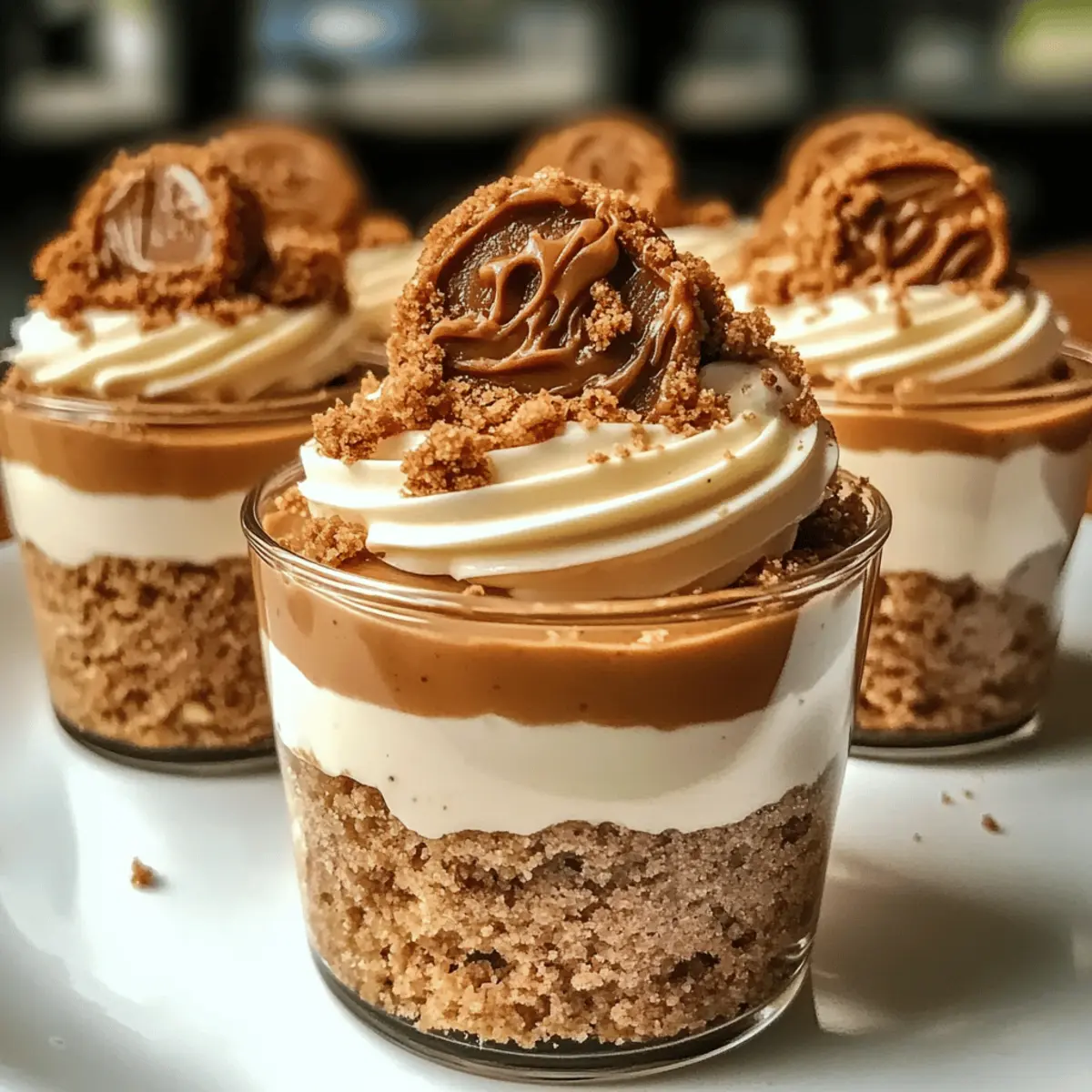 Leichtigkeit: Diese Keksebutter Käsekuchen Becher sind im Handumdrehen zubereitet und erfordern keine Backkünste.