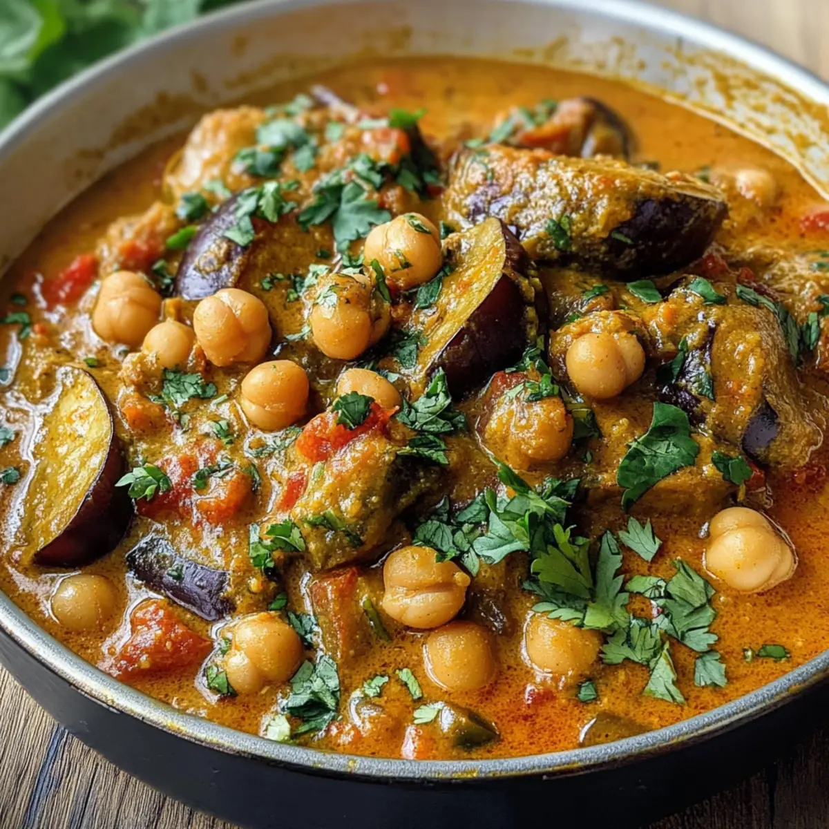 Als ich das Aroma von Gewürzen und frischem Gemüse in meine Küche strömen ließ, wurde mir sofort klar, dass heute ein besonderer Tag ist. Dieses Kichererbsen-Curry-Aubergine bringt nicht nur Farbe auf den Teller, sondern verwandelt auch ein ganz normales Mittagessen in ein unvergessliches Geschmackserlebnis. Das Gericht ist nicht nur vegan und glutenfrei, sondern auch eine perfekte Wahl für alle, die gesunde, schnelle und gemütliche Mahlzeiten schätzen. Es lässt sich schnell zubereiten und bietet unendliche Anpassungsmöglichkeiten – von zusätzlichen Gemüsesorten bis hin zu verschiedenen Gewürzen, um das Curry ganz nach deinem Geschmack zu gestalten. Bist du bereit, mit mir auf eine geschmackvolle Reise zu gehen? Warum lieben alle dieses Kichererbsen-Curry? Einfachheit: Die Zubereitung dieses Kichererbsen-Curry-Aubergine ist kinderleicht, sodass auch Anfänger im Kochen schnell erfolgreich sein können. Vielseitigkeit: Du kannst das Rezept nach Lust und Laune anpassen – ergänze beispielsweise frisches Gemüse wie Spinat oder variiere die Gewürze für eine persönliche Note. Gesundheit: Reich an pflanzlichem Protein und Ballaststoffen, ist dieses Gericht eine wertvolle Bereicherung für jede vegane Ernährung. Wohlfühlfaktor: Mit seinem cremigen Geschmack und den zarten Auberginenstücken bringt es Gemütlichkeit auf den Teller und ist ideal für kalte Tage. Probiere auch dazu passende Optionen wie Feta Cranberry Kichererbsensalat oder Brokkolicurry Mit Roten Linsen für eine vollwertige Mahlzeit! Kichererbsen-Curry-Aubergine Zutaten Für das Curry Olivenöl – gibt die Basis für das Anbraten und Geschmack. Ersetze es durch Kokosöl für einen süßeren Geschmack. Zwiebel – fügt Süße und Tiefe hinzu. Verwende Schalotten für einen milderen Geschmack. Knoblauch – sorgt für einen würzigen Geschmack. Frischer Knoblauch ist ideal; vermeide Knoblauchpulver. Ingwer – sorgt für Wärme und Würze. Frischer Ingwer ist bevorzugt; gemahlener Ingwer kann im Notfall verwendet werden. Rote Chilischote – optional für zusätzliche Schärfe. Lasse sie weg für ein milderes Gericht oder passe die Menge nach Geschmack an. Kreuzkümmel – verleiht dem Curry eine erdige Tiefe. Kann durch Koriander ersetzt werden für andere Aromen. Koriander – verbessert den Geschmack mit zitrusartigen Noten. Frischer Koriander ist optimal; kann weggelassen werden, wenn nicht verfügbar. Kurkuma – gibt Farbe und gesundheitliche Vorteile. Kann nicht ohne Verlust von Geschmack und gesundheitlichen Eigenschaften ersetzt werden. Garam Masala – eine Gewürzmischung, die Wärme hinzufügt. Verwende Currypulver als Ersatz, falls nicht verfügbar. Gehackte Tomaten – sorgt für Säure und Fülle. Frische Tomaten können Canned ersetzt werden, wenn sie Saison haben. Kichererbsen – dient als die Hauptquelle für pflanzliches Protein. Trockene Kichererbsen können verwendet werden; vorher einweichen und kochen. Aubergine – fügt Substanz und Textur hinzu. Zucchini kann als kalorienärmere Alternative dienen. Gemüsebrühe – fügt Flüssigkeit und Geschmack hinzu. Wasser kann im Notfall verwendet werden, obwohl der Geschmack reduziert wird. Kokosmilch – bietet Cremigkeit; essenziell für die Textur. Sahne oder pürierte Cashews können als Alternativen dienen. Zitronen-/Limettensaft – sorgt für Frische im Gericht. Essig kann als Säure-Ersatz verwendet werden. Frischer Koriander – zur Garnitur, bereichert die Präsentation und den Geschmack. Kann durch Petersilie ersetzt werden für eine andere frische Note. Salz und Pfeffer – um die Würze nach Geschmack anzupassen. Schritt-für-Schritt-Anleitung für Kichererbsen-Curry-Aubergine Step 1: Zwiebel anbraten Erhitze in einem großen Topf oder einer tiefen Pfanne bei mittlerer Hitze 2 Esslöffel Olivenöl. Füge die fein gehackte Zwiebel hinzu und brate sie 5-7 Minuten lang, bis sie weich und goldbraun ist. Achte darauf, dass die Zwiebel nicht anbrennt, da sie sonst bitter wird. Step 2: Gewürze hinzufügen Gib den gepressten Knoblauch, den geriebenen Ingwer und die gehackte rote Chilischote (falls verwendet) zu den Zwiebeln. Brate alles etwa 1 Minute lang an, bis die Mischung aromatisch ist und die Aromen gut durchgezogen sind. Rühre kontinuierlich, um ein Anbrennen zu vermeiden. Step 3: Gewürzmischung einarbeiten Jetzt ist es Zeit, die Gewürze hinzuzufügen. Streue Kreuzkümmel, Koriander, Kurkuma und Garam Masala über die Zwiebelmischung. Lasse die Gewürze 30 Sekunden lang unter ständigem Rühren leicht anrösten, bis sie duften und tiefere Aromen entwickeln. Step 4: Tomaten und Flüssigkeit einfüllen Füge die gehackten Tomaten hinzu und bringe die Mischung zum Kochen. Reduziere die Hitze und lasse sie 5 Minuten lang köcheln, damit sie etwas eindickt und die Aromen sich entfalten können. Du solltest sehen, dass die Tomaten leicht sprudeln. Step 5: Kichererbsen und Auberginen hinzufügen Integriere nun die abgetropften Kichererbsen und die gewürfelte Aubergine in die Mischung und rühre gut um, damit sich alles vermischt. Die Aubergine wird bei weiterer Verarbeitung weich und nimmt die köstlichen Aromen des Kichererbsen-Curry-Aubergine auf. Step 6: Brühe hinzufügen Gieße die Gemüsebrühe über die Mischung, sodass sie fast alles bedeckt. Achte darauf, dass genug Flüssigkeit vorhanden ist, um das Curry gut zu garen. Füge bei Bedarf mehr Brühe hinzu, um die gewünschte Konsistenz zu erreichen. Step 7: Köcheln lassen Bring das Curry zum Köcheln, decke den Topf ab und lasse es 20-25 Minuten lang köcheln. Rühre gelegentlich um, bis die Aubergine zart ist und das Curry eine schön dickliche Konsistenz erreicht hat. Du wirst sehen, wie die Aromen miteinander verschmelzen. Step 8: Kokosmilch und abschmecken Mische zum Schluss die Kokosmilch ein, bis alles gut kombiniert ist und das Curry eine cremige Textur hat. Schmecke das Kichererbsen-Curry-Aubergine mit Salz, Pfeffer und frischem Zitronen- oder Limettensaft ab, u