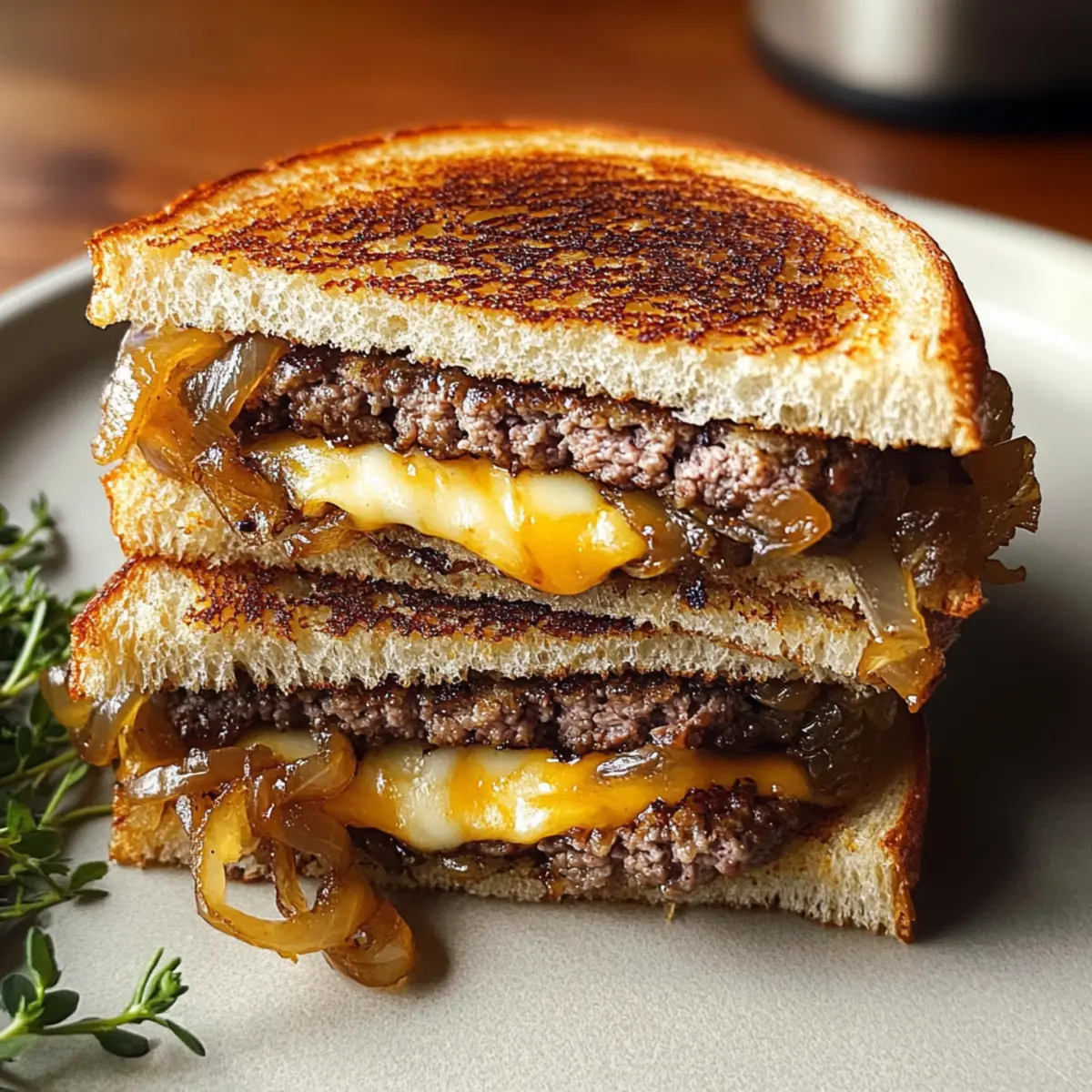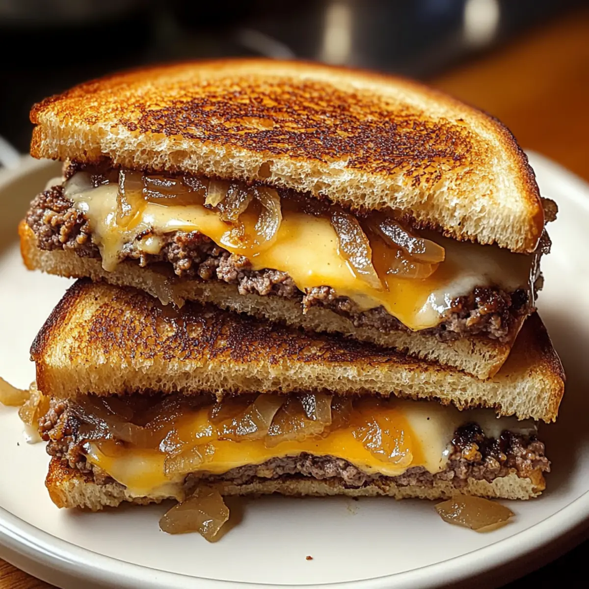 In einer gemütlichen Bistro-Ecke, umgeben von dem verführerischen Duft von frisch gebratenem Brot und geschmolzenem Käse, habe ich meine Liebe für das klassische Sandwich entdeckt: den Klassischen Patty Melt. Mit einer Kombination aus knusprigem, buttrigem Roggenbrot, saftigen Rindfleisch-Patties und süßen, karamellisierten Zwiebeln macht dieses Rezept nicht nur schnell satt, sondern sorgt auch für den ultimativen Genussmoment in der Küche. In nur 15 Minuten Vorbereitung und 30 Minuten Kochzeit zaubern wir ein herzhaftes Gericht, das ideal für ein schnelles Mittagessen oder ein gemütliches Abendessen geeignet ist. Lass uns gemeinsam in die köstliche Welt des Klassischen Patty Melts eintauchen. Was denkst du, welche Beilage würde dazu am besten passen? Warum wirst du dieses Rezept lieben? Einfachheit, die begeistert: Die Zubereitung ist unkompliziert und erfordert nur grundlegende Kochfähigkeiten, was dir Zeit in der Küche spart. Herzhafter Genuss: Der Geschmack der geschmolzenen Schweizer Käse und der süßen Zwiebeln harmoniert perfekt mit dem saftigen Rindfleisch. Schnell zaubern: In nur 15 Minuten Vorbereitung und 30 Minuten Kochzeit hast du ein köstliches Gericht, das du jederzeit genießen kannst. Vielseitig kombinierbar: Serviere deinen Patty Melt mit warmem Tomatensuppe oder knusprigen Süßkartoffel-Pommes für ein vollwertiges Essen. Wenn du mehr über Beilagen erfahren möchtest, schau dir unseren Beilagenführer für Sandwiches an! Gemütliches Essen: Dieses Sandwich vereint alle Aromen und Texturen, die das Herz höher schlagen lassen, und bringt einen Hauch Bistro-Feeling in dein Zuhause. Klassischer Patty Melt Zutaten • Die perfekten Zutaten für dein neues Lieblingsrezept! Für die Patties Rinderhackfleisch – sorgt für Saftigkeit und volles Aroma; ersetze es durch Putenhack oder eine pflanzliche Alternative, wenn gewünscht. Salz – hebt die natürlichen Aromen des Fleisches hervor und balanciert die Süße der Zwiebeln. Schwarzer Pfeffer – fügt eine milde Schärfe und ein ansprechendes Aroma hinzu, das den Gesamtgeschmack verstärkt. Für die Zwiebeln Zwiebel – karamellisiert für Süße und Tiefe; gelbe oder weiße Zwiebeln sind ideal. Ungesalzene Butter – wird zum Braten der Zwiebeln und für eine knusprige Außenseite des Brotes verwendet. Für das Brot und den Käse Roggenbrot – bietet einen einzigartigen Geschmack und Festigkeit; kann durch Sauerteig oder Vollkornbrot ersetzt werden, wenn gewünscht. Schweizer Käse – liefert eine cremige Textur und schmilzt perfekt; Alternativen wie Cheddar oder Gouda sind ebenfalls möglich. Für den Genuss Optionale Beilagen – Ketchup, Senf oder Gewürzgurken zum Servieren; sie verleihen zusätzliche Würze und Geschmack. Mit diesen Zutaten bist du bereit, einen leckeren Klassischen Patty Melt zu zaubern, der deine Familie und Freunde begeistern wird! Schritt-für-Schritt-Anleitungen für den Klassischen Patty Melt Step 1: Patties formen Forme das Rinderhackfleisch zu vier dünnen Patties und würze sie großzügig mit Salz und schwarzem Pfeffer. Achte darauf, dass die Patties gleichmäßig dick sind, damit sie gleichmäßig garen. Lege sie auf einen Teller und stelle sie beiseite, während du die Zwiebeln vorbereitest. Step 2: Zwiebeln karamellisieren Erhitze in einer großen, beschichteten Pfanne bei mittlerer Hitze 2 Esslöffel ungesalzene Butter. Füge die geschnittenen Zwiebeln hinzu und koche sie unter gelegentlichem Rühren für etwa 15-20 Minuten, bis sie goldbraun und weich sind. Ihr süßer, karamellisierter Duft wird die Küche erfüllen und das Aroma des Klassischen Patty Melts intensivieren. Step 3: Patties garen Nachdem die Zwiebeln schön karamellisiert sind, nimm sie aus der Pfanne und stelle sie vorübergehend beiseite. Erhöhe die Hitze auf mittelhoch und lege die Patties in die gleiche Pfanne. Brate die Patties etwa 3-4 Minuten auf jeder Seite, bis sie eine schöne braune Kruste haben und den gewünschten Gargrad erreicht haben. Step 4: Brot vorbereiten Während die Patties garen, nimm die Scheiben Roggenbrot und streiche eine Seite jeder Scheibe mit ungesalzener Butter ein. Diese gebutterte Seite wird später nach unten in die Pfanne gelegt, um eine köstlich knusprige Textur zu erhalten. Step 5: Sandwich zusammenstellen Lege eine Scheibe Roggenbrot mit der gebutterten Seite nach unten in die Pfanne. Belege sie mit einer Scheibe Schweizer Käse, einem Patty, einer großzügigen Portion karamellisierter Zwiebeln und einer weiteren Scheibe Käse. Setze dann eine zweite Scheibe Brot darauf, ebenfalls mit der gebutterten Seite nach oben. Step 6: Sandwich grillen Grille das Sandwich in der Pfanne bei mittlerer Hitze für etwa 3 Minuten, bis das Brot goldbraun ist und der Käse zu schmelzen beginnt. Verwende einen Spatel, um leicht auf das Sandwich zu drücken, damit der Käse gleichmäßig schmilzt. Wende das Sandwich vorsichtig und grille die andere Seite bis zur gleichen goldbraunen Farbe. Step 7: Servieren Lass das Sandwich nach dem Grillen kurz abkühlen, schneide es dann in der Mitte durch und serviere es warm. Ergänze den Klassischen Patty Melt nach Belieben mit Ketchup, Senf oder Gewürzgurken, um zusätzlichen Geschmack zu verleihen und dein Gericht abzurunden. Expertentipps für den Klassischen Patty Melt Gleichmäßige Patties: Achte darauf, dass die Patties gleichmäßig dick sind. So garen sie gleichmäßig und werden perfekt saftig. Zwiebeln richtig karamellisieren: Halte die Hitze beim Karamellisieren stabil, um ein Anbrennen zu vermeiden. Geduld ist hier der Schlüssel zum intensiven Geschmack. Käse optimal schmelzen: Verwende einen Spatel, um das Sandwich leicht zu drücken, während du es grillst. So schmilzt der Käse wunderbar und verbindet sich mit den anderen Zutaten. Reste richtig aufbewahren: Meide die Mikrowelle für die Wiedererwärmung. Ein kurzer Aufenthalt in der Pfanne sorgt für die beste Textur beim Aufwärmen. Variation nutzen: Experimentiere mit v