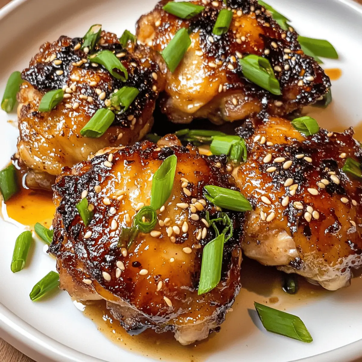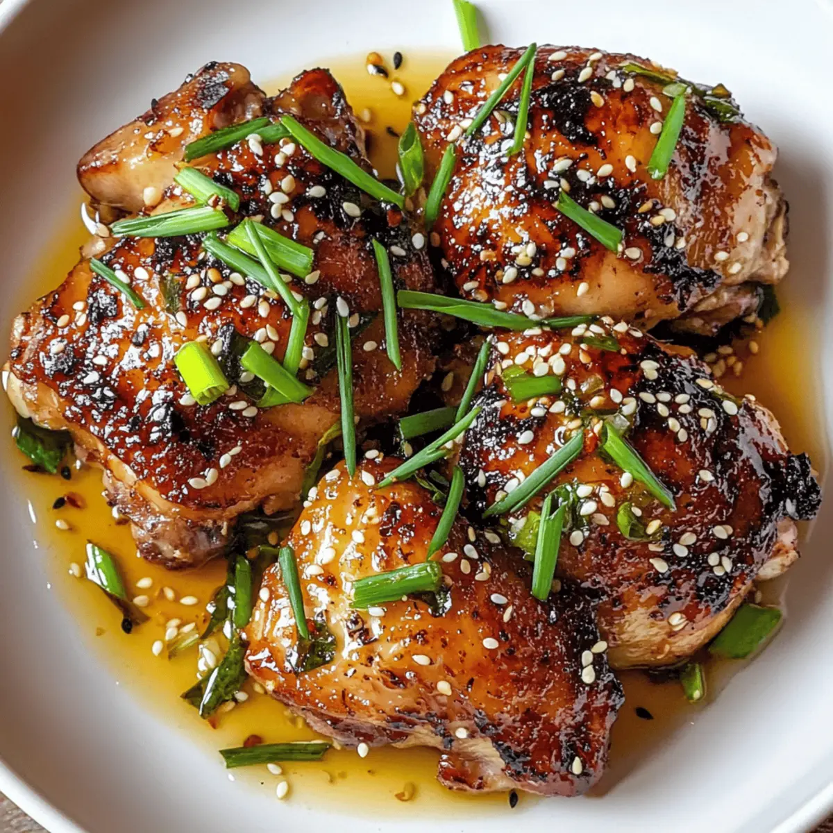 Optik verbessern: Für ein ansprechendes Servieren, garniere die Hähnchenkeulen vor dem Servieren stets mit frischen Frühlingszwiebeln und Sesamsamen.