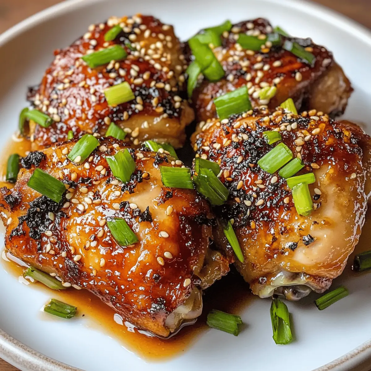 Für ein ansprechendes Servieren, garniere die Hähnchenkeulen vor dem Servieren stets mit frischen Frühlingszwiebeln und Sesamsamen.