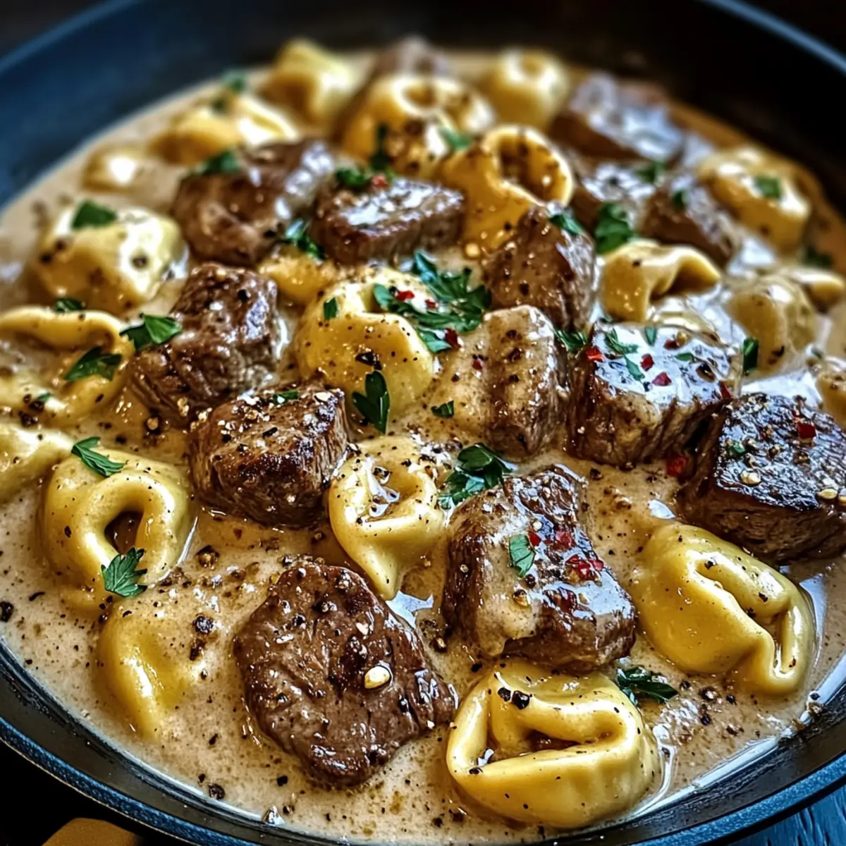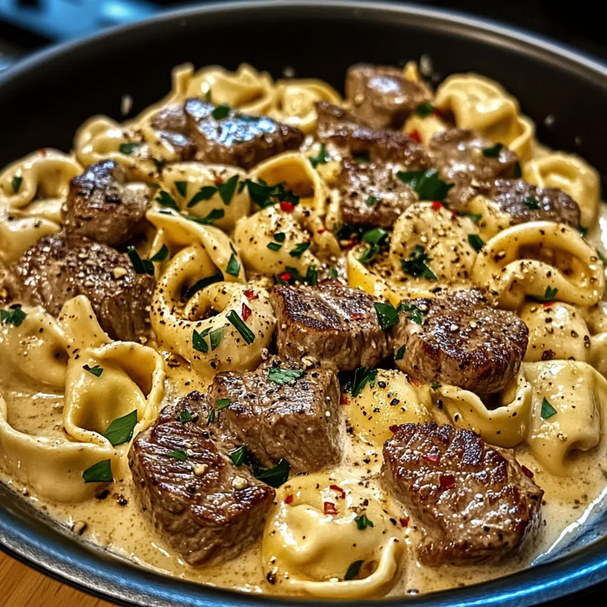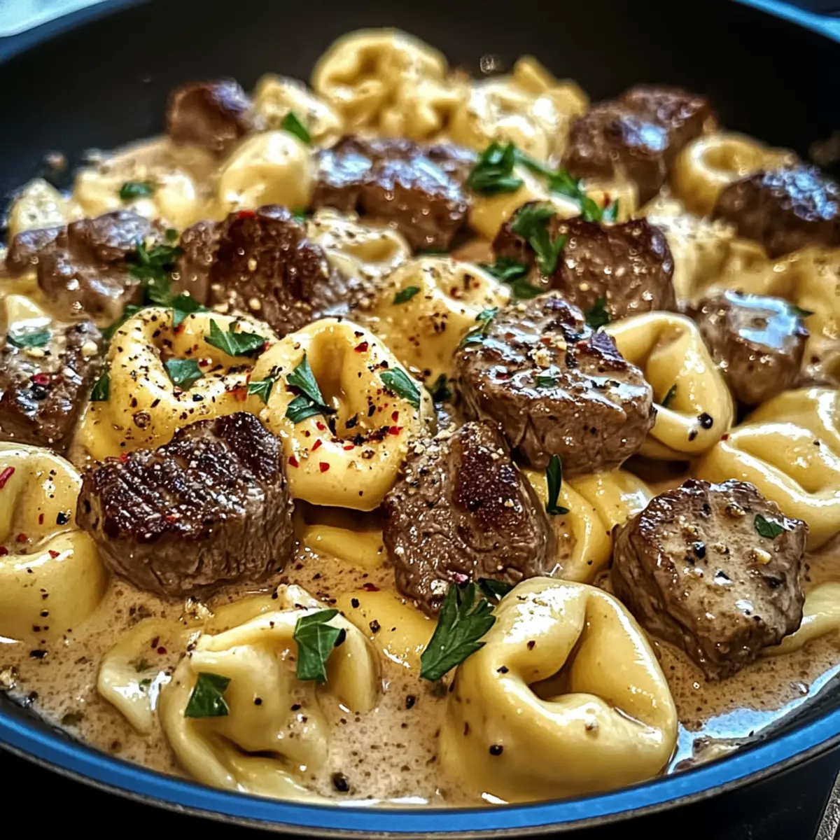 Es war ein hektischer Wochentag, und der Duft von frisch gebratenem Steak und knusprig angebratenem Knoblauch drang durch die Küche. An solchen Abenden ist mein Favorit das Knoblauch Steak Tortellini – ein schnelles und einfaches Gericht, das in nur 30 Minuten zubereitet ist und die Seele wärmt. Die Kombination aus zartem Steak und cremigen Tortellini in einer schmackhaften Knoblauchsoße hebt jede stressige Woche auf ein neues Level. Dieses Rezept ist nicht nur anpassbar – du kannst Steak, Hühnchen oder sogar Garnelen verwenden – es lenkt auch den Fokus zurück auf das Genießen von hausgemachter Kost. Sei bereit für ein köstliches Abendessen, das Hobbyköche und Fast-Food-Muffel gleichermaßen begeistert. Bist du neugierig, welche besonderen Zutaten das Ganze noch verfeinern können? Warum ist Knoblauch Steak Tortellini einzigartig? Schnelligkeit: In nur 30 Minuten zubereitet, ist dieses Gericht perfekt für hektische Wochentage. Köstliche Aromen: Aromatischer Knoblauch und zartes Steak sorgen für eine Geschmacksexplosion. Vielseitigkeit: Egal, ob Steak, Hühnchen oder Garnelen – du hast die Wahl! Cremige Textur: Die Kombination aus Tortellini und einer samtigen Knoblauchsoße macht jeden Bissen unwiderstehlich. Kreative Anpassungen: Füge frisches Gemüse oder alternative Käsesorten hinzu, um das Gericht nach deinem Geschmack zu verfeinern. Genuss für alle: Ideal für Hobbyköche und Fast-Food-Liebhaber, die auf der Suche nach hausgemfolgem Genuss sind! Knoblauch Steak Tortellini Zutaten • Wenn du neugierig auf die Zutaten bist, die dieses Gericht so besonders machen, bist du hier genau richtig! Für die Tortellini 20 oz Käse-Tortellini – sorgt für eine cremige Textur und serviert als herzhafter Grundstock; frische Varianten liefern den besten Geschmack. Für das Steak 1 lb Steak (Sirloin oder Ribeye) – Hauptprotein; Sirloin für weniger Fett und Ribeye für zarte Stücke, die im Mund zerschmelzen. Für die Gewürze Salz, schwarzer Pfeffer, Knoblauchpulver, geräuchertes Paprika – diese Gewürzmischung kann nach Geschmack angepasst werden für einen intensiveren Geschmack. Für die Soße 2 EL Olivenöl – entscheidend für das Anbraten des Steaks, bringt Tiefe in den Geschmack. 4 EL Butter – bildet die Basis der cremigen Soße und fügt Reichtum hinzu. 5 Knoblauchzehen, gehackt – die aromatische Grundlage des Gerichts, die für viel Geschmack sorgt. 1 Tasse Schlagsahne – Hauptbestandteil der Soße für eine samtige Glätte. 3/4 Tasse Vollmilch – balanciert die Reichhaltigkeit, ohne das Gericht zu überladen. 1 1/4 Tassen Parmesan, gerieben oder frisch gerieben – verleiht herzhaften Geschmack und hilft, die Soße zu verdicken. Für die Garnitur Petersilie, gehackt (optional) – ein frischer Akzent, der dem Gericht Farbe verleiht. Rote Paprikaflocken (optional) – für diejenigen, die einen scharfen Kick mögen. Geknackter schwarzer Pfeffer (optional) – ein finales Highlight, das den Geschmack verstärkt. Jede Zutat spielt eine Rolle, um das Knoblauch Steak Tortellini zu einem unvergesslichen Erlebnis zu machen! Schritt-für-Schritt-Anleitung für Knoblauch Steak Tortellini Step 1: Tortellini Kochen Bringe in einem großen Topf ausreichend Salzwasser zum Kochen. Füge die Käse-Tortellini hinzu und koche sie 3-5 Minuten lang, bis sie al dente sind. Achte darauf, dass die Tortellini weich sind, aber noch einen leichten Biss haben. Lass die Tortellini nach dem Kochen abtropfen und stelle sie beiseite, während du das Steak zubereitest. Step 2: Steak Würzen und Anbraten Erhitze 2 Esslöffel Olivenöl in einer großen Pfanne bei mittlerer bis hoher Hitze. Würze das Steak mit Salz, schwarzem Pfeffer, Knoblauchpulver und geräucherter Paprika. Lege das Steak vorsichtig in die heiße Pfanne und brate es 3-5 Minuten an, bis es goldbraun ist. Das Steak sollte eine schöne Kruste haben; nimm es dann aus der Pfanne und lege es zur Seite. Step 3: Knoblauchcreme Soße Vorbereiten Reduziere die Hitze auf mittel und gib 4 Esslöffel Butter in die gleiche Pfanne. Lass die Butter schmelzen und füge die gehackten Knoblauchzehen hinzu. Sauté den Knoblauch für etwa 1 Minute, bis er duftet, und achte darauf, dass er nicht anbrennt. Dieser Schritt sorgt für die aromatische Basis des Knoblauch Steak Tortellini. Step 4: Cremige Soße Erstellen Gieße 1 Tasse Schlagsahne und 3/4 Tasse Vollmilch in die Pfanne und lasse die Mischung unter gelegentlichem Rühren leicht köcheln. Simmer die Soße 3-4 Minuten lang, bis sie leicht eindickt und eine cremige Konsistenz erreicht. Die Hitze sollte niedrig genug sein, um ein Überkochen zu verhindern und die Aromen zu intensivieren. Step 5: Käse Hinzufügen Reduziere die Hitze auf niedrig und füge nach und nach 1 1/4 Tassen geriebenen Parmesan hinzu, während du die Soße ständig umrührst. Warte, bis der Käse vollständig geschmolzen und die Soße glatt ist. Probiere die Soße und passe die Gewürze nach deinem Geschmack an. Jetzt beginnt die leckere Knoblauch Steak Tortellini Soße, ihre köstliche Form anzunehmen. Step 6: Zutaten Kombinieren Gib die angebratenen Steakstücke und die abgetropften Tortellini zurück in die Pfanne. Mixe alles gut durch, sodass die Tortellini und das Steak gleichmäßig mit der cremigen Soße überzogen werden. Lass es etwa 2 Minuten auf der Hitze, damit sich die Aromen verbinden und die Tortellini die Soße aufnehmen können. Step 7: Garnieren und Servieren Nimm die Pfanne vom Herd und garniere das Gericht nach Belieben mit gehackter Petersilie, schwarzem Pfeffer und roten Paprikaflocken. Serviere das Knoblauch Steak Tortellini sofort, um die cremige Textur und den köstlichen Geschmack voll auszukosten. Dieses Gericht ist ideal, um es mit deiner Familie oder Freunden zu genießen! Lagerungstipps für Knoblauch Steak Tortellini Zimmertemperatur: Für bis zu 2 Stunden können die Knoblauch Steak Tortellini bei Zimmertemperatur stehen, damit sie nicht verderben. Kühlschrank: Bewahre Reste