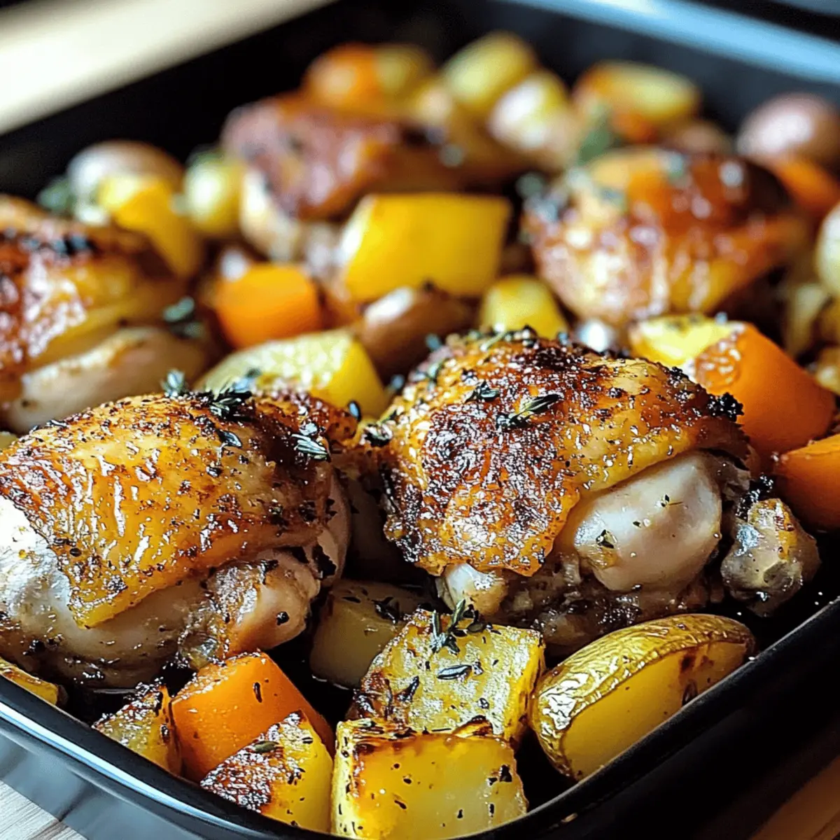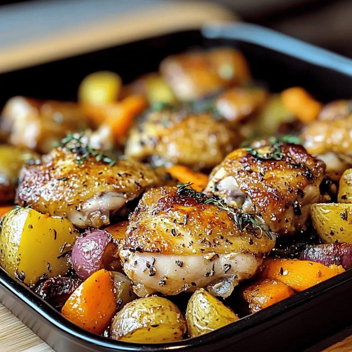Der Duft von frisch gebratenem Hähnchen zieht durch die Küche, während ich die knusprigen Hähnchenschenkel mit Ofengemüse zubereite. Diese herrliche Kombination aus zarten, saftigen Hähnchenschenkeln und aromatischem Gemüse ist nicht nur ein festliches Geschmackserlebnis, sondern auch ein Komfortgericht, das die Seele wärmt. Mit einem schnellen Vorbereitungsprozess und der Möglichkeit, die Zutaten nach Vorliebe anzupassen, wird dieses Rezept zu einem köstlichen Begleiter für jeden Abend. Egal, ob für ein Familienessen oder ein entspanntes Dinner mit Freunden – die Kombination aus knusprigem Hähnchen und zart geröstetem Gemüse wird Begeisterung auslösen. Bereit, Deine eigene köstliche Version zu kreieren? Warum werden Sie dieses Rezept lieben? Einfachheit, das Rezept erfordert wenig Zeit und kaum Vorbereitungsaufwand – perfekt für beschäftigte Tage! Herzhafter Geschmack, die Kombination aus knusprigem Hähnchen und würzigem Ofengemüse sorgt für ein unvergleichliches Geschmackserlebnis. Vielseitigkeit, Sie können die Zutaten nach Belieben anpassen, sei es mit anderen Gemüsesorten oder Gewürzen. Geselligkeit, dieses Gericht eignet sich hervorragend für Familienessen oder entspannte Abende mit Freunden und bringt everyone together. Gesunde Wahl, die Verwendung frischer Zutaten macht es zu einer nahrhaften Option für jeden! Probieren Sie auch unsere Tipps für die Zubereitung von Schnellgerichten für noch mehr Inspiration! Knusprige Hähnchenschenkel mit Ofengemüse Zutaten • Um die Neugier zu wecken: Hier sind die Zutaten, die Sie für die perfekten knusprigen Hähnchenschenkel mit Ofengemüse benötigen! Für die Hähnchenschenkel Hähnchenschenkel – Hauptzutat, die für Geschmack und Saftigkeit sorgt. Verwenden Sie am besten die Schenkel mit Haut für die optimale Textur. Olivenöl – Öl für das Rösten, das den Geschmack verstärkt und das Bräunen fördert. Kann durch neutrales Öl ersetzt werden. Paprikapulver – Fügt Tiefe und eine leichte Süße hinzu. Verwendet man Currypulver, erhält man einen anderen Twist. Knoblauchpulver – Bereichert das herzhaftes Aroma. Frischer, gehackter Knoblauch kann für einen intensiveren Geschmack verwendet werden. Thymian oder Rosmarin – Frische Kräuter, die das Aroma des Gerichts steigern. Frische Kräuter sind bevorzugt und können auch gemischt werden. Salz und Pfeffer – Wichtig für die Würze. Nach Geschmack anpassen. Zitronensaft (optional) – Fügt Helligkeit zum Geschmack hinzu. Kann je nach Vorliebe weggelassen werden. Für das Gemüse Gemüse (Kartoffeln, Karotten, Zucchini, Paprika, Zwiebeln) – Für eine farbenfrohe, nahrhafte Grundlage. Kann durch saisonale Gemüsesorten wie Süßkartoffeln oder Brokkoli ersetzt werden. Genießen Sie das Kochen und lassen Sie den köstlichen Duft dieses Gerichts Ihre Küche erfüllen! Step-by-Step Instructions for Knusprige Hähnchenschenkel mit Ofengemüse Step 1: Ofen vorheizen Heizen Sie den Ofen auf 200°C (390°F) für Ober-/Unterhitze oder 180°C (350°F) für Umluft vor. Dies stellt sicher, dass Ihr Hähnchen von Anfang an gleichmäßig knusprig wird. Überprüfen Sie die Temperatur mit einem Ofenthermometer, um die optimale Garumgebung zu schaffen. Step 2: Gewürzmischung herstellen Mischen Sie in einer großen Schüssel das Olivenöl, Paprikapulver, Knoblauchpulver, frische Kräuter sowie Salz und Pfeffer. Diese Mischung sollte gut emulgieren und eine aromatische Paste bilden. Die Gewürze verleihen den Hähnchenschenkeln den perfekten Geschmack, also stellen Sie sicher, dass alles gut verbunden ist. Step 3: Hähnchenschenkel einreiben Reiben Sie die Hähnchenschenkel großzügig mit der vorbereiteten Gewürzmischung ein. Achten Sie darauf, dass die Gewürze gleichmäßig verteilt sind, damit jeder Bissen den vollen Geschmack entfaltet. Lassen Sie die Schenkel idealerweise 10 Minuten marinieren, um die Aromen zu intensivieren. Step 4: Gemüse vorbereiten Schneiden Sie die Kartoffeln, Karotten, Zucchini, Paprika und Zwiebeln in gleichmäßige Stücke, um ein gleichmäßiges Garen zu gewährleisten. Werfen Sie das Gemüse in einer Schüssel mit etwas Olivenöl, Salz und optional Zitronensaft. Dies sorgt für zusätzliche Frische und Geschmack und schafft eine appetitliche Beilage. Step 5: Alles auf dem Blech anrichten Verteilen Sie das vorbereitete Gemüse gleichmäßig auf einem Backblech und legen Sie die Hähnchenschenkel mit der Hautseite nach oben darauf. Achten Sie darauf, den Abstand zwischen den Schenkeln zu halten, damit die Luft zirkulieren kann und eine knusprige Kruste entsteht. Step 6: Backen Backen Sie die Hähnchenschenkel und das Ofengemüse 40–45 Minuten lang im vorgeheizten Ofen. Die Hähnchenschenkel sind fertig, wenn die Haut knusprig und goldbraun ist und die Innentemperatur mindestens 75°C (165°F) erreicht. Überprüfen Sie das Gemüse, es sollte zart und leicht caramelisiert sein. Step 7: Grillfunktion für mehr Knusprigkeit Aktivieren Sie in den letzten 5 Minuten die Grillfunktion des Ofens, um die Haut der Hähnchenschenkel zusätzlich zu bräunen. Beobachten Sie den Garvorgang genau, damit die Haut nicht verbrennt und eine köstliche, knusprige Textur entsteht. Step 8: Ruhen lassen Nehmen Sie das Backblech aus dem Ofen und lassen Sie die Hähnchenschenkel 5 Minuten ruhen. Dies ermöglicht es den Säften, sich gleichmäßig im Fleisch zu verteilen und macht es saftiger. Servieren Sie die Hähnchenschenkel mit dem Ofengemüse und genießen Sie das köstliche Ergebnis! Was passt zu knusprigen Hähnchenschenkeln mit Ofengemüse? Der köstliche Duft von knusprigen Hähnchenschenkeln und aromatischem Gemüse lässt sich wunderbar mit weiteren Beilagen kombinieren, um ein festliches Mahl zu kreieren. Frischer grüner Salat: Zusammen mit einem zarten Vinaigrette-Dressing sorgt er für einen erfrischenden Kontrast zur herzhaften Hauptspeise. Die knackigen Blätter und das spritzige Dressing ergänzen die Aromen des Gerichts perfe
