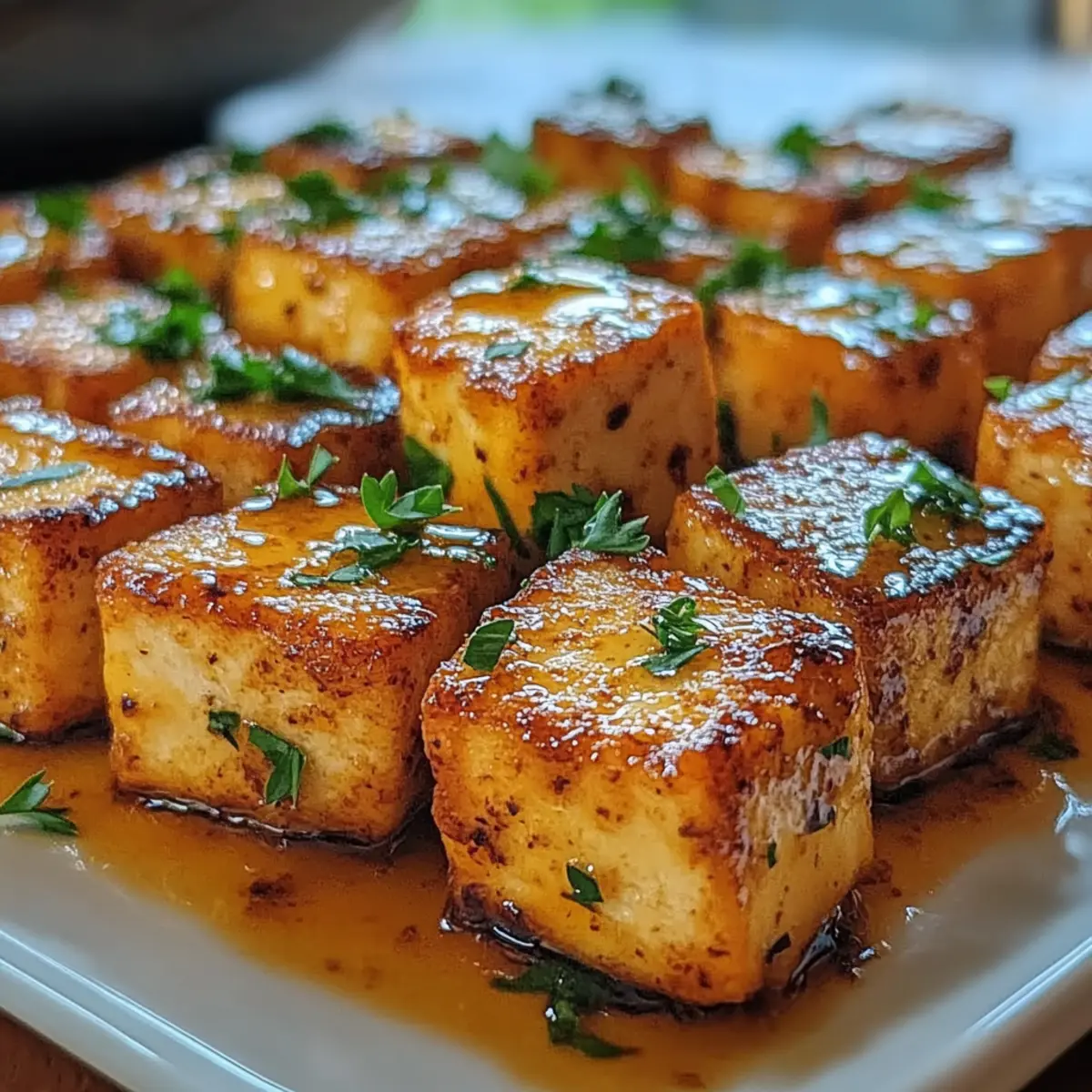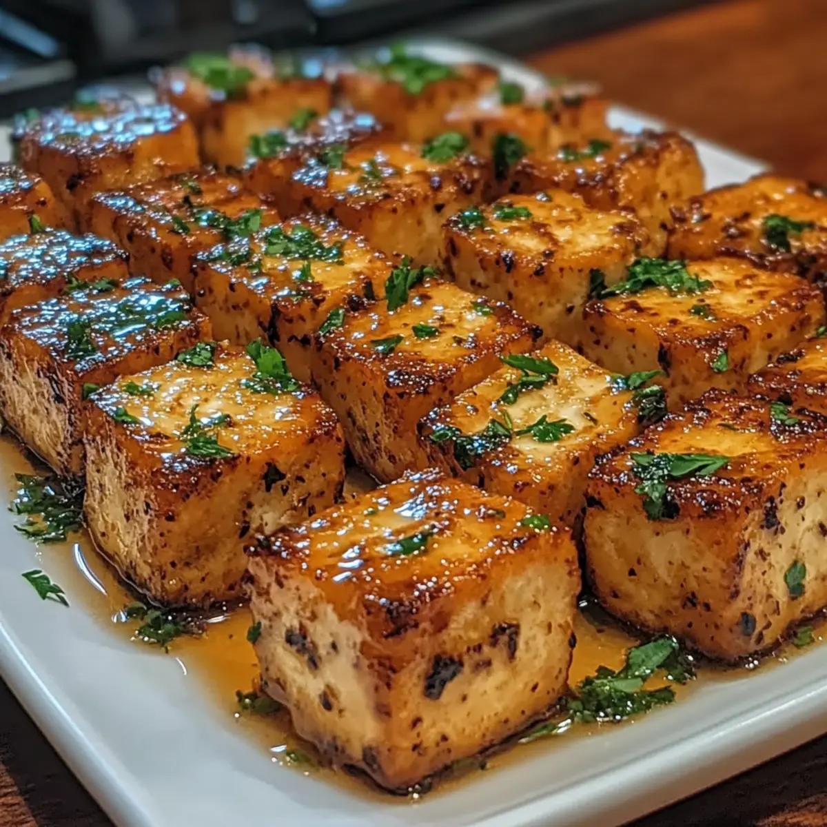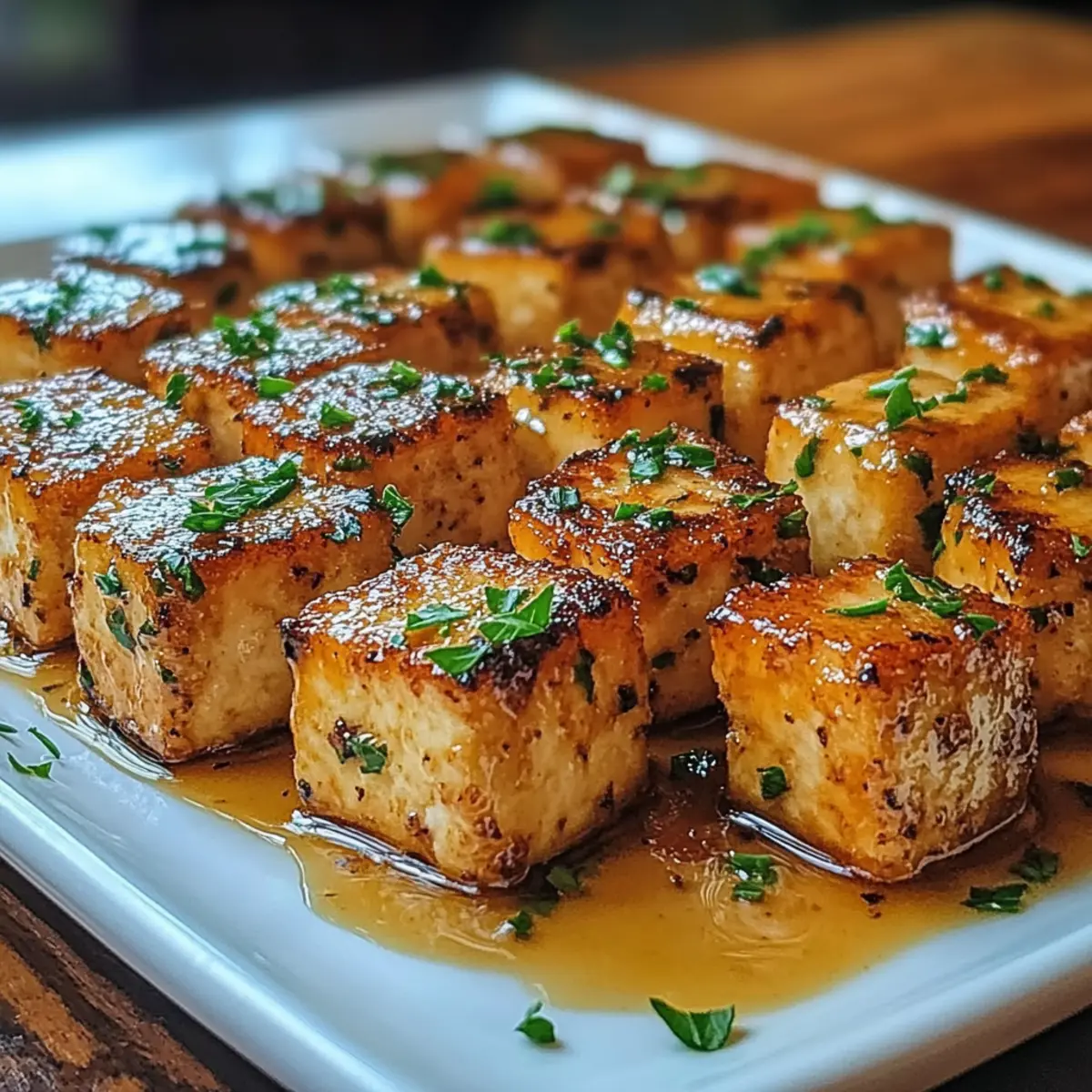 Kürzlich saß ich mit Freunden zusammen, als der verführerische Geruch von Knoblauch durch den Raum zog und unser Gespräch zum Stillstand brachte. Es war der perfekte Moment, um meine geheimen Knusprigen Knoblauchbutter-Tofu-Bissen vorzustellen – kleine, goldene Nuggets, die jedem herzhaften Verlangen gerecht werden. Diese pflanzlichen Häppchen sind nicht nur blitzschnell zubereitet, sondern auch ein echtes Geschmackserlebnis, das sogar Fleischliebhaber überzeugt. Ob als Vorspeise bei einem Abendessen oder als Hauptgericht zu einem frischen Salat, sie sind die ideale Lösung für alle, die eine gesunde und köstliche Alternative zu Fast Food suchen. Neugierig, wie du diese köstlichen Bissen selbst zubereiten kannst? Lass uns gleich loslegen! Warum wirst du dieses Rezept lieben? Einfachheit: Die Zubereitung der knusprigen Knoblauchbutter-Tofu-Bissen ist kinderleicht und gelingt dir im Handumdrehen, selbst wenn du wenig Erfahrung in der Küche hast. Reichhaltiger Geschmack: Die Kombination aus Knoblauch und veganer Butter sorgt für einen tiefen, köstlichen Geschmack, der deine Geschmacksknospen verzaubern wird. Vielseitige Verwendung: Diese Bissen sind perfekt als Appetizer, Hauptgericht oder sogar als Snack zwischendurch – die Möglichkeiten sind endlos! Du kannst sie auch mit Gerichten wie Krosse Zaehe Kokosnussplaetzchen kombinieren, um ein wahrhaft einzigartiges Menü zu kreieren. Schnell zubereitet: In nur 40 Minuten hast du eine leckere und gesunde Mahlzeit auf dem Tisch, die auch in stressigen Zeiten für eine gesunde Ernährung sorgt. Crowd-Pleaser: Ob du Gäste bewirtest oder einfach nur nach einer besseren Snack-Option suche, diese knusprigen Häppchen werden immer ein Hit sein! Knusprige Knoblauchbutter-Tofu-Bissen Zutaten Für den Tofu Extra-Fester Tofu – So viel Struktur wie möglich, damit die Bissen schön knusprig werden. Maisstärke – Sorgt für die perfekte, leichte Panade und knusprige Textur. Neutrales Öl (z.B. Traubenkernöl) – Ideal zum Braten, sorgt für die richtige Temperatur beim Frittieren. Für die Knoblauchbutter-Sauce Vegane Butter (oder normale Butter) – Liefert die cremige Fülle der Sauce; für eine vegane Variante pflanzlich bleiben. Knoblauch (4 Zehen, gehackt) – Bringt den aromatischen Geschmack; die Menge kann je nach Vorliebe variiert werden. Sojasauce (oder Tamari für glutenfreie Option) – Fügt einen herzhaften Umami-Geschmack hinzu; Tamari ist perfekt für glutenempfindliche Personen. Zitronensaft (1 Teelöffel) – Frische Zitrone bringt Helligkeit und balanciert die Butter; frisch gepresst ist immer am besten. Räucher-Paprika (½ Teelöffel) – Verleiht der Sauce eine subtile, rauchige Note; die Menge kannst du nach Vorliebe anpassen. Rote-Pfeffer-Flakes (¼ Teelöffel, optional) – Für eine scharfe Note; je nach Schärfetoleranz verwenden. Salz und frisch gemahlener schwarzer Pfeffer – Zum Würzen, nach Geschmack anpassen. Frische Petersilie (2 Esslöffel, gehackt) – Für die Garnitur; kann auch durch andere Kräuter wie Koriander ersetzt werden. Entdecke die verführerischen Aromen der Knusprigen Knoblauchbutter-Tofu-Bissen, die dir nicht nur ein schnelles, sondern auch ein unvergessliches Geschmackserlebnis bieten! Schritt-für-Schritt-Anleitung für Knusprige Knoblauchbutter-Tofu-Bissen Step 1: Tofu vorbereiten Lass den extra-festen Tofu gut abtropfen und drücke überschüssige Feuchtigkeit heraus, indem du ihn in ein Küchentuch wickelst und für 15 Minuten eine schwere Pfanne darauf stellst. Anschließend schneide den Tofu in 2,5 cm große Würfel, damit sie gleichmäßig knusprig braten können. Step 2: Würzen und Panieren Gib die Tofuwürfel in eine Schüssel und füge Salz, Pfeffer, geräucherte Paprika sowie Maisstärke hinzu. Schwenke die Stücke vorsichtig, sodass sie gleichmäßig mit der Gewürzmischung und der Maisstärke bedeckt sind und eine schöne heiße Kruste erhalten, die beim Frittieren knusprig wird. Step 3: Öl erhitzen Erhitze in einer schweren Pfanne zwei Esslöffel neutrales Öl bei mittlerer Hitze. Achte darauf, dass das Öl heiß ist, bevor du die Tofu-Würfel hinzufügst — man hört ein Zischen, wenn sie hineinkommen, was auf die richtige Temperatur hinweist. Step 4: Tofu braten Füge die panierten Tofu-Würfel in die heiße Pfanne hinzu und brate sie für 3-5 Minuten auf jeder Seite, bis sie goldbraun und knusprig sind. Überfülle die Pfanne nicht, damit der Tofu gleichmäßig brät und nicht dampft; brate ihn in Portionen, wenn nötig. Step 5: Sauce zubereiten Reduziere die Hitze und füge die vegane Butter in die Pfanne hinzu, in der du den Tofu gebraten hast. Lass die Butter schmelzen und füge den gehackten Knoblauch hinzu, den du 30 Sekunden lang anschwitzen solltest, bis er duftet. Rühre dann Sojasauce, Zitronensaft und rote Pfefferflocken ein und lasse die Mischung für 2 Minuten köcheln, bis sie leicht eindickt. Step 6: Kombinieren Gib die knusprig gebratenen Tofu-Würfel zurück in die Pfanne und schwenke sie vorsichtig in der Knoblauchbutter-Sauce, sodass sie gleichmäßig glasiert sind. Koche das Ganze für weitere 1-2 Minuten, damit sich die Aromen verbinden und der Tofu gut coated ist. Step 7: Servieren Serviere die Knusprigen Knoblauchbutter-Tofu-Bissen sofort auf einem Teller. Garniere sie nach Belieben mit frisch gehackter Petersilie und einer Prise Salz für zusätzlichen Geschmack. Diese leckeren Häppchen sind der perfekte Snack oder die ideale Beilage zu einem frischen Salat! Aufbewahrungstipps für Knusprige Knoblauchbutter-Tofu-Bissen Kühlschrank: Bewahre übrig gebliebene Knusprige Knoblauchbutter-Tofu-Bissen in einem luftdichten Behälter im Kühlschrank auf; sie bleiben bis zu 4 Tage frisch. Gefrierer: Du kannst die Bissen auch einfrieren! Verpacke sie in einem luftdichten Beutel oder Behälter und friere sie bis zu 2-3 Monate ein. Aufwärmen: Zum Wiedererhitzen die Tofu-Bissen im Ofen bei 175°C (350°F) für 10-12 Minuten aufwärmen, um die Knuspri
