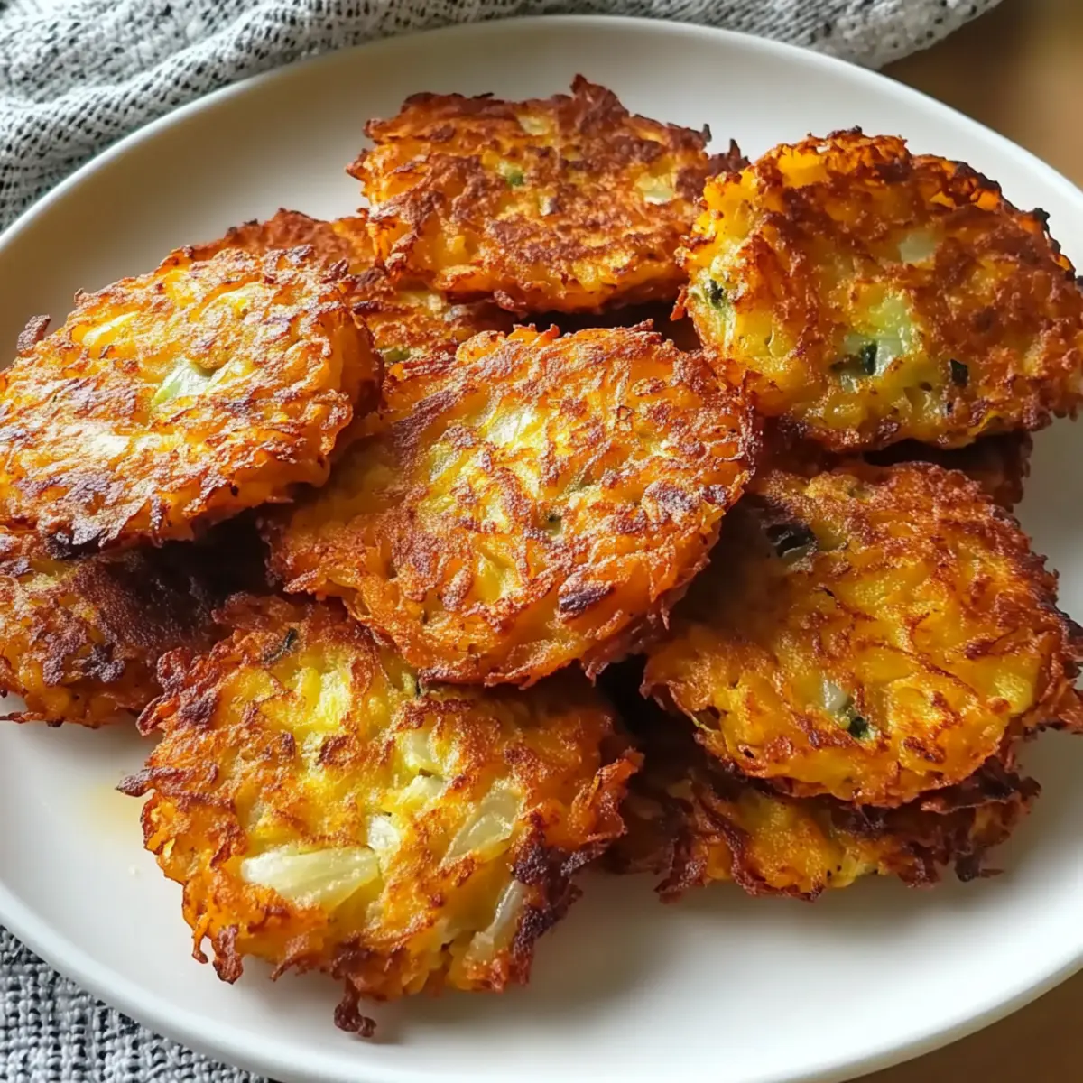 Während ich in meiner Küche stand und den zarten Duft von frisch gebratenem Gemüse wahrnahm, wurde mir klar, dass es an der Zeit war, etwas Besonderes zu zaubern – knusprige Kohlfrikadellen. Diese köstlichen Bällchen sind nicht nur eine fantastische Möglichkeit, Gemüse schmackhaft zu machen, sondern sie sind auch blitzschnell zubereitet und perfekt für den kleinen Hunger zwischendurch. Mit einer goldbraunen, knusprigen Außenschicht und einer softigen Innenbeschaffenheit sind sie ein Hit bei Groß und Klein. Egal, ob als Snack für Kinder oder als Beilage zu einem feinen Abendessen, dieses Rezept lässt sich ganz einfach anpassen und macht die unscheinbare Blattsorte zum Star Ihrer nächsten Mahlzeit. Sie sind neugierig, wie man diese leckeren Köstlichkeiten zubereitet? Lassen Sie uns gemeinsam starten! Warum sind knusprige Kohlfrikadellen so beliebt? Einfachheit, die begeistert: Die Zubereitung ist kinderleicht und erfordert nur wenige Zutaten, die Sie wahrscheinlich bereits zu Hause haben. Gesunde Wahl: Diese Frikadellen sind eine großartige Möglichkeit, Gemüse in die Ernährung einzubauen – perfekt für Kinder! Vielseitigkeit pur: Passen Sie die Zutaten nach Ihrem Geschmack an oder probieren Sie verschiedene Dips aus, wie unser Rezept für krosse Zaehe Kokosnussplaetzchen. Knuspriger Genuss: Mit einer goldbraunen Kruste sorgen sie für einen unwiderstehlichen Biss. Schnelle Zubereitung: In nur 30 Minuten können Sie diese Leckerei auf den Tisch bringen, ideal für hektische Tage oder spontane Gäste! Crowd-Pleaser: Ob zu Partyzeiten oder als schnelles Mittagessen – diese Frikadellen kommen immer gut an! Knusprige Kohlfrikadellen Zutaten • Hier sind die benötigten Zutaten, um diese leckeren Frikadellen zuzubereiten. Für den Teig Kohl – Fein geraspelt sorgt er für die perfekte Grundlage und Textur. Karotten – Coarser gerieben fügt Süße und Crunch hinzu, was die Frikadellen verfeinert. Frühlingszwiebeln – Geben Farbe und Zwiebelgeschmack; verwenden Sie sowohl den weißen als auch den grünen Teil. Eier – Binden die Zutaten; frische, freilaufende Eier sind eine gesunde Wahl. Mehl – Sorgt für Struktur; verwenden Sie Weizenmehl für eine optimale Konsistenz. Knoblauch – Frisch gehackt bringt er Tiefe in den Geschmack. Salz – Unverzichtbar für die Geschmacksbalance; nach Geschmack anpassen. Pfeffer, Paprika, Koriander, Backpulver – Würzen die Mischung; passen Sie die Mengen an, um die gewünschte Schärfe zu erreichen. Öl (neutral) – Zum Braten; ein mildes Oliven- oder Rapsöl eignet sich gut. Hinweis: Diese knusprigen Kohlfrikadellen sind nicht nur schmackhaft, sondern auch gesund und eine großartige Möglichkeit, Gemüse attraktiv zu machen! Schritt-für-Schritt-Anleitung für Knusprige Kohlfrikadellen Step 1: Gemüse vorbereiten Zuerst den Kohl fein raspeln, die Karotten grob reiben und die Frühlingszwiebeln in Ringe schneiden. Den Knoblauch frisch hacken, um ihm maximalen Geschmack zu entlocken. Achten Sie darauf, dass das Gemüse gleichmäßig vorbereitet ist, damit die Knusprigen Kohlfrikadellen gleichmäßig garen. Step 2: Trockene Zutaten mischen In einer separaten Schüssel Mehl, Salz, Pfeffer, Paprika, Koriander und Backpulver gründlich vermengen. Diese Mischung sorgt für die richtige Konsistenz und den perfekten Biss der Knusprigen Kohlfrikadellen. Mischen Sie die trockenen Zutaten gut, damit sich die Aromen gleichmäßig verteilen. Step 3: Mischungen kombinieren In einer großen Schüssel nun die vorbereiteten Gemüse mit den geschlagenen Eiern vermengen. Danach die trockenen Zutaten vorsichtig unterheben und darauf achten, dass alles gut kombiniert ist. Diese Mischung ist die Grundlage für Ihre Knusprigen Kohlfrikadellen, also sorgen Sie dafür, dass alles gleichmäßig verteilt ist. Step 4: Pfanne vorbereiten Erhitzen Sie in einer großen Pfanne bei mittlerer Hitze ausreichend Öl, bis es schimmert, aber nicht raucht. Ein gut erhitztes Öl ist entscheidend für eine knusprige Außenschicht der Frikadellen. Nutzen Sie am besten ein neutrales Öl wie Raps- oder Olivenöl für den besten Geschmack. Step 5: Frikadellen formen Mit einem Esslöffel die Mischung in die heiße Pfanne geben. Flach drücken, sodass die Knusprigen Kohlfrikadellen etwa 2 cm dick sind und dabei genügend Platz zwischen ihnen lassen, um gleichmäßig zu braten. Die richtige Form sorgt für die perfekte Textur beim Frittieren. Step 6: Frittieren Die Kohlfrikadellen für etwa 3 Minuten auf jeder Seite braten, bis sie goldbraun sind. Achten Sie darauf, nicht zu viele Frikadellen auf einmal in die Pfanne zu geben, um Überfüllung zu vermeiden. Diese Schritte sind wichtig, um eine gleichmäßige Bräunung zu erreichen und ein optimales Geschmackserlebnis zu gewährleisten. Step 7: Abtropfen lassen Sobald die Knusprigen Kohlfrikadellen goldbraun sind, nehmen Sie diese vorsichtig mit einer Zange heraus und legen Sie sie auf einen mit Küchenpapier ausgelegten Teller. Dies hilft, überschüssiges Öl abtropfen zu lassen, wodurch die Frikadellen schön knusprig bleiben. Step 8: Warm servieren Die Frikadellen sofort warm servieren, idealerweise mit einem passenden Dip oder Salat. Genießen Sie die knusprigen Kohlfrikadellen als Snack oder Beilage – sie sind sowohl lecker als auch gesund, was sie zur perfekten Wahl für jedes Essen macht. Expert Tips für knusprige Kohlfrikadellen • Feuchtigkeit entziehen: Entfernen Sie überschüssige Feuchtigkeit aus dem Kohl und den Karotten, um ein Zerfallen der frittierten Bällchen zu verhindern. • Mittlere Hitze verwenden: Kochen Sie die Frikadellen bei mittlerer Hitze, um ein gleichmäßiges Garen zu gewährleisten, ohne dass sie verbrennen. • Teig ruhen lassen: Lassen Sie den Teig 5–10 Minuten ruhen, damit sich die Zutaten besser verbinden und die Textur verbessert wird. • Sorgfältig wenden: Wenden Sie die Frikadellen vorsichtig, um ein Brechen zu vermeiden, und streben Sie eine tief goldene Farbe für den bes